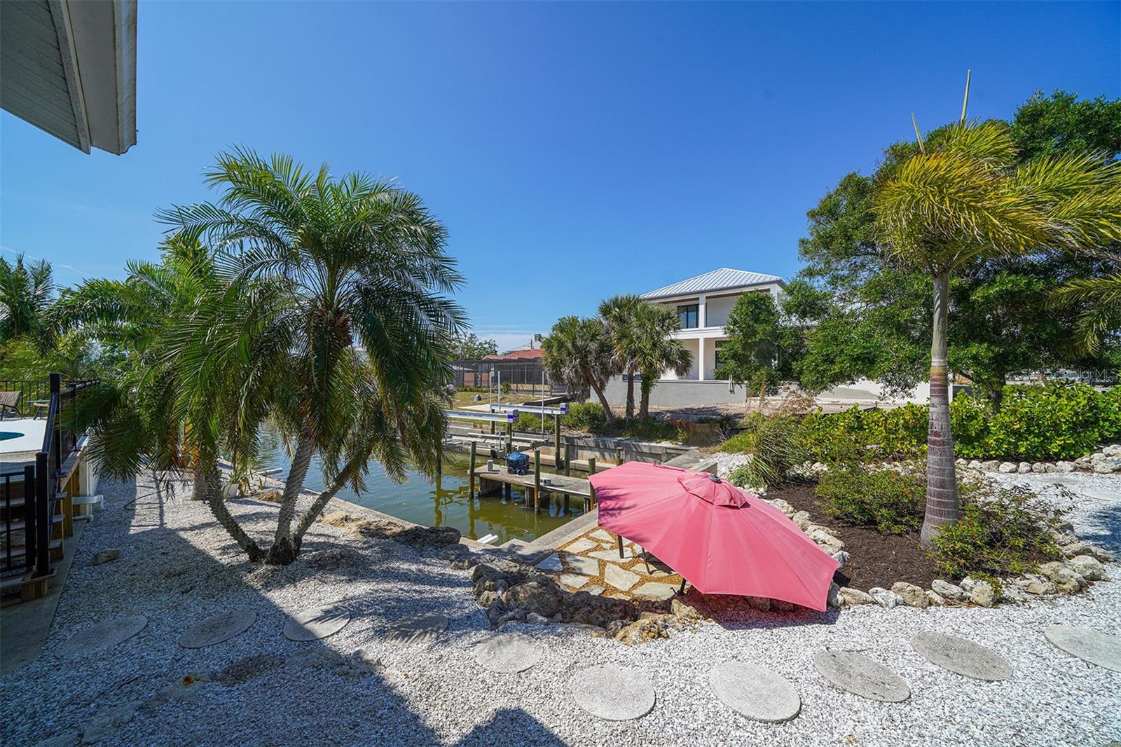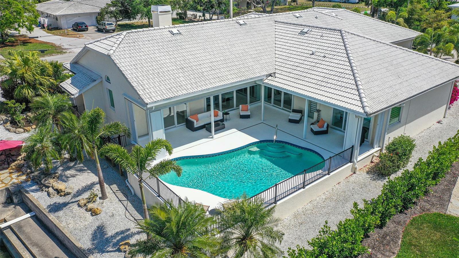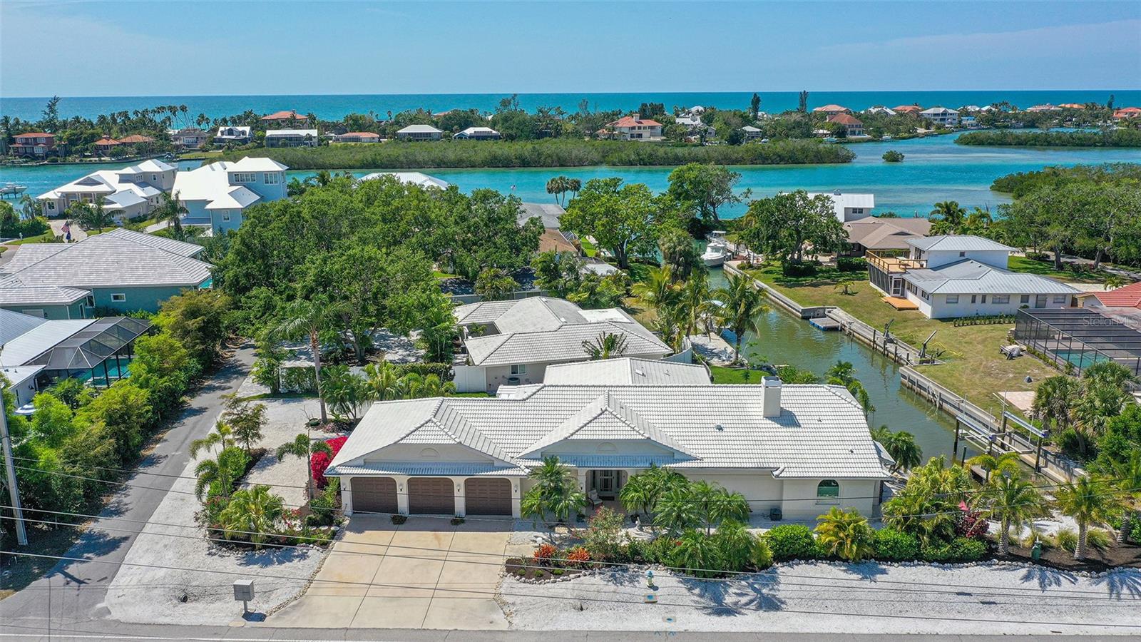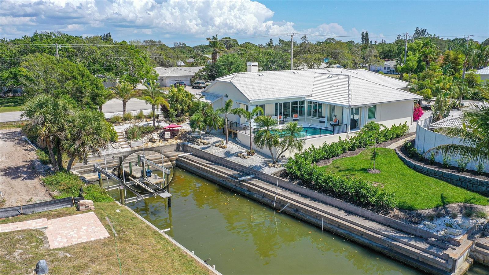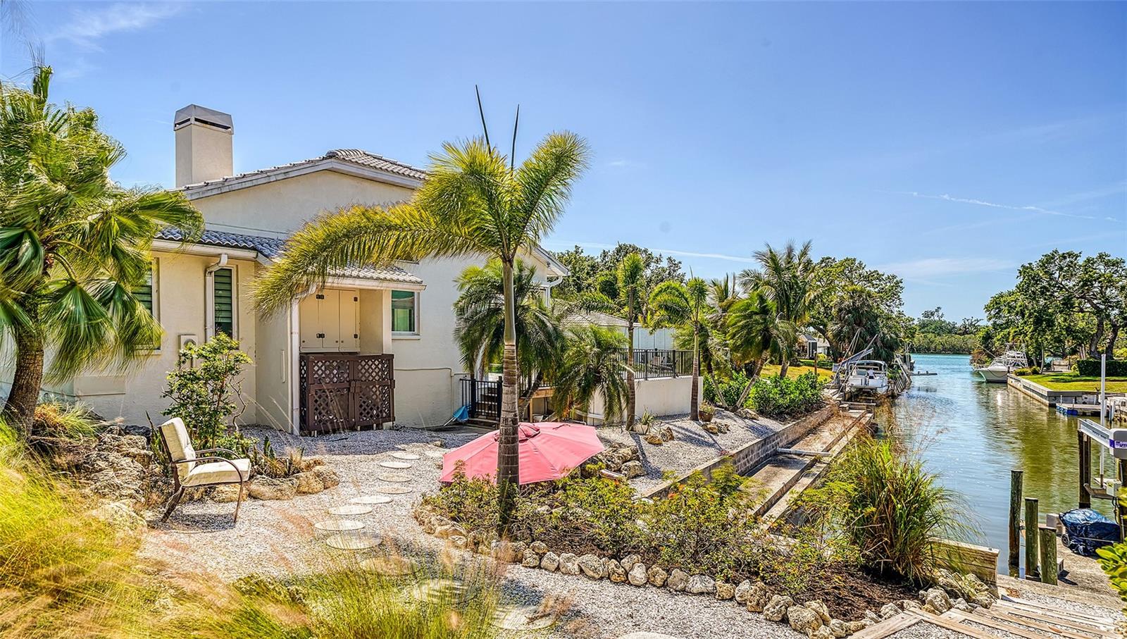 Exceptional waterfront home in a tropical oasis on a dredged canal with boat dock just a stone's throw from the bay. Easy access NO FIXED BRIDGES to the Gulf. No HOA. No deed restrictions. Room for your camper and boats. This neighborhood is exploding in value. Around the corner from Nokomis Beach on Casey Key. So many luxury homes under construction on this street. This dazzling home is full of light with new Low-E impact windows and insulated sliders to catch the view. You will appreciate the comfortable floor plan. Relax by the pool overlooking your boat dock and enjoy the view from almost every room. Deck railing surround maximizes the view. Electronic remote-controlled solar shades afford privacy and give you the effect of a screened porch. They can retract at the touch of a button. The new gourmet kitchen will delight any cook. Top-of-the-line appliances with granite countertops. 36-inch Verona range with induction cooktop and convection oven. Luxurious primary suite has the longest views. Its en-suite bath has a new tiled glassed-in shower and an elegant new soaking tub for the spa experience. Dual sinks with luxurious vanity. The primary dressing room is enormous and newly fitted to accommodate any wardrobe. The open plan feels even more spacious with its soaring ceilings and new Philips HUE LED smart lighting. "Haiku" fans are sleek, all controlled by your mobile device. So many smart home features operate from anywhere. 24-by-24-inch travertine flooring is luxurious, easy-care and cool underfoot. Wood-burning fireplace has a grand marble surround. The two-bedroom guest wing overlooks the pool with the pool bath. It will be hard to run out of closet space in this home. The fourth bedroom is currently a home office connected to the half-bath. A large laundry room with separate entrance. Garage over 1,000 square feet. So much room for hobbies or up to five cars. There's even a home gym included. The landscape architect-designed, Florida-friendly tropical gardens are curated to provide privacy for every room. You'll be delighted to find the waterfront grotto next to the dock. A cozy place to wait for your boat to come in! So many delights await. Call today to experience this exceptional property for yourself.