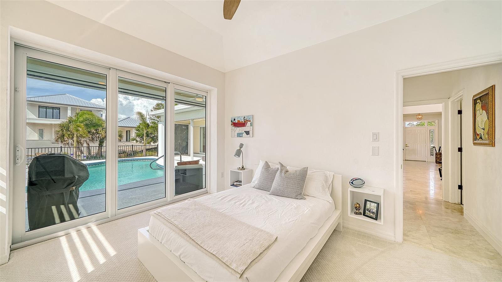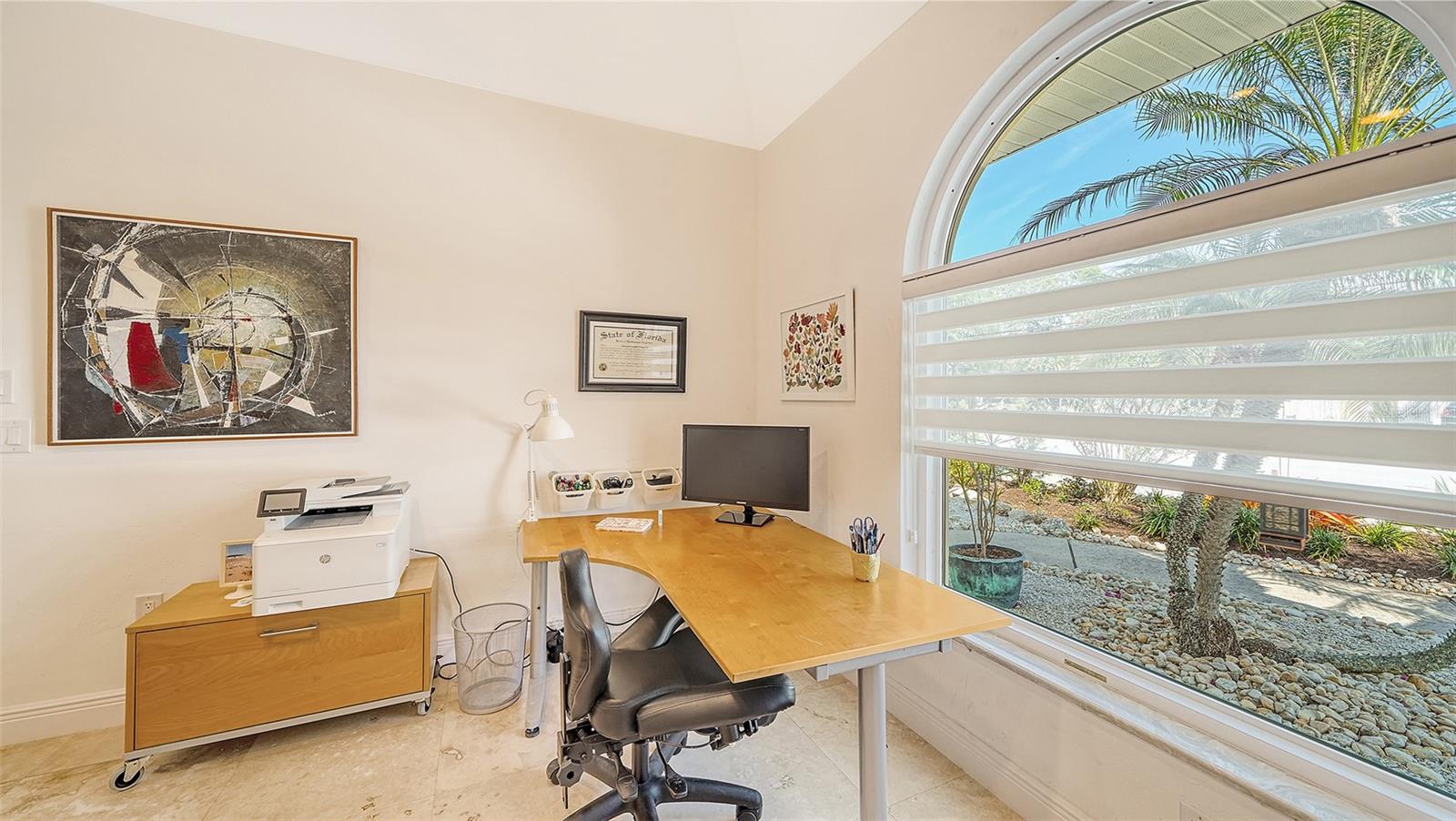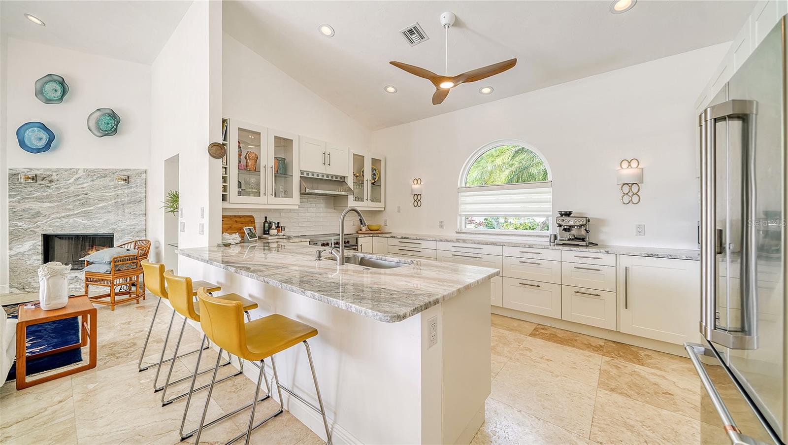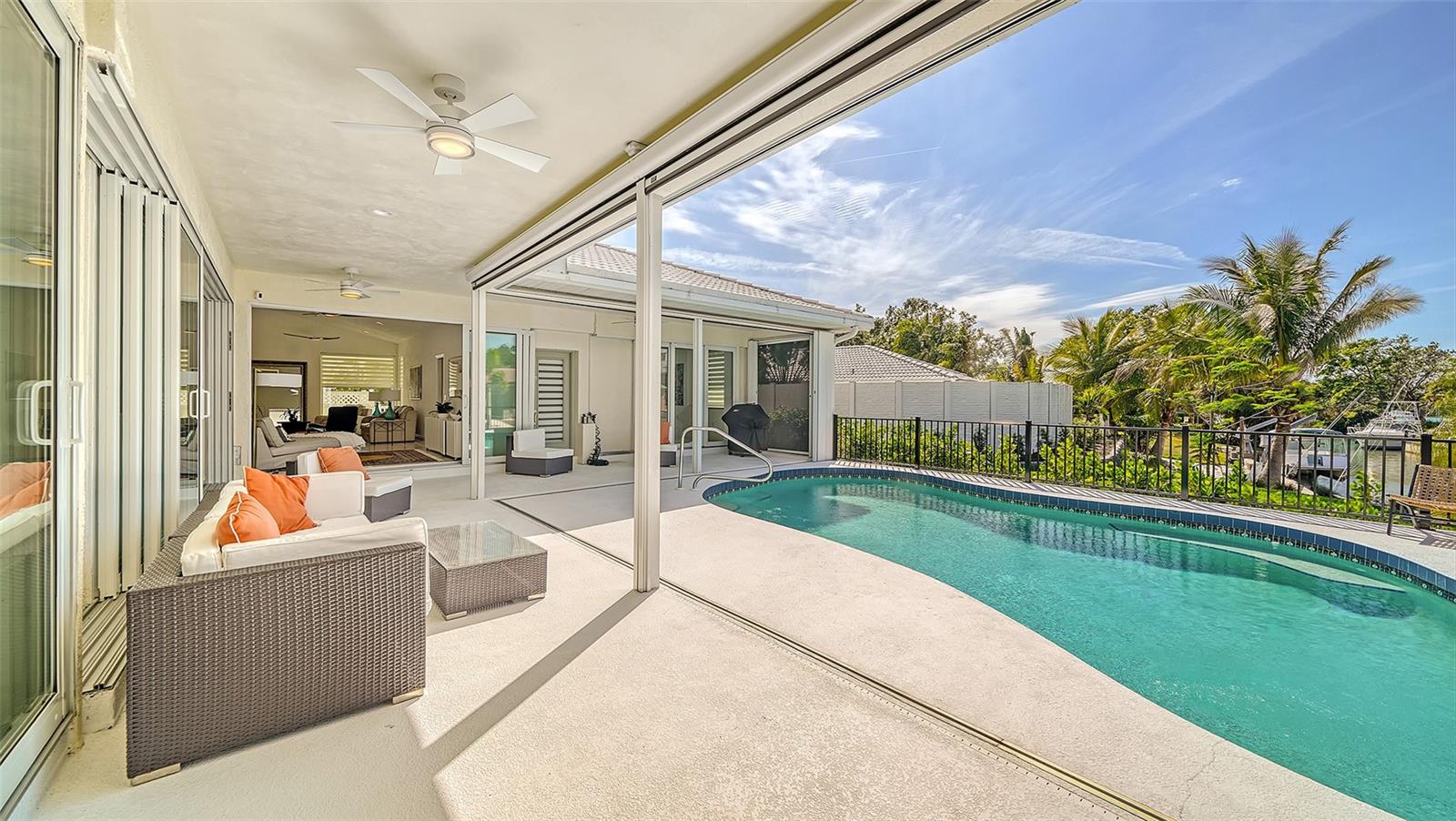 Exceptional waterfront home in a tropical oasis on a dredged canal with boat dock just a stone's throw from the bay. Easy access NO FIXED BRIDGES to the Gulf. No HOA. No deed restrictions. Room for your camper and boats. This neighborhood is exploding in value. Around the corner from Nokomis Beach on Casey Key. So many luxury homes under construction on this street. This dazzling home is full of light with new Low-E impact windows and insulated sliders to catch the view. You will appreciate the comfortable floor plan. Relax by the pool overlooking your boat dock and enjoy the view from almost every room. Deck railing surround maximizes the view. Electronic remote-controlled solar shades afford privacy and give you the effect of a screened porch. They can retract at the touch of a button. The new gourmet kitchen will delight any cook. Top-of-the-line appliances with granite countertops. 36-inch Verona range with induction cooktop and convection oven. Luxurious primary suite has the longest views. Its en-suite bath has a new tiled glassed-in shower and an elegant new soaking tub for the spa experience. Dual sinks with luxurious vanity. The primary dressing room is enormous and newly fitted to accommodate any wardrobe. The open plan feels even more spacious with its soaring ceilings and new Philips HUE LED smart lighting. "Haiku" fans are sleek, all controlled by your mobile device. So many smart home features operate from anywhere. 24-by-24-inch travertine flooring is luxurious, easy-care and cool underfoot. Wood-burning fireplace has a grand marble surround. The two-bedroom guest wing overlooks the pool with the pool bath. It will be hard to run out of closet space in this home. The fourth bedroom is currently a home office connected to the half-bath. A large laundry room with separate entrance. Garage over 1,000 square feet. So much room for hobbies or up to five cars. There's even a home gym included. The landscape architect-designed, Florida-friendly tropical gardens are curated to provide privacy for every room. You'll be delighted to find the waterfront grotto next to the dock. A cozy place to wait for your boat to come in! So many delights await. Call today to experience this exceptional property for yourself.