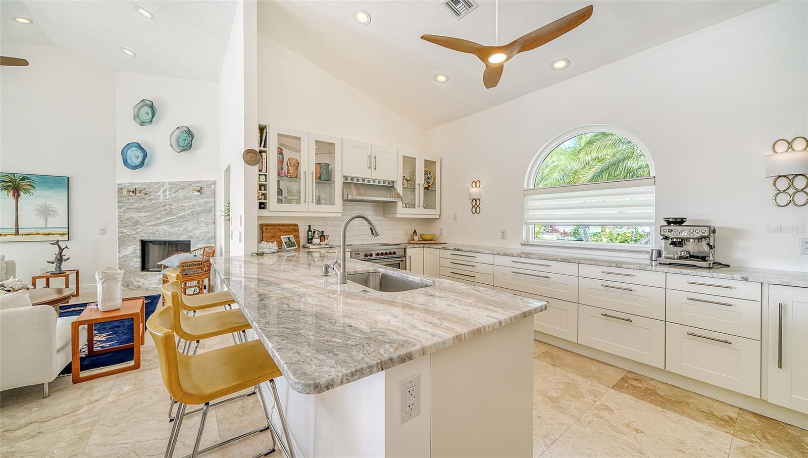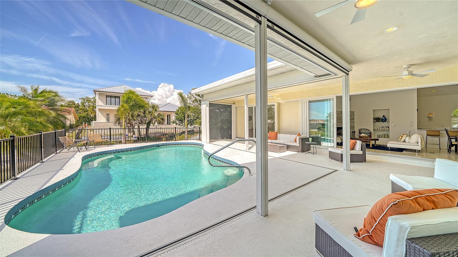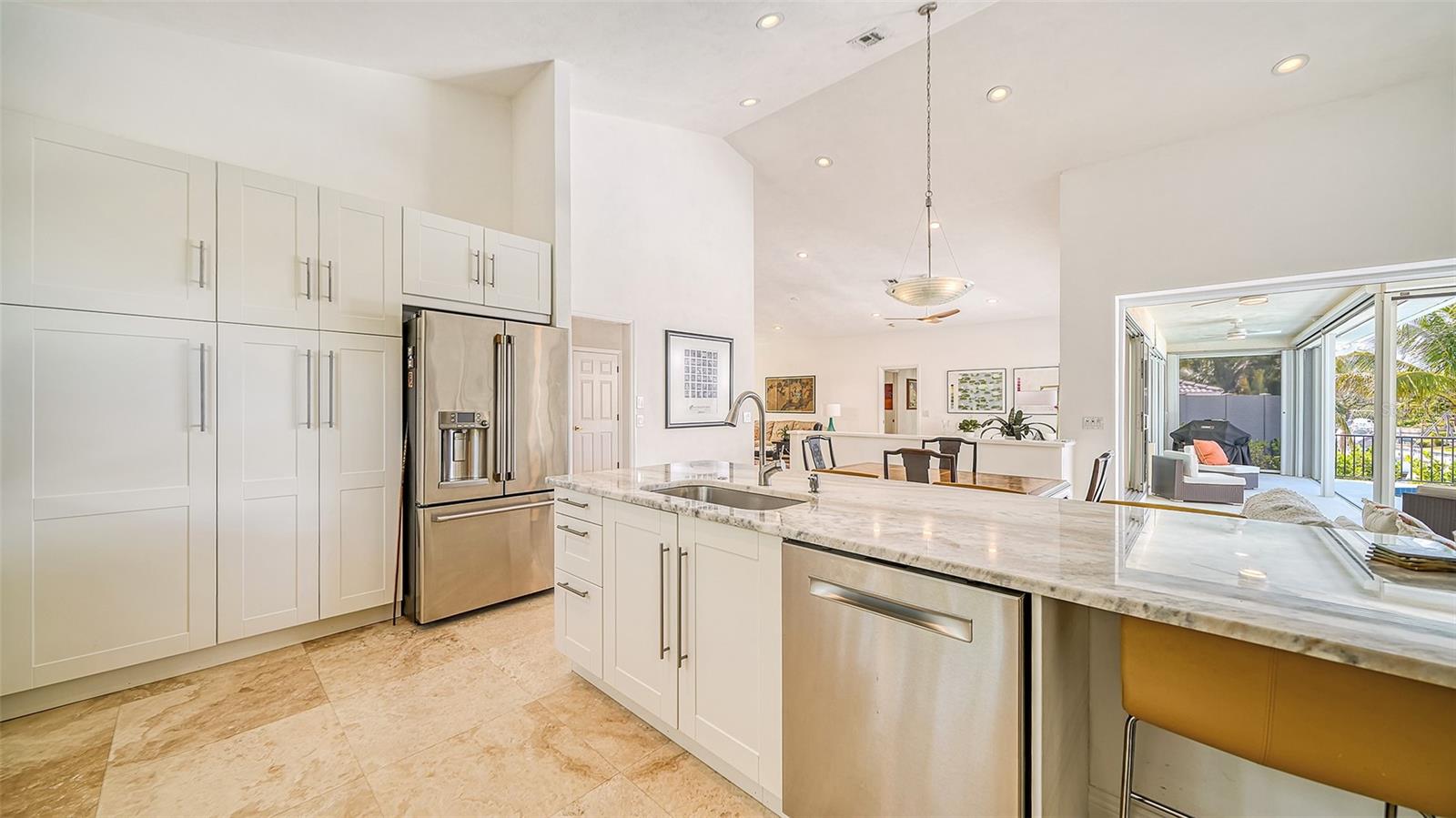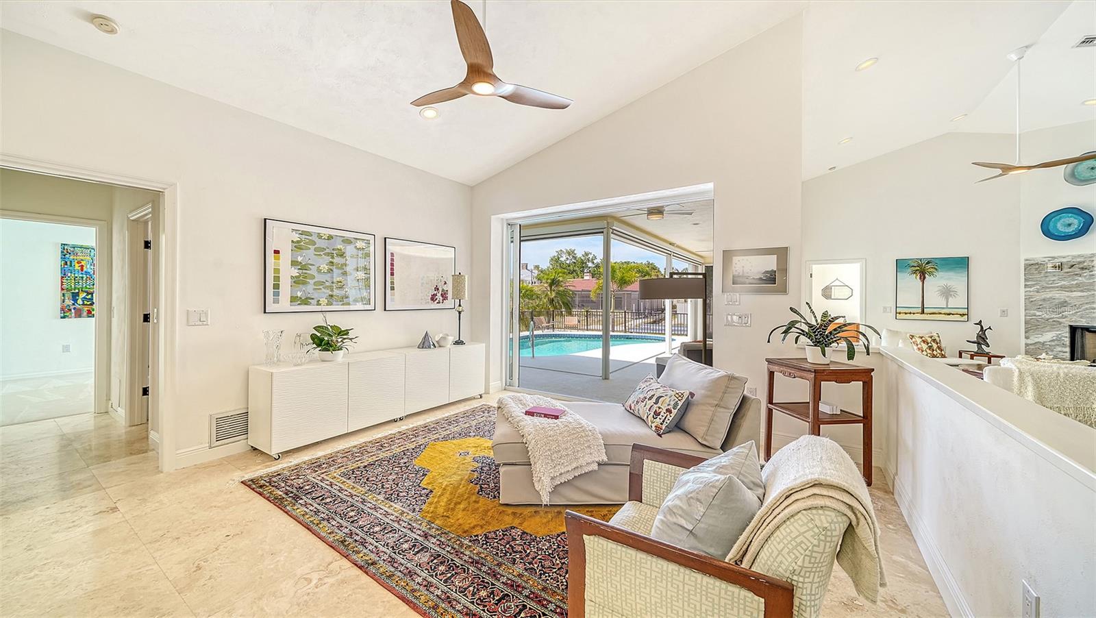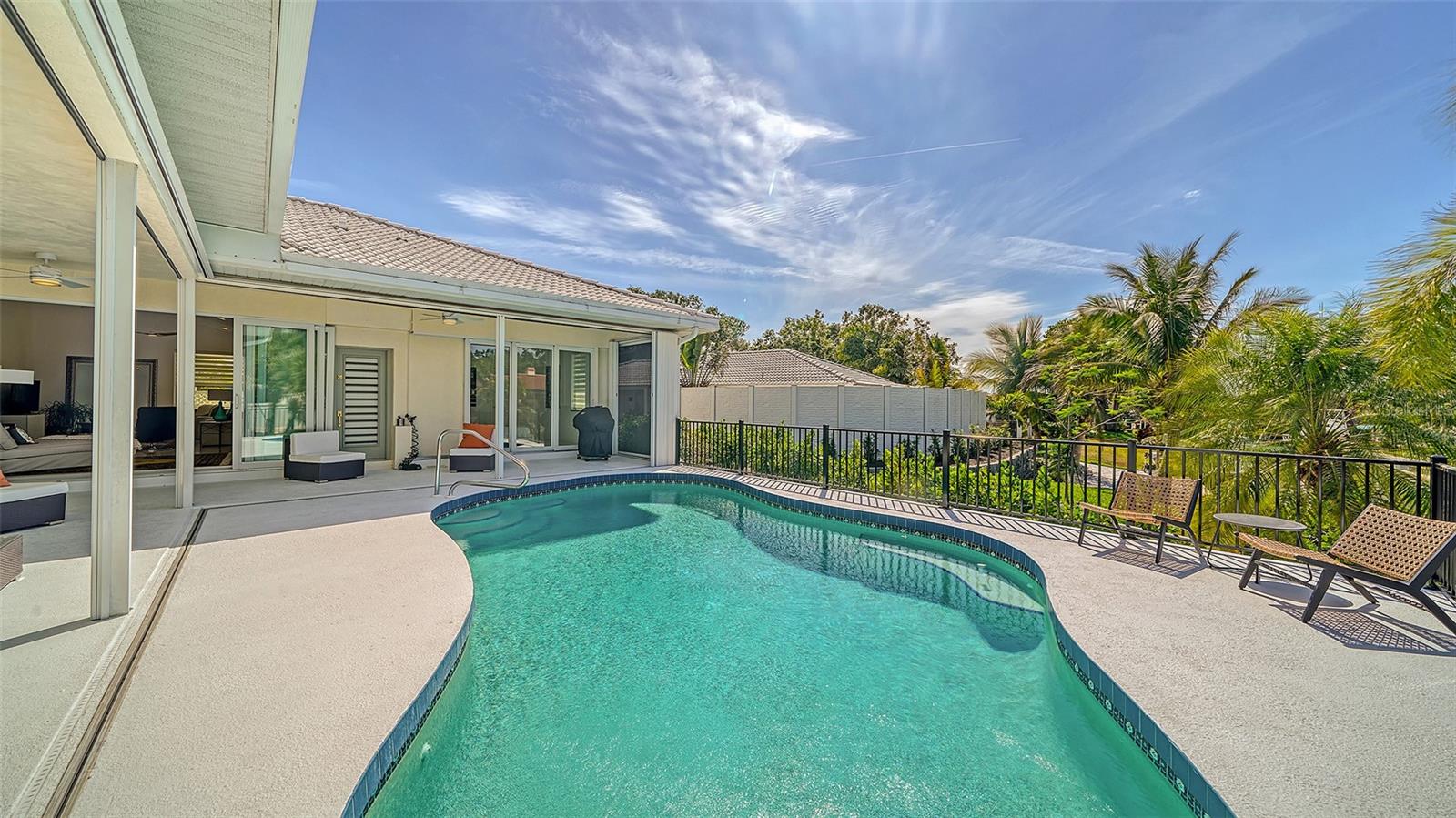Exceptional waterfront home in a tropical oasis on a dredged canal with boat dock just a stone's throw from the bay. Easy access NO FIXED BRIDGES to the Gulf. No HOA. No deed restrictions. Room for your camper and boats. This neighborhood is exploding in value. Around the corner from Nokomis Beach on Casey Key. So many luxury homes under construction on this street. This dazzling home is full of light with new Low-E impact windows and insulated sliders to catch the view. You will appreciate the comfortable floor plan. Relax by the pool overlooking your boat dock and enjoy the view from almost every room. Deck railing surround maximizes the view. Electronic remote-controlled solar shades afford privacy and give you the effect of a screened porch. They can retract at the touch of a button. The new gourmet kitchen will delight any cook. Top-of-the-line appliances with granite countertops. 36-inch Verona range with induction cooktop and convection oven. Luxurious primary suite has the longest views. Its en-suite bath has a new tiled glassed-in shower and an elegant new soaking tub for the spa experience. Dual sinks with luxurious vanity. The primary dressing room is enormous and newly fitted to accommodate any wardrobe. The open plan feels even more spacious with its soaring ceilings and new Philips HUE LED smart lighting. "Haiku" fans are sleek, all controlled by your mobile device. So many smart home features operate from anywhere. 24-by-24-inch travertine flooring is luxurious, easy-care and cool underfoot. Wood-burning fireplace has a grand marble surround. The two-bedroom guest wing overlooks the pool with the pool bath. It will be hard to run out of closet space in this home. The fourth bedroom is currently a home office connected to the half-bath. A large laundry room with separate entrance. Garage over 1,000 square feet. So much room for hobbies or up to five cars. There's even a home gym included. The landscape architect-designed, Florida-friendly tropical gardens are curated to provide privacy for every room. You'll be delighted to find the waterfront grotto next to the dock. A cozy place to wait for your boat to come in! So many delights await. Call today to experience this exceptional property for yourself.