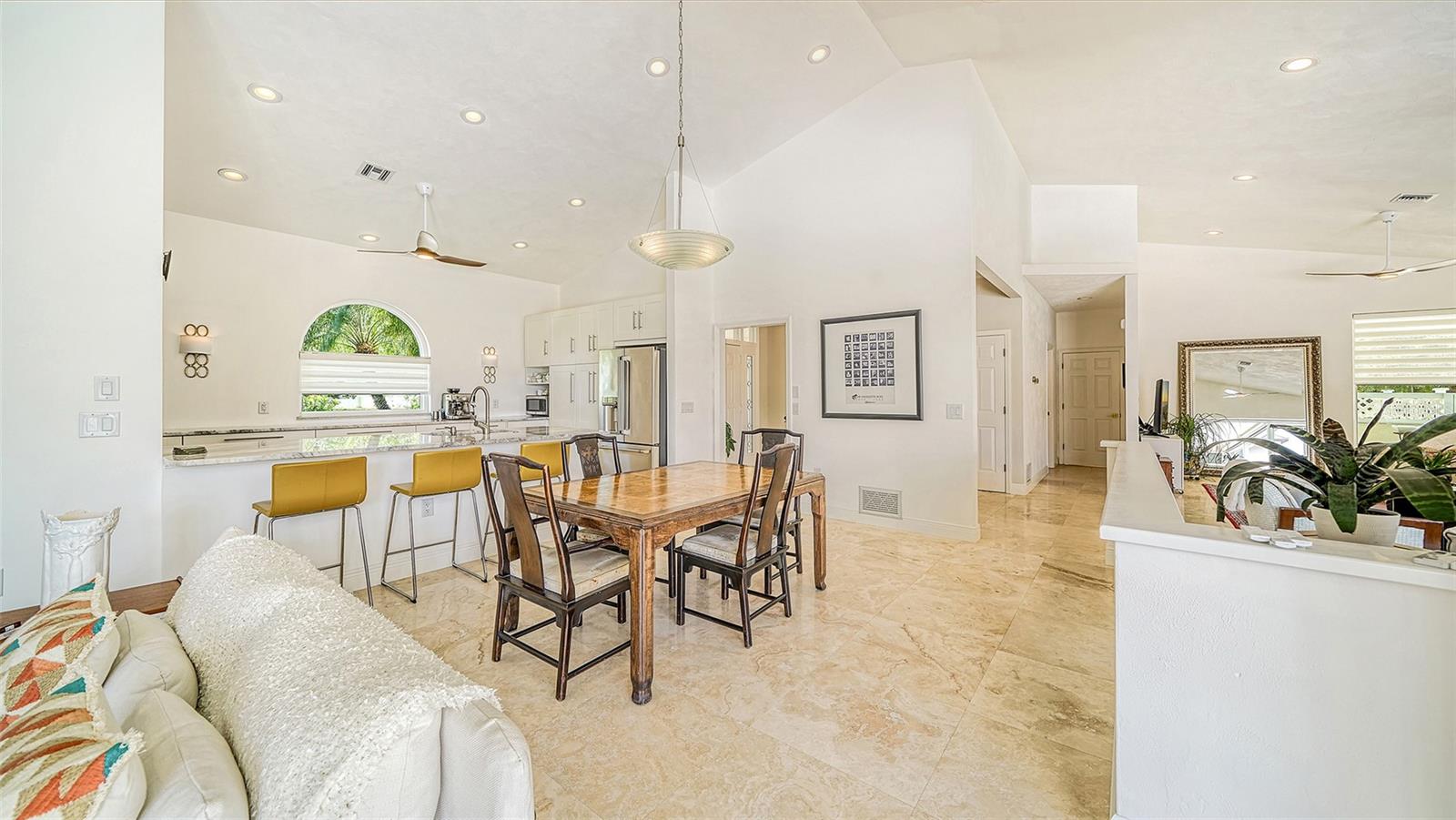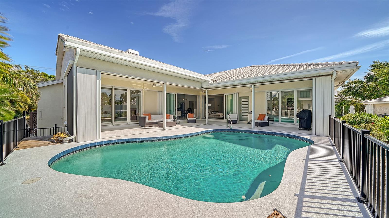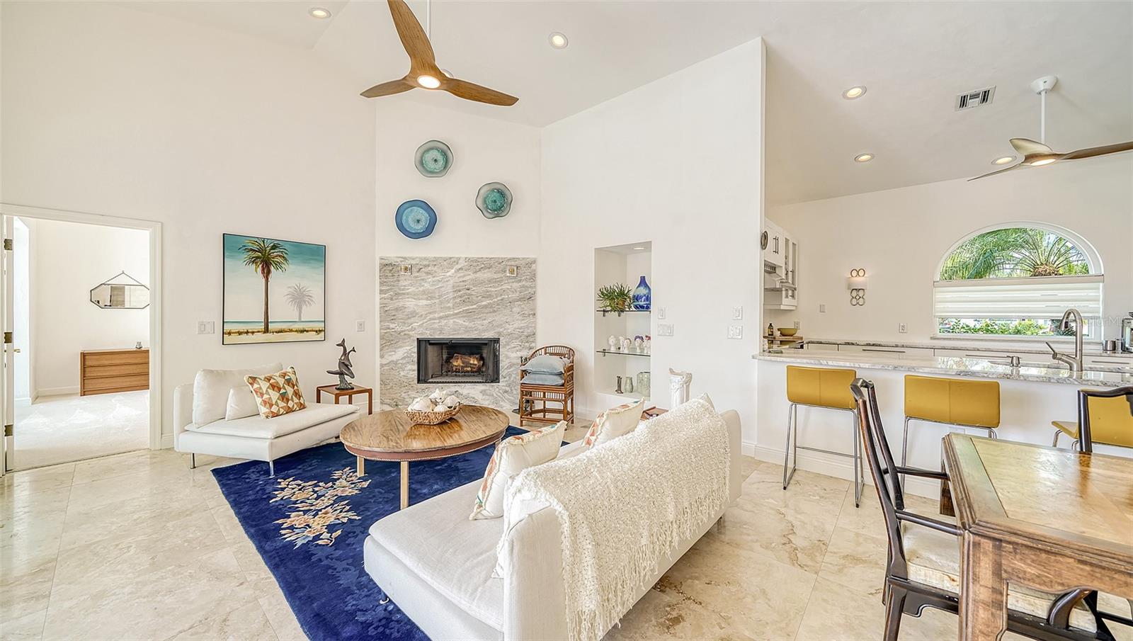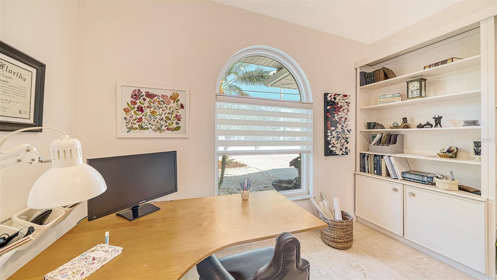 Exceptional waterfront home in a tropical oasis on a dredged canal with boat dock just a stone's throw from the bay. Easy access NO FIXED BRIDGES to the Gulf. No HOA. No deed restrictions. Room for your camper and boats. This neighborhood is exploding in value. Around the corner from Nokomis Beach on Casey Key. So many luxury homes under construction on this street. This dazzling home is full of light with new Low-E impact windows and insulated sliders to catch the view. You will appreciate the comfortable floor plan. Relax by the pool overlooking your boat dock and enjoy the view from almost every room. Deck railing surround maximizes the view. Electronic remote-controlled solar shades afford privacy and give you the effect of a screened porch. They can retract at the touch of a button. The new gourmet kitchen will delight any cook. Top-of-the-line appliances with granite countertops. 36-inch Verona range with induction cooktop and convection oven. Luxurious primary suite has the longest views. Its en-suite bath has a new tiled glassed-in shower and an elegant new soaking tub for the spa experience. Dual sinks with luxurious vanity. The primary dressing room is enormous and newly fitted to accommodate any wardrobe. The open plan feels even more spacious with its soaring ceilings and new Philips HUE LED smart lighting. "Haiku" fans are sleek, all controlled by your mobile device. So many smart home features operate from anywhere. 24-by-24-inch travertine flooring is luxurious, easy-care and cool underfoot. Wood-burning fireplace has a grand marble surround. The two-bedroom guest wing overlooks the pool with the pool bath. It will be hard to run out of closet space in this home. The fourth bedroom is currently a home office connected to the half-bath. A large laundry room with separate entrance. Garage over 1,000 square feet. So much room for hobbies or up to five cars. There's even a home gym included. The landscape architect-designed, Florida-friendly tropical gardens are curated to provide privacy for every room. You'll be delighted to find the waterfront grotto next to the dock. A cozy place to wait for your boat to come in! So many delights await. Call today to experience this exceptional property for yourself.