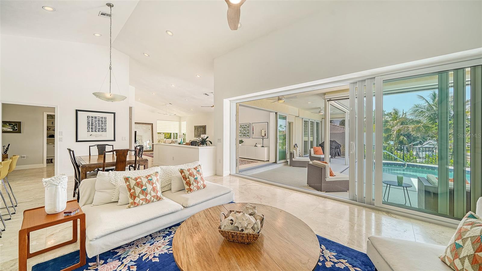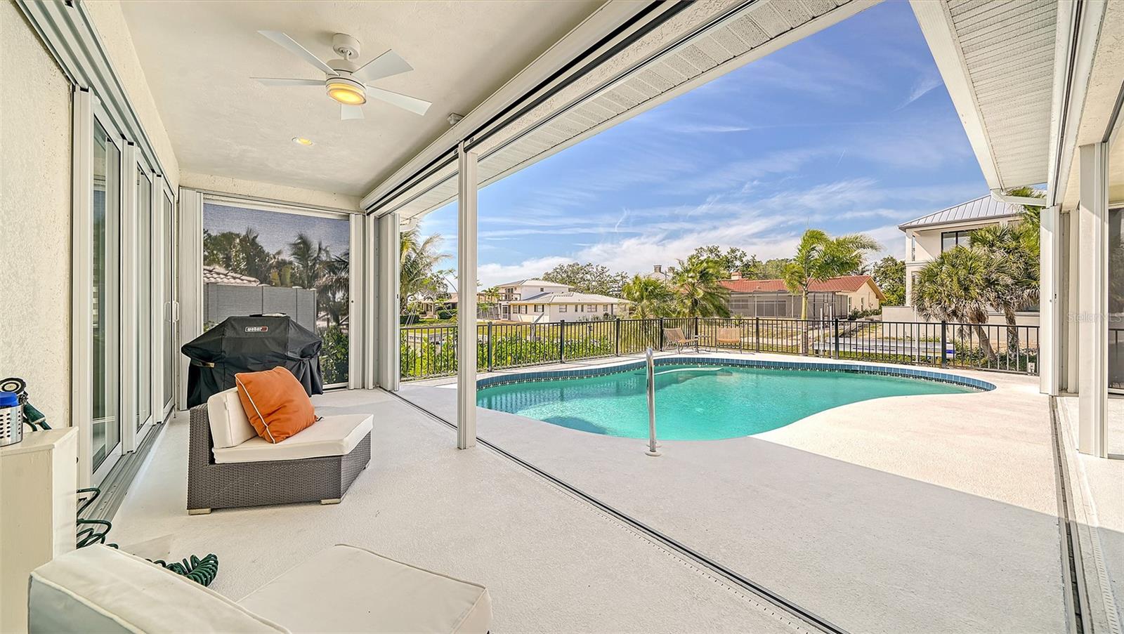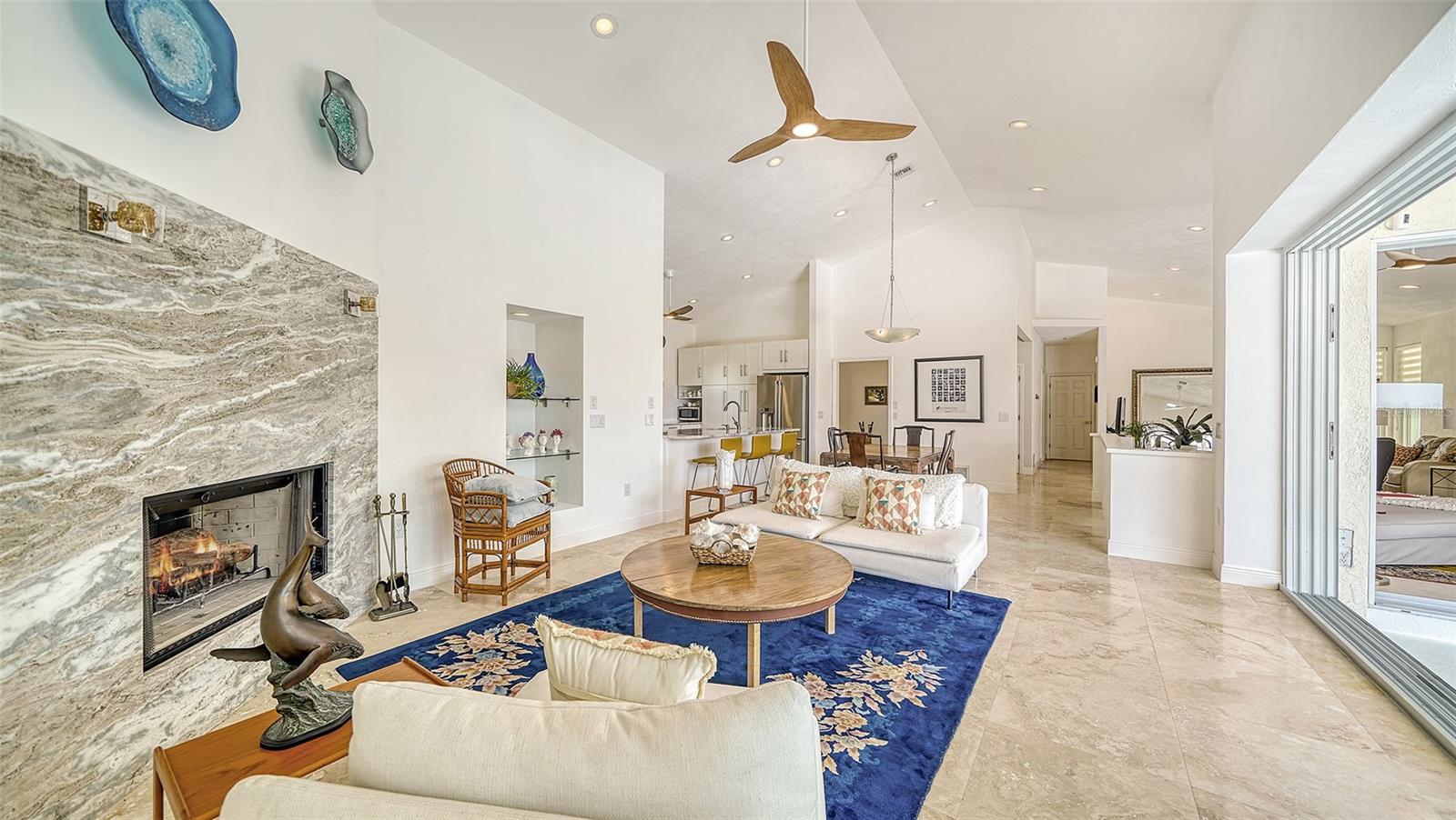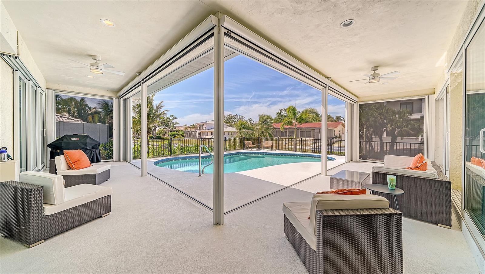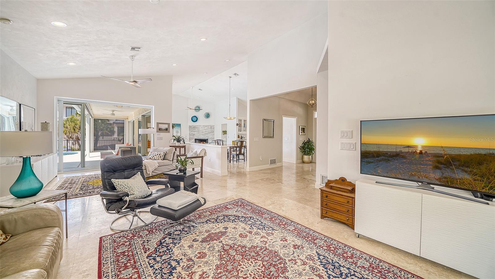 Exceptional waterfront home in a tropical oasis on a dredged canal with boat dock just a stone's throw from the bay. Easy access NO FIXED BRIDGES to the Gulf. No HOA. No deed restrictions. Room for your camper and boats. This neighborhood is exploding in value. Around the corner from Nokomis Beach on Casey Key. So many luxury homes under construction on this street. This dazzling home is full of light with new Low-E impact windows and insulated sliders to catch the view. You will appreciate the comfortable floor plan. Relax by the pool overlooking your boat dock and enjoy the view from almost every room. Deck railing surround maximizes the view. Electronic remote-controlled solar shades afford privacy and give you the effect of a screened porch. They can retract at the touch of a button. The new gourmet kitchen will delight any cook. Top-of-the-line appliances with granite countertops. 36-inch Verona range with induction cooktop and convection oven. Luxurious primary suite has the longest views. Its en-suite bath has a new tiled glassed-in shower and an elegant new soaking tub for the spa experience. Dual sinks with luxurious vanity. The primary dressing room is enormous and newly fitted to accommodate any wardrobe. The open plan feels even more spacious with its soaring ceilings and new Philips HUE LED smart lighting. "Haiku" fans are sleek, all controlled by your mobile device. So many smart home features operate from anywhere. 24-by-24-inch travertine flooring is luxurious, easy-care and cool underfoot. Wood-burning fireplace has a grand marble surround. The two-bedroom guest wing overlooks the pool with the pool bath. It will be hard to run out of closet space in this home. The fourth bedroom is currently a home office connected to the half-bath. A large laundry room with separate entrance. Garage over 1,000 square feet. So much room for hobbies or up to five cars. There's even a home gym included. The landscape architect-designed, Florida-friendly tropical gardens are curated to provide privacy for every room. You'll be delighted to find the waterfront grotto next to the dock. A cozy place to wait for your boat to come in! So many delights await. Call today to experience this exceptional property for yourself.