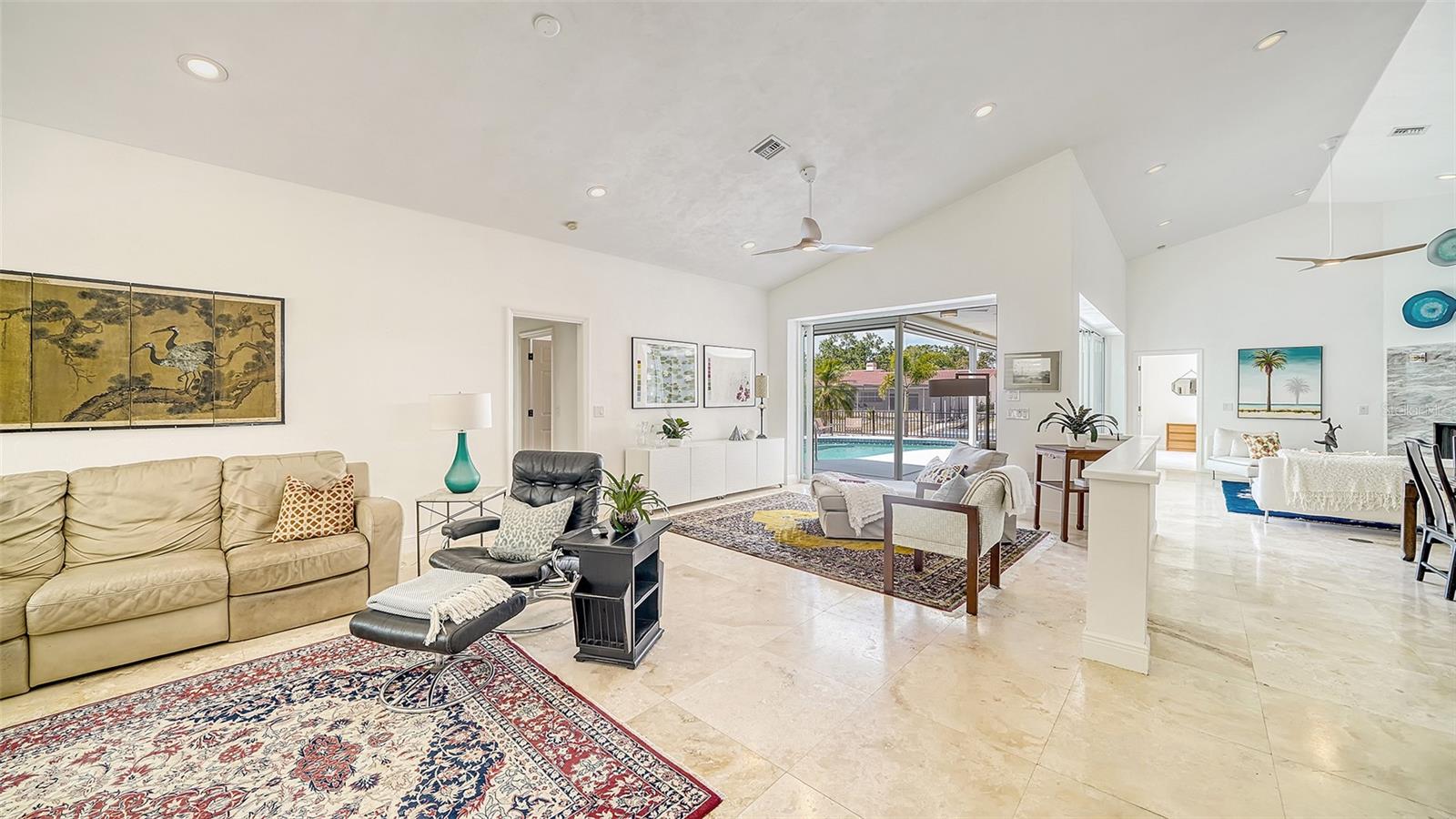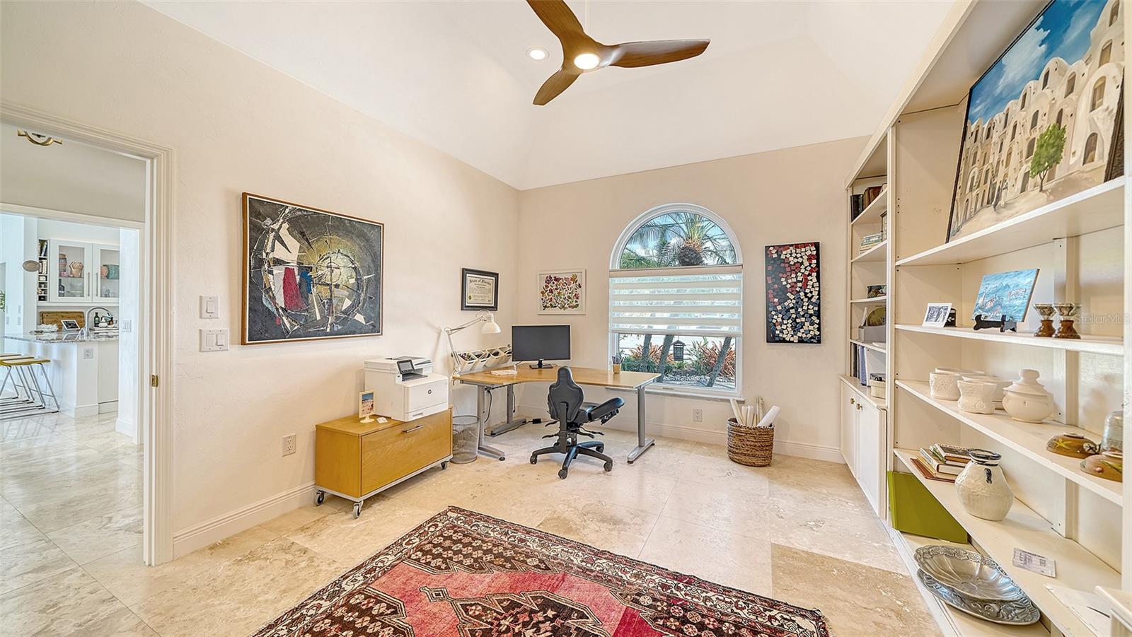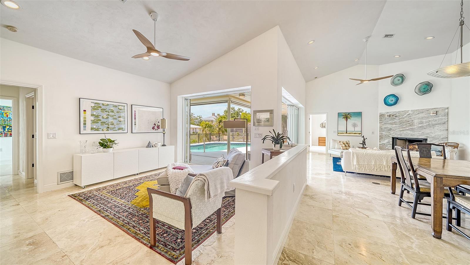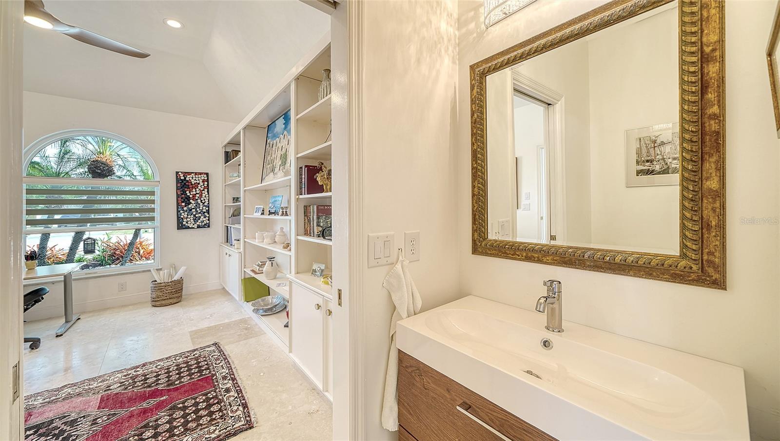 Exceptional waterfront home in a tropical oasis on a dredged canal with boat dock just a stone's throw from the bay. Easy access NO FIXED BRIDGES to the Gulf. No HOA. No deed restrictions. Room for your camper and boats. This neighborhood is exploding in value. Around the corner from Nokomis Beach on Casey Key. So many luxury homes under construction on this street. This dazzling home is full of light with new Low-E impact windows and insulated sliders to catch the view. You will appreciate the comfortable floor plan. Relax by the pool overlooking your boat dock and enjoy the view from almost every room. Deck railing surround maximizes the view. Electronic remote-controlled solar shades afford privacy and give you the effect of a screened porch. They can retract at the touch of a button. The new gourmet kitchen will delight any cook. Top-of-the-line appliances with granite countertops. 36-inch Verona range with induction cooktop and convection oven. Luxurious primary suite has the longest views. Its en-suite bath has a new tiled glassed-in shower and an elegant new soaking tub for the spa experience. Dual sinks with luxurious vanity. The primary dressing room is enormous and newly fitted to accommodate any wardrobe. The open plan feels even more spacious with its soaring ceilings and new Philips HUE LED smart lighting. "Haiku" fans are sleek, all controlled by your mobile device. So many smart home features operate from anywhere. 24-by-24-inch travertine flooring is luxurious, easy-care and cool underfoot. Wood-burning fireplace has a grand marble surround. The two-bedroom guest wing overlooks the pool with the pool bath. It will be hard to run out of closet space in this home. The fourth bedroom is currently a home office connected to the half-bath. A large laundry room with separate entrance. Garage over 1,000 square feet. So much room for hobbies or up to five cars. There's even a home gym included. The landscape architect-designed, Florida-friendly tropical gardens are curated to provide privacy for every room. You'll be delighted to find the waterfront grotto next to the dock. A cozy place to wait for your boat to come in! So many delights await. Call today to experience this exceptional property for yourself.