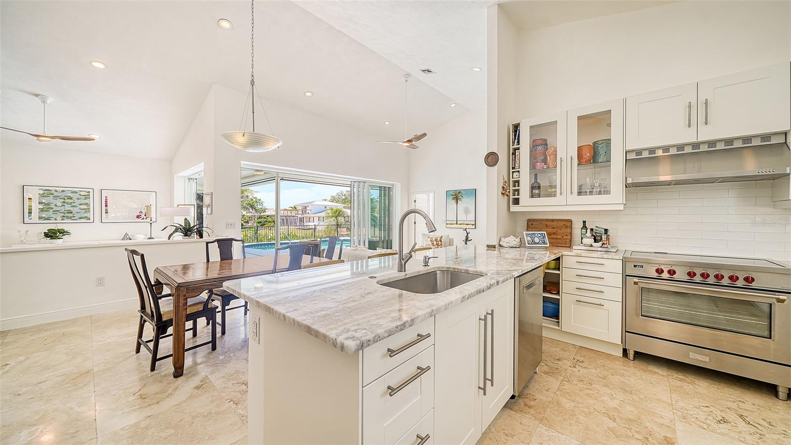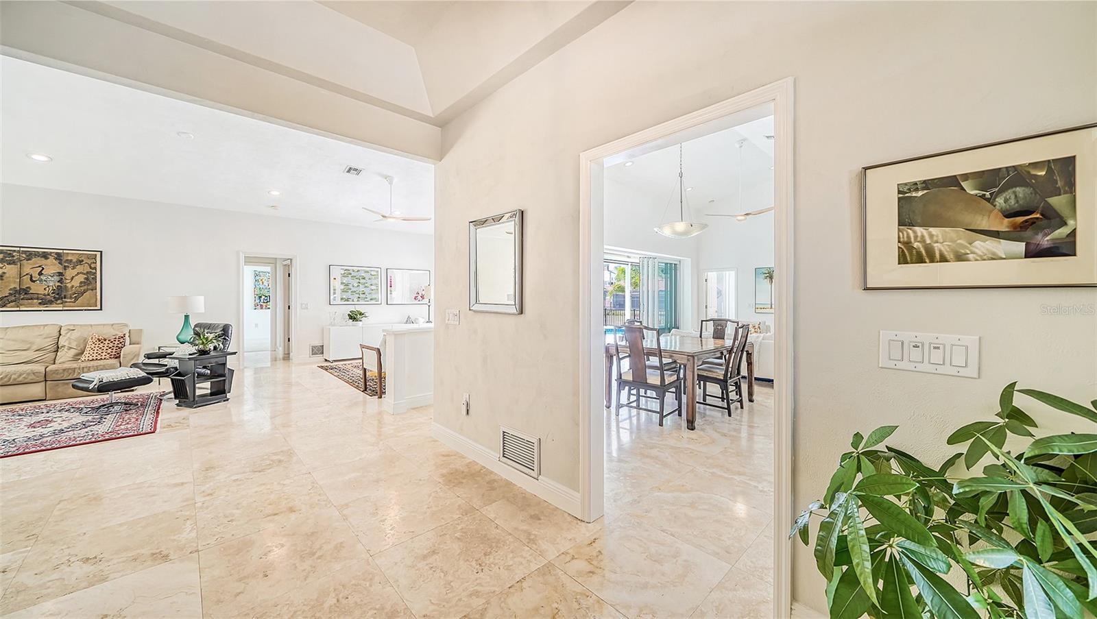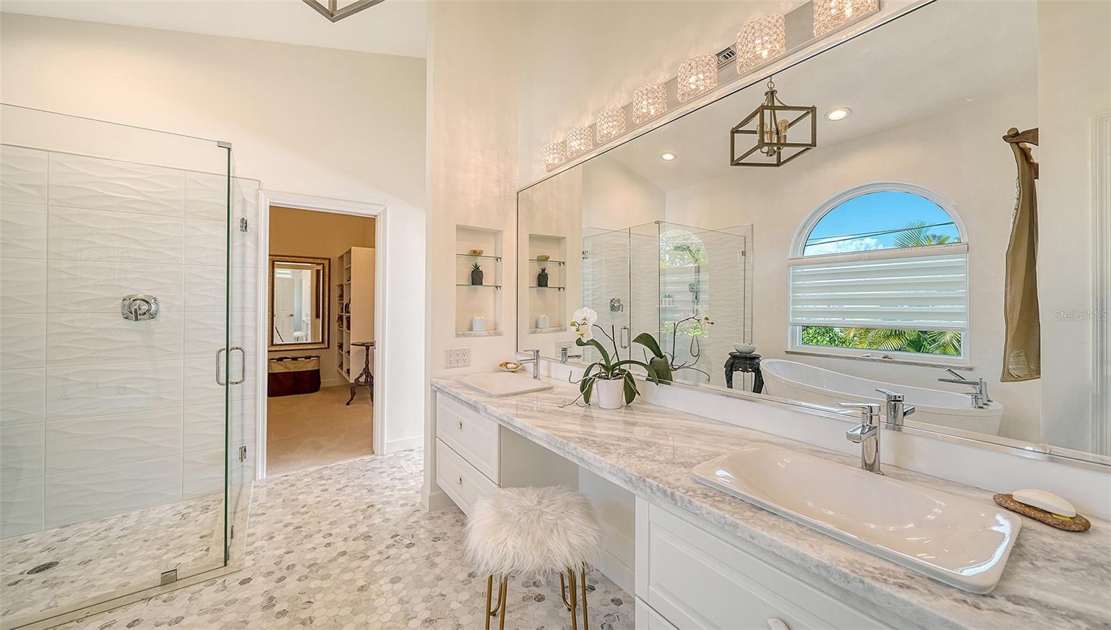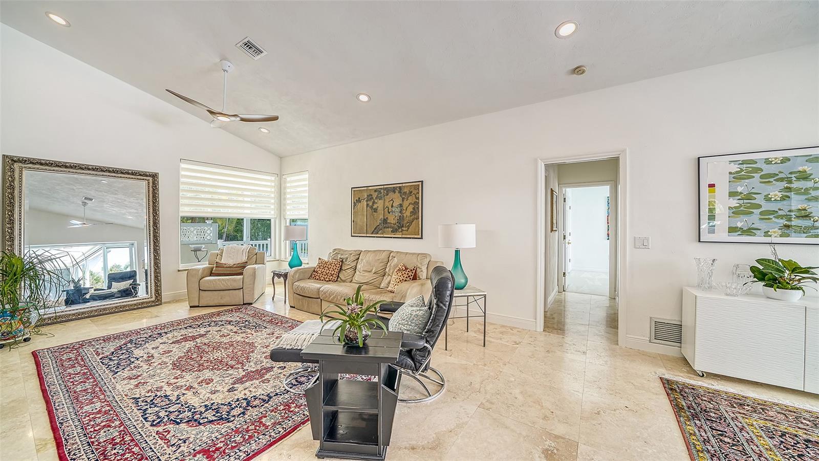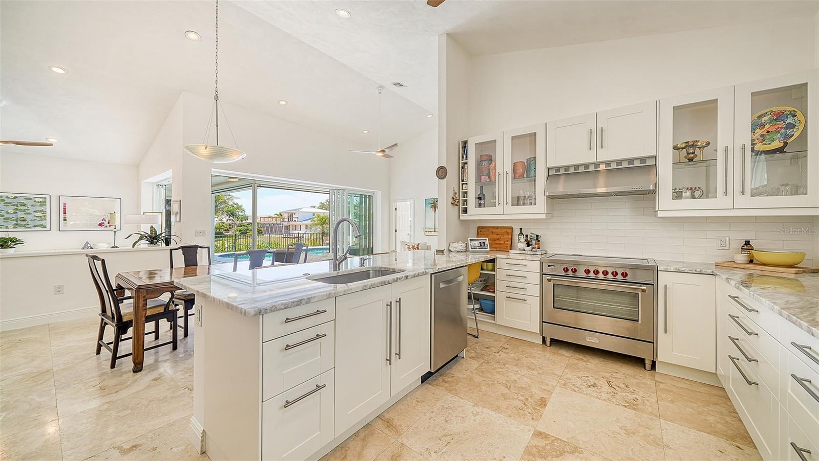 Exceptional waterfront home in a tropical oasis on a dredged canal with boat dock just a stone's throw from the bay. Easy access NO FIXED BRIDGES to the Gulf. No HOA. No deed restrictions. Room for your camper and boats. This neighborhood is exploding in value. Around the corner from Nokomis Beach on Casey Key. So many luxury homes under construction on this street. This dazzling home is full of light with new Low-E impact windows and insulated sliders to catch the view. You will appreciate the comfortable floor plan. Relax by the pool overlooking your boat dock and enjoy the view from almost every room. Deck railing surround maximizes the view. Electronic remote-controlled solar shades afford privacy and give you the effect of a screened porch. They can retract at the touch of a button. The new gourmet kitchen will delight any cook. Top-of-the-line appliances with granite countertops. 36-inch Verona range with induction cooktop and convection oven. Luxurious primary suite has the longest views. Its en-suite bath has a new tiled glassed-in shower and an elegant new soaking tub for the spa experience. Dual sinks with luxurious vanity. The primary dressing room is enormous and newly fitted to accommodate any wardrobe. The open plan feels even more spacious with its soaring ceilings and new Philips HUE LED smart lighting. "Haiku" fans are sleek, all controlled by your mobile device. So many smart home features operate from anywhere. 24-by-24-inch travertine flooring is luxurious, easy-care and cool underfoot. Wood-burning fireplace has a grand marble surround. The two-bedroom guest wing overlooks the pool with the pool bath. It will be hard to run out of closet space in this home. The fourth bedroom is currently a home office connected to the half-bath. A large laundry room with separate entrance. Garage over 1,000 square feet. So much room for hobbies or up to five cars. There's even a home gym included. The landscape architect-designed, Florida-friendly tropical gardens are curated to provide privacy for every room. You'll be delighted to find the waterfront grotto next to the dock. A cozy place to wait for your boat to come in! So many delights await. Call today to experience this exceptional property for yourself.