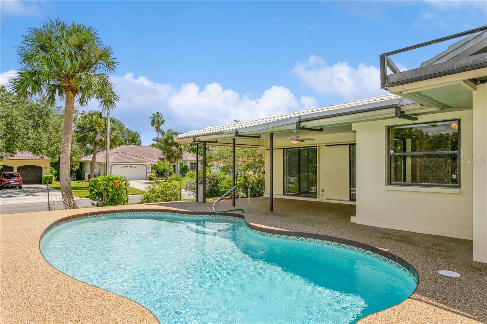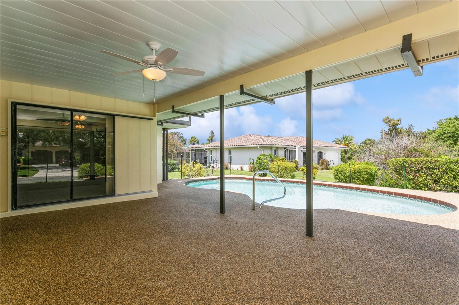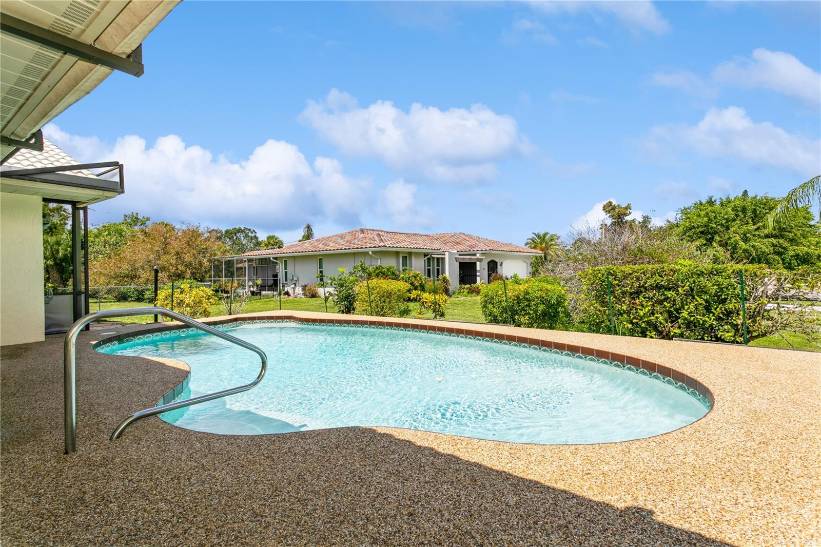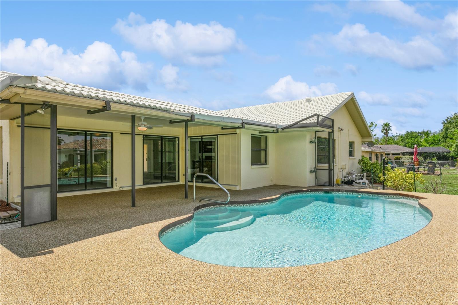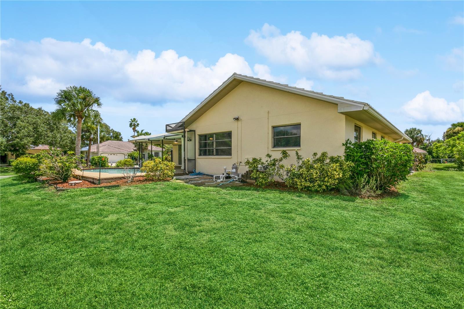 Pool Home! Enjoy the good life in this 3 bed 2 bath home located in the community of Sorrento East. This well-positioned deed restricted neighborhood makes both Venice and Sarasota easily accessible. The neighborhood has a welcoming and traditional atmosphere, and it's notable for having minimal Homeowners Association (HOA) fees and no Community Development District (CDD) fees. The house sits on a corner lot and features a pool that can be enjoyed from the spacious lanai. The REPLACEMENT of LANAI, GUTTERS and SOFFIT DONE 2/2024! Almost 2000sf of living space with separate living, dining and family rooms as well as split bedrooms. There is even a LAUNDRY ROOM! The ENTIRE interior has been freshly PAINTED and all new CARPETING installed. The HVAC, REFRIGERATOR and DISHWASHER were replaced just last year. You will notice other updates like vanity and toilet in the master bath, kitchen counters/sink and garage door opener. Home RE-PIPED 2023. The close proximity to the unexpected oasis of Oscar Scherer State Park, adds to the natural beauty and recreational opportunities of the area. Enjoy the 15 miles of trails to walk or bike within the Park or jump on the Legacy Trail for more adventures to the North or South. If water is more your speed, go explore on a kayak or canoe. This is an ideal location with 4 miles to Nokomis Beach, 6 miles to Historic Venice Island and 14 miles to downtown Sarasota. Golf, dining, shopping and entertainment await - What an amazing opportunity for your full-time or seasonal residence! It's time to live your best life now!