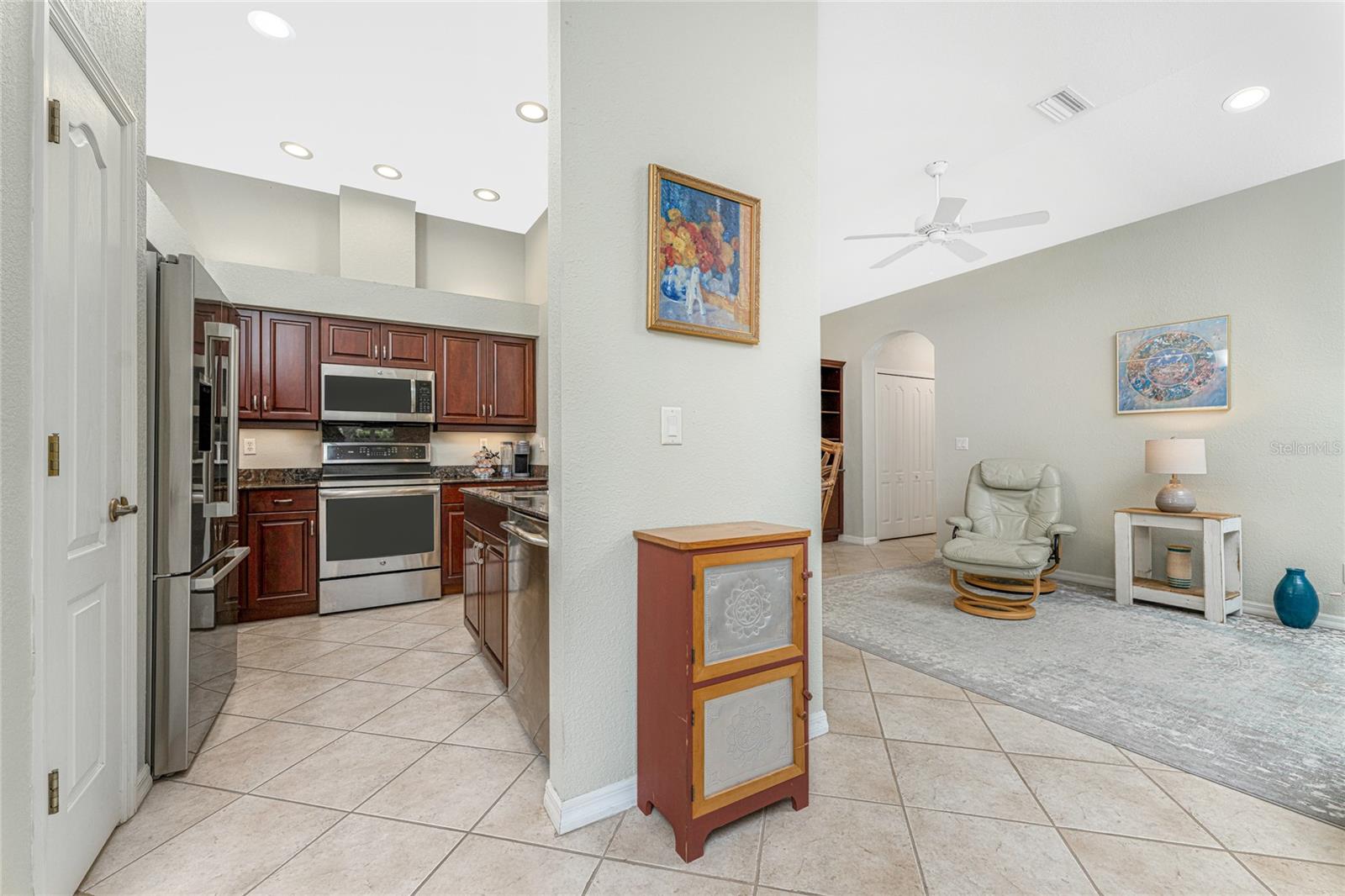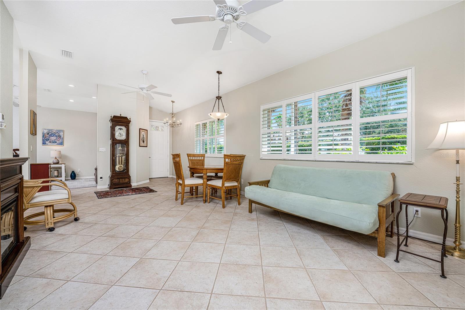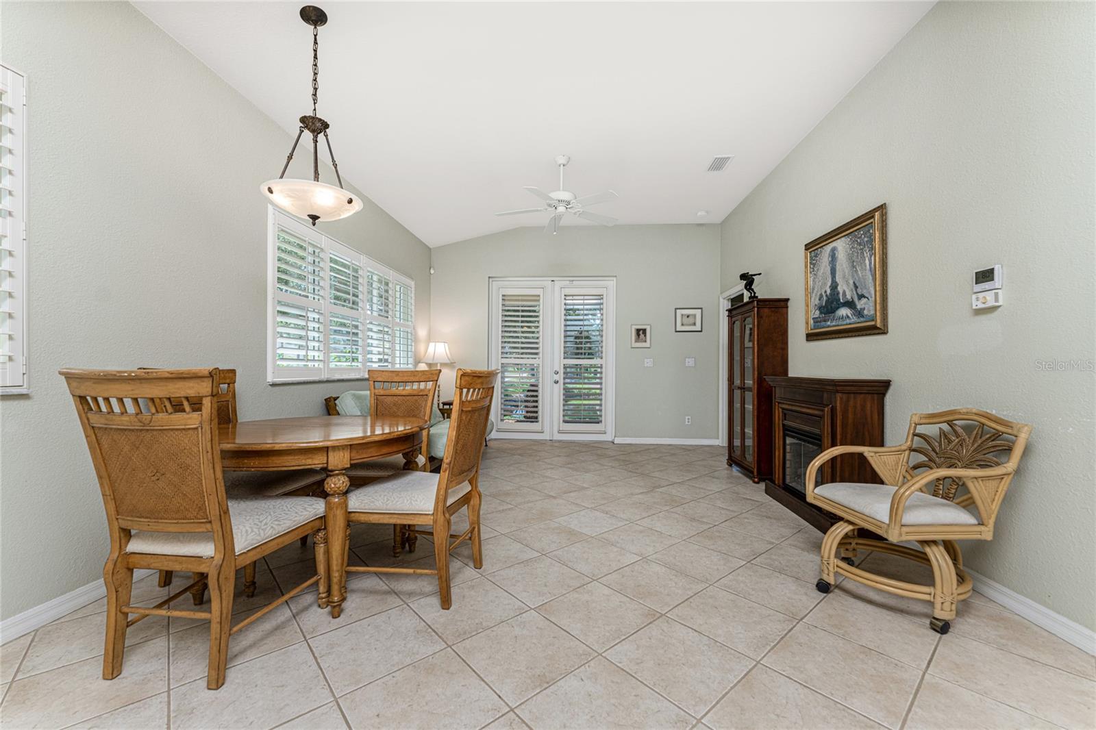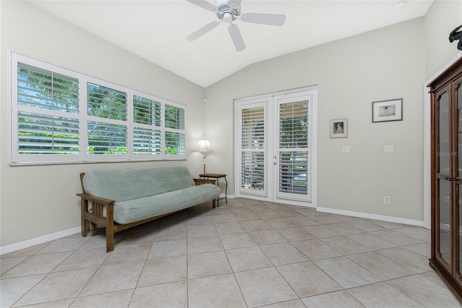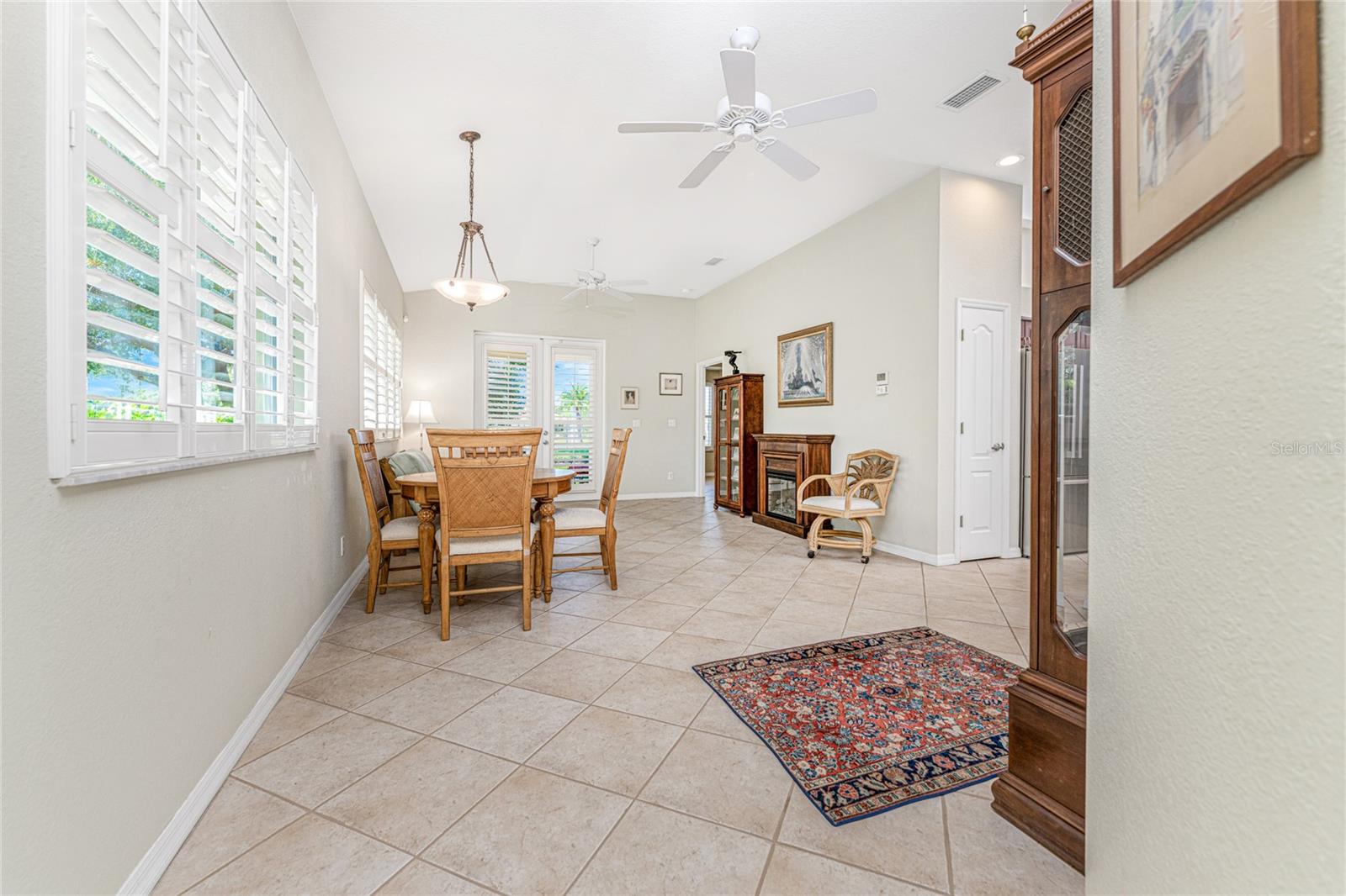 One or more photo(s) has been virtually staged. Previous Waterford model home is ready for a new owner! Throughout the home you will find tile on the diagonal, Plantation shutters, and an abundance of natural light. Model home upgraded kitchen cabinets with slide-outs, including the pantry, custom built shelving in the master closet, built-in cabinets in dining area, and built-in desk/office area off the guest bedroom. Breakfast bar and stainless steel appliances in the kitchen. The large master bedroom with on-suite and walk in closet with built in shelving is designed for lots of storage. Split bedroom plan allows privacy for you and your guests. Impact windows, including the French doors to the lanai. Southern exposure from the lanai is perfect for morning coffee. Water heater replaced 2023, AC replaced 2020, and 2 whole-house water filtration systems. Home has a Whole House Surge protector updated September 2023. Vista Del Lago is a small community of 50 homes with a low HOA, community pool, and recreation building for residents. Centrally locatedunder 4 miles to Venice Beach, beautiful Venice Ave on the Island with restaurants, shops, the Venice Theatre, a water park and the Gazebo which hosts Friday night bands. Attention bicycle riders - the 18+ mile Legacy Trail and the Venetian Waterway are less than 3 miles. Or play a round of golf at one of the many local courses.