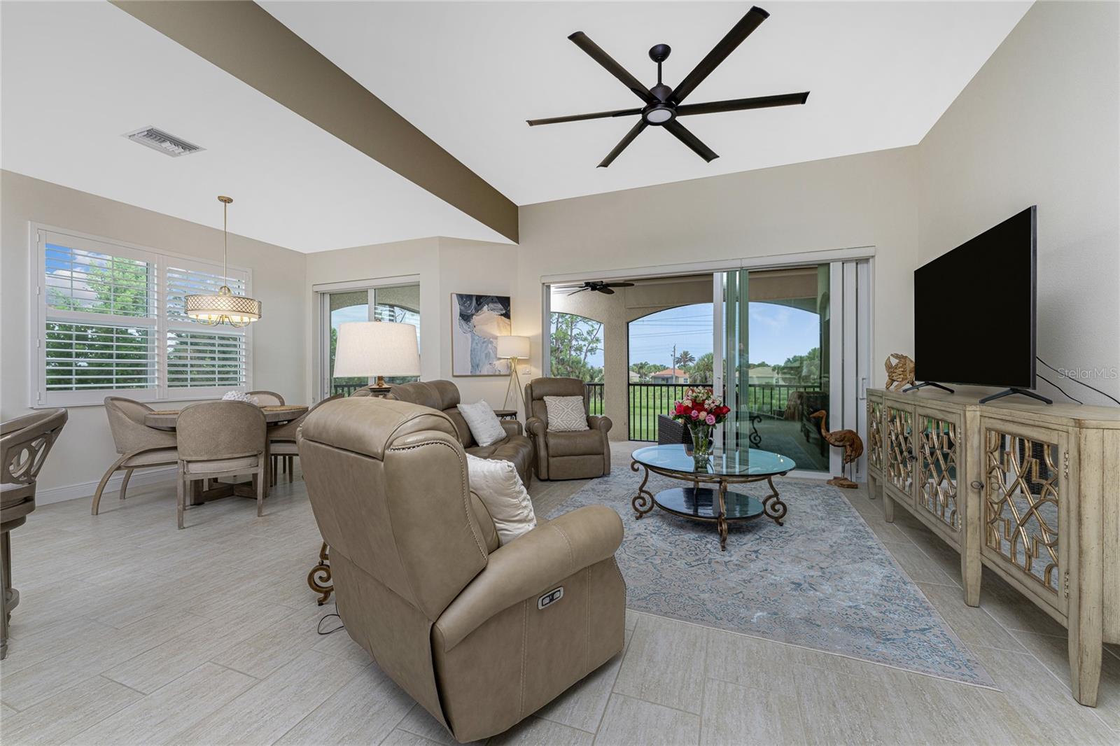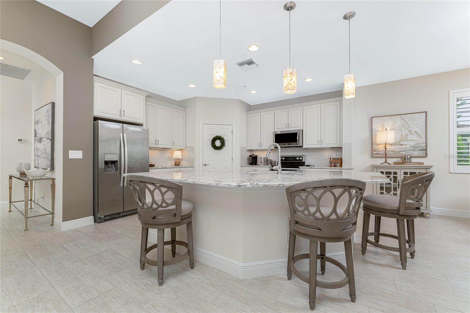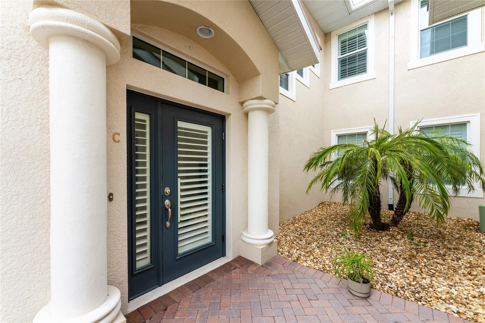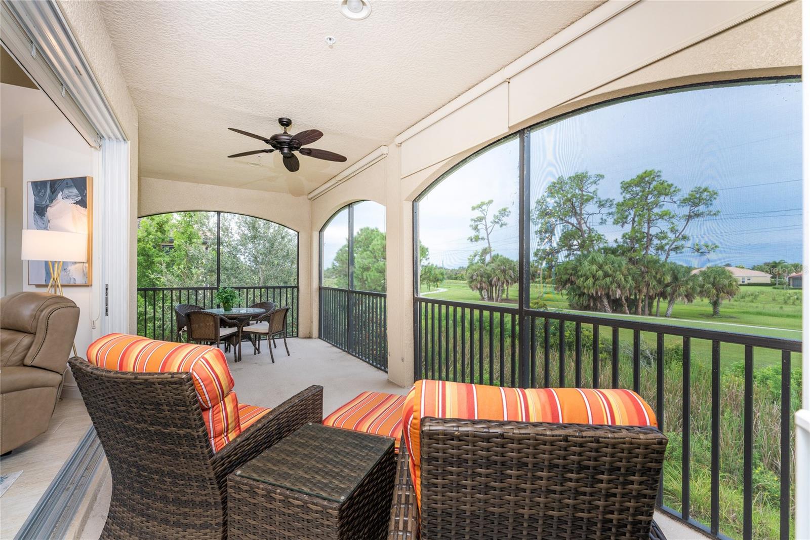 Experience this Exceptional WCI Built Carriage home - Freshly Painted Exterior December 2023 nestled within the Venetian Golf & River Club, boasting expansive views of the community and golf course. A charming courtyard serves as your gateway to this MAINTENANCE FREE home. CONDO FEES ARE PAID UP THROUGH 2024! Inside, you'll be welcomed by the convenience of a private elevator or a gracefully designed staircase leading you to a VERY OPEN and FUNCTIONAL 2,300 sq. ft. floor plan. MOST OF THE FURNITURE AND FURNISHINGS INCLUDING ITEMS IN KITCHEN ARE AVAILABLE making this condo ready and just waiting you! THREE BEDROOMS and two full baths, a great room with sliders overlooking the golf course and the large screened lanai. A cooks kitchen with lots of granite counters and beautiful tiled backsplash, state of the art cabinetry with task lighting, stainless steel appliances all with open views to the great room, dining area and the golf course beyond. A few of the upgraded features include the elegant plantation shutters, convenient roll-down sun screens, rich tile wood plank flooring, designer fixtures, and fans, a water softening system, and high-impact windows and sliders throughout. The primary living area exudes an open layout, making hosting gatherings a delightful affair for memorable moments with loved ones. Moreover, a private flex room awaits, ready to serve as a cozy TV room or a versatile home office/den. You'll also find a generously sized laundry room replete with a utility sink and ample storage cabinets, showcasing meticulous attention to detail at every turn. Designed with precision and care, every step within this home promises an enjoyable experience. Outside your door, the Venetian and Golf and River Club features many fine amenities: an 18-hole championship golf course, large, heated pool and lap pool, six Har-Tru tennis courts, a nature trail, first class fitness center and exercise room with classes. The River Club also boasts a poolside Tiki Bar and fine dining in its restaurant. All of this and only a short drive to the best of Gulf Coast beaches, attractions of downtown Venice and the reassurance of the services offered by the newly completed renowned Sarasota Memorial Hospital.
