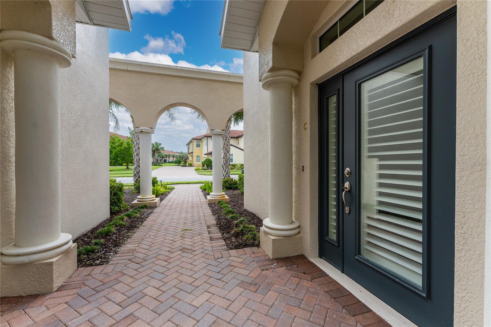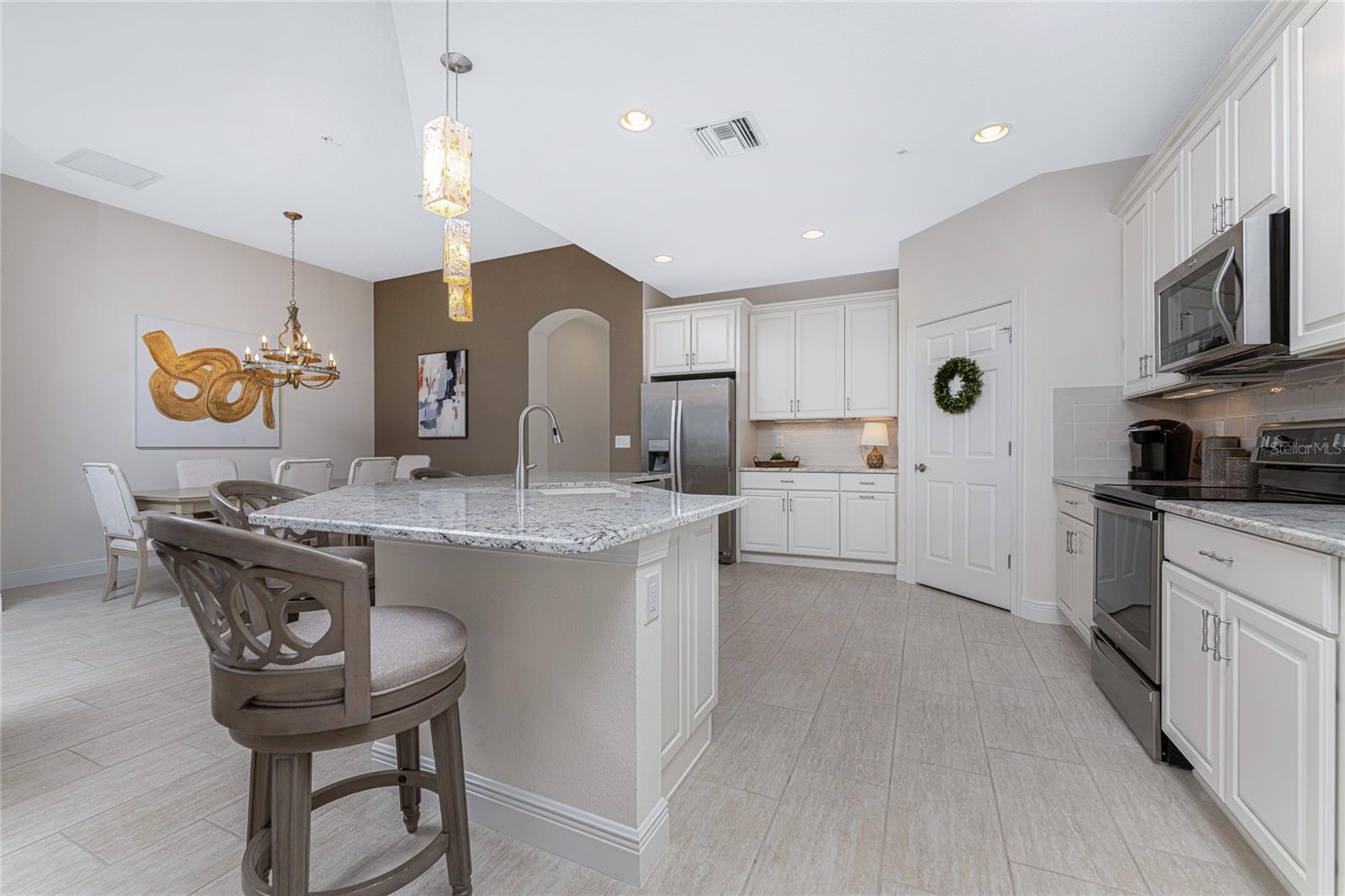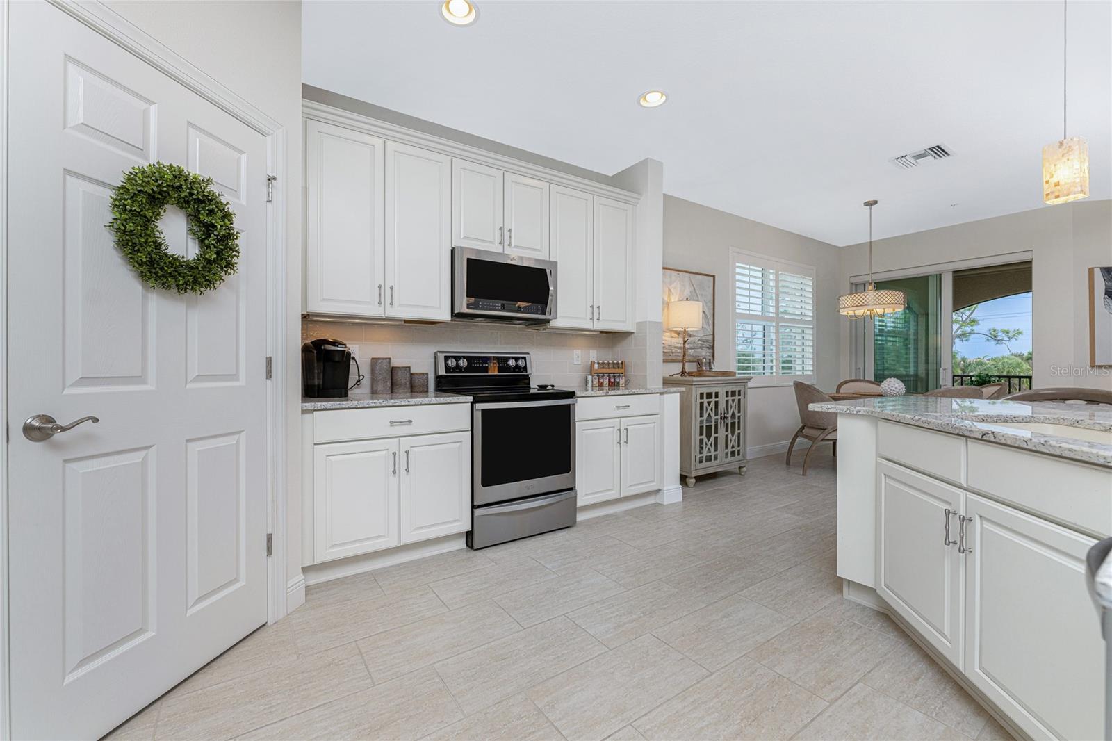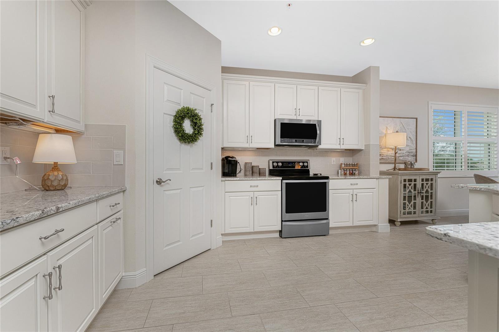 Experience this Exceptional WCI Built Carriage home - Freshly Painted Exterior December 2023 nestled within the Venetian Golf & River Club, boasting expansive views of the community and golf course. A charming courtyard serves as your gateway to this MAINTENANCE FREE home. CONDO FEES ARE PAID UP THROUGH 2024! Inside, you'll be welcomed by the convenience of a private elevator or a gracefully designed staircase leading you to a VERY OPEN and FUNCTIONAL 2,300 sq. ft. floor plan. MOST OF THE FURNITURE AND FURNISHINGS INCLUDING ITEMS IN KITCHEN ARE AVAILABLE making this condo ready and just waiting you! THREE BEDROOMS and two full baths, a great room with sliders overlooking the golf course and the large screened lanai. A cooks kitchen with lots of granite counters and beautiful tiled backsplash, state of the art cabinetry with task lighting, stainless steel appliances all with open views to the great room, dining area and the golf course beyond. A few of the upgraded features include the elegant plantation shutters, convenient roll-down sun screens, rich tile wood plank flooring, designer fixtures, and fans, a water softening system, and high-impact windows and sliders throughout. The primary living area exudes an open layout, making hosting gatherings a delightful affair for memorable moments with loved ones. Moreover, a private flex room awaits, ready to serve as a cozy TV room or a versatile home office/den. You'll also find a generously sized laundry room replete with a utility sink and ample storage cabinets, showcasing meticulous attention to detail at every turn. Designed with precision and care, every step within this home promises an enjoyable experience. Outside your door, the Venetian and Golf and River Club features many fine amenities: an 18-hole championship golf course, large, heated pool and lap pool, six Har-Tru tennis courts, a nature trail, first class fitness center and exercise room with classes. The River Club also boasts a poolside Tiki Bar and fine dining in its restaurant. All of this and only a short drive to the best of Gulf Coast beaches, attractions of downtown Venice and the reassurance of the services offered by the newly completed renowned Sarasota Memorial Hospital.