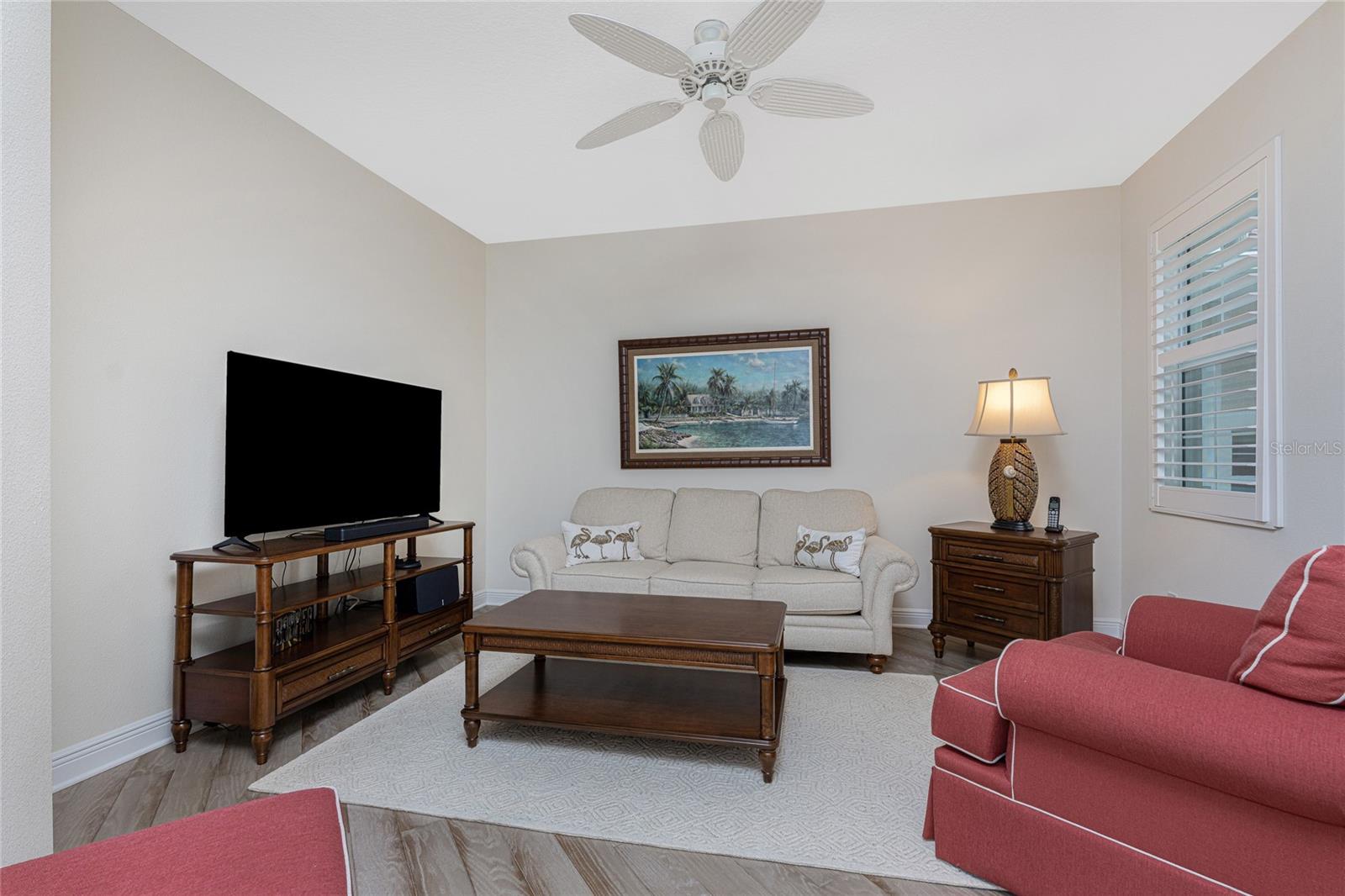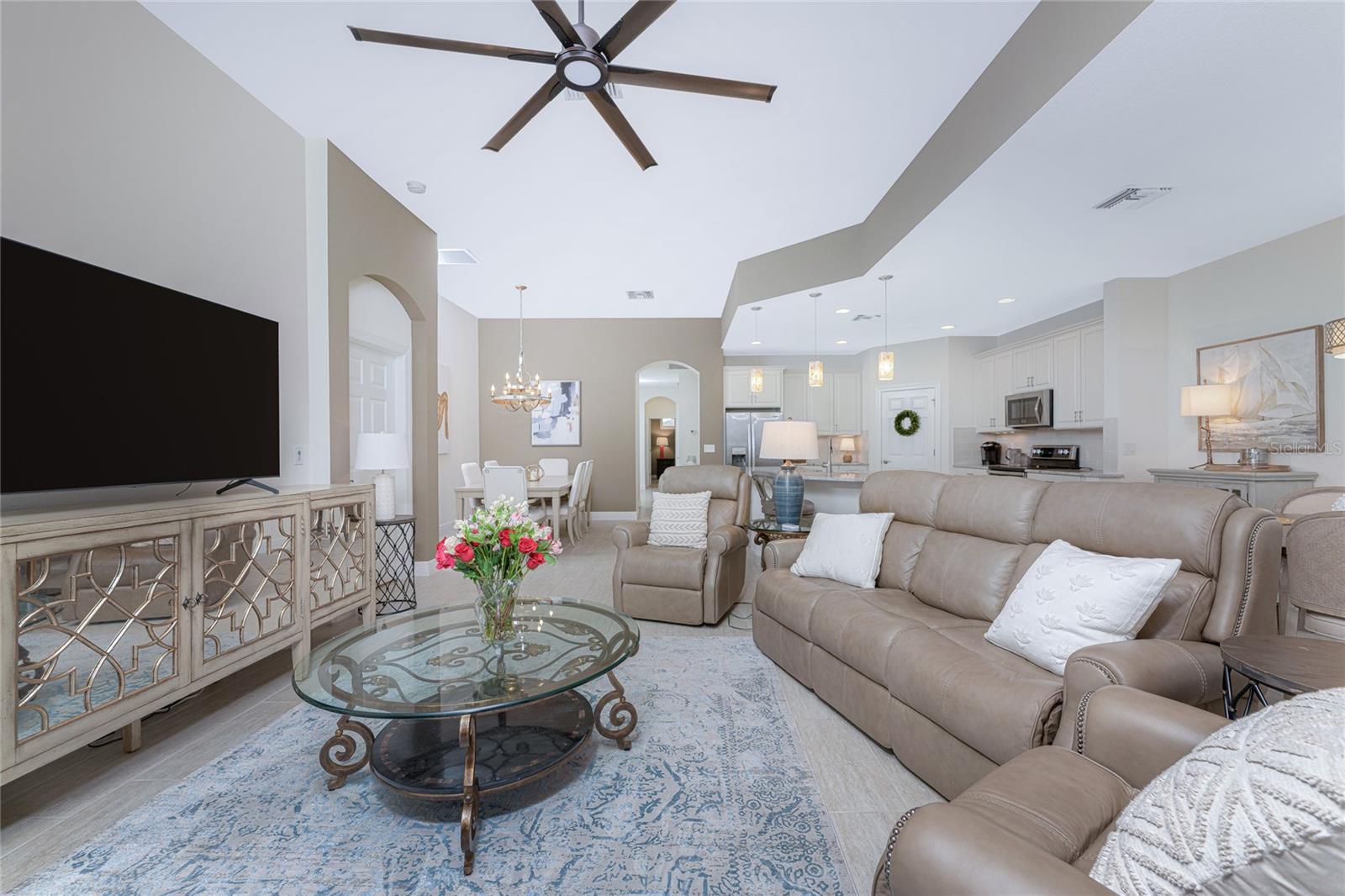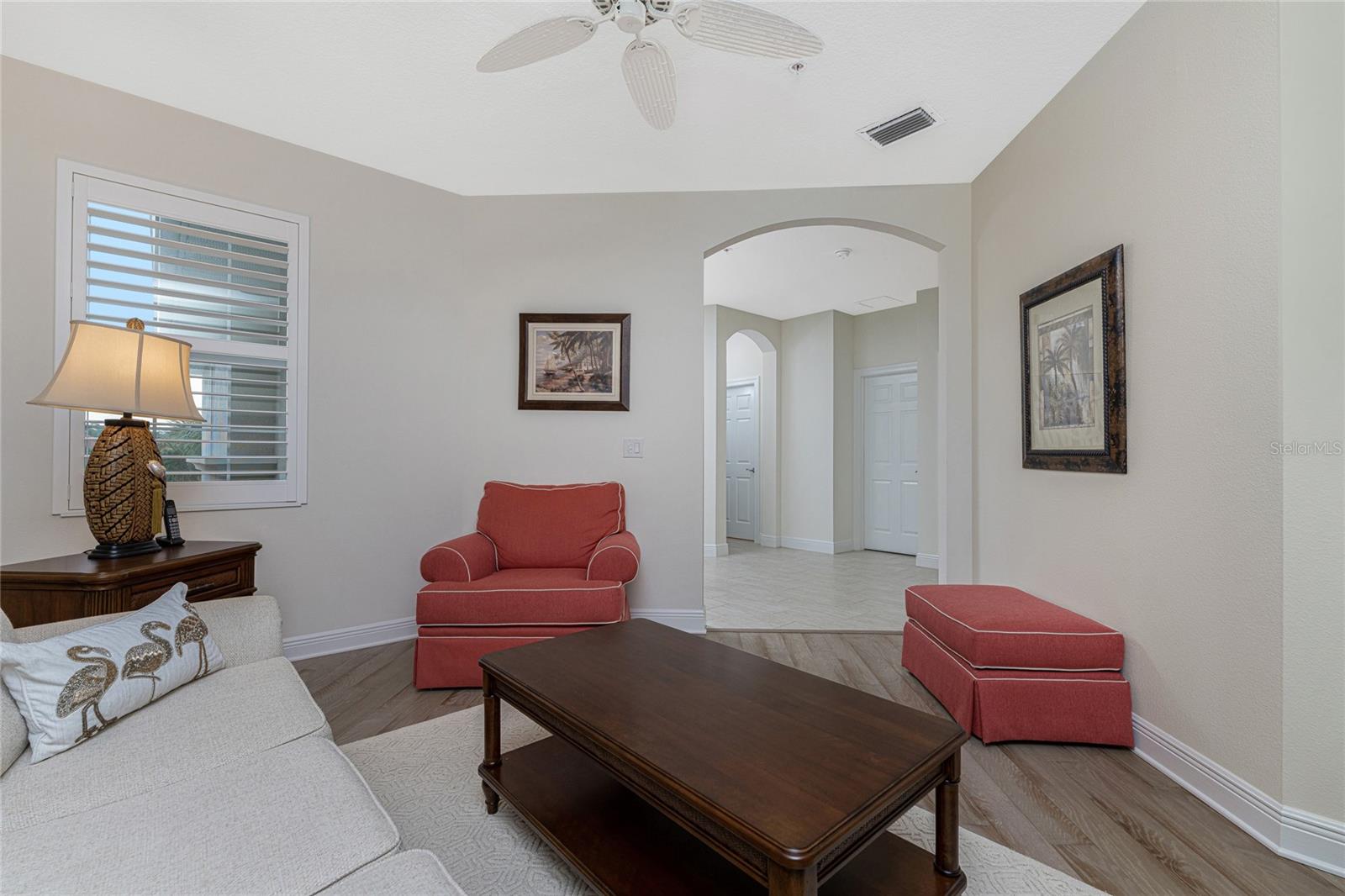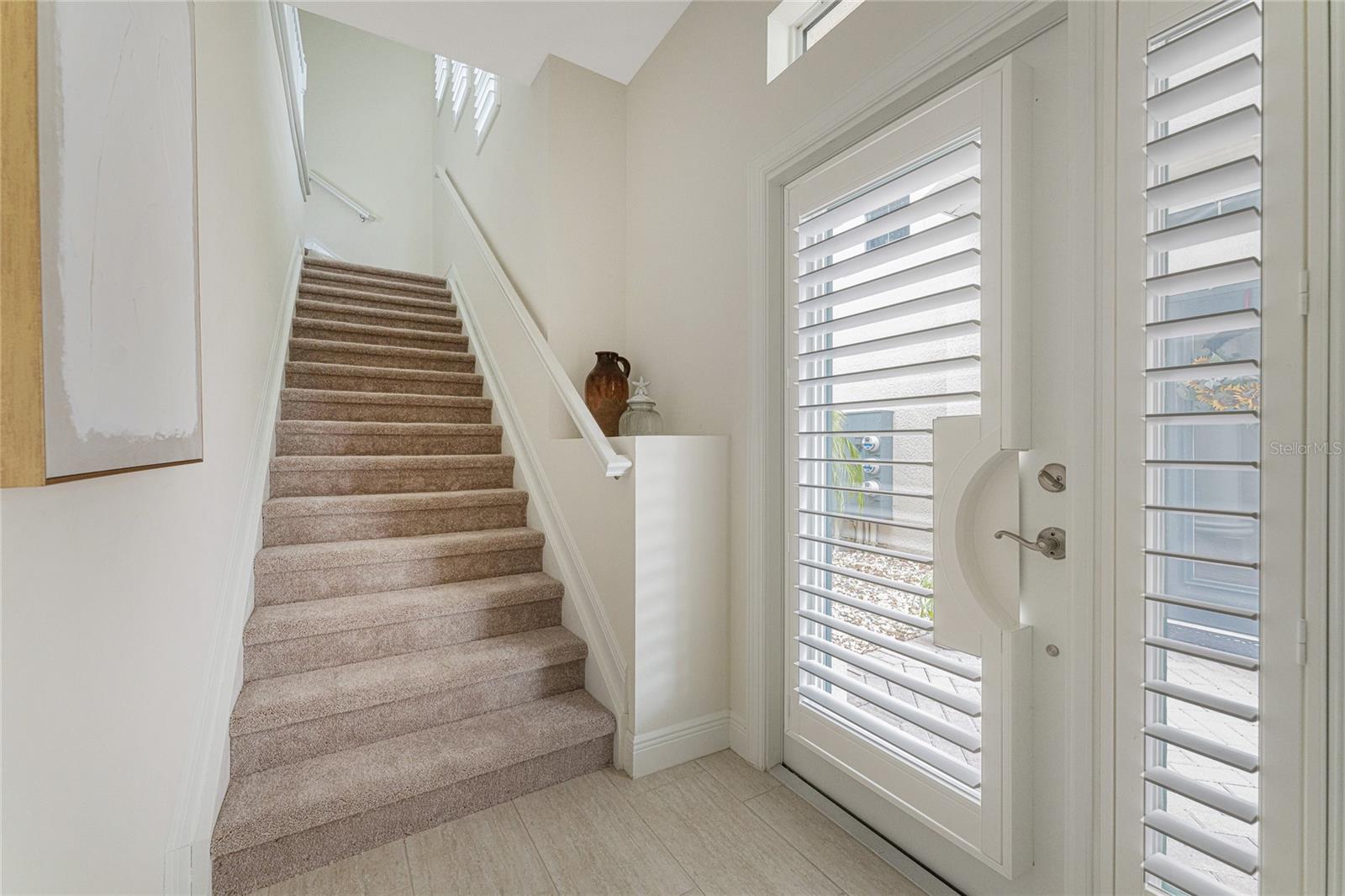 Experience this Exceptional WCI Built Carriage home - Freshly Painted Exterior December 2023 nestled within the Venetian Golf & River Club, boasting expansive views of the community and golf course. A charming courtyard serves as your gateway to this MAINTENANCE FREE home. CONDO FEES ARE PAID UP THROUGH 2024! Inside, you'll be welcomed by the convenience of a private elevator or a gracefully designed staircase leading you to a VERY OPEN and FUNCTIONAL 2,300 sq. ft. floor plan. MOST OF THE FURNITURE AND FURNISHINGS INCLUDING ITEMS IN KITCHEN ARE AVAILABLE making this condo ready and just waiting you! THREE BEDROOMS and two full baths, a great room with sliders overlooking the golf course and the large screened lanai. A cooks kitchen with lots of granite counters and beautiful tiled backsplash, state of the art cabinetry with task lighting, stainless steel appliances all with open views to the great room, dining area and the golf course beyond. A few of the upgraded features include the elegant plantation shutters, convenient roll-down sun screens, rich tile wood plank flooring, designer fixtures, and fans, a water softening system, and high-impact windows and sliders throughout. The primary living area exudes an open layout, making hosting gatherings a delightful affair for memorable moments with loved ones. Moreover, a private flex room awaits, ready to serve as a cozy TV room or a versatile home office/den. You'll also find a generously sized laundry room replete with a utility sink and ample storage cabinets, showcasing meticulous attention to detail at every turn. Designed with precision and care, every step within this home promises an enjoyable experience. Outside your door, the Venetian and Golf and River Club features many fine amenities: an 18-hole championship golf course, large, heated pool and lap pool, six Har-Tru tennis courts, a nature trail, first class fitness center and exercise room with classes. The River Club also boasts a poolside Tiki Bar and fine dining in its restaurant. All of this and only a short drive to the best of Gulf Coast beaches, attractions of downtown Venice and the reassurance of the services offered by the newly completed renowned Sarasota Memorial Hospital.