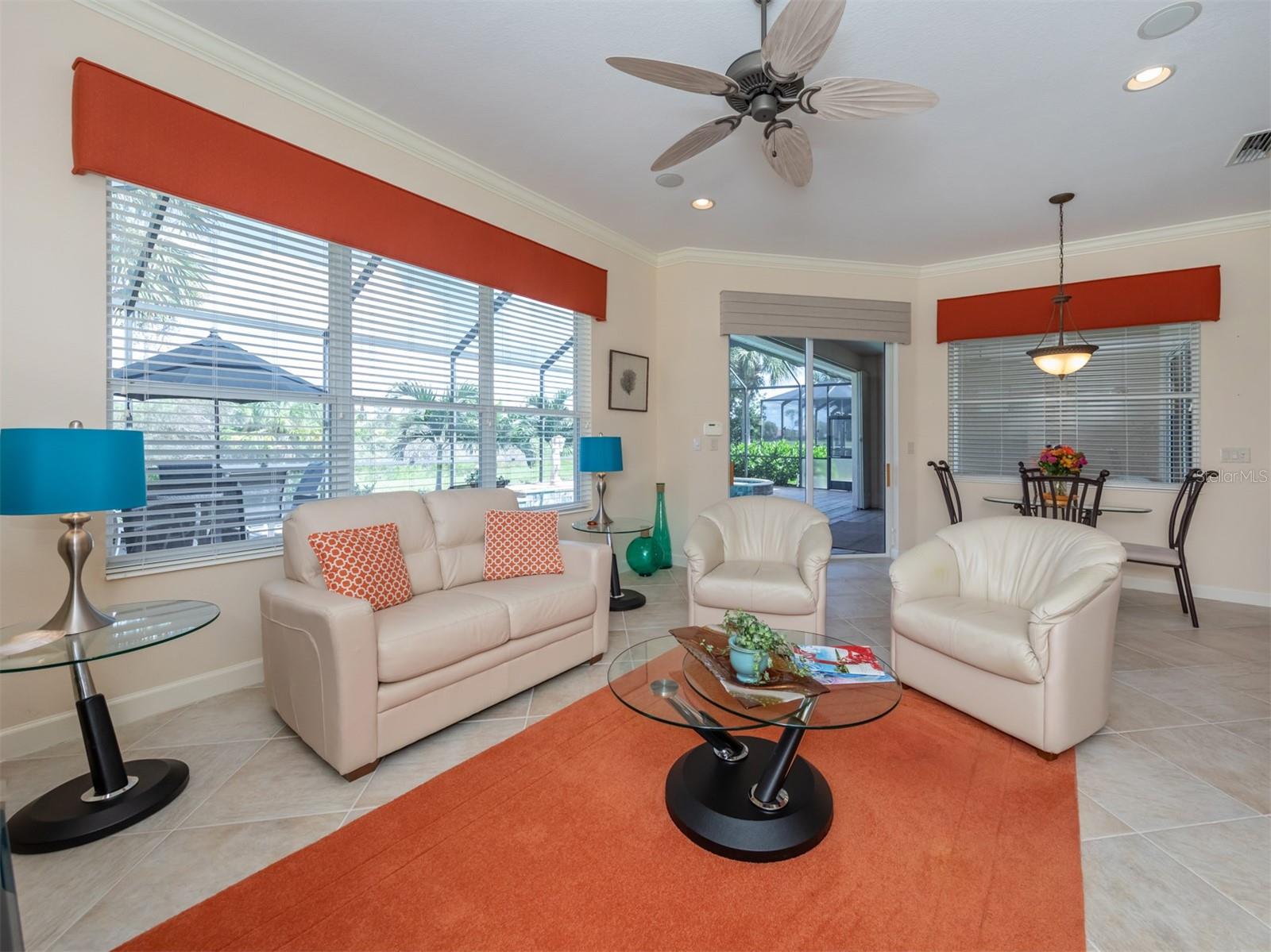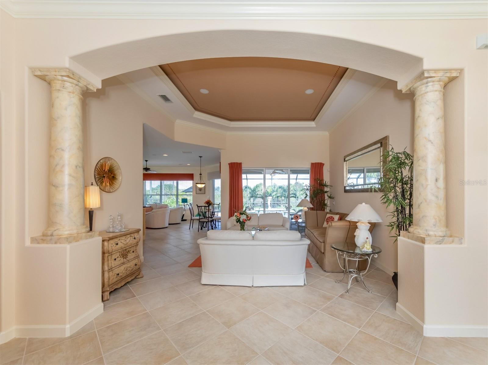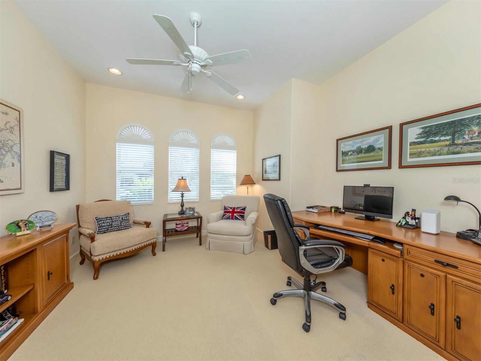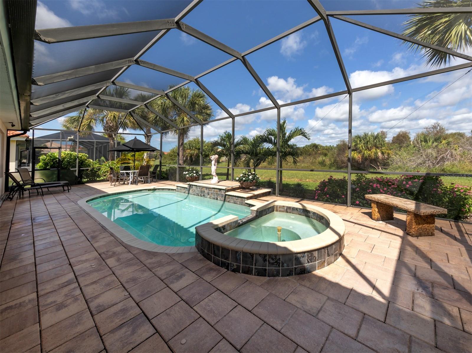 WCI built Immaculate One Owner Da Forli Model With Expansive and Enticing GOLF COURSE, LAKE and PRIVATE PRESERVE Views. A cover Loggia entry to a welcoming a foyer with views of the great room with sliders to the large screened lanai with heated pool and spa overlooking the Golf Course, Lake and Private Preserve Views! 3 Bedrooms, 3 full baths plus a Den/Office, BEING SOLD TURN_KEY FURNISHED! Owners have added many gorgeous upscale upgrades to this spacious home including the large custom tile flooring, lots of natural lighting, soaring and custom tray ceilings, 2 zone A/C, central vac system, surround sound system, custom architectural arches, a 2 CAR GARAGE PLUS GOLF CART PARKING! Love to cook and entertain? Then this kitchen is for you as it open to the family room, a cafe style dining area with access for pool side entertaining while preparing culinary delights. Stainless steel appliances, a gas range, breakfast bar, lots of cabinetry and stunning granite counters; just a few steps to the great room and formal dining room. For owners you have a large suite with soothing views, tray ceilings, his and her closets, a luxurious bath with both a garden tub and walk in shower, dual sinks and a private water closet. Then off to the guest suites which feature a jack and jill bath making it very convenient. Your guests and family will have plenty of space with the family room and the great room both with golf course, lake and calming preserve views. You will find a double door entry to the office/den/study and just outside its doors a private bath. All of this is situated in the Gated Golfing Venetian and Golf and River Club with many fine amenities including an 18-hole championship golf course, large, heated pool and lap pool, six Har-Tru tennis courts, a nature trail, first class fitness center and exercise room with classes. The River Club also boasts a poolside Tiki Bar and fine dining in its restaurant. About 3 miles to Venice beaches , attractions of downtown Venice and the reassurance of the services offered by the newly completed renowned Sarasota Memorial Hospital. Visit Sarasota for more shopping, cultural events, restaurants and more. Room Feature: Linen Closet In Bath (Primary Bedroom).