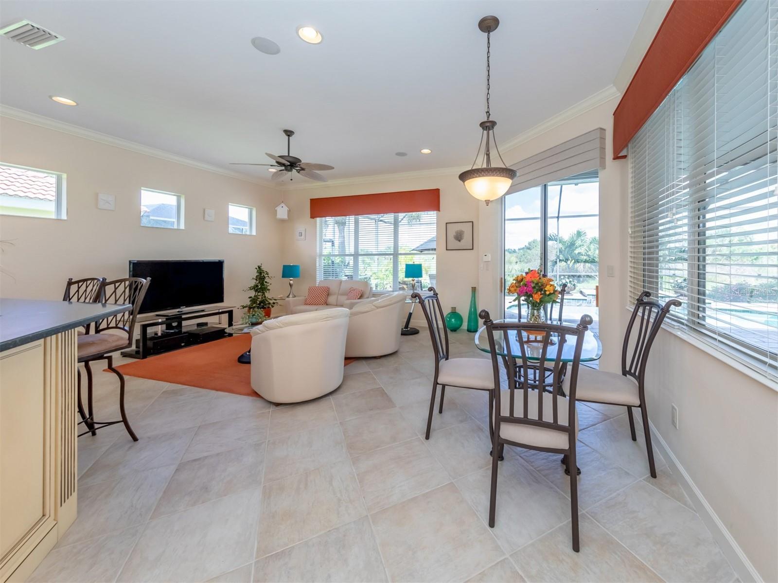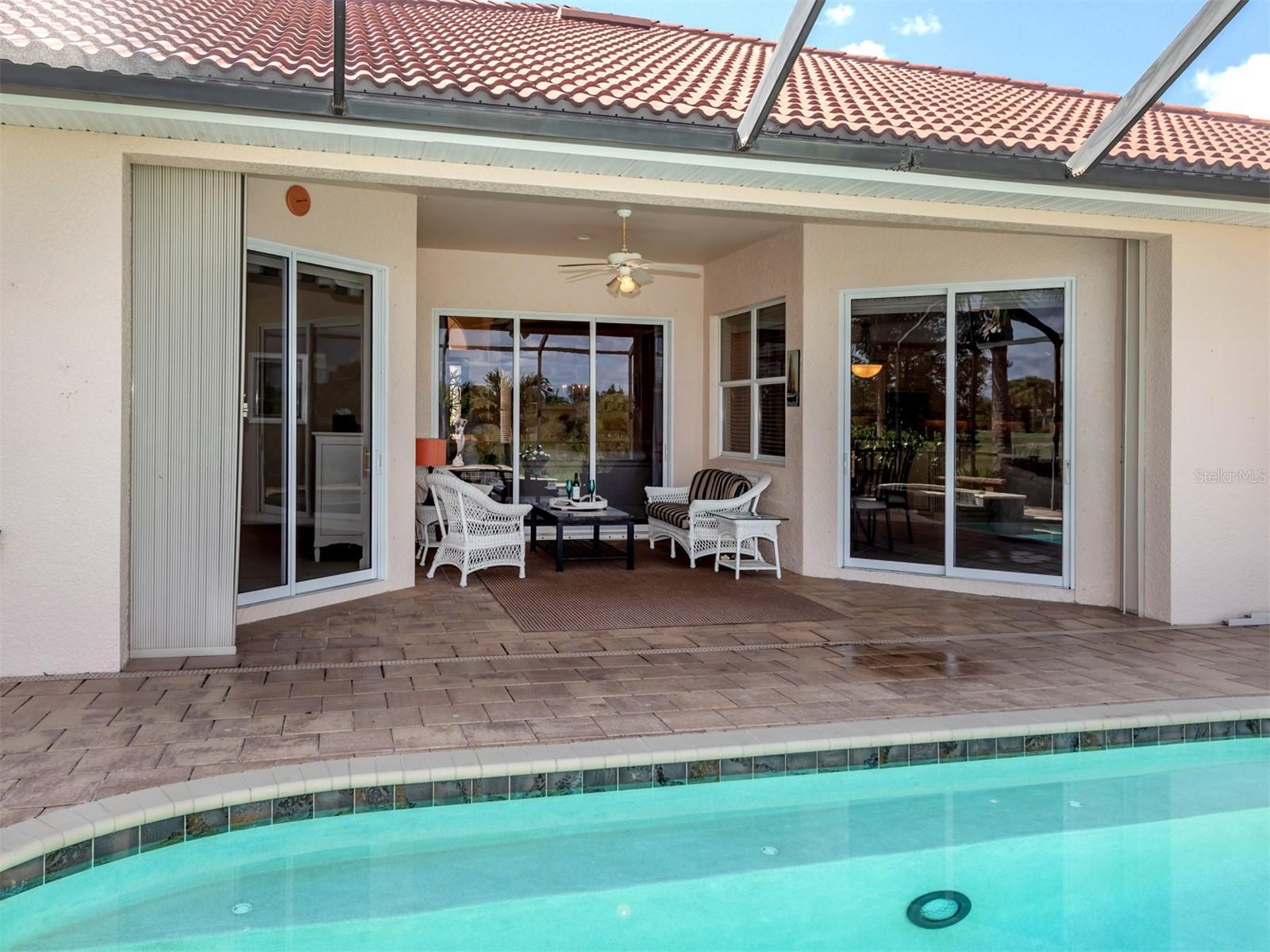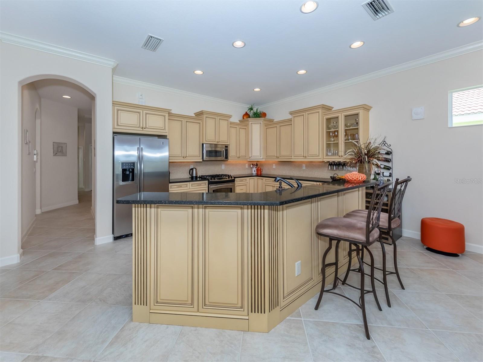 WCI built Immaculate One Owner Da Forli Model With Expansive and Enticing GOLF COURSE, LAKE and PRIVATE PRESERVE Views. A cover Loggia entry to a welcoming a foyer with views of the great room with sliders to the large screened lanai with heated pool and spa overlooking the Golf Course, Lake and Private Preserve Views! 3 Bedrooms, 3 full baths plus a Den/Office, BEING SOLD TURN_KEY FURNISHED! Owners have added many gorgeous upscale upgrades to this spacious home including the large custom tile flooring, lots of natural lighting, soaring and custom tray ceilings, 2 zone A/C, central vac system, surround sound system, custom architectural arches, a 2 CAR GARAGE PLUS GOLF CART PARKING! Love to cook and entertain? Then this kitchen is for you as it open to the family room, a cafe style dining area with access for pool side entertaining while preparing culinary delights. Stainless steel appliances, a gas range, breakfast bar, lots of cabinetry and stunning granite counters; just a few steps to the great room and formal dining room. For owners you have a large suite with soothing views, tray ceilings, his and her closets, a luxurious bath with both a garden tub and walk in shower, dual sinks and a private water closet. Then off to the guest suites which feature a jack and jill bath making it very convenient. Your guests and family will have plenty of space with the family room and the great room both with golf course, lake and calming preserve views. You will find a double door entry to the office/den/study and just outside its doors a private bath. All of this is situated in the Gated Golfing Venetian and Golf and River Club with many fine amenities including an 18-hole championship golf course, large, heated pool and lap pool, six Har-Tru tennis courts, a nature trail, first class fitness center and exercise room with classes. The River Club also boasts a poolside Tiki Bar and fine dining in its restaurant. About 3 miles to Venice beaches , attractions of downtown Venice and the reassurance of the services offered by the newly completed renowned Sarasota Memorial Hospital. Visit Sarasota for more shopping, cultural events, restaurants and more. Room Feature: Linen Closet In Bath (Primary Bedroom).