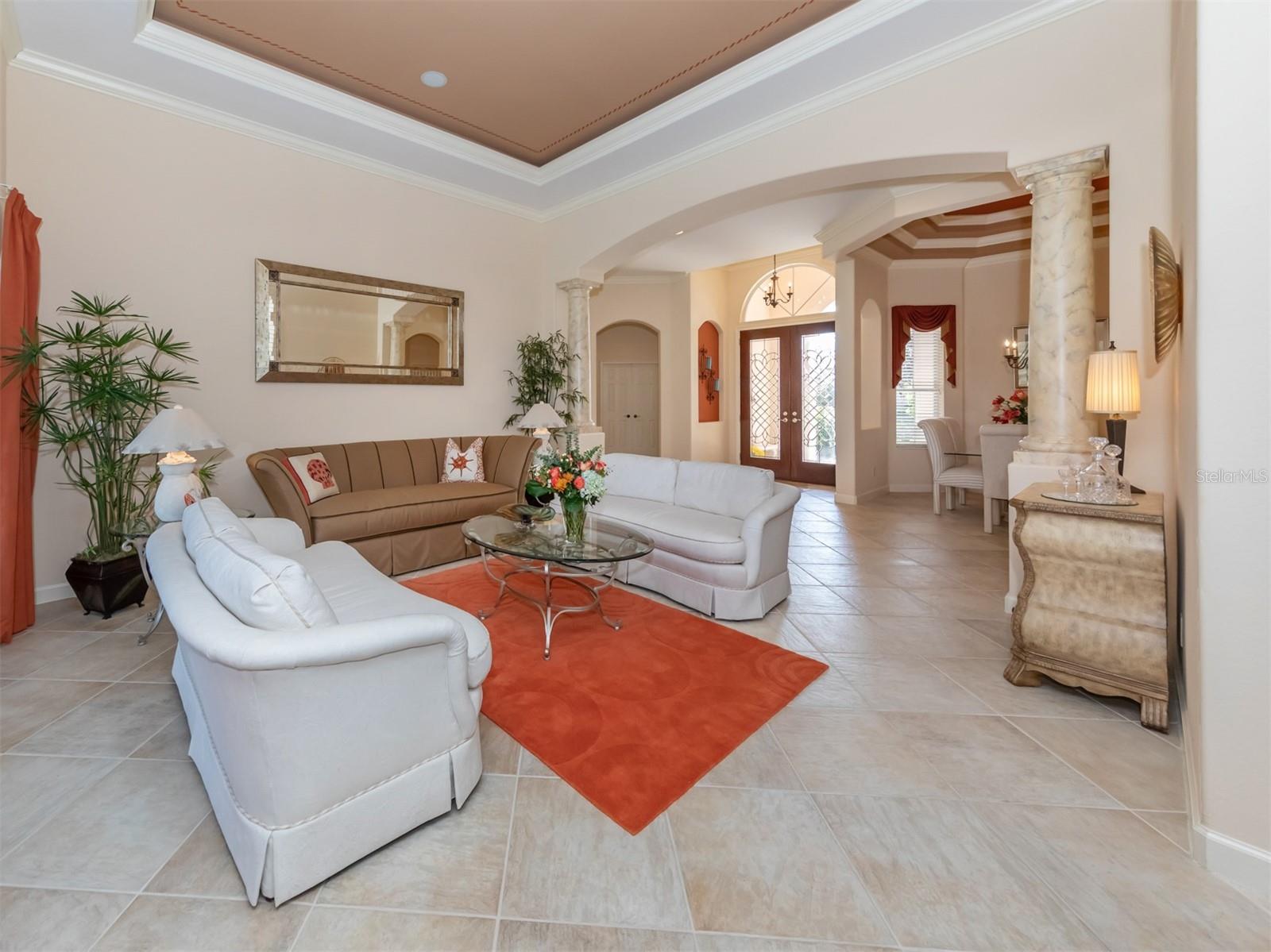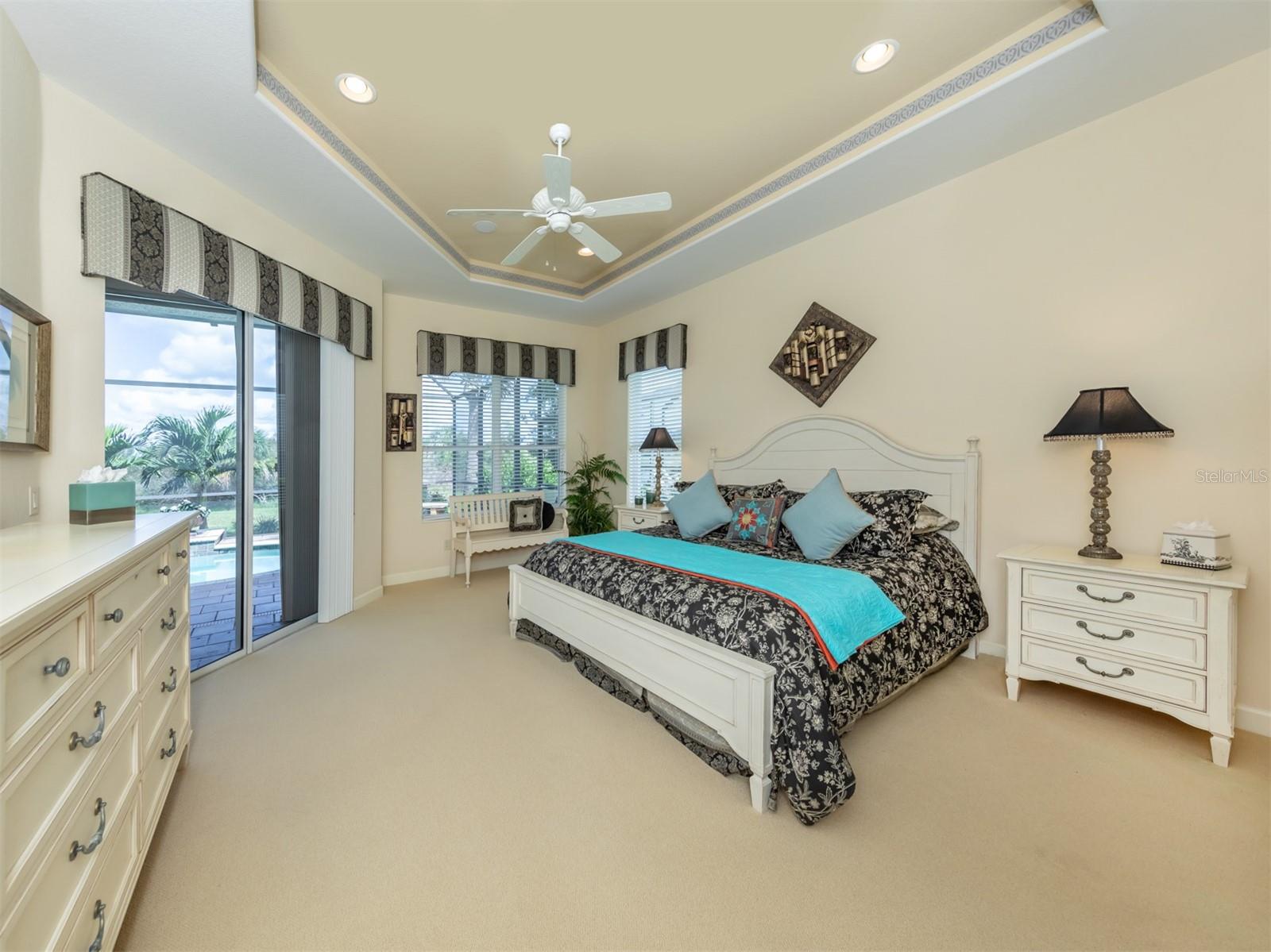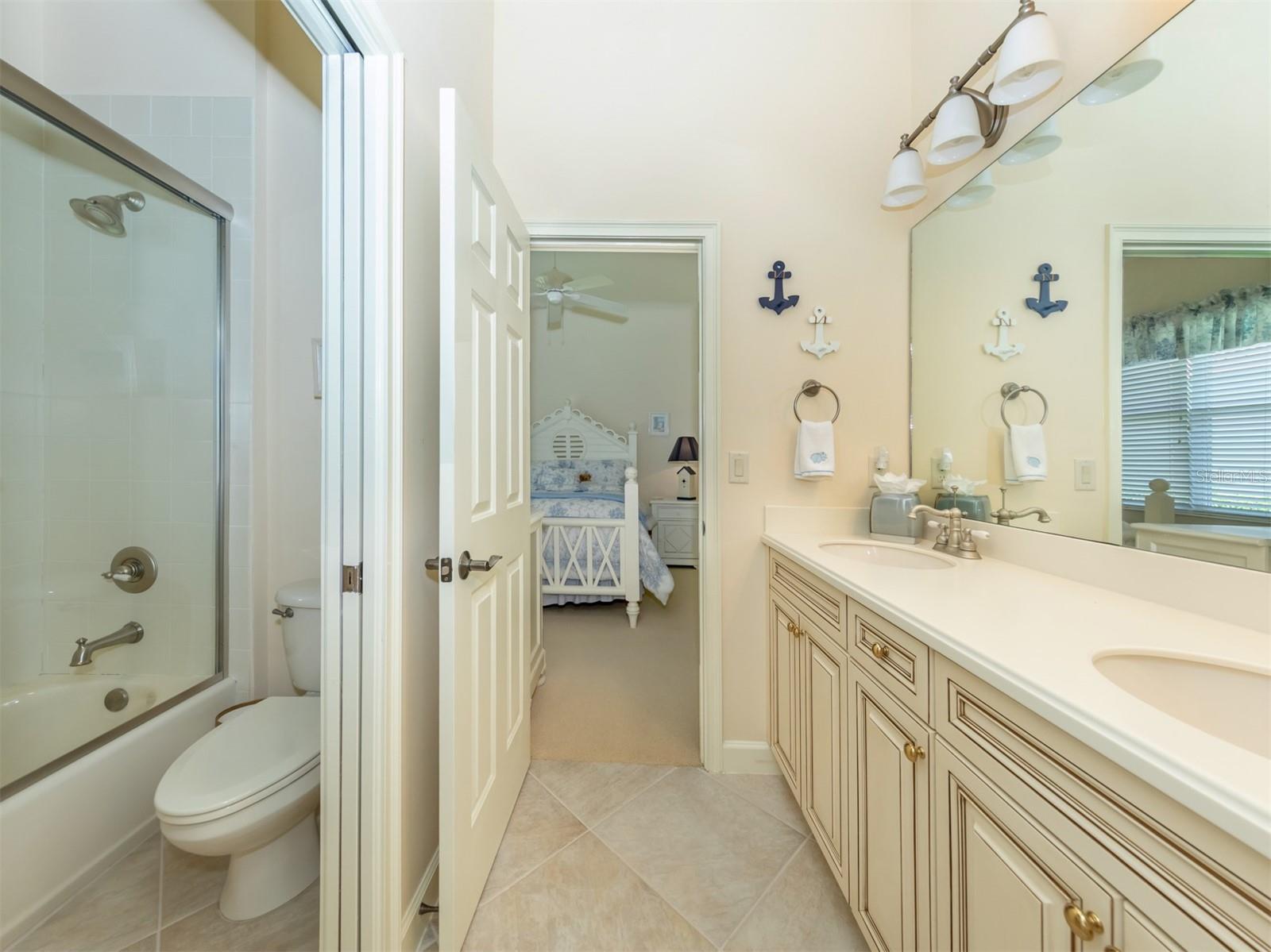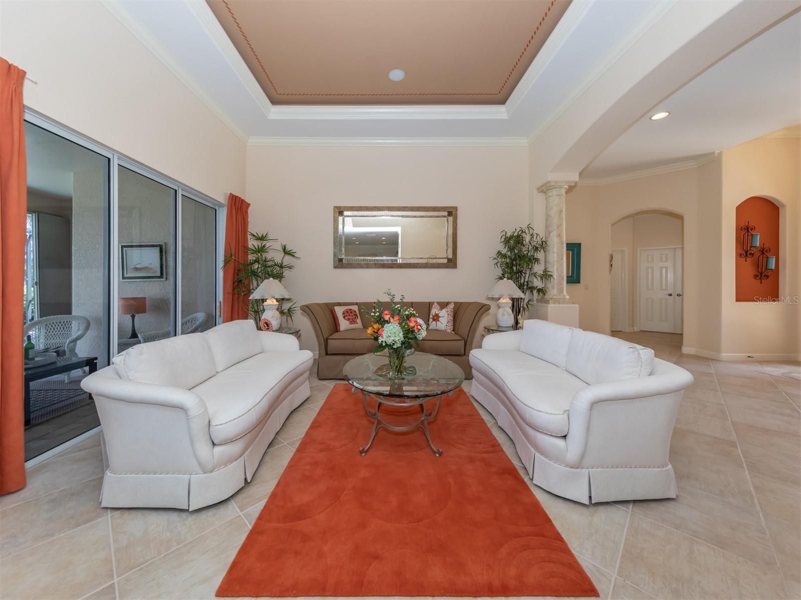 WCI built Immaculate One Owner Da Forli Model With Expansive and Enticing GOLF COURSE, LAKE and PRIVATE PRESERVE Views. A cover Loggia entry to a welcoming a foyer with views of the great room with sliders to the large screened lanai with heated pool and spa overlooking the Golf Course, Lake and Private Preserve Views! 3 Bedrooms, 3 full baths plus a Den/Office, BEING SOLD TURN_KEY FURNISHED! Owners have added many gorgeous upscale upgrades to this spacious home including the large custom tile flooring, lots of natural lighting, soaring and custom tray ceilings, 2 zone A/C, central vac system, surround sound system, custom architectural arches, a 2 CAR GARAGE PLUS GOLF CART PARKING! Love to cook and entertain? Then this kitchen is for you as it open to the family room, a cafe style dining area with access for pool side entertaining while preparing culinary delights. Stainless steel appliances, a gas range, breakfast bar, lots of cabinetry and stunning granite counters; just a few steps to the great room and formal dining room. For owners you have a large suite with soothing views, tray ceilings, his and her closets, a luxurious bath with both a garden tub and walk in shower, dual sinks and a private water closet. Then off to the guest suites which feature a jack and jill bath making it very convenient. Your guests and family will have plenty of space with the family room and the great room both with golf course, lake and calming preserve views. You will find a double door entry to the office/den/study and just outside its doors a private bath. All of this is situated in the Gated Golfing Venetian and Golf and River Club with many fine amenities including an 18-hole championship golf course, large, heated pool and lap pool, six Har-Tru tennis courts, a nature trail, first class fitness center and exercise room with classes. The River Club also boasts a poolside Tiki Bar and fine dining in its restaurant. About 3 miles to Venice beaches , attractions of downtown Venice and the reassurance of the services offered by the newly completed renowned Sarasota Memorial Hospital. Visit Sarasota for more shopping, cultural events, restaurants and more. Room Feature: Linen Closet In Bath (Primary Bedroom).