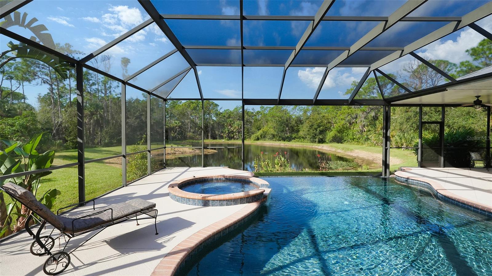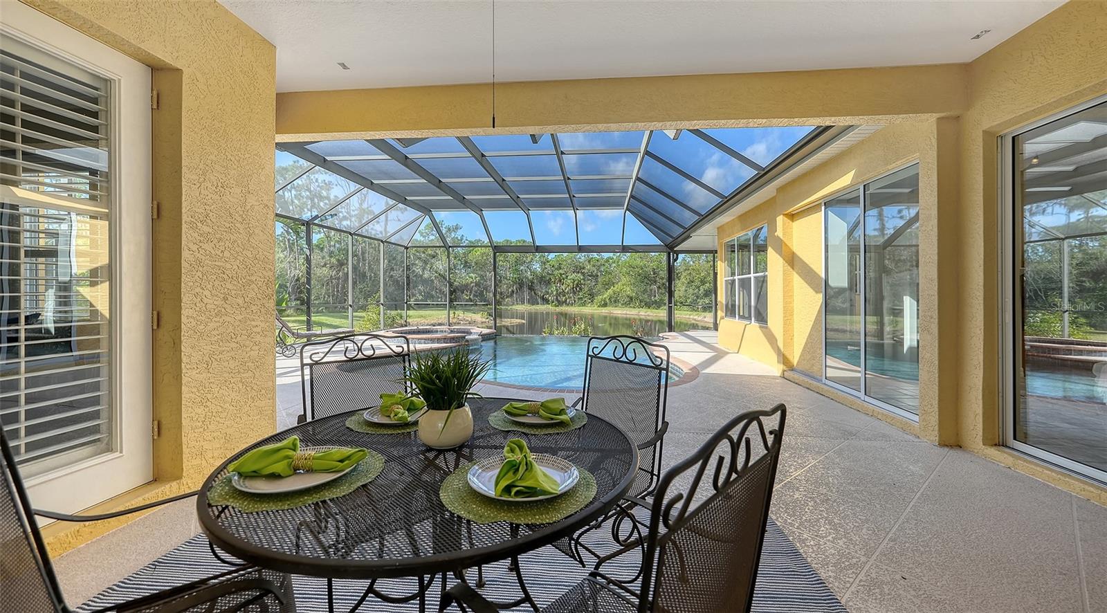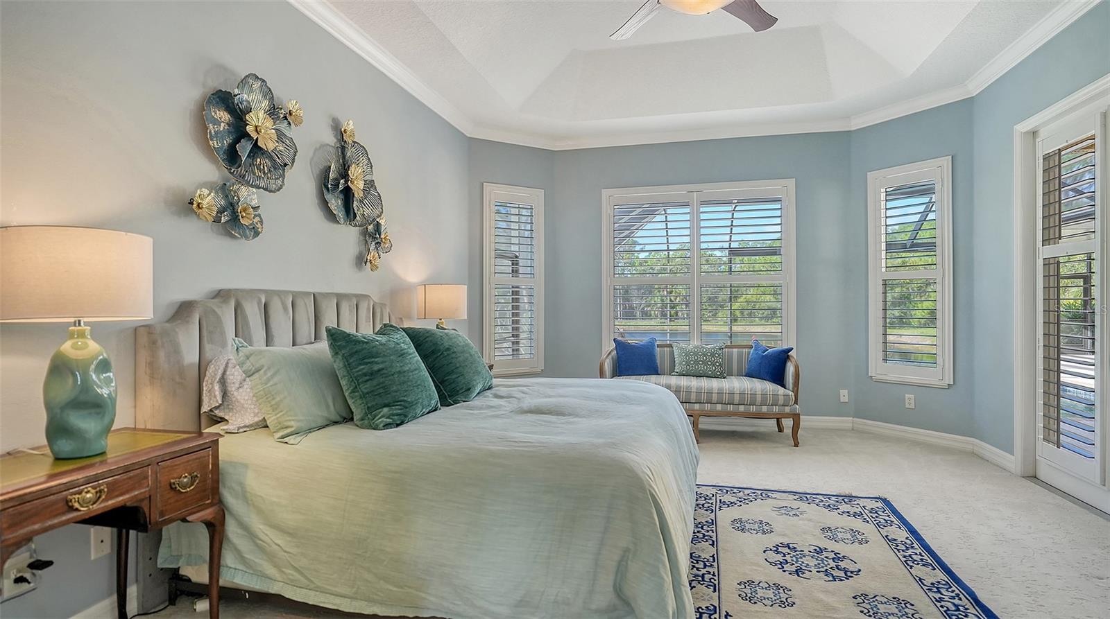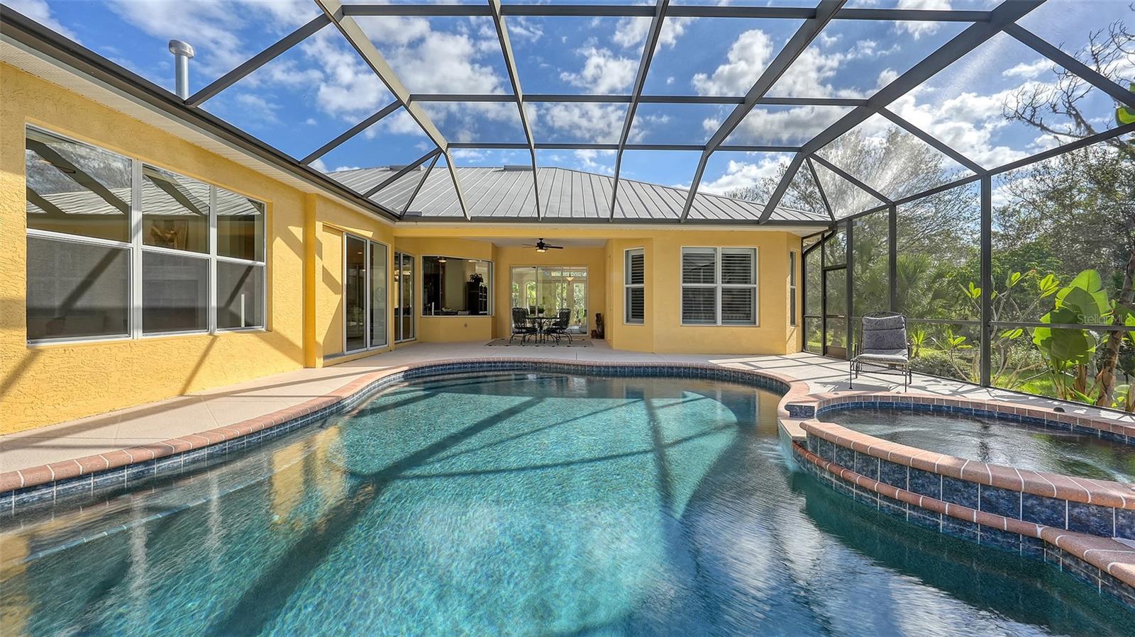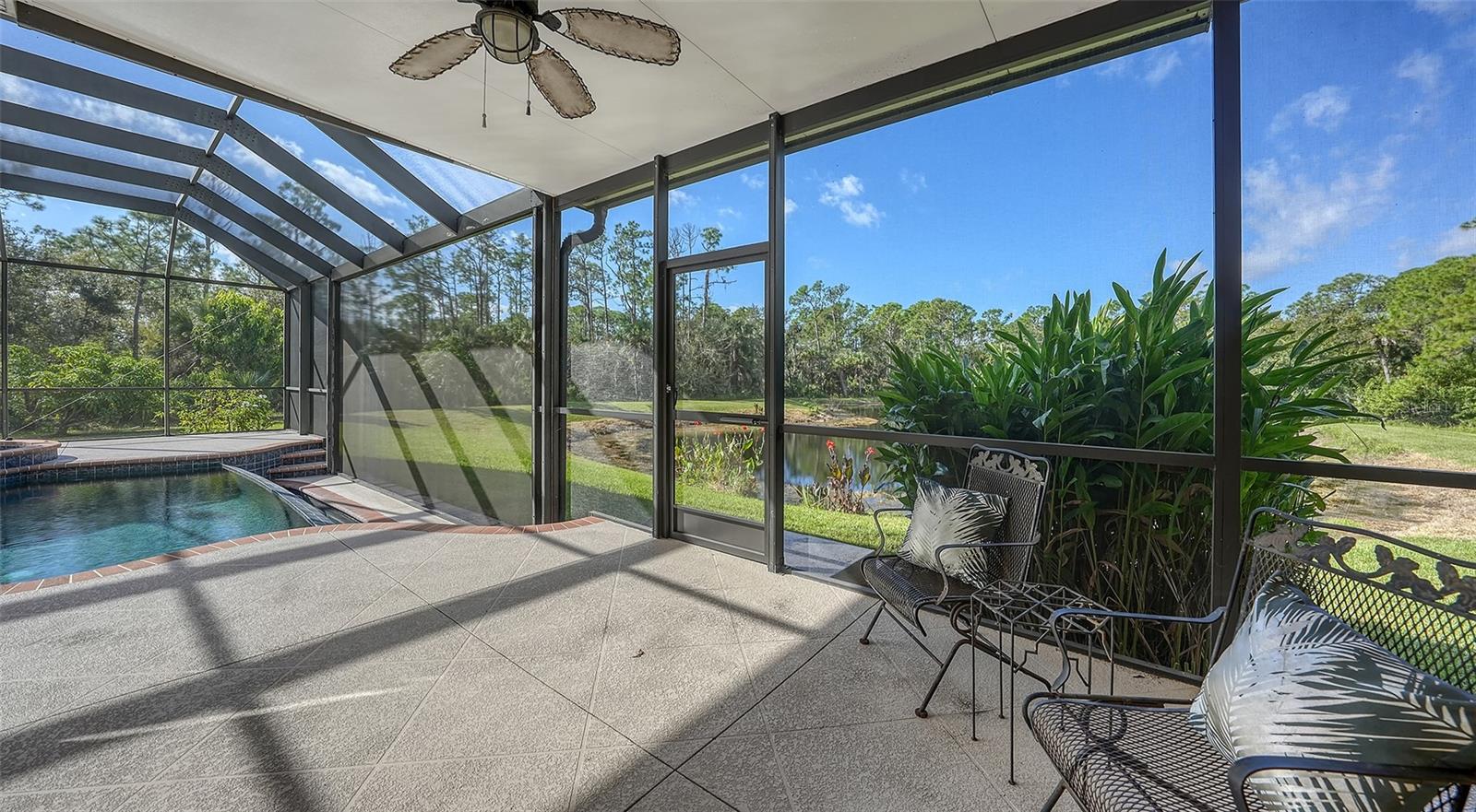 A true gem nestled behind the private gates of Myakka River Trails sits this custom-built masterpiece where luxury, elegance, and the natural beauty of over 7 acres converge in perfect harmony. This stunning home boasts four bedrooms, three bathrooms, a den/office, and a bonus room, offering spacious living and endless possibilities. 8-foot doors, crown molding, soaring ceilings, along with many architectural upgrades can be found throughout, captivating you with its sophistication.The heart of this home is undoubtedly the open kitchen and family room, designed with entertaining in mind. The kitchen features top-of-the-line appliances, including a GE Monogram 6-burner gas stove, a center island with a bar sink, a built-in wine rack, and more. With an eat-in kitchen and breakfast bar areas, it's a culinary enthusiast's dream.The family room is both voluminous and inviting, with a built-in entertainment center and a two-sided fireplace that can also be enjoyed in the spacious bonus/sitting room. The entire space exudes warmth and comfort, making it perfect for gatherings of family and friends.The master suite is a sanctuary of its own, offering two walk-in closets with built-in shelving and a master bathroom ensuite that leaves nothing to be desired. His and her vanities, water closets, and showers are flooded in natural light and elevate your daily routines to a new level of luxury.This home is not just a masterpiece indoors, but also outdoors. Step onto the expansive lanai and you'll be greeted by an infinity/negative edge pool that appears to merge seamlessly with your very own private lake. The ClearVue pool screening ensures uninterrupted views of the surrounding beauty. Whether you're relaxing under the covered lanai or taking a dip in the pool, this space is an oasis of tranquility.For those who appreciate the practicalities of life, this home has it all. A whole-house generator, RO system, double-pane thermal windows, and central vacuum system are just a few of the thoughtful features that make daily living effortless and enjoyable.With an oversized three-car garage that includes golf cart parking and its own separate entrance, this property has tons of space! Location, Location, Location!! Minutes to Wellen Park, Cool Today Braves Stadium, I-75, Beaches and so much more!! Upon the completion of River Road, there will be a path for biking, golf carts and walking too!