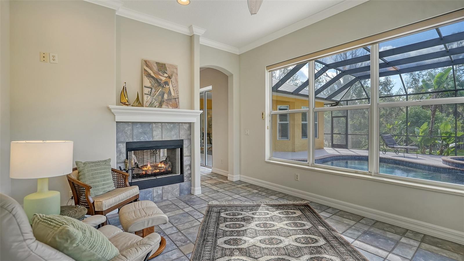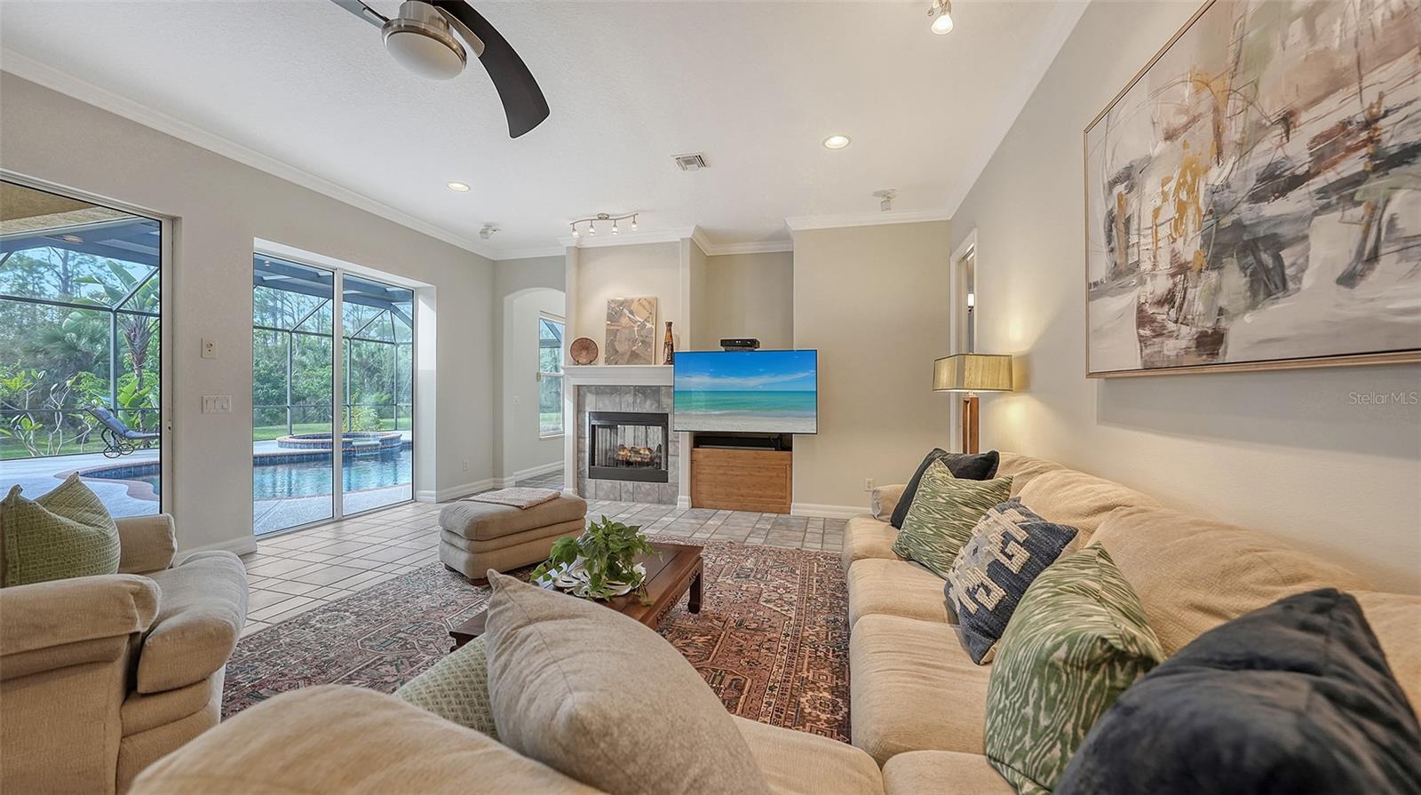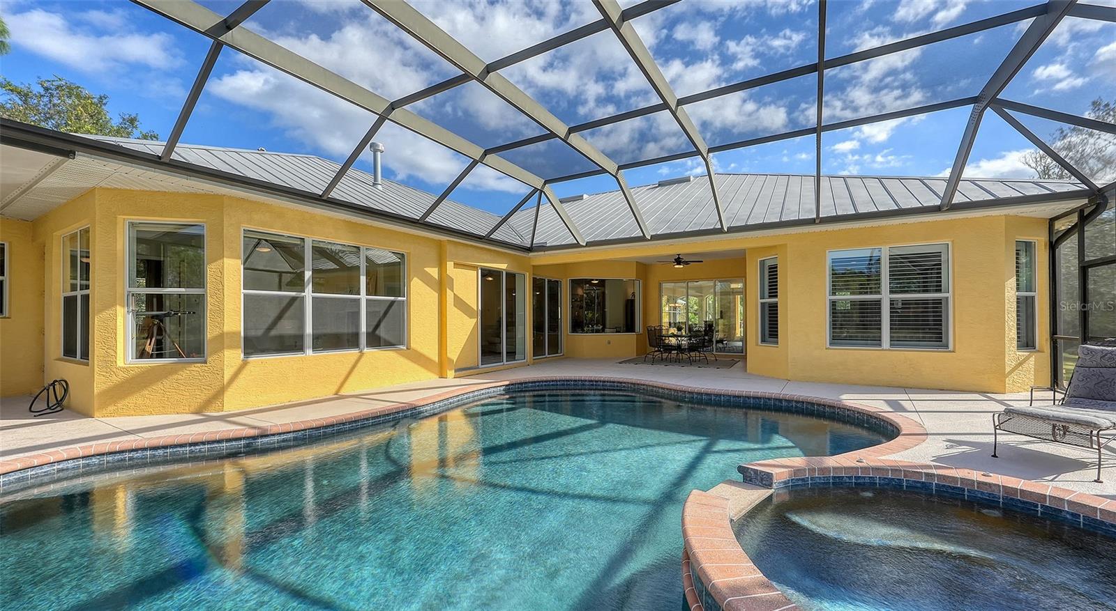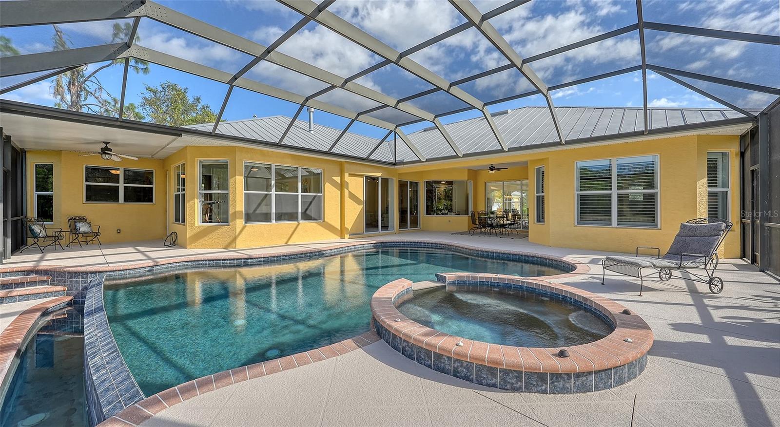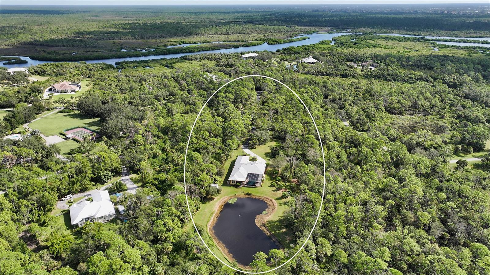 A true gem nestled behind the private gates of Myakka River Trails sits this custom-built masterpiece where luxury, elegance, and the natural beauty of over 7 acres converge in perfect harmony. This stunning home boasts four bedrooms, three bathrooms, a den/office, and a bonus room, offering spacious living and endless possibilities. 8-foot doors, crown molding, soaring ceilings, along with many architectural upgrades can be found throughout, captivating you with its sophistication.The heart of this home is undoubtedly the open kitchen and family room, designed with entertaining in mind. The kitchen features top-of-the-line appliances, including a GE Monogram 6-burner gas stove, a center island with a bar sink, a built-in wine rack, and more. With an eat-in kitchen and breakfast bar areas, it's a culinary enthusiast's dream.The family room is both voluminous and inviting, with a built-in entertainment center and a two-sided fireplace that can also be enjoyed in the spacious bonus/sitting room. The entire space exudes warmth and comfort, making it perfect for gatherings of family and friends.The master suite is a sanctuary of its own, offering two walk-in closets with built-in shelving and a master bathroom ensuite that leaves nothing to be desired. His and her vanities, water closets, and showers are flooded in natural light and elevate your daily routines to a new level of luxury.This home is not just a masterpiece indoors, but also outdoors. Step onto the expansive lanai and you'll be greeted by an infinity/negative edge pool that appears to merge seamlessly with your very own private lake. The ClearVue pool screening ensures uninterrupted views of the surrounding beauty. Whether you're relaxing under the covered lanai or taking a dip in the pool, this space is an oasis of tranquility.For those who appreciate the practicalities of life, this home has it all. A whole-house generator, RO system, double-pane thermal windows, and central vacuum system are just a few of the thoughtful features that make daily living effortless and enjoyable.With an oversized three-car garage that includes golf cart parking and its own separate entrance, this property has tons of space! Location, Location, Location!! Minutes to Wellen Park, Cool Today Braves Stadium, I-75, Beaches and so much more!! Upon the completion of River Road, there will be a path for biking, golf carts and walking too!