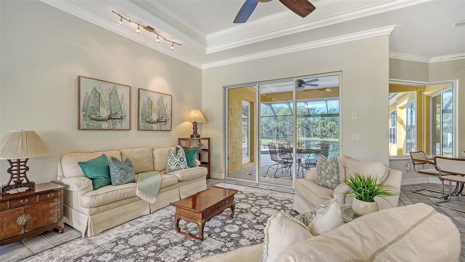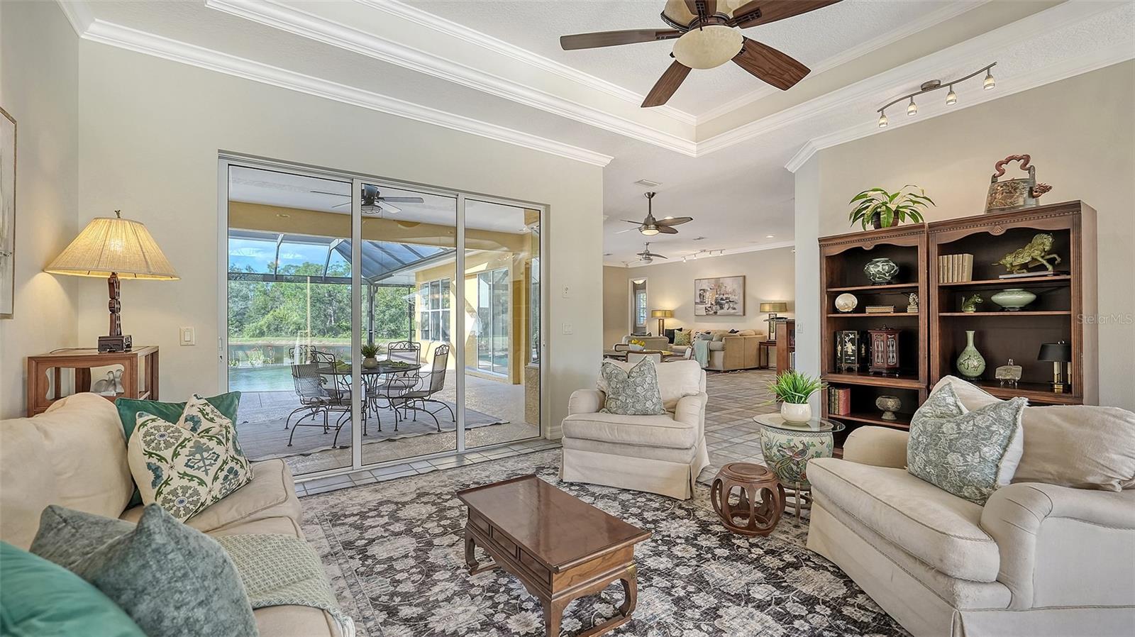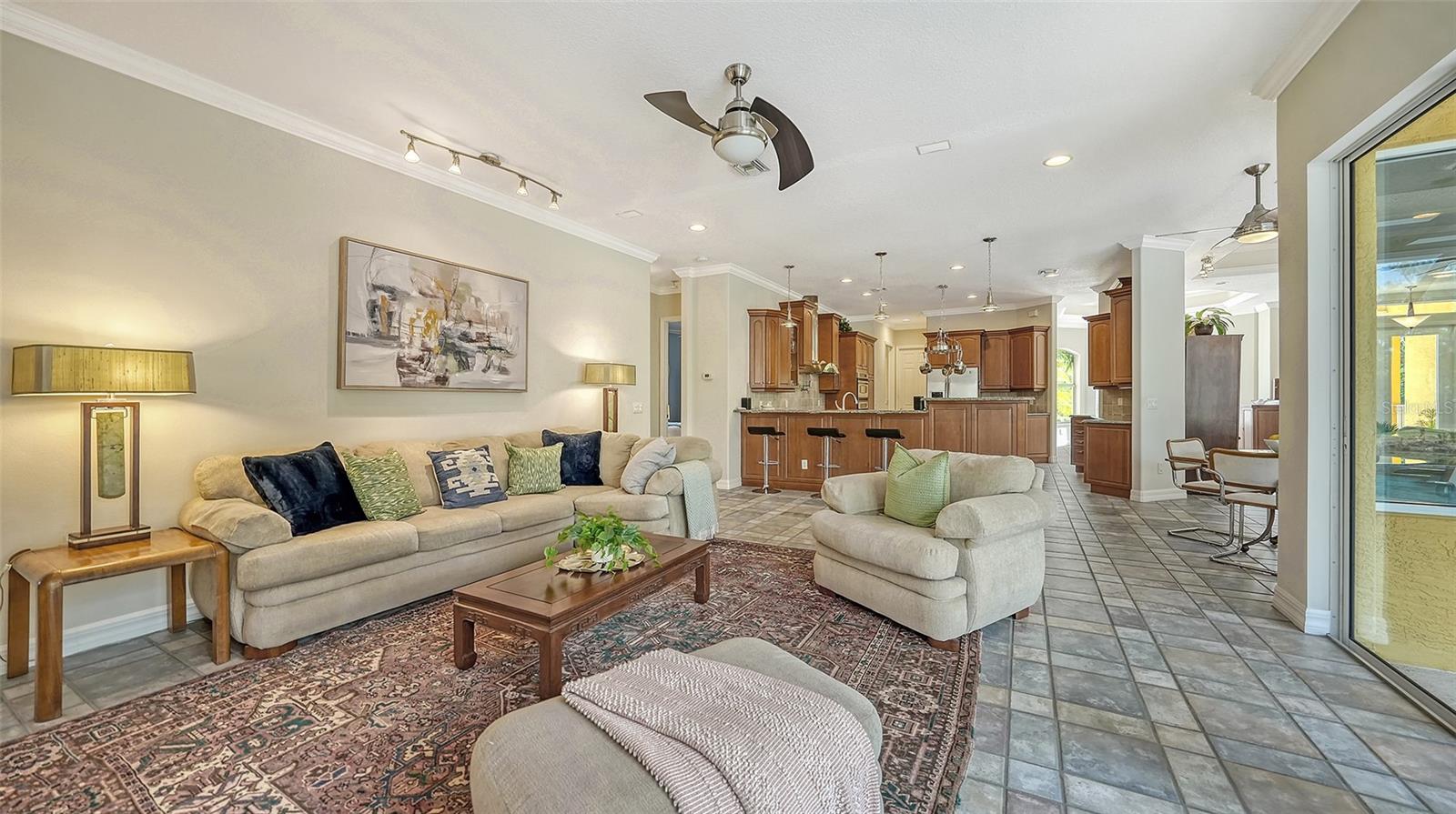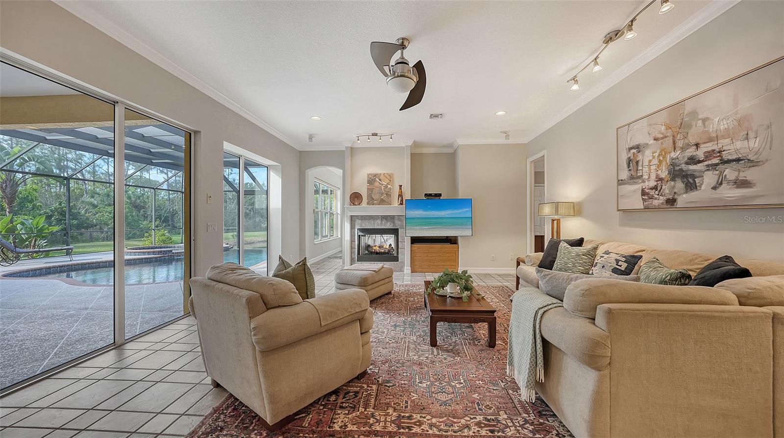 A true gem nestled behind the private gates of Myakka River Trails sits this custom-built masterpiece where luxury, elegance, and the natural beauty of over 7 acres converge in perfect harmony. This stunning home boasts four bedrooms, three bathrooms, a den/office, and a bonus room, offering spacious living and endless possibilities. 8-foot doors, crown molding, soaring ceilings, along with many architectural upgrades can be found throughout, captivating you with its sophistication.The heart of this home is undoubtedly the open kitchen and family room, designed with entertaining in mind. The kitchen features top-of-the-line appliances, including a GE Monogram 6-burner gas stove, a center island with a bar sink, a built-in wine rack, and more. With an eat-in kitchen and breakfast bar areas, it's a culinary enthusiast's dream.The family room is both voluminous and inviting, with a built-in entertainment center and a two-sided fireplace that can also be enjoyed in the spacious bonus/sitting room. The entire space exudes warmth and comfort, making it perfect for gatherings of family and friends.The master suite is a sanctuary of its own, offering two walk-in closets with built-in shelving and a master bathroom ensuite that leaves nothing to be desired. His and her vanities, water closets, and showers are flooded in natural light and elevate your daily routines to a new level of luxury.This home is not just a masterpiece indoors, but also outdoors. Step onto the expansive lanai and you'll be greeted by an infinity/negative edge pool that appears to merge seamlessly with your very own private lake. The ClearVue pool screening ensures uninterrupted views of the surrounding beauty. Whether you're relaxing under the covered lanai or taking a dip in the pool, this space is an oasis of tranquility.For those who appreciate the practicalities of life, this home has it all. A whole-house generator, RO system, double-pane thermal windows, and central vacuum system are just a few of the thoughtful features that make daily living effortless and enjoyable.With an oversized three-car garage that includes golf cart parking and its own separate entrance, this property has tons of space! Location, Location, Location!! Minutes to Wellen Park, Cool Today Braves Stadium, I-75, Beaches and so much more!! Upon the completion of River Road, there will be a path for biking, golf carts and walking too!
