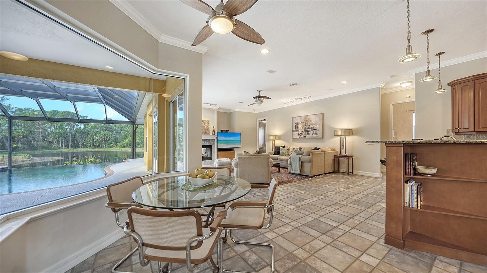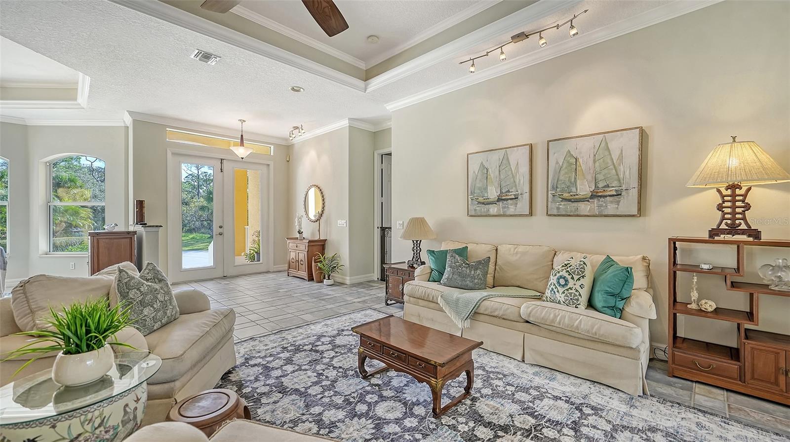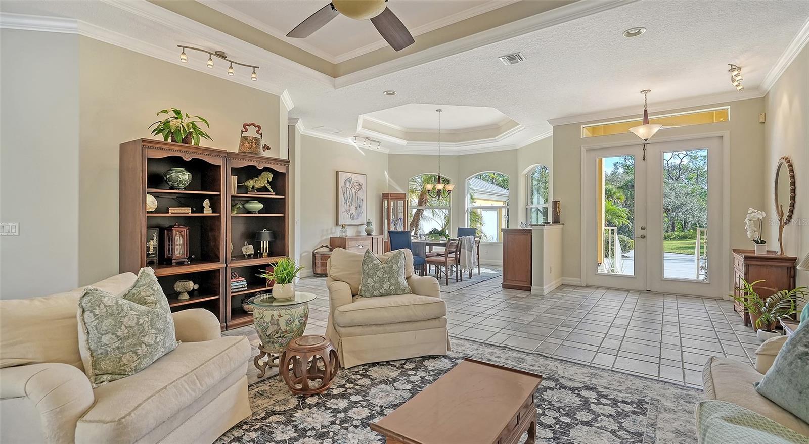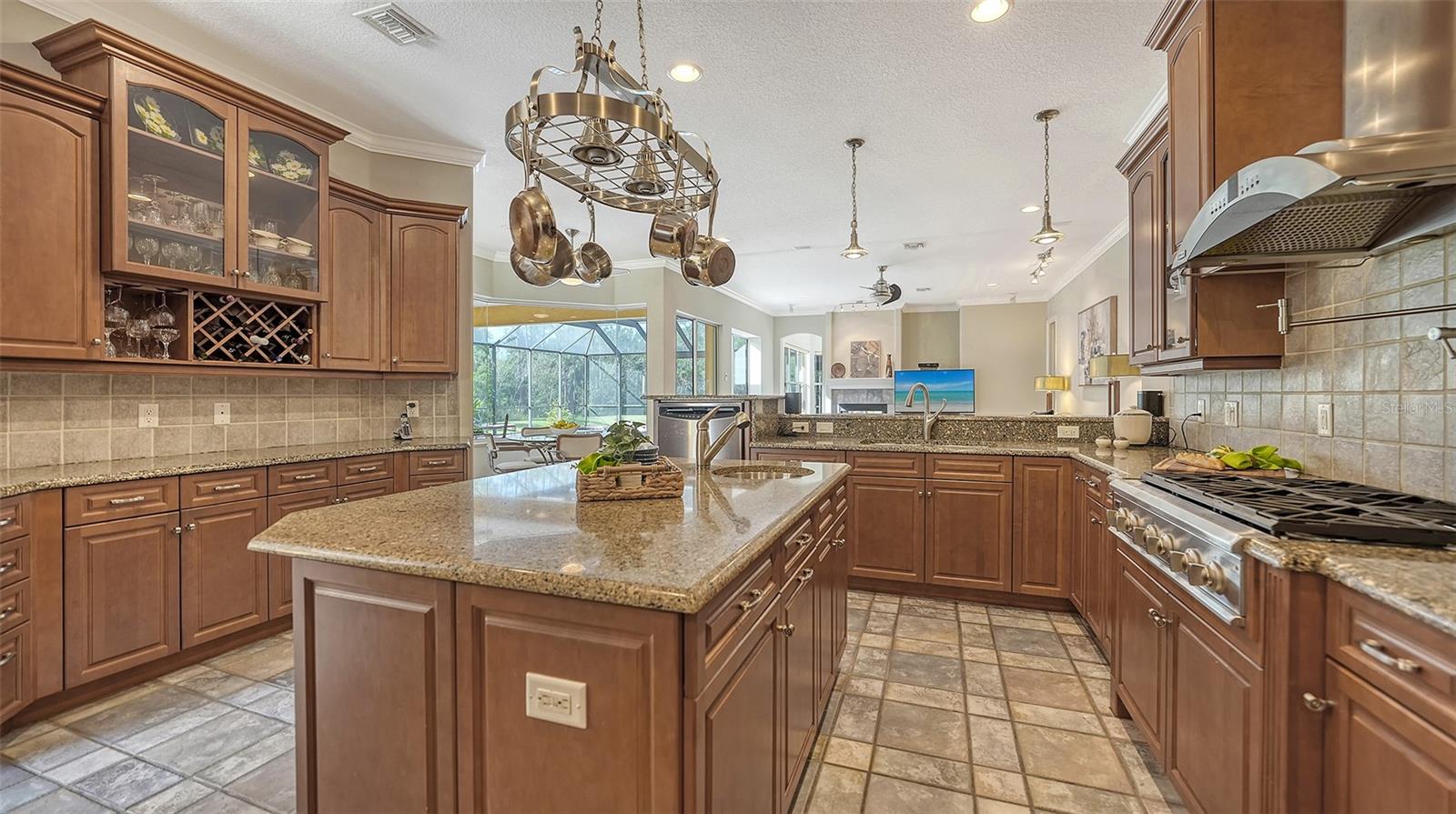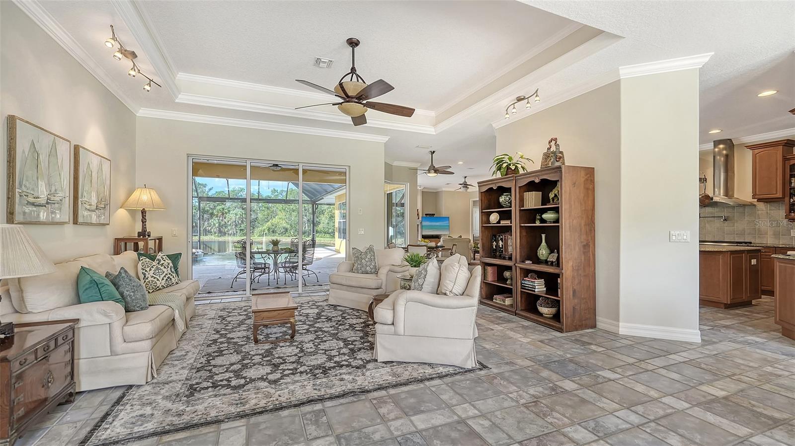 A true gem nestled behind the private gates of Myakka River Trails sits this custom-built masterpiece where luxury, elegance, and the natural beauty of over 7 acres converge in perfect harmony. This stunning home boasts four bedrooms, three bathrooms, a den/office, and a bonus room, offering spacious living and endless possibilities. 8-foot doors, crown molding, soaring ceilings, along with many architectural upgrades can be found throughout, captivating you with its sophistication.The heart of this home is undoubtedly the open kitchen and family room, designed with entertaining in mind. The kitchen features top-of-the-line appliances, including a GE Monogram 6-burner gas stove, a center island with a bar sink, a built-in wine rack, and more. With an eat-in kitchen and breakfast bar areas, it's a culinary enthusiast's dream.The family room is both voluminous and inviting, with a built-in entertainment center and a two-sided fireplace that can also be enjoyed in the spacious bonus/sitting room. The entire space exudes warmth and comfort, making it perfect for gatherings of family and friends.The master suite is a sanctuary of its own, offering two walk-in closets with built-in shelving and a master bathroom ensuite that leaves nothing to be desired. His and her vanities, water closets, and showers are flooded in natural light and elevate your daily routines to a new level of luxury.This home is not just a masterpiece indoors, but also outdoors. Step onto the expansive lanai and you'll be greeted by an infinity/negative edge pool that appears to merge seamlessly with your very own private lake. The ClearVue pool screening ensures uninterrupted views of the surrounding beauty. Whether you're relaxing under the covered lanai or taking a dip in the pool, this space is an oasis of tranquility.For those who appreciate the practicalities of life, this home has it all. A whole-house generator, RO system, double-pane thermal windows, and central vacuum system are just a few of the thoughtful features that make daily living effortless and enjoyable.With an oversized three-car garage that includes golf cart parking and its own separate entrance, this property has tons of space! Location, Location, Location!! Minutes to Wellen Park, Cool Today Braves Stadium, I-75, Beaches and so much more!! Upon the completion of River Road, there will be a path for biking, golf carts and walking too!