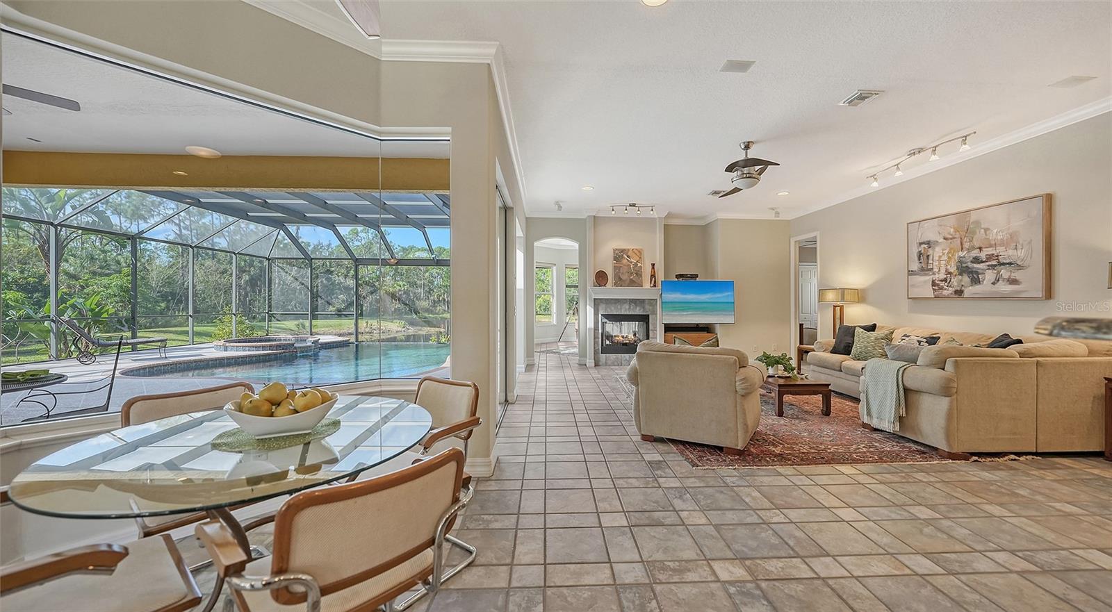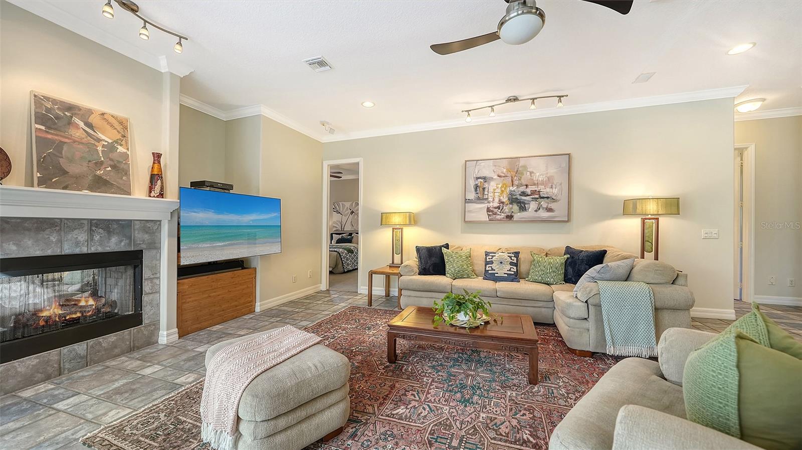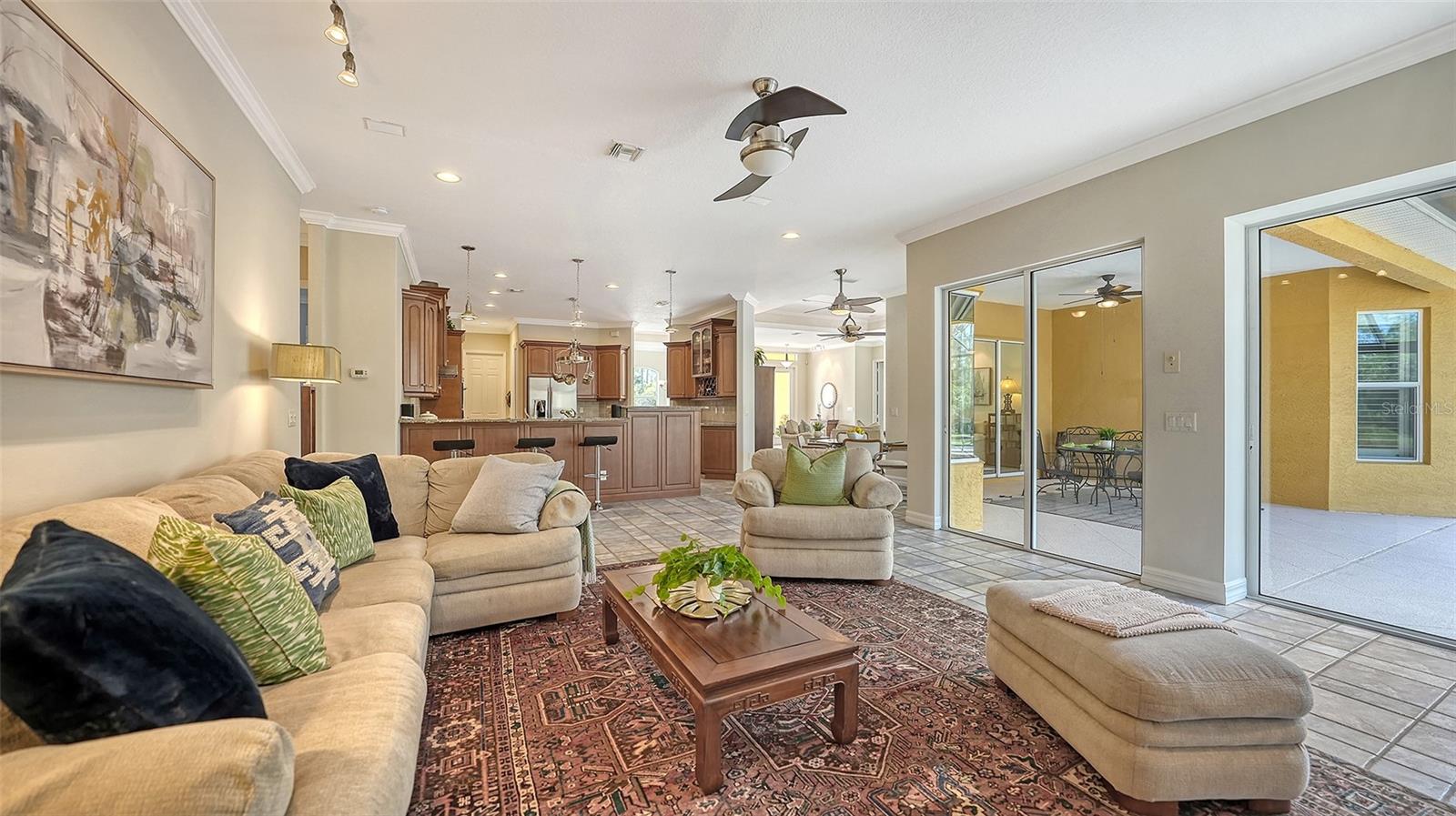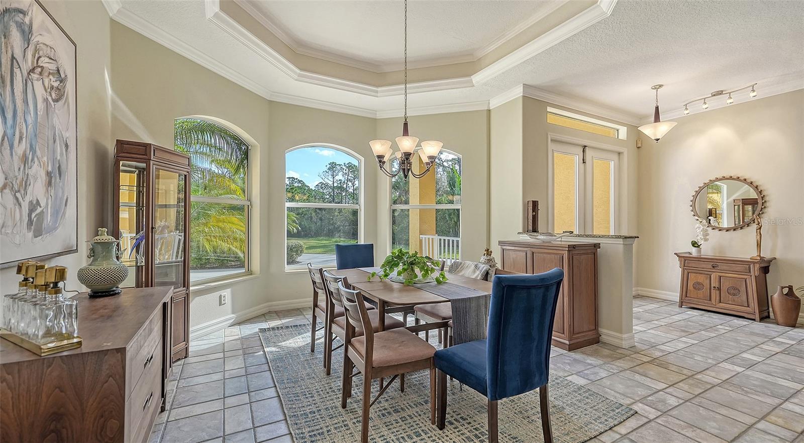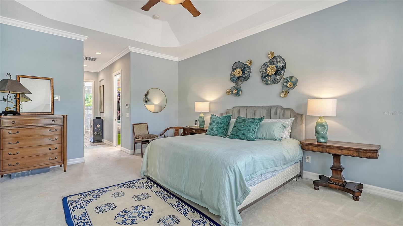 A true gem nestled behind the private gates of Myakka River Trails sits this custom-built masterpiece where luxury, elegance, and the natural beauty of over 7 acres converge in perfect harmony. This stunning home boasts four bedrooms, three bathrooms, a den/office, and a bonus room, offering spacious living and endless possibilities. 8-foot doors, crown molding, soaring ceilings, along with many architectural upgrades can be found throughout, captivating you with its sophistication.The heart of this home is undoubtedly the open kitchen and family room, designed with entertaining in mind. The kitchen features top-of-the-line appliances, including a GE Monogram 6-burner gas stove, a center island with a bar sink, a built-in wine rack, and more. With an eat-in kitchen and breakfast bar areas, it's a culinary enthusiast's dream.The family room is both voluminous and inviting, with a built-in entertainment center and a two-sided fireplace that can also be enjoyed in the spacious bonus/sitting room. The entire space exudes warmth and comfort, making it perfect for gatherings of family and friends.The master suite is a sanctuary of its own, offering two walk-in closets with built-in shelving and a master bathroom ensuite that leaves nothing to be desired. His and her vanities, water closets, and showers are flooded in natural light and elevate your daily routines to a new level of luxury.This home is not just a masterpiece indoors, but also outdoors. Step onto the expansive lanai and you'll be greeted by an infinity/negative edge pool that appears to merge seamlessly with your very own private lake. The ClearVue pool screening ensures uninterrupted views of the surrounding beauty. Whether you're relaxing under the covered lanai or taking a dip in the pool, this space is an oasis of tranquility.For those who appreciate the practicalities of life, this home has it all. A whole-house generator, RO system, double-pane thermal windows, and central vacuum system are just a few of the thoughtful features that make daily living effortless and enjoyable.With an oversized three-car garage that includes golf cart parking and its own separate entrance, this property has tons of space! Location, Location, Location!! Minutes to Wellen Park, Cool Today Braves Stadium, I-75, Beaches and so much more!! Upon the completion of River Road, there will be a path for biking, golf carts and walking too!