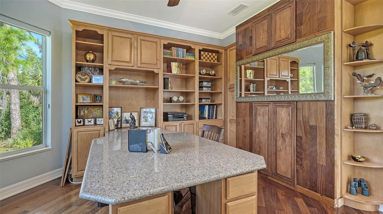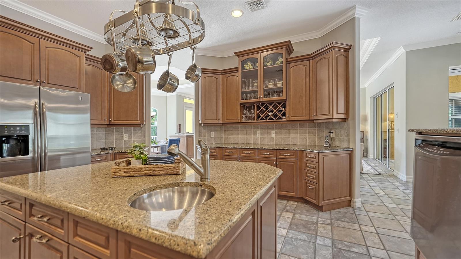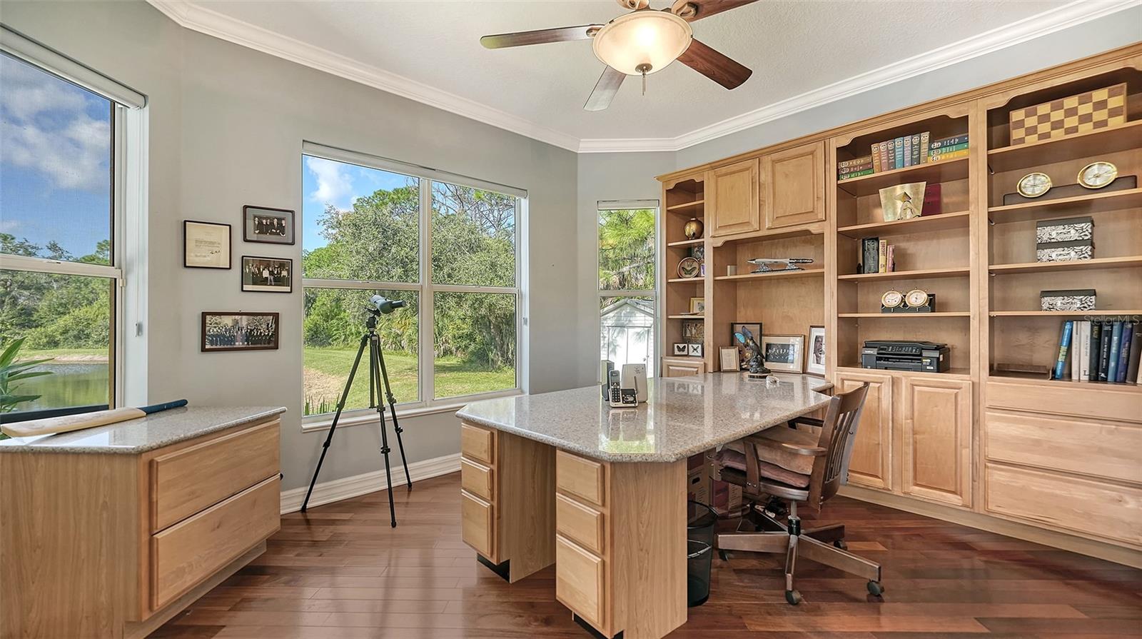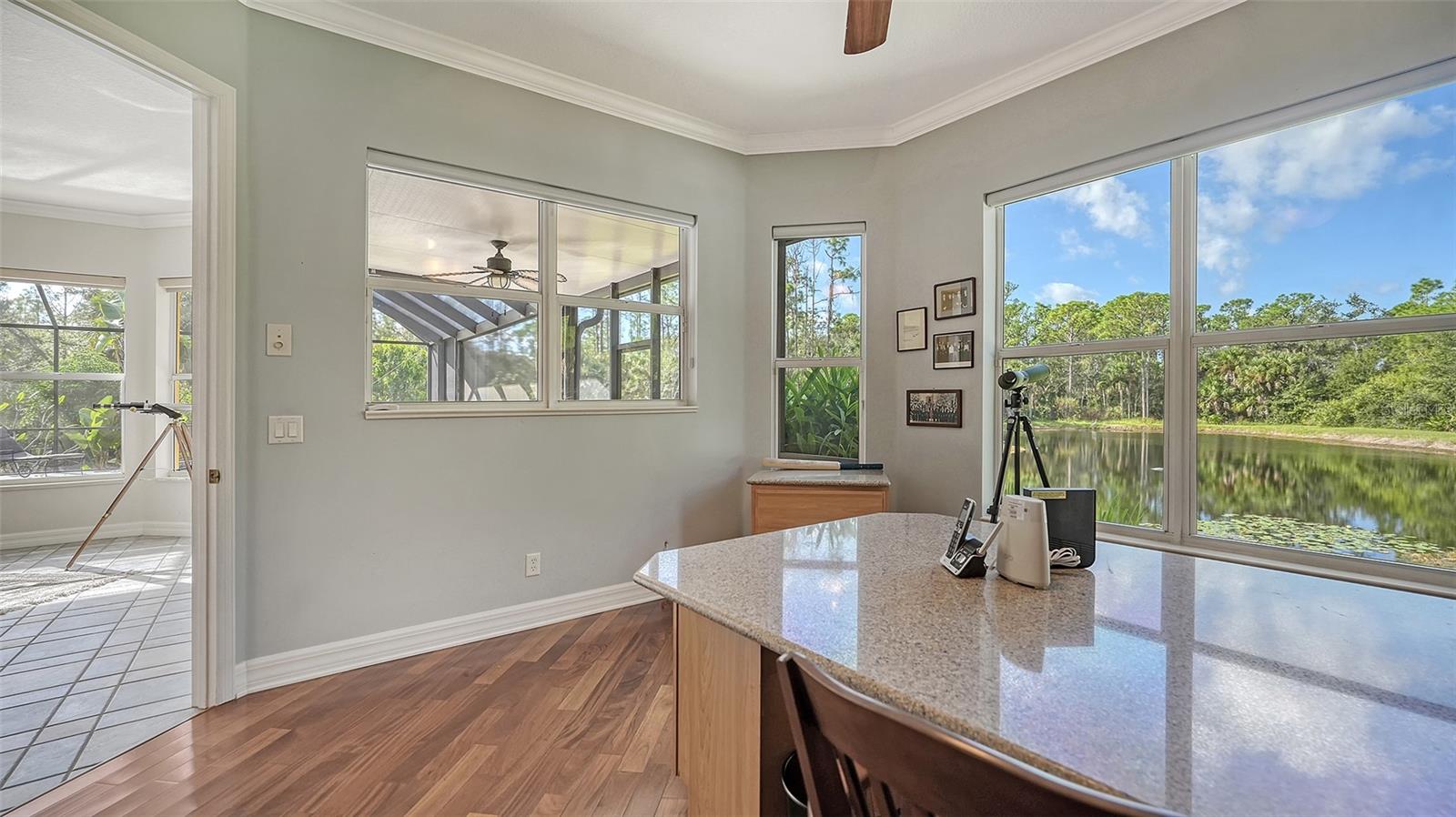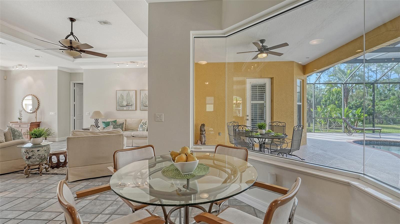 A true gem nestled behind the private gates of Myakka River Trails sits this custom-built masterpiece where luxury, elegance, and the natural beauty of over 7 acres converge in perfect harmony. This stunning home boasts four bedrooms, three bathrooms, a den/office, and a bonus room, offering spacious living and endless possibilities. 8-foot doors, crown molding, soaring ceilings, along with many architectural upgrades can be found throughout, captivating you with its sophistication.The heart of this home is undoubtedly the open kitchen and family room, designed with entertaining in mind. The kitchen features top-of-the-line appliances, including a GE Monogram 6-burner gas stove, a center island with a bar sink, a built-in wine rack, and more. With an eat-in kitchen and breakfast bar areas, it's a culinary enthusiast's dream.The family room is both voluminous and inviting, with a built-in entertainment center and a two-sided fireplace that can also be enjoyed in the spacious bonus/sitting room. The entire space exudes warmth and comfort, making it perfect for gatherings of family and friends.The master suite is a sanctuary of its own, offering two walk-in closets with built-in shelving and a master bathroom ensuite that leaves nothing to be desired. His and her vanities, water closets, and showers are flooded in natural light and elevate your daily routines to a new level of luxury.This home is not just a masterpiece indoors, but also outdoors. Step onto the expansive lanai and you'll be greeted by an infinity/negative edge pool that appears to merge seamlessly with your very own private lake. The ClearVue pool screening ensures uninterrupted views of the surrounding beauty. Whether you're relaxing under the covered lanai or taking a dip in the pool, this space is an oasis of tranquility.For those who appreciate the practicalities of life, this home has it all. A whole-house generator, RO system, double-pane thermal windows, and central vacuum system are just a few of the thoughtful features that make daily living effortless and enjoyable.With an oversized three-car garage that includes golf cart parking and its own separate entrance, this property has tons of space! Location, Location, Location!! Minutes to Wellen Park, Cool Today Braves Stadium, I-75, Beaches and so much more!! Upon the completion of River Road, there will be a path for biking, golf carts and walking too!