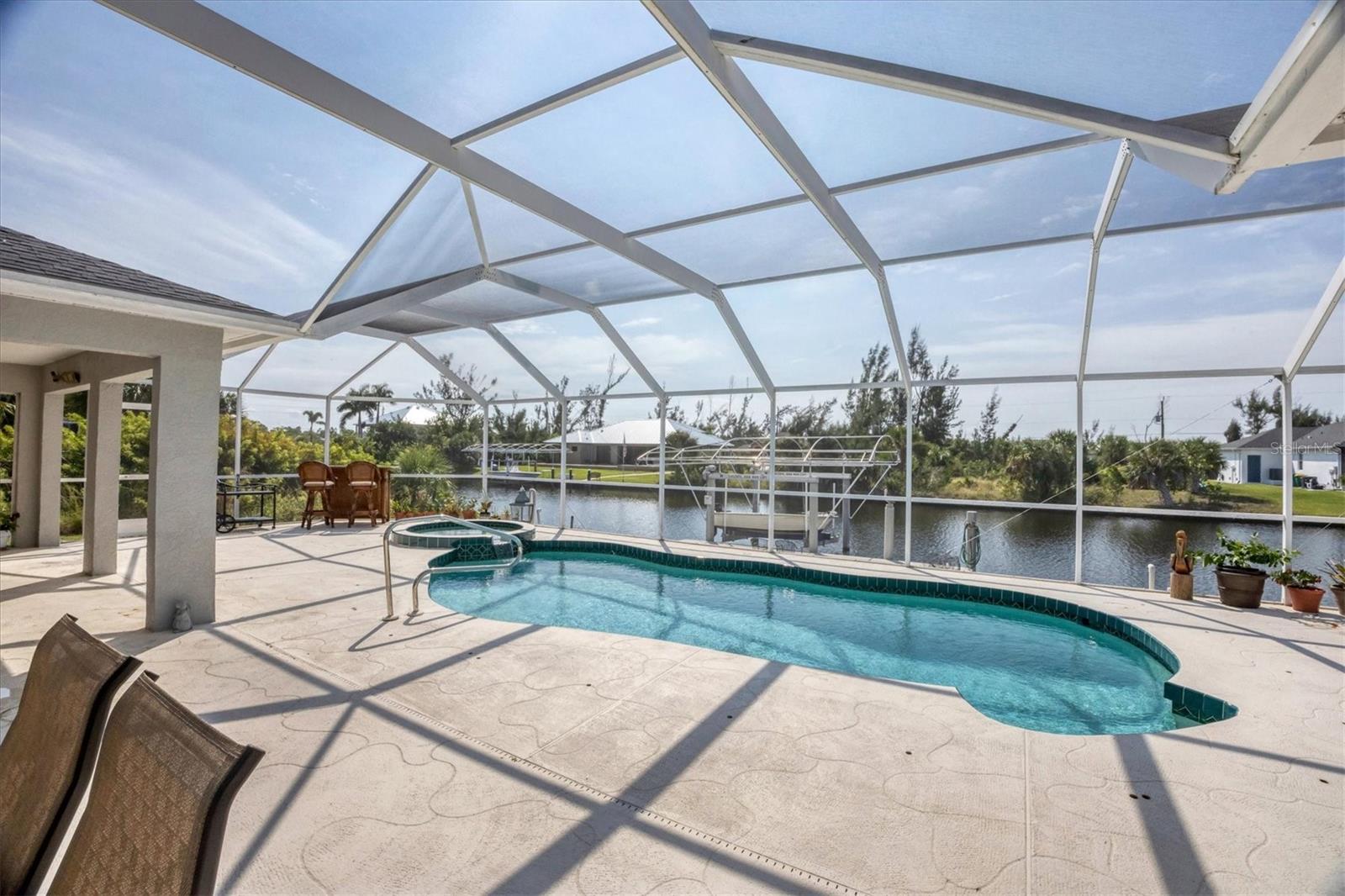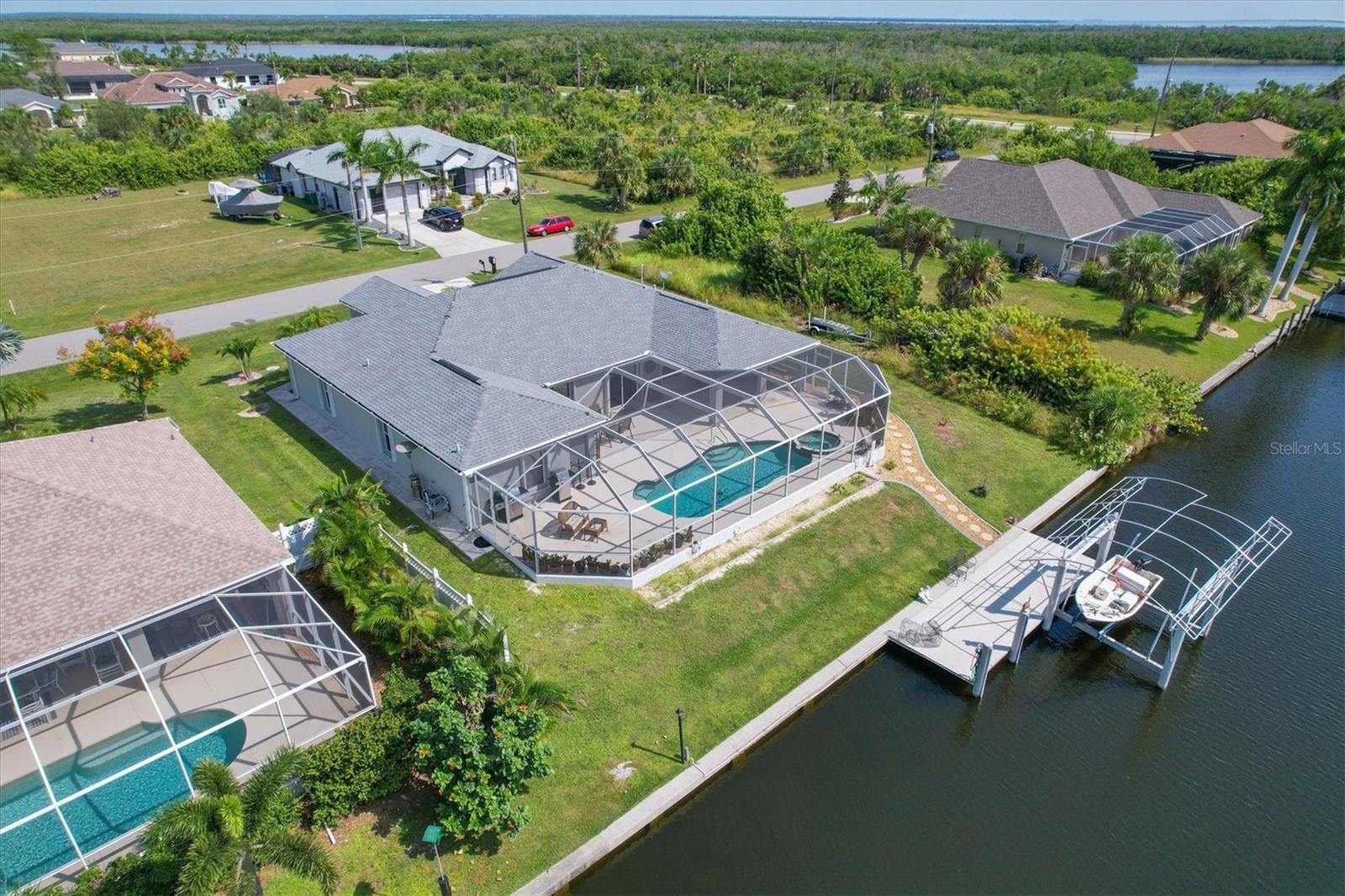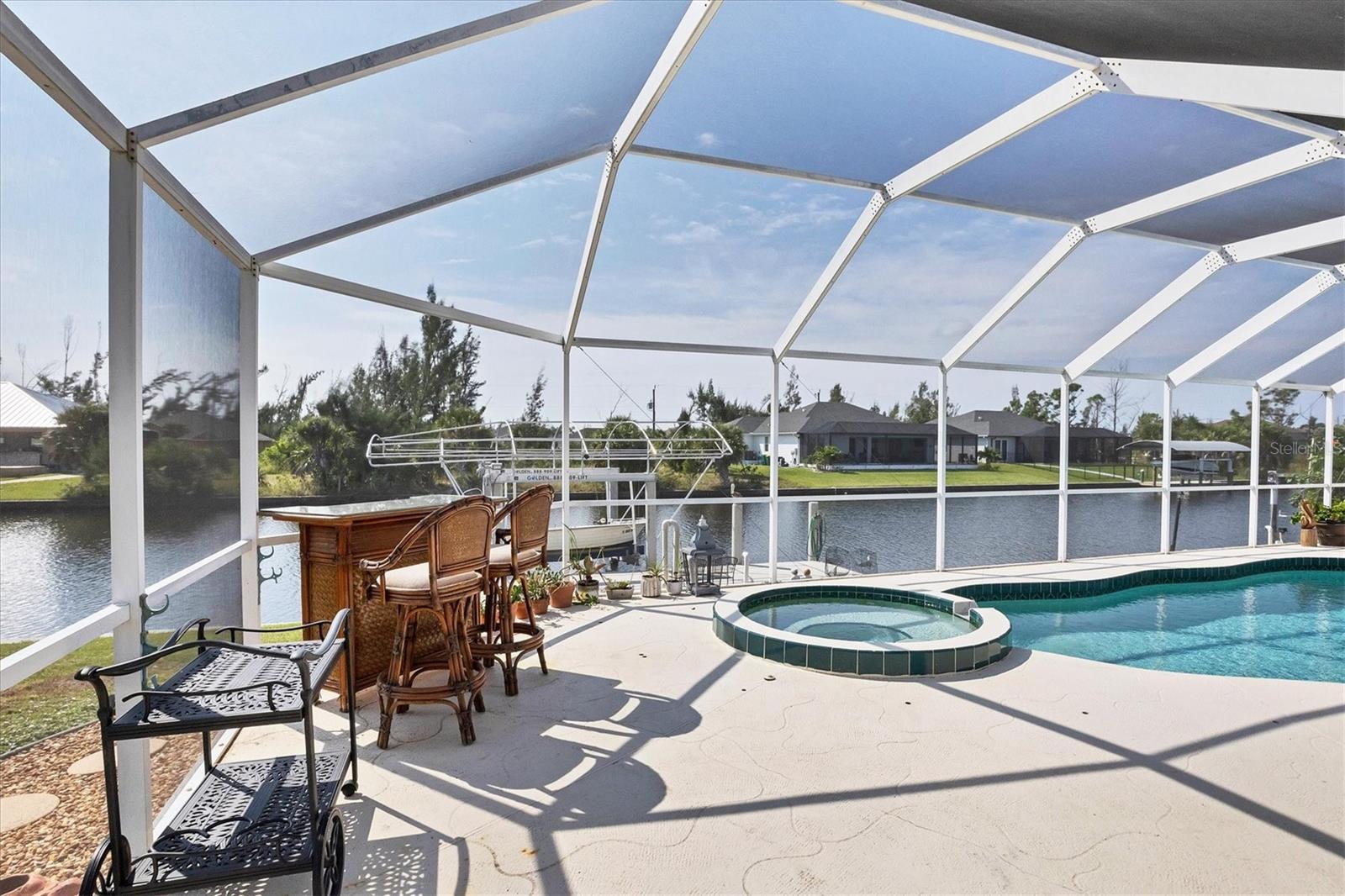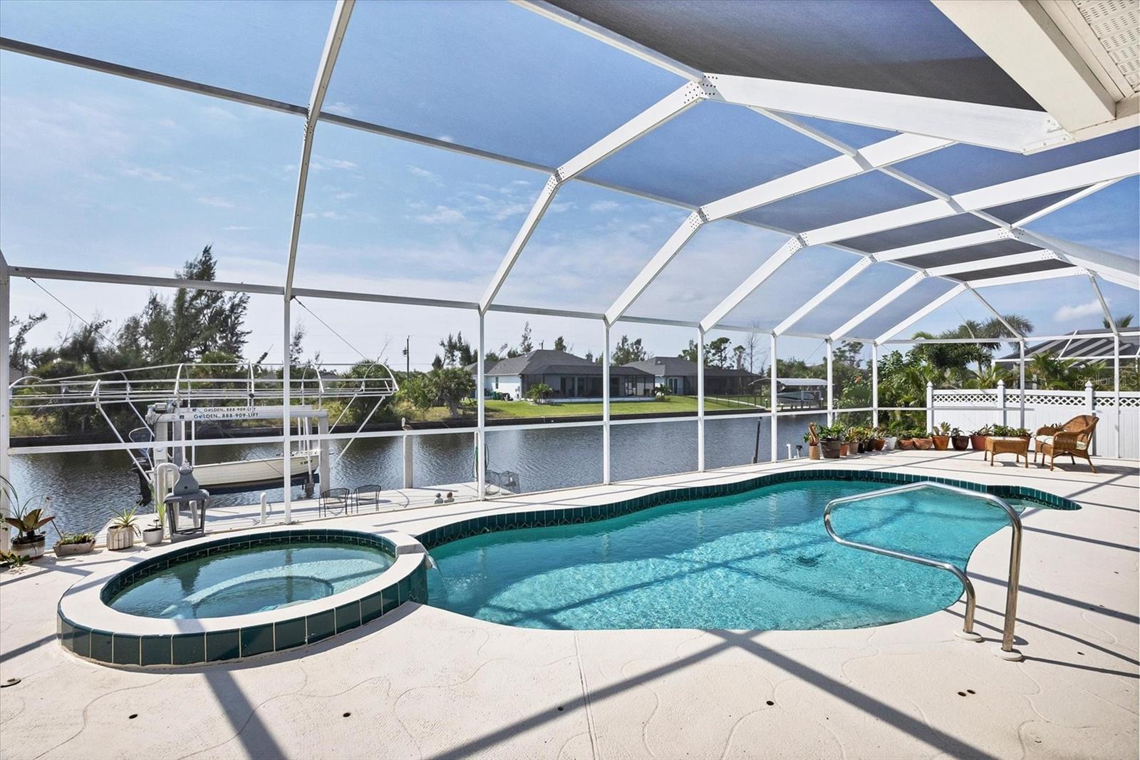 Amazing opportunity to own a private piece of paradise. This 4 bedroom, 2 bathroom, heated pool and spa home is now available in South Gulf Cove. There is an additional room that is very large and can be easily made into a 5th bedroom or a den/office space but does not have a closet currently. So many features were included in this remodel but a few to mention are luxury vinyl flooring throughout, newer roof installed in 2019, remodeled bathrooms, granite countertops throughout, replaced water pressure lines, updated kitchen with newer stainless steel appliances, accordion hurricane shutters around the whole house, freshly painted interior and exterior, and the list goes on. The most important of all features of this property is your own private concrete deck with a 80 foot seawall that includes a 10,000 lb capacity boat lift with canopy, that provides easy access to the Charlotte Harbor and the Gasparilla Sound where some of the finest boating and fishing that Florida has to offer are found. You are only one lock away from the full access to the water, which is about a 5 minute boat ride. That alone is a boater's dream in this area. South Gulf Cove is a sought-after neighborhood of mostly waterfront homes with limited deed restrictions and numerous parks including a boat ramp, master garden park, linear park, playground, and a clubhouse/meeting room for social gatherings. Conveniently located closed to shopping, dining, entertainment, beaches, and Boca Grande. This opportunity will not last long so call and schedule your private showing today.