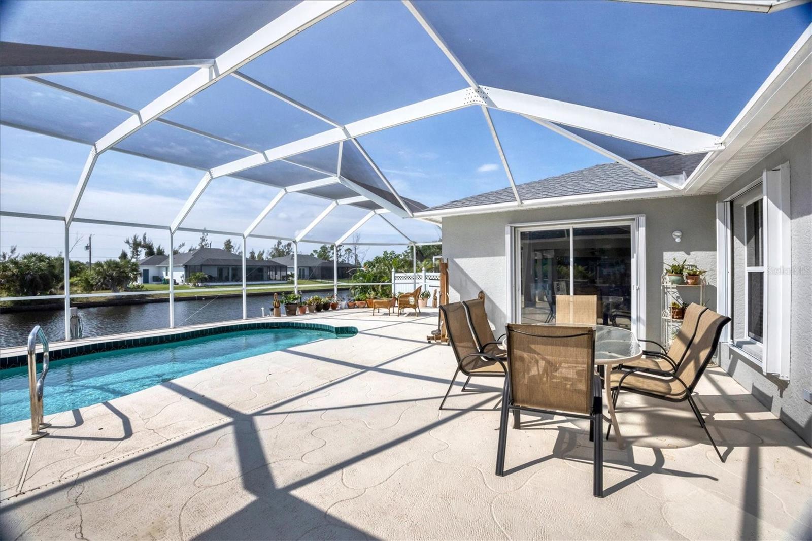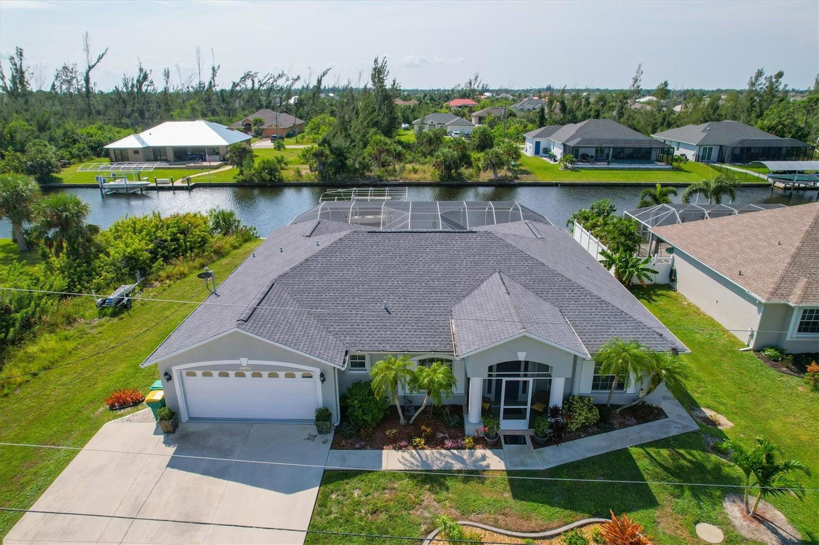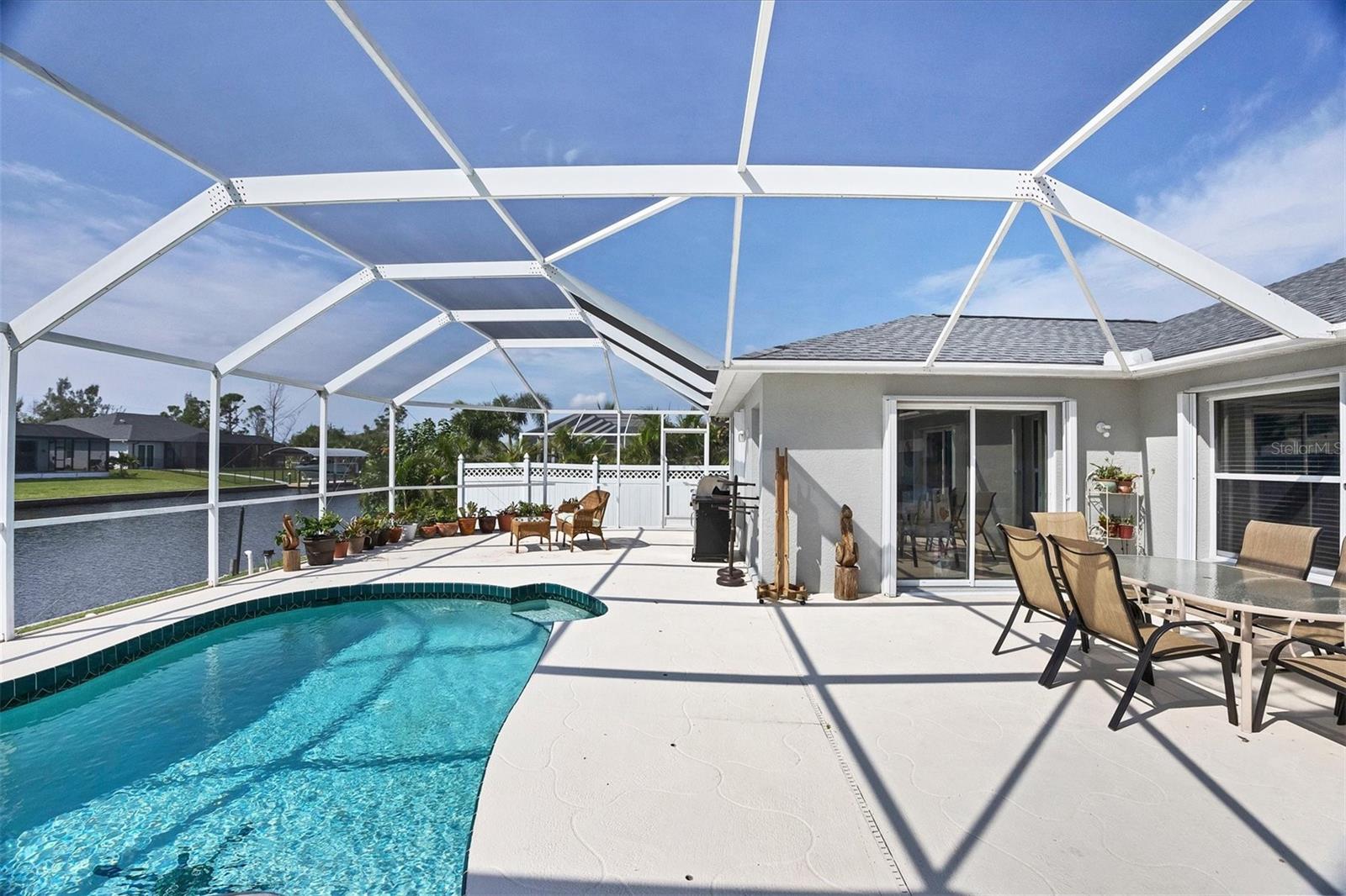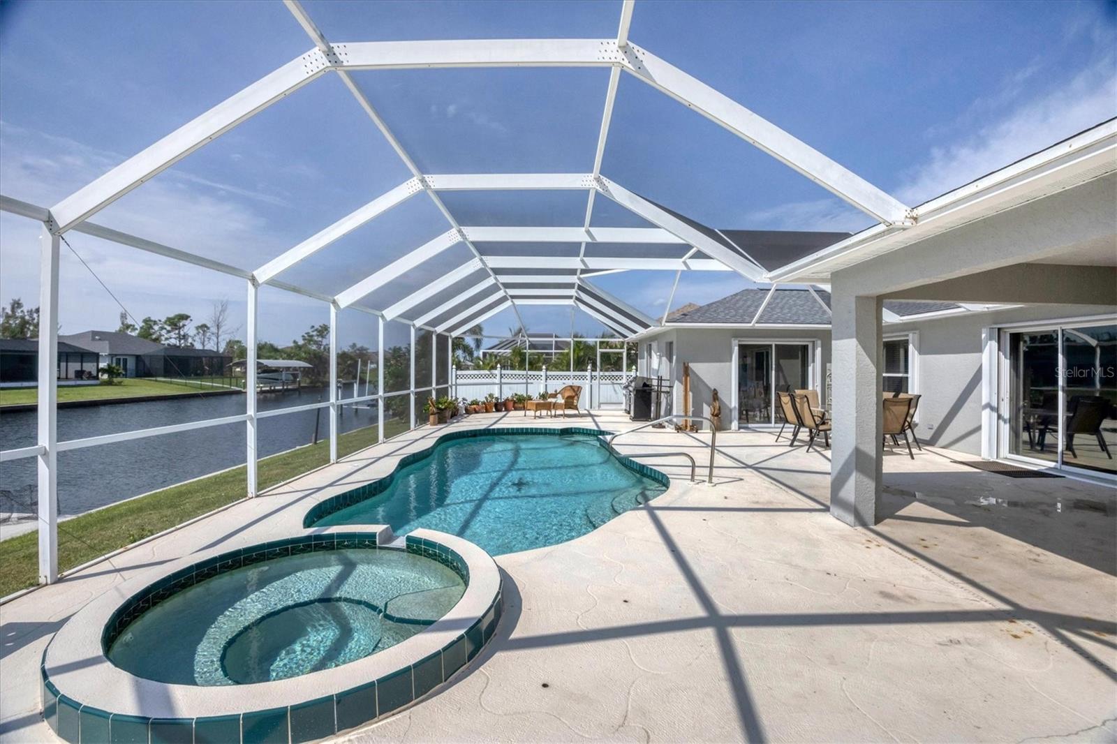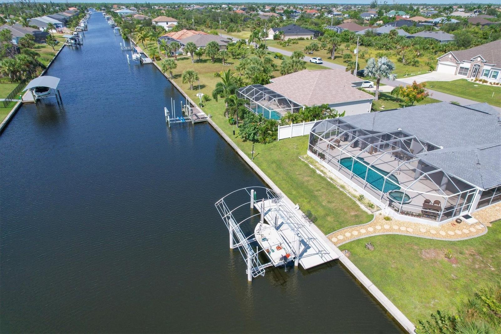 Amazing opportunity to own a private piece of paradise. This 4 bedroom, 2 bathroom, heated pool and spa home is now available in South Gulf Cove. There is an additional room that is very large and can be easily made into a 5th bedroom or a den/office space but does not have a closet currently. So many features were included in this remodel but a few to mention are luxury vinyl flooring throughout, newer roof installed in 2019, remodeled bathrooms, granite countertops throughout, replaced water pressure lines, updated kitchen with newer stainless steel appliances, accordion hurricane shutters around the whole house, freshly painted interior and exterior, and the list goes on. The most important of all features of this property is your own private concrete deck with a 80 foot seawall that includes a 10,000 lb capacity boat lift with canopy, that provides easy access to the Charlotte Harbor and the Gasparilla Sound where some of the finest boating and fishing that Florida has to offer are found. You are only one lock away from the full access to the water, which is about a 5 minute boat ride. That alone is a boater's dream in this area. South Gulf Cove is a sought-after neighborhood of mostly waterfront homes with limited deed restrictions and numerous parks including a boat ramp, master garden park, linear park, playground, and a clubhouse/meeting room for social gatherings. Conveniently located closed to shopping, dining, entertainment, beaches, and Boca Grande. This opportunity will not last long so call and schedule your private showing today.