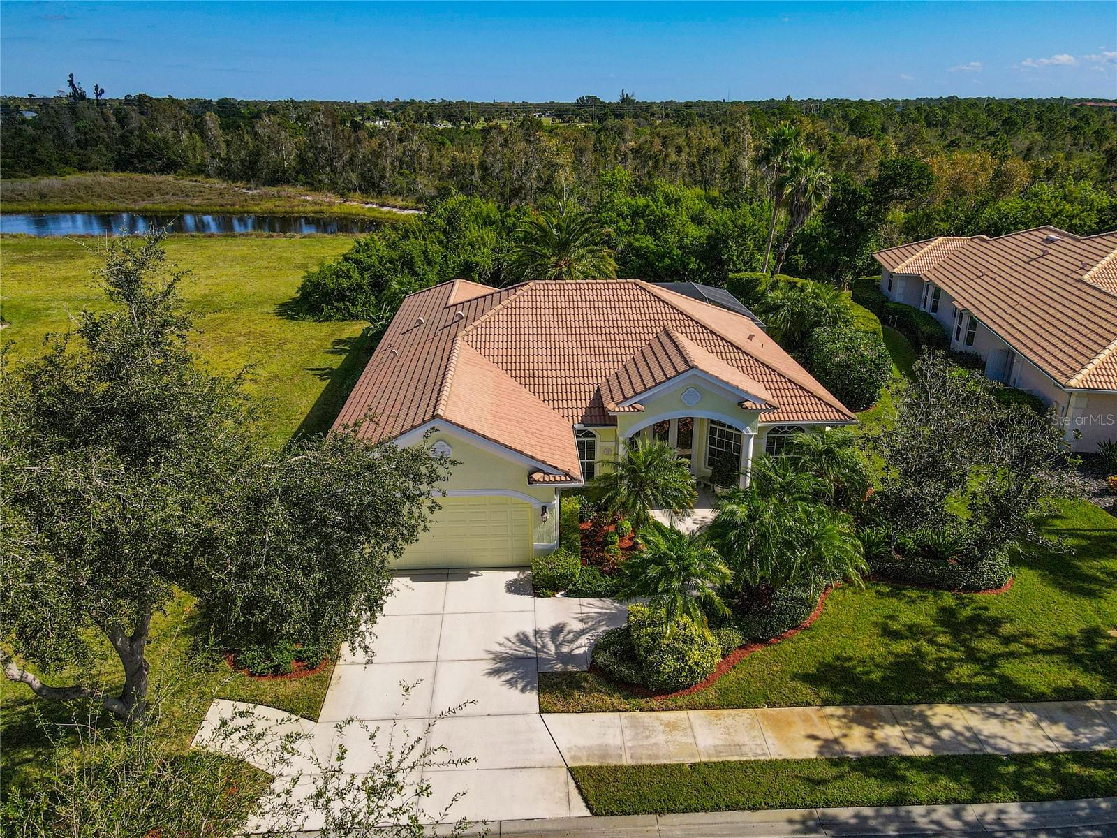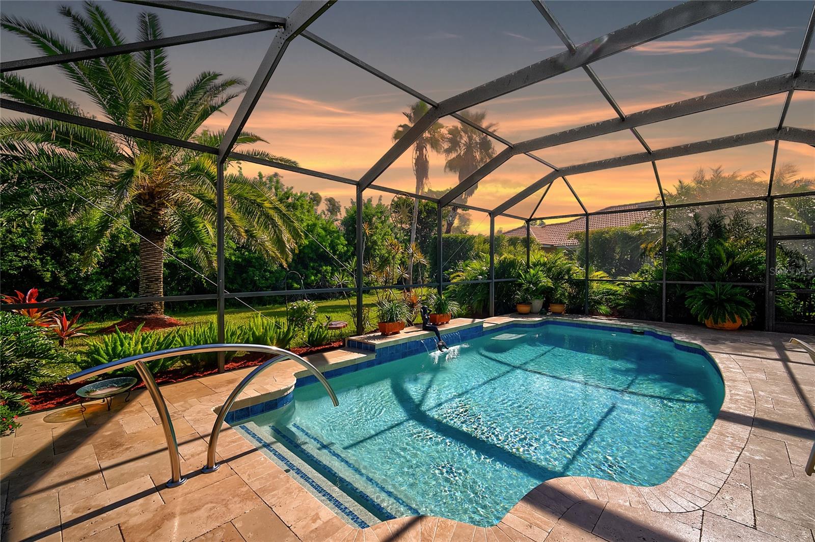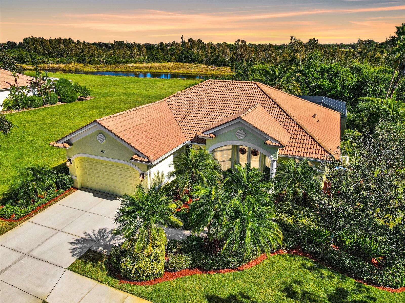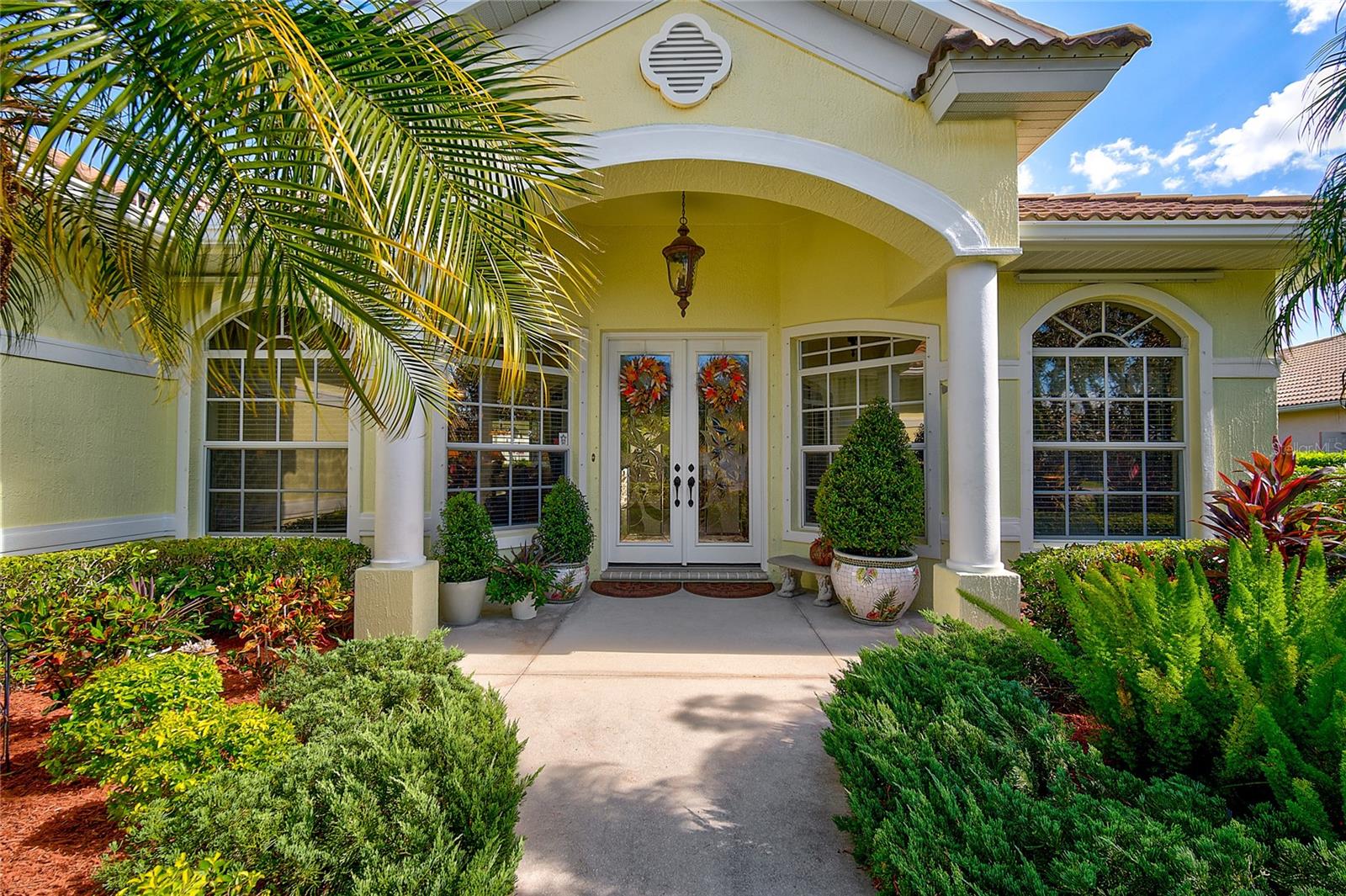 New and Improved Price! Welcome to your dream home in the beautiful Venetia Community! This stunning single-family residence boasts 3 bedrooms and 2 baths, offering a perfect blend of comfort and elegance. As you step inside, the spacious family room and dining area greet you, featuring high ceilings and exquisite crown molding that add a touch of sophistication. The living room is a haven of natural light, courtesy of sliding doors leading out to the back lanai. The well-appointed kitchen is complete with a breakfast bar and an adjacent eating space featuring Bay windows overlooking the inviting pool. The primary suite is a retreat within itself, offering panoramic views of the backyard and pool. It includes an en suite bathroom, two generously sized closets, high ceilings, dual sinks, a private toilet, a linen closet, a large spa tub, and a spacious walk-in shower. On the other side of the residence, two additional bedrooms await, each adorned with windows that flood the space with invigorating natural light. The second bathroom offers relaxation, complete with a shower and tub combination. The level of luxury is elevated with the inclusion of a water softener and a convenient in-home laundry room. Step outside to the beautifully landscaped exterior, where a screened-in lanai awaits with tranquil nature views and new travertine tiles. The large pool becomes the centerpiece of your outdoor oasis, complemented by an outdoor kitchen space equipped with a sink, ample counter space, a mini-fridge, a TV, and an outdoor propane firepit. Your peace of mind is ensured with hurricane shutters throughout the home, including automatic ones on the sliding glass door leading to the lanai . The 2-car garage provides ample parking and storage space. Beyond the bounds of your property, Venetia unfolds as a gated community with a wealth of amenities. The clubhouse is a focal point, offering residents access to a large pool, hot tub, and courts for basketball, pickleball, bocce, shuffleboard, and tennis. Social activities abound, with groups for Mah Jongg, Bridge, Poker, Euchre, book clubs, artists workshops, and sports enthusiasts. Monthly events, including dinners, outings, and special holiday celebrations, create a vibrant and welcoming community atmosphere. Don't miss the opportunity to make this exceptional property in the heart of Venetia your forever home! Please see 3D Tour and Video