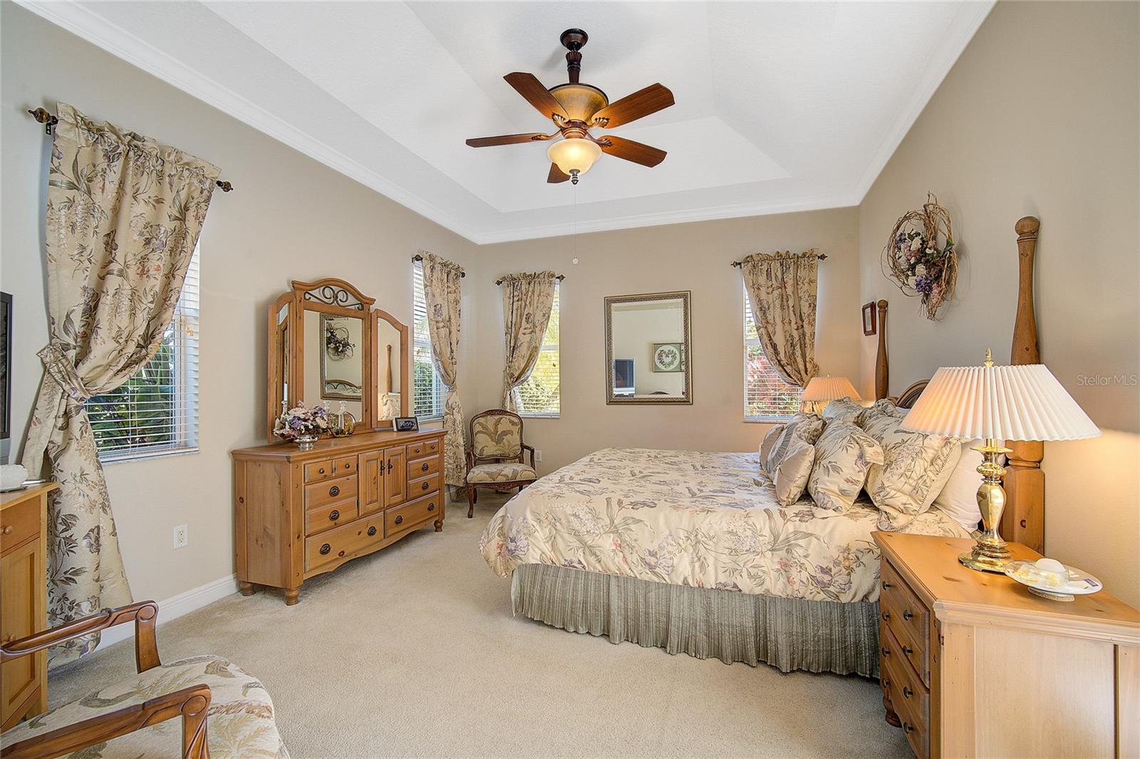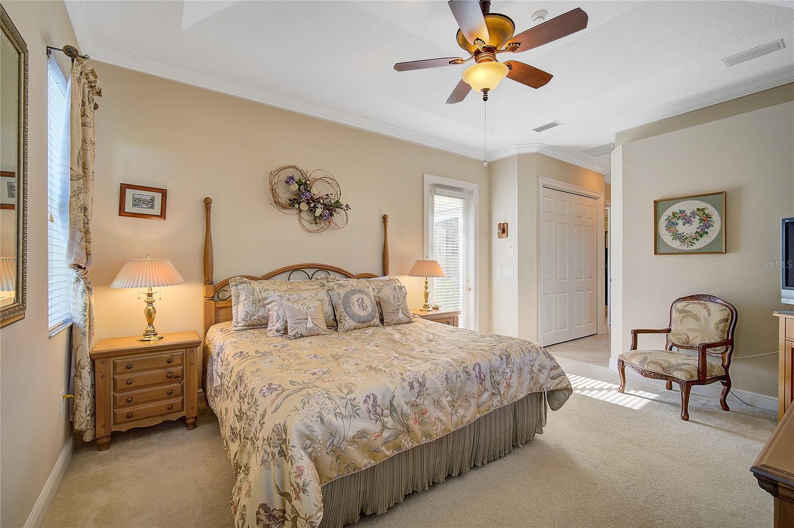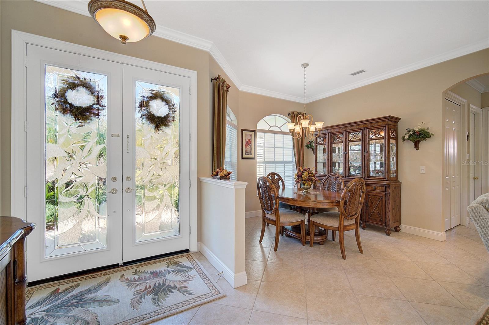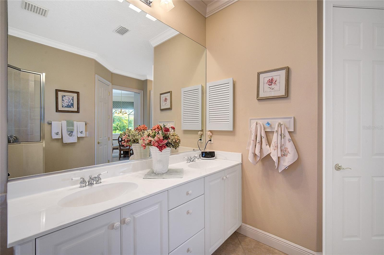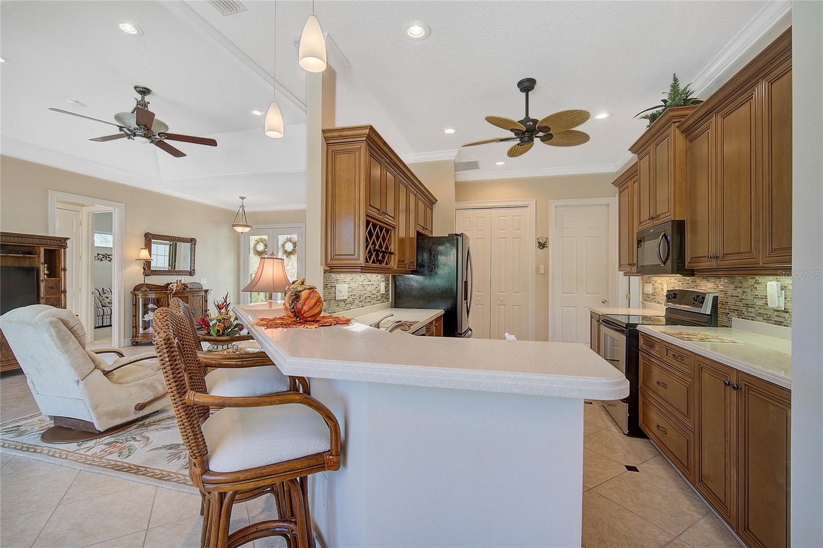 New and Improved Price! Welcome to your dream home in the beautiful Venetia Community! This stunning single-family residence boasts 3 bedrooms and 2 baths, offering a perfect blend of comfort and elegance. As you step inside, the spacious family room and dining area greet you, featuring high ceilings and exquisite crown molding that add a touch of sophistication. The living room is a haven of natural light, courtesy of sliding doors leading out to the back lanai. The well-appointed kitchen is complete with a breakfast bar and an adjacent eating space featuring Bay windows overlooking the inviting pool. The primary suite is a retreat within itself, offering panoramic views of the backyard and pool. It includes an en suite bathroom, two generously sized closets, high ceilings, dual sinks, a private toilet, a linen closet, a large spa tub, and a spacious walk-in shower. On the other side of the residence, two additional bedrooms await, each adorned with windows that flood the space with invigorating natural light. The second bathroom offers relaxation, complete with a shower and tub combination. The level of luxury is elevated with the inclusion of a water softener and a convenient in-home laundry room. Step outside to the beautifully landscaped exterior, where a screened-in lanai awaits with tranquil nature views and new travertine tiles. The large pool becomes the centerpiece of your outdoor oasis, complemented by an outdoor kitchen space equipped with a sink, ample counter space, a mini-fridge, a TV, and an outdoor propane firepit. Your peace of mind is ensured with hurricane shutters throughout the home, including automatic ones on the sliding glass door leading to the lanai . The 2-car garage provides ample parking and storage space. Beyond the bounds of your property, Venetia unfolds as a gated community with a wealth of amenities. The clubhouse is a focal point, offering residents access to a large pool, hot tub, and courts for basketball, pickleball, bocce, shuffleboard, and tennis. Social activities abound, with groups for Mah Jongg, Bridge, Poker, Euchre, book clubs, artists workshops, and sports enthusiasts. Monthly events, including dinners, outings, and special holiday celebrations, create a vibrant and welcoming community atmosphere. Don't miss the opportunity to make this exceptional property in the heart of Venetia your forever home! Please see 3D Tour and Video