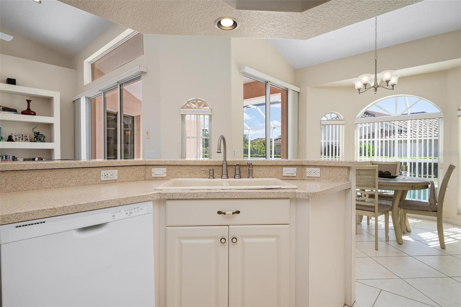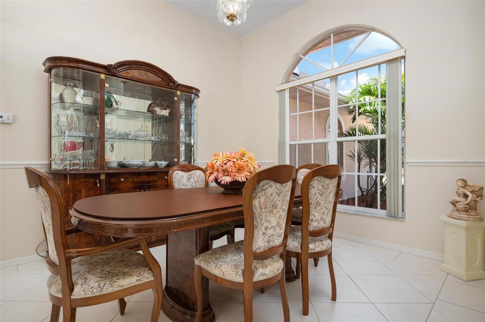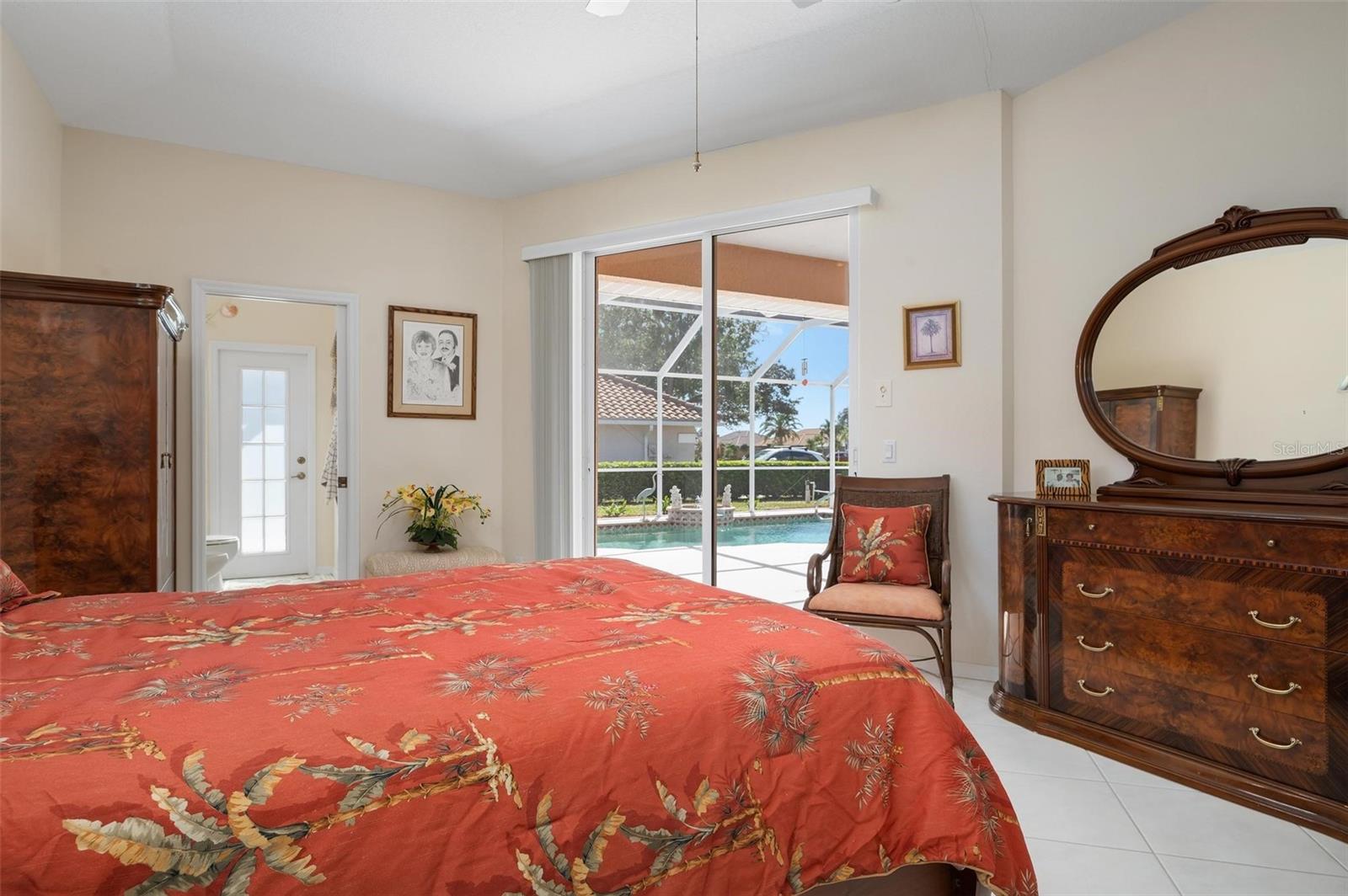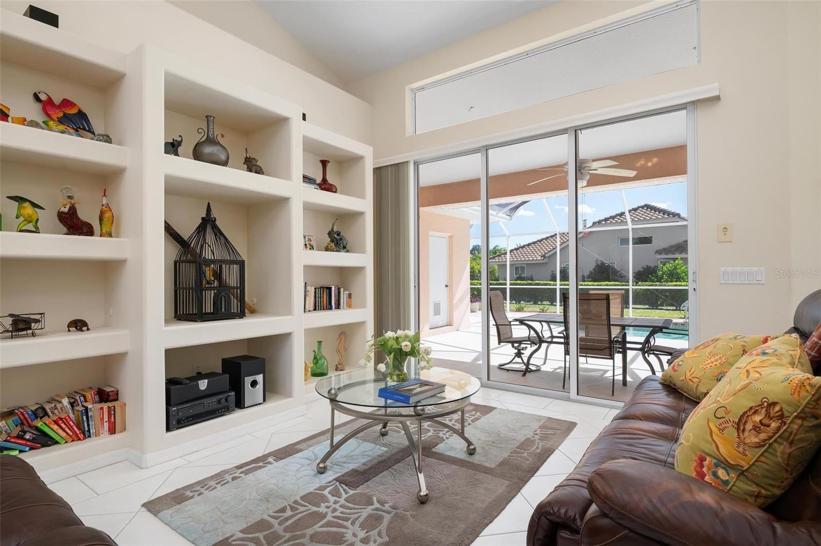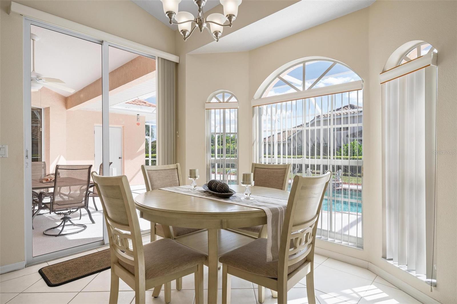 Nestled in the desirable Manors of Chestnut Creek, this impressive custom pool home offers three bedrooms and two and a half baths on an oversized corner lot. The front of the residence exudes curb appeal with a circular drive and welcoming double leaded glass doors. Upon entry, you're greeted by a spacious great room featuring cathedral ceilings and expansive sliders that open up to a sizable lanai and sparkling caged pool. The interior boasts an open, airy, and bright split floor plan, adorned with tasteful tile throughout, a testament to the care and attention of the original owner. The Grecian style pool enjoys all-day sun thanks to its southern exposure, providing an inviting outdoor space for relaxation, exercise, or gatherings. The Manors of Chestnut Creek is a community with a lot to offer, including a low HOA fee and no CDD fees. This prime location places you within a 10-15 minute drive of some of the area's most sought-after attractions, such as pristine beaches, Downtown Venice, Downtown Wellen Park, the Braves Stadium, and a multitude of shopping and dining destinations. Whether you're seeking a comfortable family home or a serene retreat for yourself, this property combines a beautiful setting with convenience, making it an attractive option for those looking to enjoy the Venice lifestyle to the fullest.