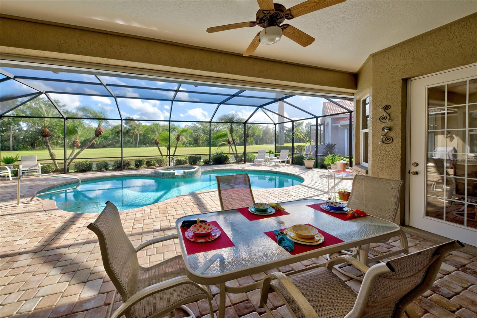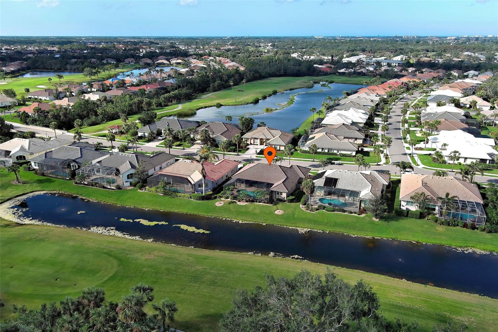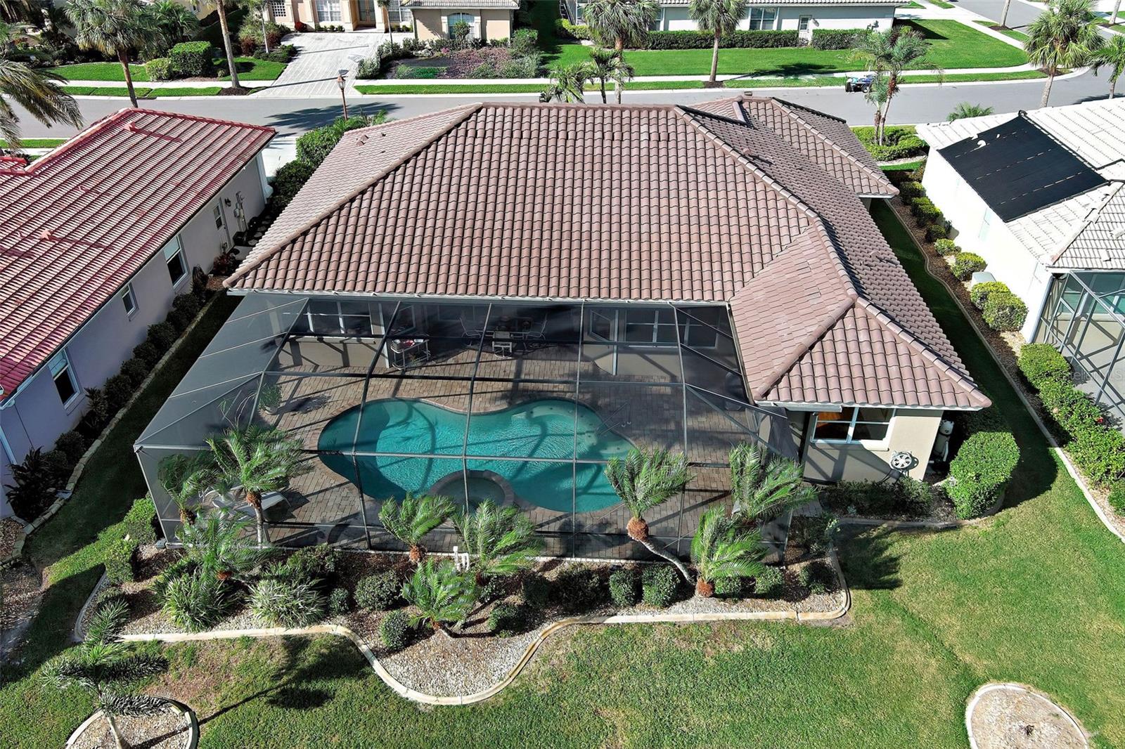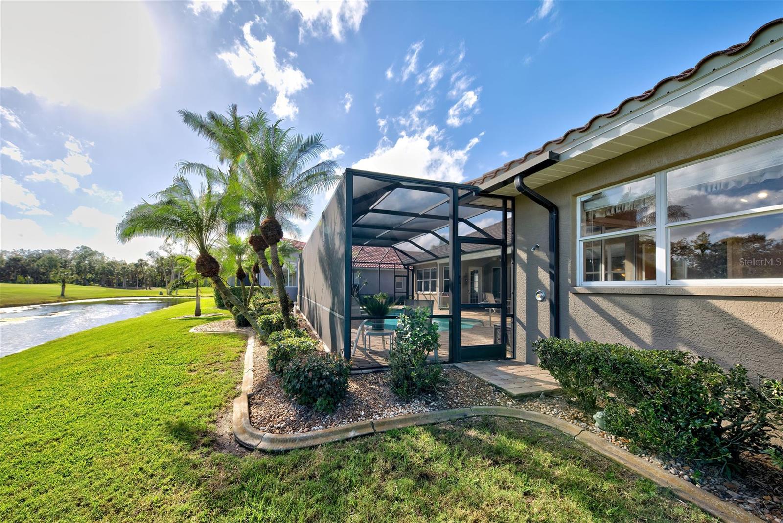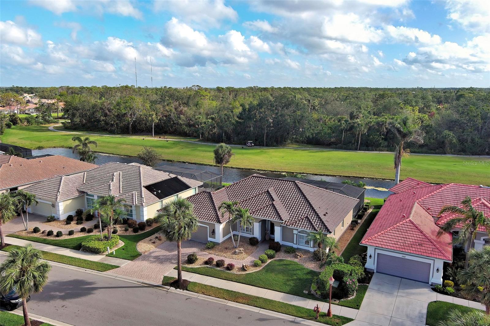 WOW - SIGNIFICANT PRICE REDUCTION, PRICED TO SELL AND MOTIVATED SELLER! Tremendous value with BRAND NEW TILE ROOF with transferable warranty and mesmerizing water, golf and preserve views! This beautifully maintained POOL home with over 2,241 feet of exquisite living space offers 3 large bedrooms, 2 bathrooms, an over-sized 2 car garage (4 extra feet) and beautiful pool and spa. This elegant home welcomes you with luxury from the moment you step into the foyer through double-leaded glass doors, where expansive water and golf views captivate the eye. You will appreciate the open and split floorplan, the soaring 12-foot ceilings, classy crown molding throughout, new AC (2022) and the transom windows which allow an abundance of natural light to flood the home. Entertain with ease on your private lanai with gorgeous, pebble tech pool or savor a cup of coffee, watching the sun rise over the lake and golf course while listening to the soothing waterfall. Chefs will love the stylish kitchen which offers stainless steel appliances, cabinet pullouts, a huge breakfast bar, under and upper cabinet lighting, lovely backsplash, sunny breakfast nook and pantry. The spacious master suite is a true retreat with tranquil water and golf views, has his and her walk-in closets and the elegant ensuite bath offers double vanities, large tiled, walk in shower and private commode. Guests have plenty of privacy thanks to the guest suite with split floorplan and both bedrooms are generously sized, ensuring maximum comfort, especially with a Murphy bed. Rest easy knowing that the home is not in a flood zone and lanai and front door have electric hurricane shutters. More to love: gutters were just installed, the irrigation system is newer (2022), the pool cage was replaced in 2015, the R19 attic insulation keeps the home cooler, the extended garages' 4 feet can accommodate larger vehicles and all of the lanai furniture and TV in primary bedroom remains. The ever sought after Sawgrass community has no CDD fee, low HOA fees, is an established neighborhood with mature landscaping and 9 holes of Waterford's public (golf is optional) course meandering through the community. Sawgrass is a friendly and active community that boasts a resort style pool, fitness center, pickleball courts and a clubhouse with social events. Start your mornings with a swim in the community's heated pool, a round of golf or some invigorating pickleball with new friends. With easy access to historic Venice Island (4 miles), pristine beaches, many restaurants, golfing, marinas, the new Sarasota Memorial hospital, I-75 and the Wellen Park district, you'll find everything you need right at your doorstep. This fabulous home promises a life of comfort, convenience and fun - make it your home today! Be sure to check out the video.