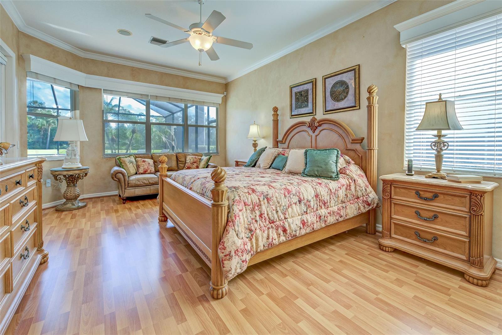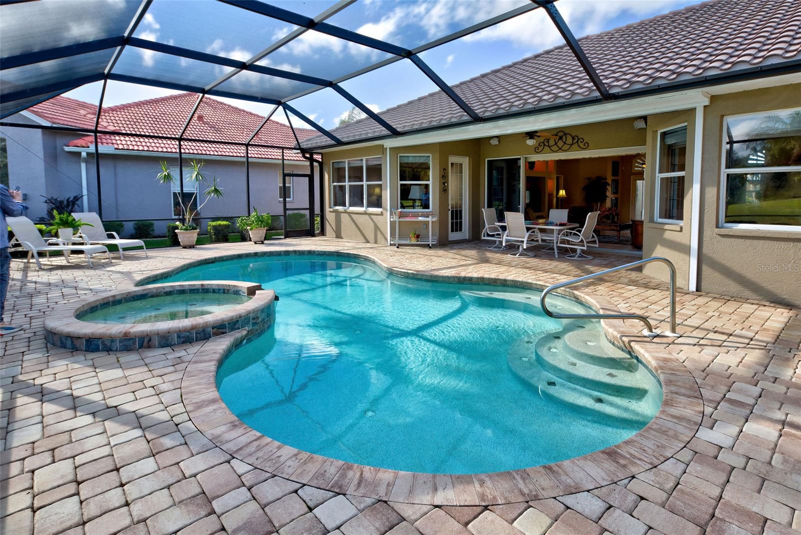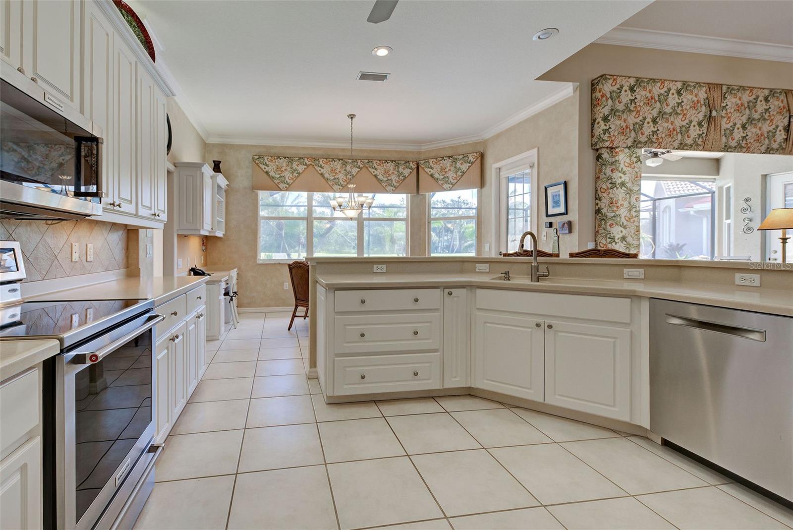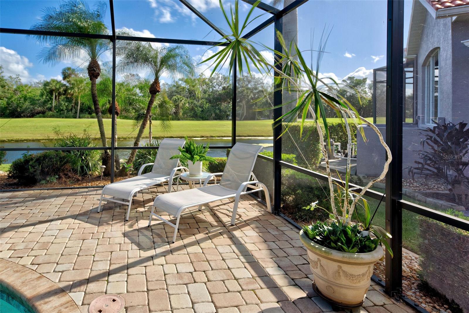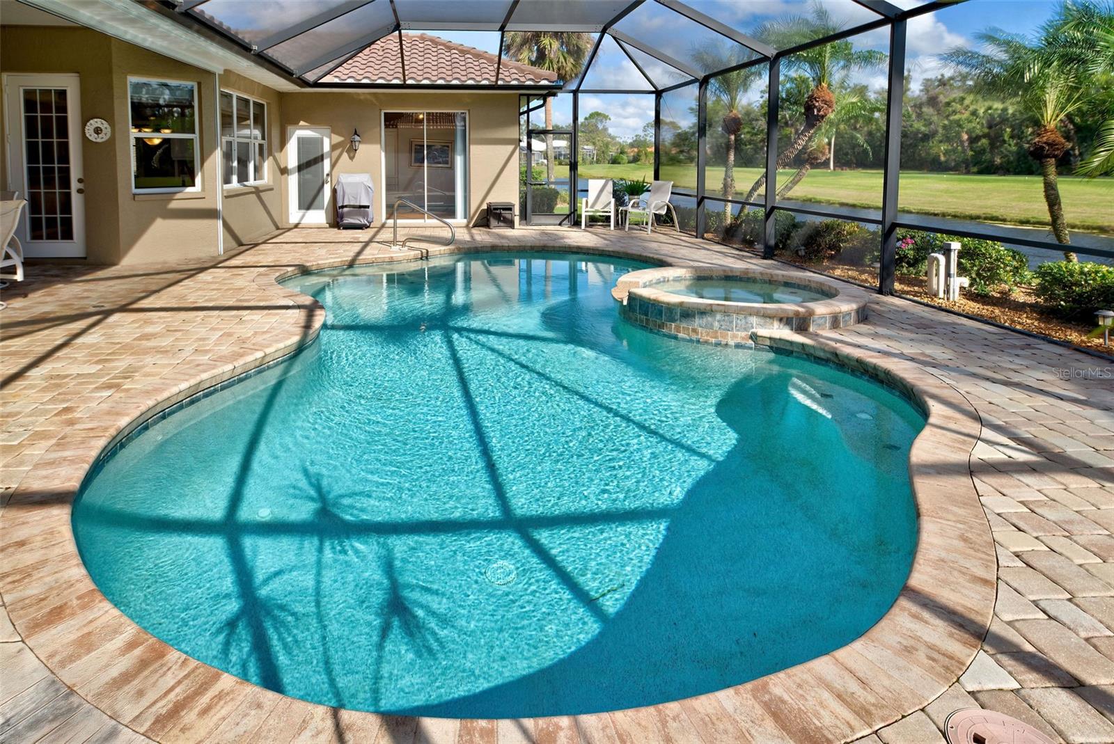 WOW - SIGNIFICANT PRICE REDUCTION, PRICED TO SELL AND MOTIVATED SELLER! Tremendous value with BRAND NEW TILE ROOF with transferable warranty and mesmerizing water, golf and preserve views! This beautifully maintained POOL home with over 2,241 feet of exquisite living space offers 3 large bedrooms, 2 bathrooms, an over-sized 2 car garage (4 extra feet) and beautiful pool and spa. This elegant home welcomes you with luxury from the moment you step into the foyer through double-leaded glass doors, where expansive water and golf views captivate the eye. You will appreciate the open and split floorplan, the soaring 12-foot ceilings, classy crown molding throughout, new AC (2022) and the transom windows which allow an abundance of natural light to flood the home. Entertain with ease on your private lanai with gorgeous, pebble tech pool or savor a cup of coffee, watching the sun rise over the lake and golf course while listening to the soothing waterfall. Chefs will love the stylish kitchen which offers stainless steel appliances, cabinet pullouts, a huge breakfast bar, under and upper cabinet lighting, lovely backsplash, sunny breakfast nook and pantry. The spacious master suite is a true retreat with tranquil water and golf views, has his and her walk-in closets and the elegant ensuite bath offers double vanities, large tiled, walk in shower and private commode. Guests have plenty of privacy thanks to the guest suite with split floorplan and both bedrooms are generously sized, ensuring maximum comfort, especially with a Murphy bed. Rest easy knowing that the home is not in a flood zone and lanai and front door have electric hurricane shutters. More to love: gutters were just installed, the irrigation system is newer (2022), the pool cage was replaced in 2015, the R19 attic insulation keeps the home cooler, the extended garages' 4 feet can accommodate larger vehicles and all of the lanai furniture and TV in primary bedroom remains. The ever sought after Sawgrass community has no CDD fee, low HOA fees, is an established neighborhood with mature landscaping and 9 holes of Waterford's public (golf is optional) course meandering through the community. Sawgrass is a friendly and active community that boasts a resort style pool, fitness center, pickleball courts and a clubhouse with social events. Start your mornings with a swim in the community's heated pool, a round of golf or some invigorating pickleball with new friends. With easy access to historic Venice Island (4 miles), pristine beaches, many restaurants, golfing, marinas, the new Sarasota Memorial hospital, I-75 and the Wellen Park district, you'll find everything you need right at your doorstep. This fabulous home promises a life of comfort, convenience and fun - make it your home today! Be sure to check out the video.