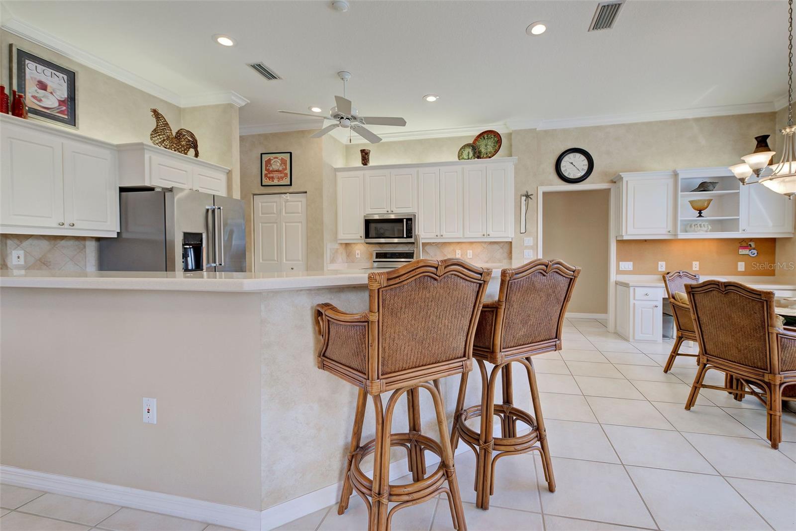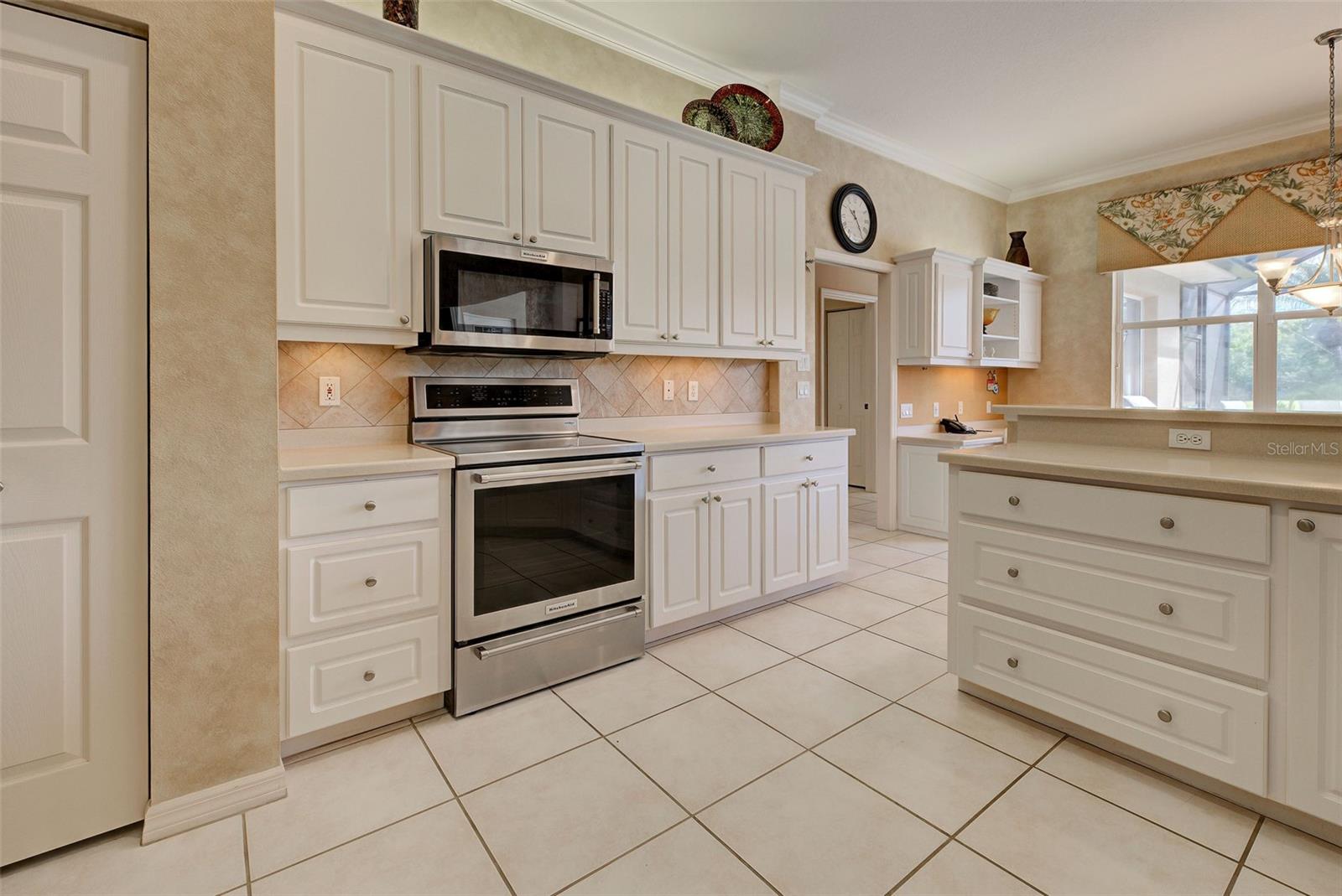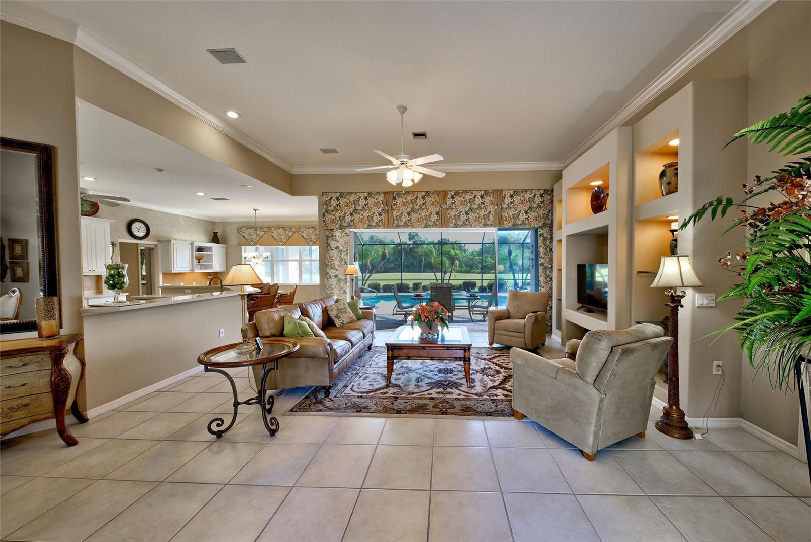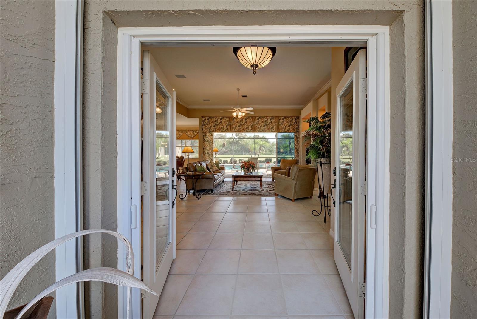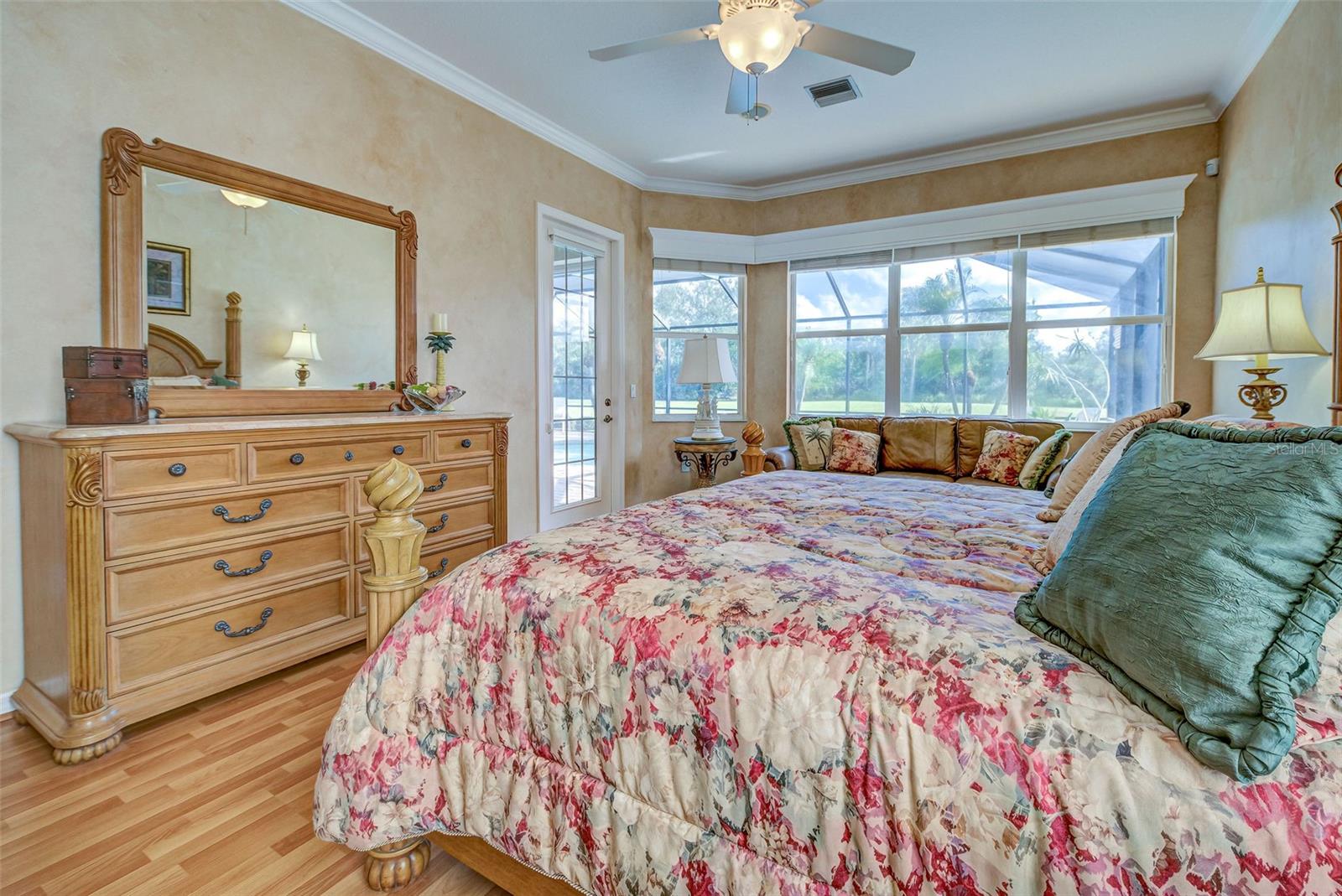 WOW - SIGNIFICANT PRICE REDUCTION, PRICED TO SELL AND MOTIVATED SELLER! Tremendous value with BRAND NEW TILE ROOF with transferable warranty and mesmerizing water, golf and preserve views! This beautifully maintained POOL home with over 2,241 feet of exquisite living space offers 3 large bedrooms, 2 bathrooms, an over-sized 2 car garage (4 extra feet) and beautiful pool and spa. This elegant home welcomes you with luxury from the moment you step into the foyer through double-leaded glass doors, where expansive water and golf views captivate the eye. You will appreciate the open and split floorplan, the soaring 12-foot ceilings, classy crown molding throughout, new AC (2022) and the transom windows which allow an abundance of natural light to flood the home. Entertain with ease on your private lanai with gorgeous, pebble tech pool or savor a cup of coffee, watching the sun rise over the lake and golf course while listening to the soothing waterfall. Chefs will love the stylish kitchen which offers stainless steel appliances, cabinet pullouts, a huge breakfast bar, under and upper cabinet lighting, lovely backsplash, sunny breakfast nook and pantry. The spacious master suite is a true retreat with tranquil water and golf views, has his and her walk-in closets and the elegant ensuite bath offers double vanities, large tiled, walk in shower and private commode. Guests have plenty of privacy thanks to the guest suite with split floorplan and both bedrooms are generously sized, ensuring maximum comfort, especially with a Murphy bed. Rest easy knowing that the home is not in a flood zone and lanai and front door have electric hurricane shutters. More to love: gutters were just installed, the irrigation system is newer (2022), the pool cage was replaced in 2015, the R19 attic insulation keeps the home cooler, the extended garages' 4 feet can accommodate larger vehicles and all of the lanai furniture and TV in primary bedroom remains. The ever sought after Sawgrass community has no CDD fee, low HOA fees, is an established neighborhood with mature landscaping and 9 holes of Waterford's public (golf is optional) course meandering through the community. Sawgrass is a friendly and active community that boasts a resort style pool, fitness center, pickleball courts and a clubhouse with social events. Start your mornings with a swim in the community's heated pool, a round of golf or some invigorating pickleball with new friends. With easy access to historic Venice Island (4 miles), pristine beaches, many restaurants, golfing, marinas, the new Sarasota Memorial hospital, I-75 and the Wellen Park district, you'll find everything you need right at your doorstep. This fabulous home promises a life of comfort, convenience and fun - make it your home today! Be sure to check out the video.