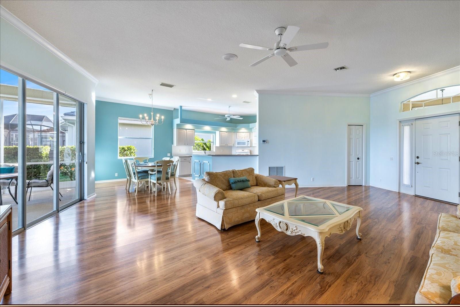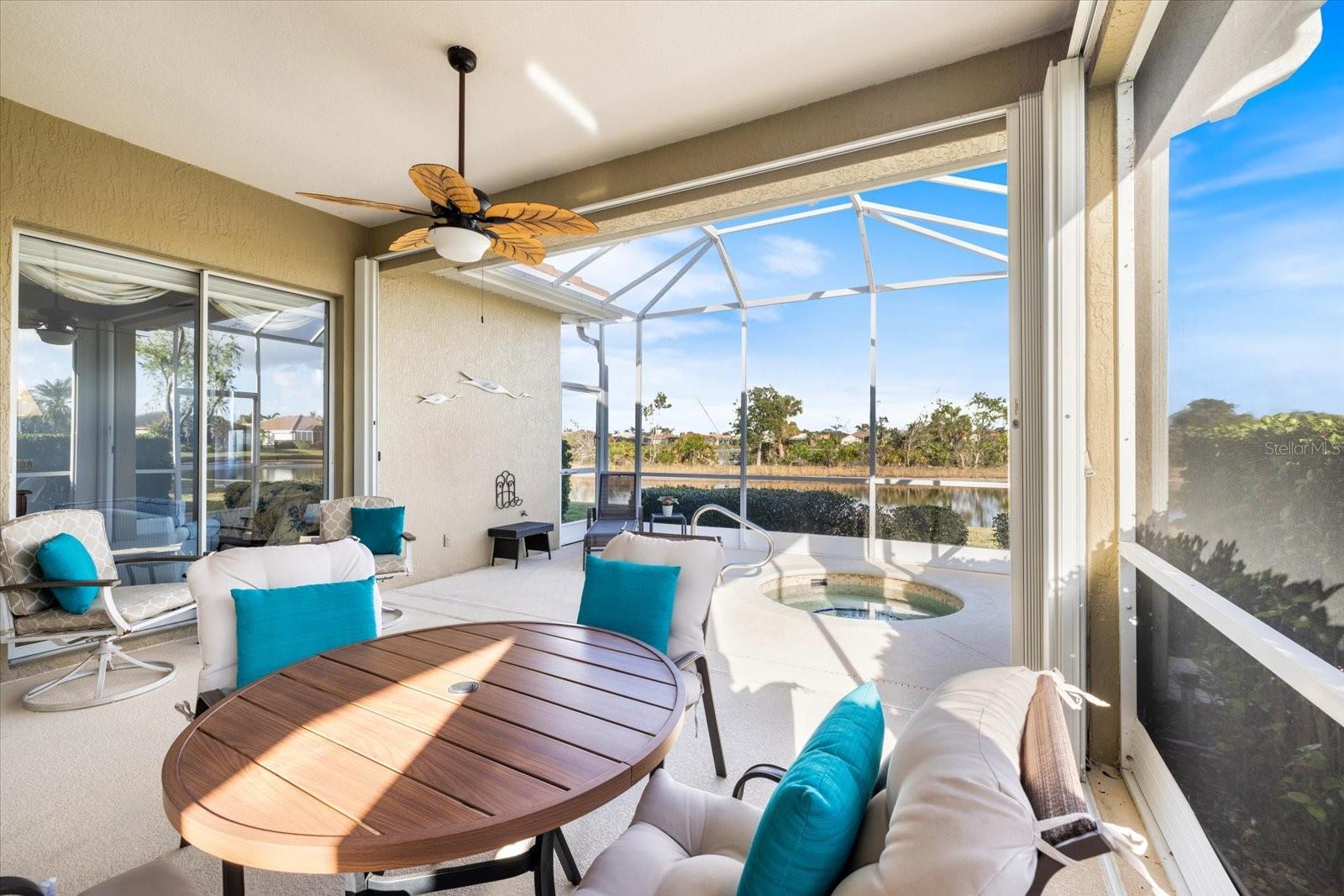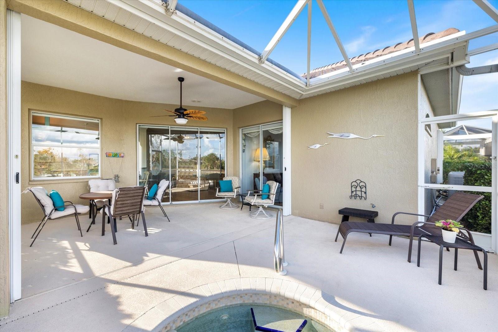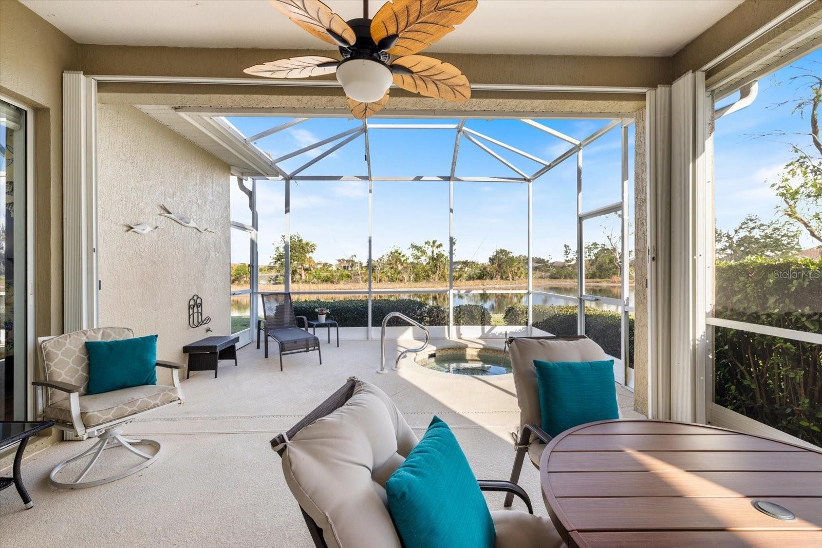 If you've been dreaming of the perfect Florida lifestyle, look no further! This 3BR/2BA/2CG home with an in-ground spa offers beautiful lake views, low HOA fees, NO CDD fees, and is not in a flood zone. A new barrel tile roof completed in December 2024 and accordion hurricane shutters provide peace of mind and long-term savings. The home was recently freshly painted inside in Sherwin-Williams Origami, professionally cleaned from top to bottom, and the old furniture has been removed, making it truly move-in ready.Perfectly located in the award-winning gated community of Pelican Pointe Golf & Country Club--voted "Best of the Best" by Sarasota Magazine--you're just minutes from Venice's stunning beaches, historic downtown, and top-rated amenities. This popular open floor plan features high ceilings, wood laminate flooring, and crown molding. The spacious kitchen includes solid surface counters, a large breakfast bar, and easy access to the laundry room, pantry, and garage.Large windows in the dining area offer panoramic lake views, creating the perfect spot to start your day. The primary suite features a huge walk-in closet with a built-in safe, sliding doors to the lanai, a transom window for extra light, and an updated bath with a jacuzzi tub, separate shower, and private water closet.Additional updates and features include new lighting and fans (2024), accordion hurricane shutters (2011), water heater (2023), and rubber tile garage flooring (2023).Pelican Pointe residents enjoy access to a semi-private 27-hole championship golf course (membership optional), a 22,000 sq. ft. clubhouse with a fitness center, pro shop, elegant dining, a pub, tennis, pickleball, a junior Olympic-size pool, and a vibrant social calendar full of activities.Come experience the best of Florida living in a prime location--with low fees, NO CDD FEES, resort-style amenities, and a beautifully refreshed home ready for you!