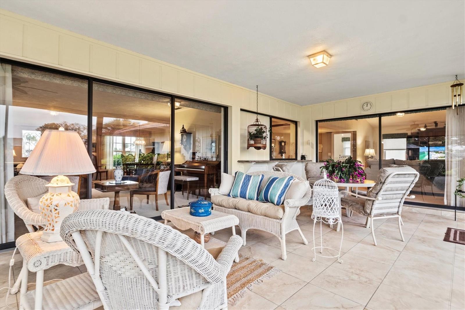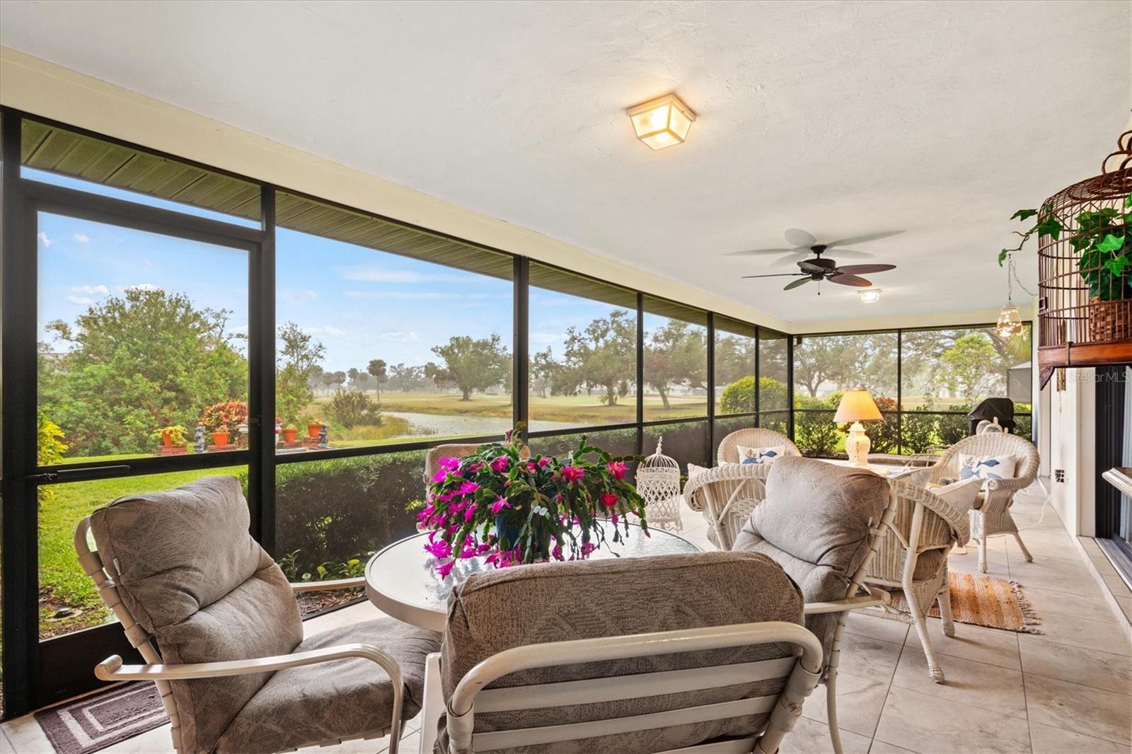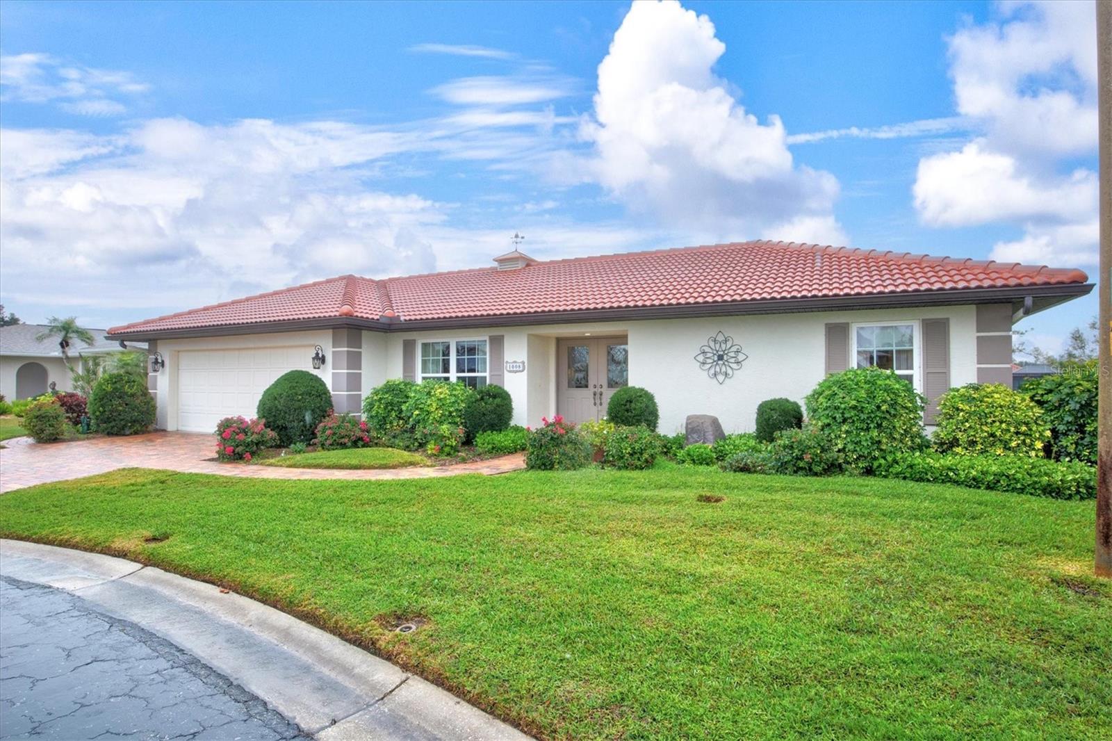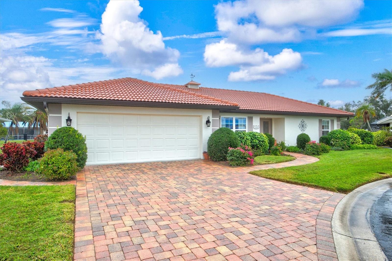 Step outside to discover your private outdoor retreat: a large, tiled, covered and enclosed screened lanai with breathtaking water and golf course views. The exterior of the home exudes curb appeal, with a clean tile roof, meticulous landscaping, freshly sealed paver driveway, and a prime location on a quiet cul-de-sac.