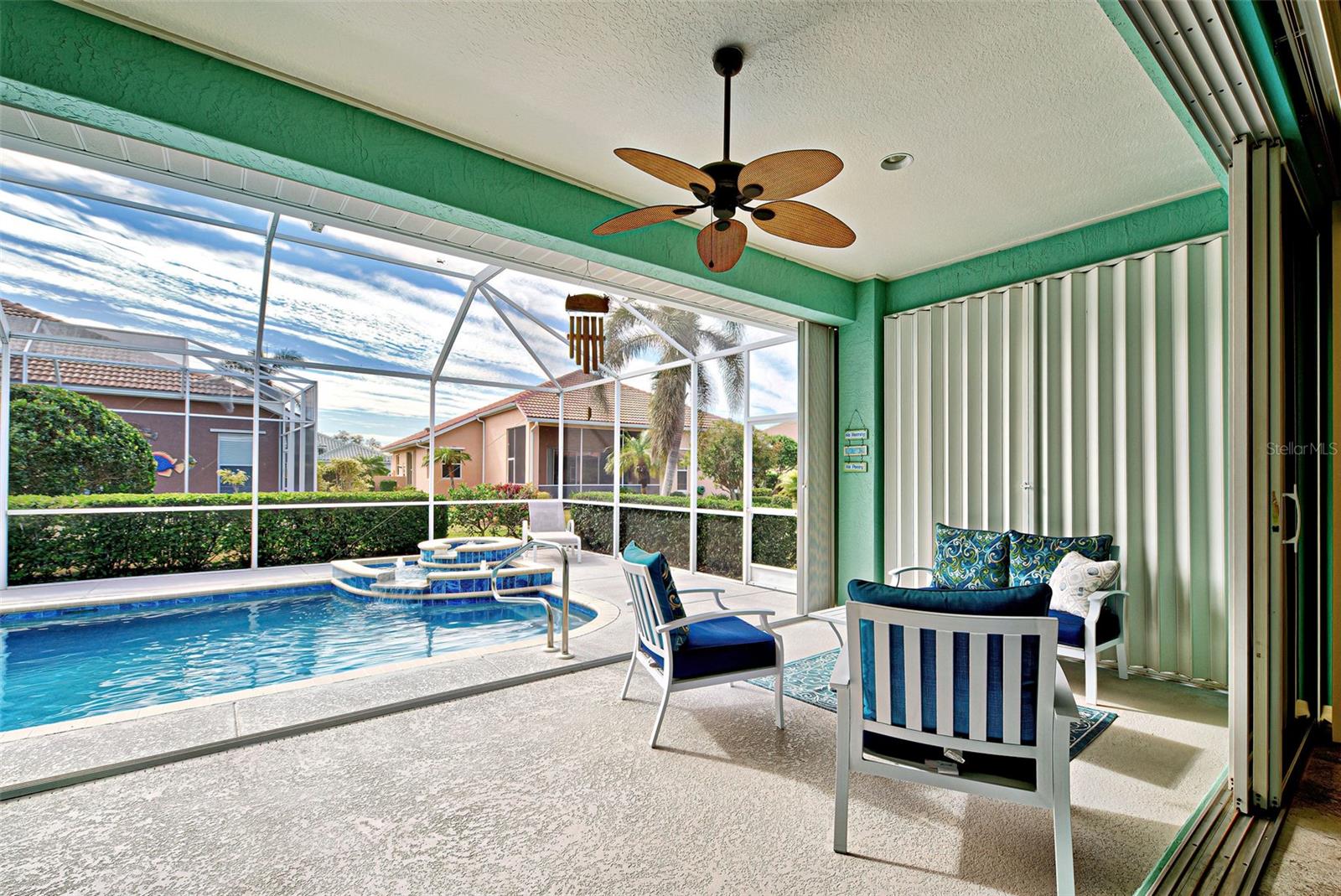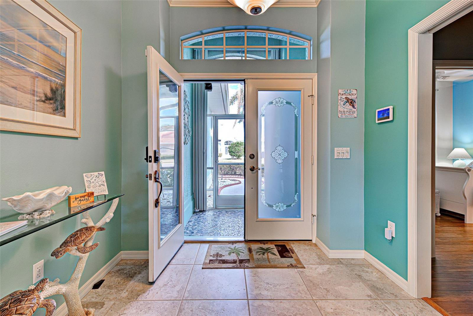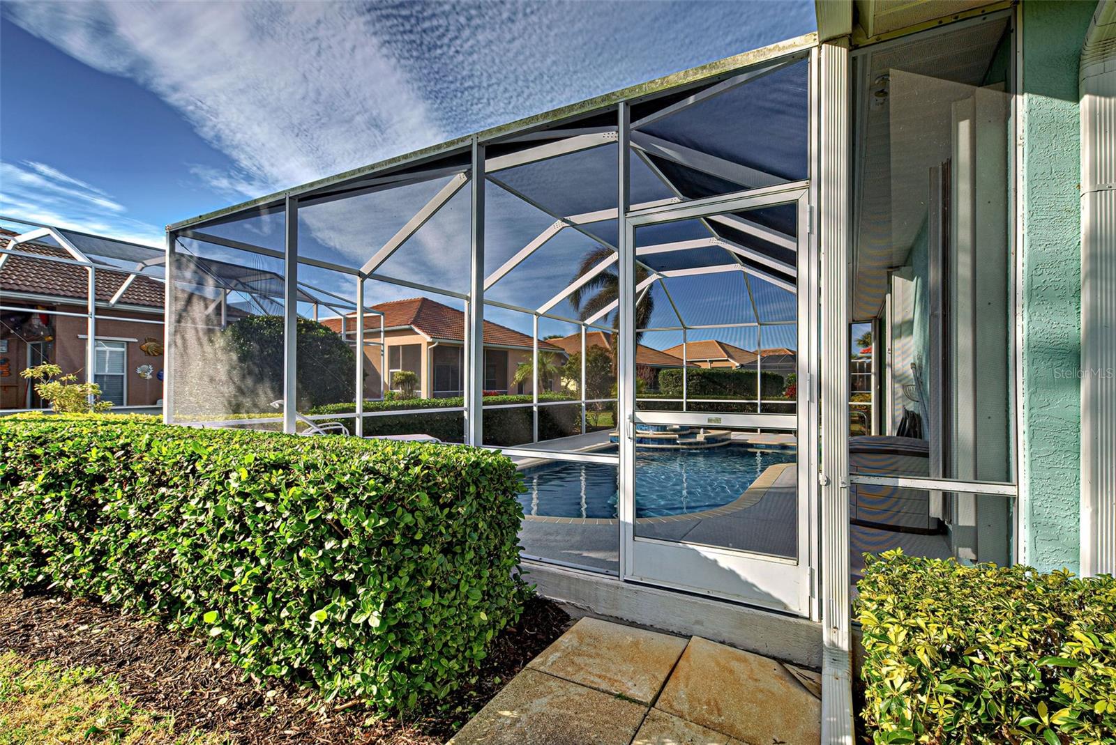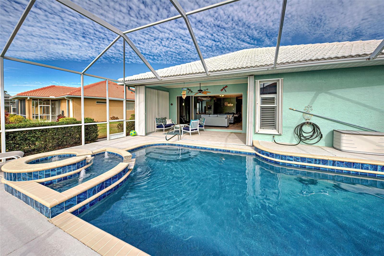 ***NEW PRICE***Nestled in the beautiful maintenance free community of The Lakes of Jacaranda, this J & J Victoria model offers a 3-bedroom, 2-bathroom, 2 car garage captivating pool home with an unparalleled blend of elegance. Enjoy the Florida lifestyle in this thoughtfully designed home that flawlessly accommodates both family and guests. Featuring a NEW ROOF in 2023, and newer AC 2020! As you enter through the glass lit double entry doors you are welcomed with a great room and dining room featuring crown molding, high ceilings and gorgeous tile floors. You will be immediately drawn to the beautiful saltwater pool with a waterfall/spa feature, newly refurbished pool surface and pool pump in 2022, and a newer pool heater 2021 for year round swimming. The updated kitchen boasts solid wood cabinets, granite countertops, stainless steel appliances, with a new dishwasher and refrigerator 2023, a convection stove, and solid hardwood bamboo flooring to complete the look. Bamboo flooring also graces all bedrooms. The master bedroom closet is equipped with a California style storage system. This home is truly well cared for and immaculate. The exterior of the home was newly painted in 2021 and a new garage door opener was installed in 2022. Additionally, permanent style accordion Hurricane shutters are in place. The community clubhouse is available for private functions, and features an oversized pool, tennis courts and walking trails along the lakes. Experience the warmth of a community where residents enjoy the sidewalks that wind through the neighborhood, picturesque surroundings, well-maintained amenities and active lifestyle. Conveniently located near the pristine beaches of Venice and Manasota Key, shopping, grocery, golfing, dining, and recreational activities. Schedule your private tour today and discover the unparalleled comfort and convenience that awaits you in The Lakes of Jacaranda.