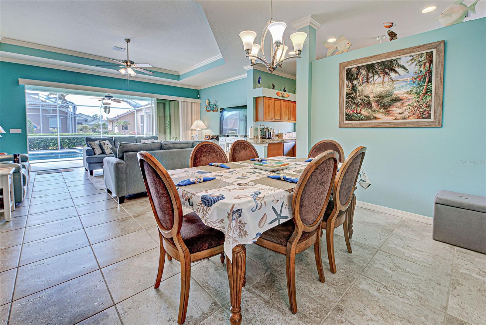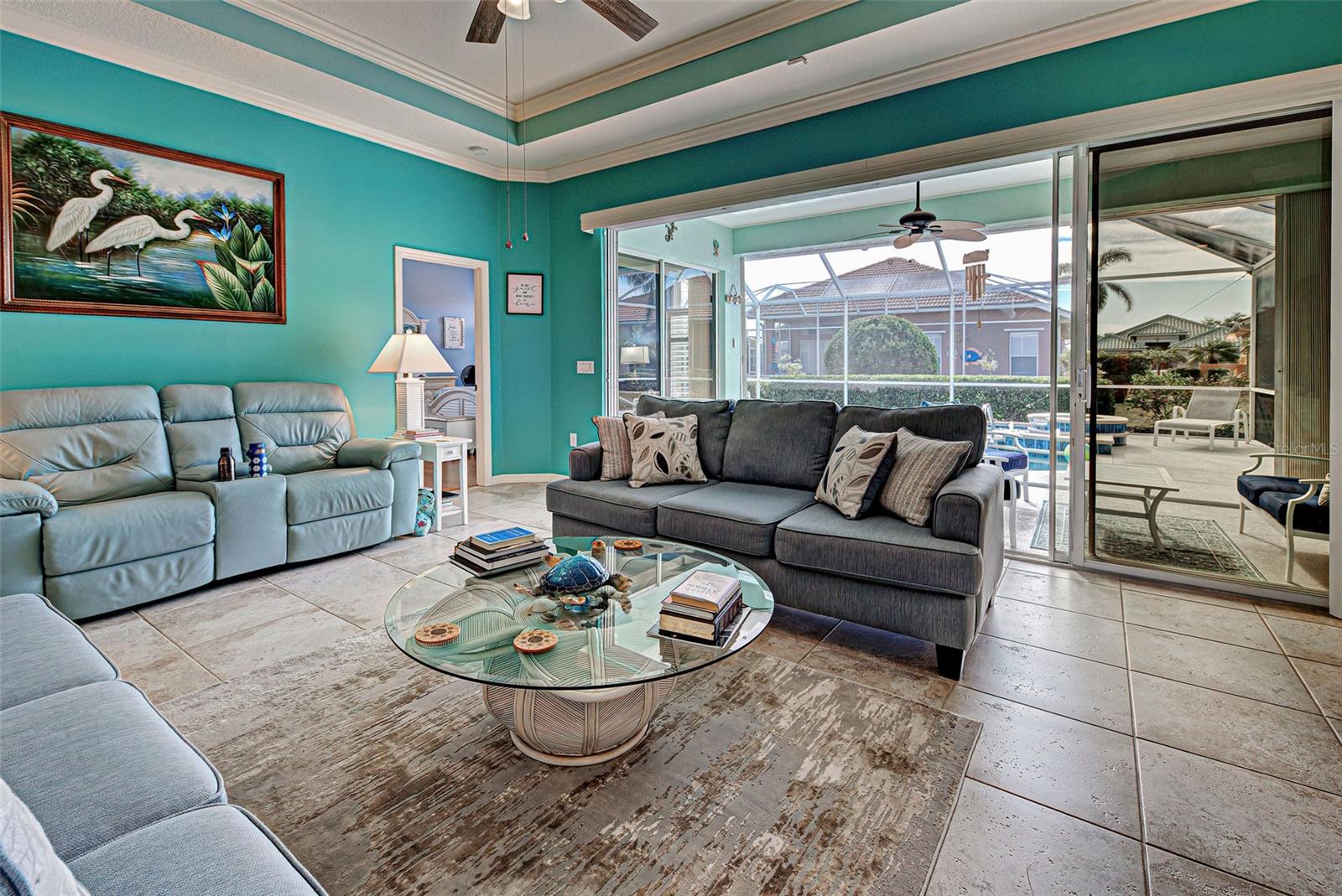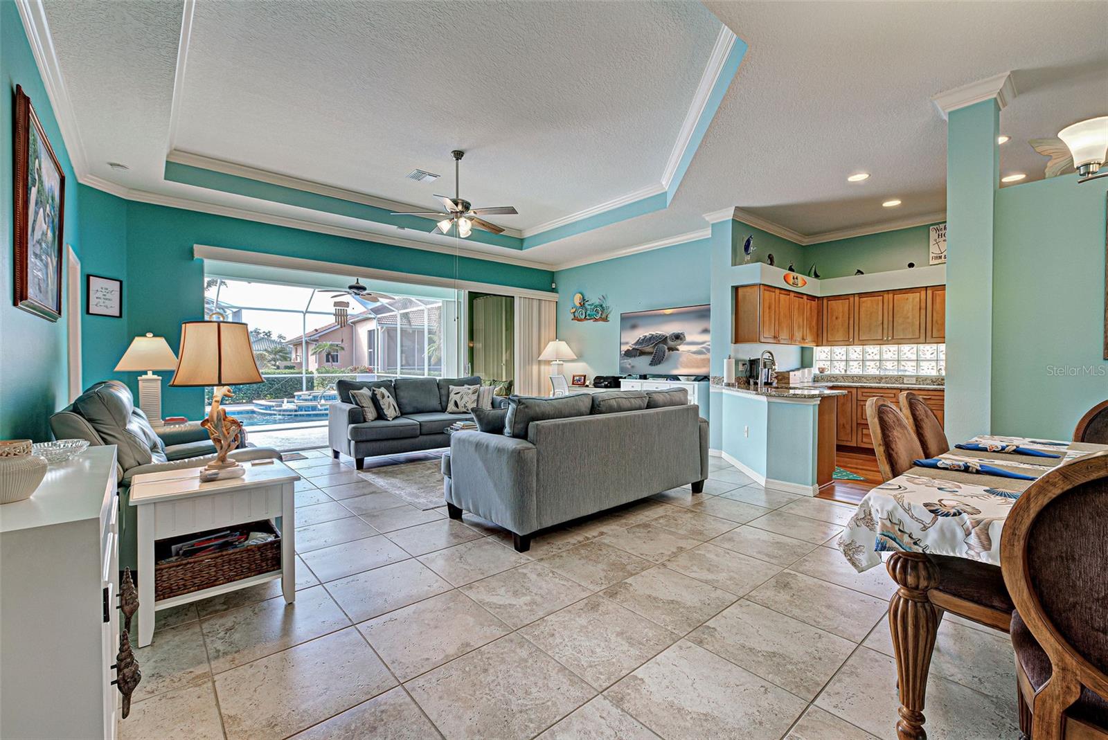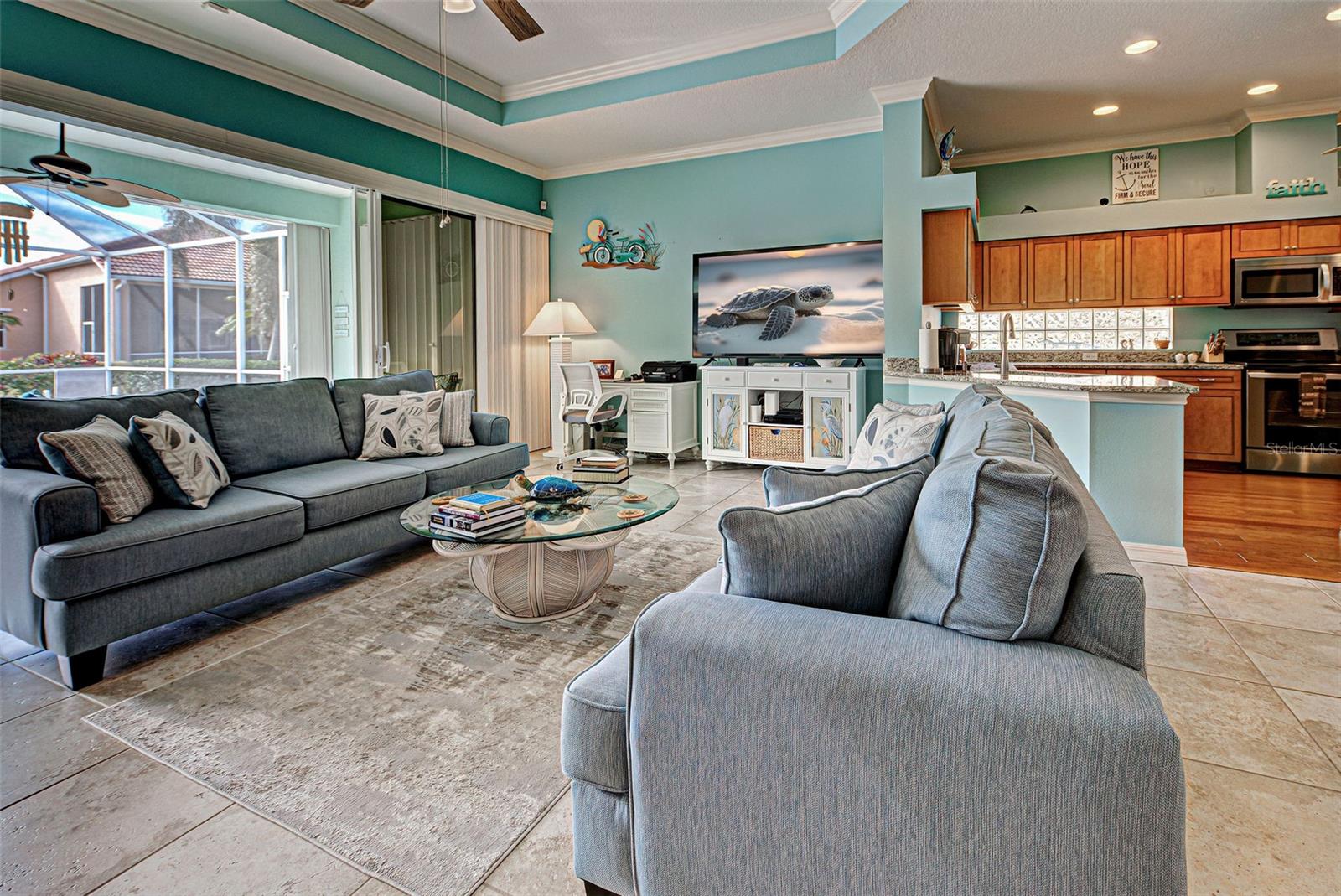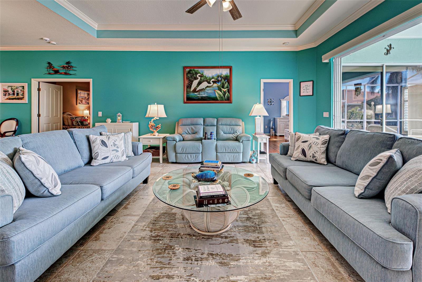 ***NEW PRICE***Nestled in the beautiful maintenance free community of The Lakes of Jacaranda, this J & J Victoria model offers a 3-bedroom, 2-bathroom, 2 car garage captivating pool home with an unparalleled blend of elegance. Enjoy the Florida lifestyle in this thoughtfully designed home that flawlessly accommodates both family and guests. Featuring a NEW ROOF in 2023, and newer AC 2020! As you enter through the glass lit double entry doors you are welcomed with a great room and dining room featuring crown molding, high ceilings and gorgeous tile floors. You will be immediately drawn to the beautiful saltwater pool with a waterfall/spa feature, newly refurbished pool surface and pool pump in 2022, and a newer pool heater 2021 for year round swimming. The updated kitchen boasts solid wood cabinets, granite countertops, stainless steel appliances, with a new dishwasher and refrigerator 2023, a convection stove, and solid hardwood bamboo flooring to complete the look. Bamboo flooring also graces all bedrooms. The master bedroom closet is equipped with a California style storage system. This home is truly well cared for and immaculate. The exterior of the home was newly painted in 2021 and a new garage door opener was installed in 2022. Additionally, permanent style accordion Hurricane shutters are in place. The community clubhouse is available for private functions, and features an oversized pool, tennis courts and walking trails along the lakes. Experience the warmth of a community where residents enjoy the sidewalks that wind through the neighborhood, picturesque surroundings, well-maintained amenities and active lifestyle. Conveniently located near the pristine beaches of Venice and Manasota Key, shopping, grocery, golfing, dining, and recreational activities. Schedule your private tour today and discover the unparalleled comfort and convenience that awaits you in The Lakes of Jacaranda.