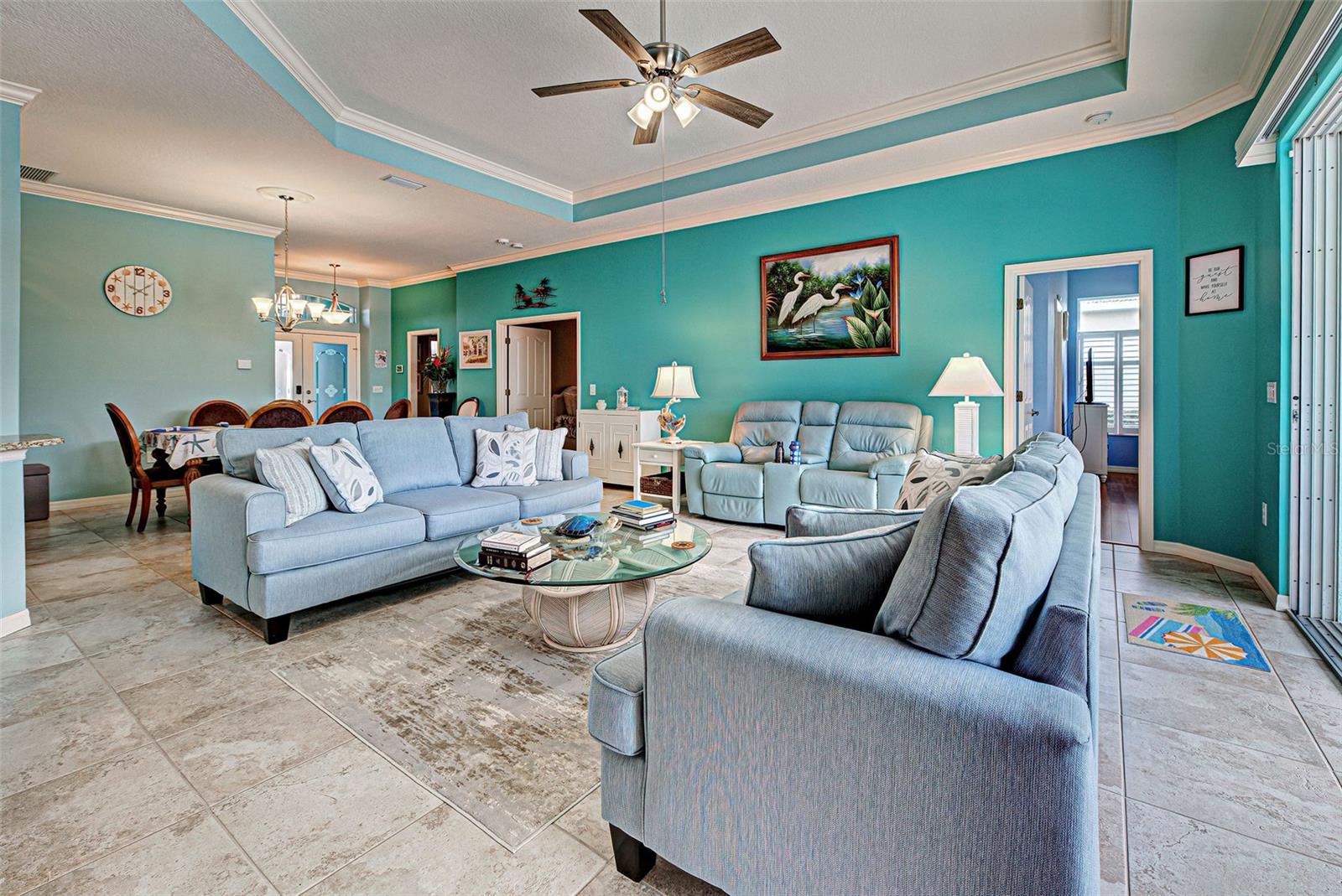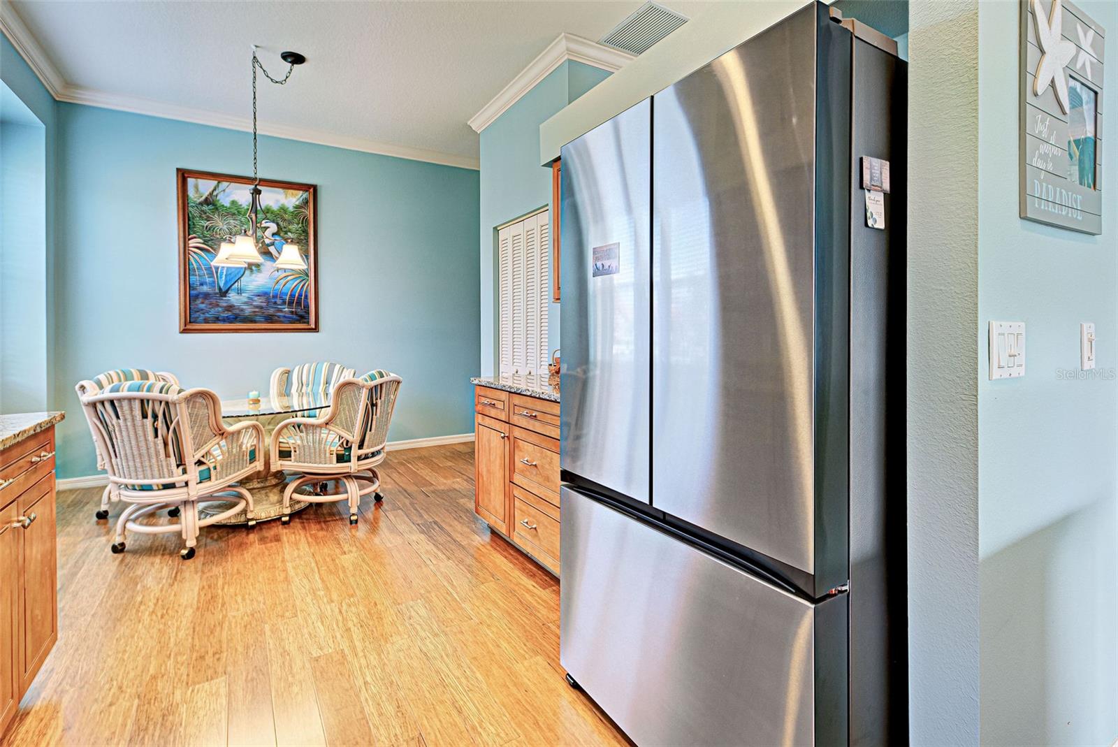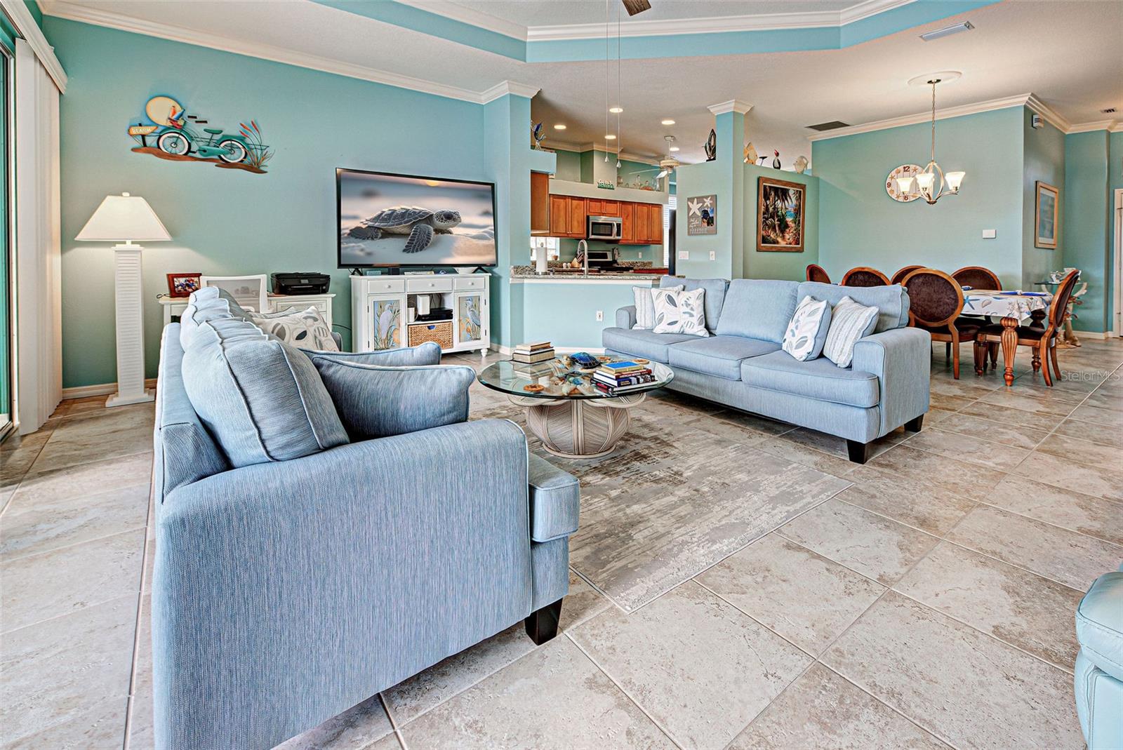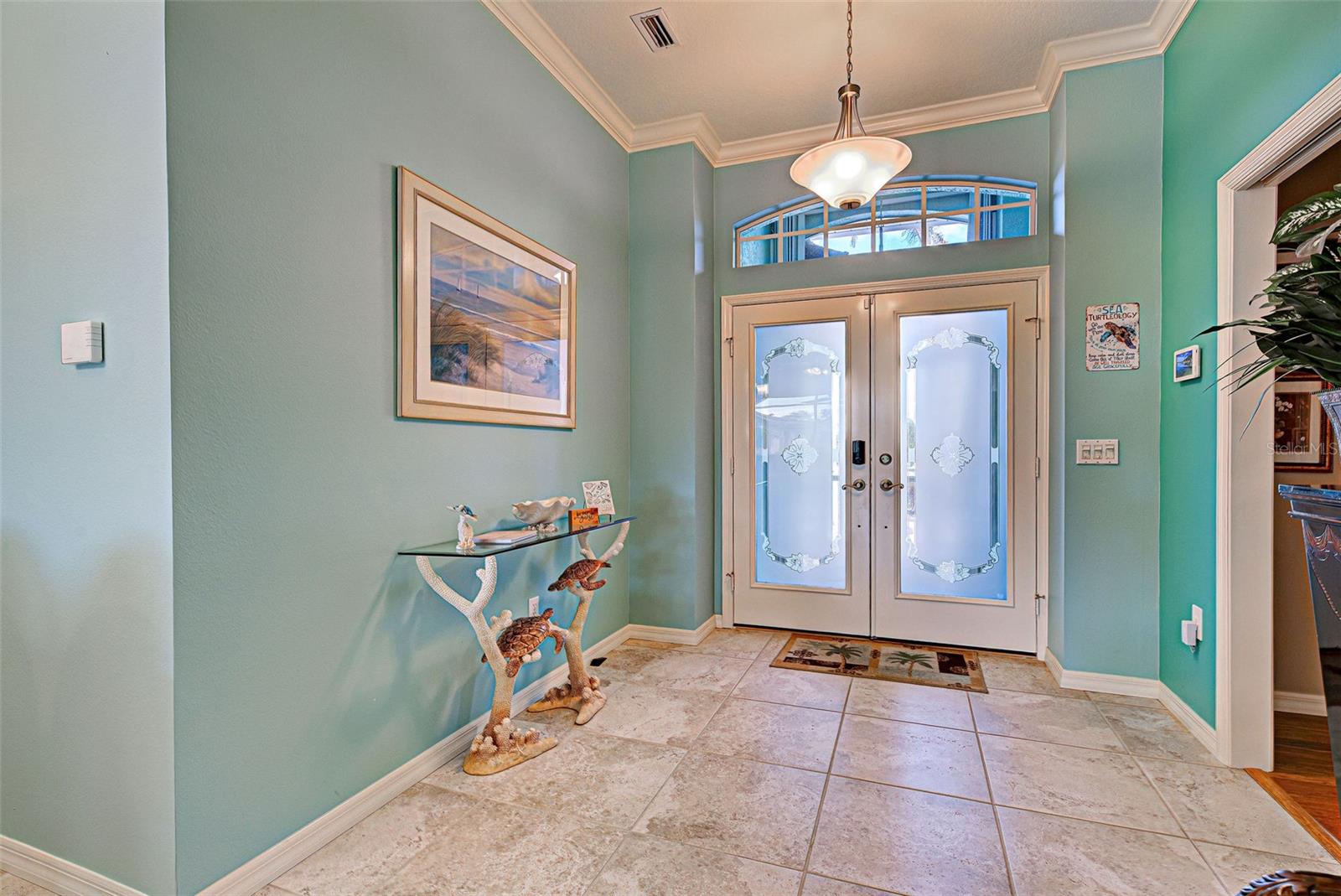 ***NEW PRICE***Nestled in the beautiful maintenance free community of The Lakes of Jacaranda, this J & J Victoria model offers a 3-bedroom, 2-bathroom, 2 car garage captivating pool home with an unparalleled blend of elegance. Enjoy the Florida lifestyle in this thoughtfully designed home that flawlessly accommodates both family and guests. Featuring a NEW ROOF in 2023, and newer AC 2020! As you enter through the glass lit double entry doors you are welcomed with a great room and dining room featuring crown molding, high ceilings and gorgeous tile floors. You will be immediately drawn to the beautiful saltwater pool with a waterfall/spa feature, newly refurbished pool surface and pool pump in 2022, and a newer pool heater 2021 for year round swimming. The updated kitchen boasts solid wood cabinets, granite countertops, stainless steel appliances, with a new dishwasher and refrigerator 2023, a convection stove, and solid hardwood bamboo flooring to complete the look. Bamboo flooring also graces all bedrooms. The master bedroom closet is equipped with a California style storage system. This home is truly well cared for and immaculate. The exterior of the home was newly painted in 2021 and a new garage door opener was installed in 2022. Additionally, permanent style accordion Hurricane shutters are in place. The community clubhouse is available for private functions, and features an oversized pool, tennis courts and walking trails along the lakes. Experience the warmth of a community where residents enjoy the sidewalks that wind through the neighborhood, picturesque surroundings, well-maintained amenities and active lifestyle. Conveniently located near the pristine beaches of Venice and Manasota Key, shopping, grocery, golfing, dining, and recreational activities. Schedule your private tour today and discover the unparalleled comfort and convenience that awaits you in The Lakes of Jacaranda.