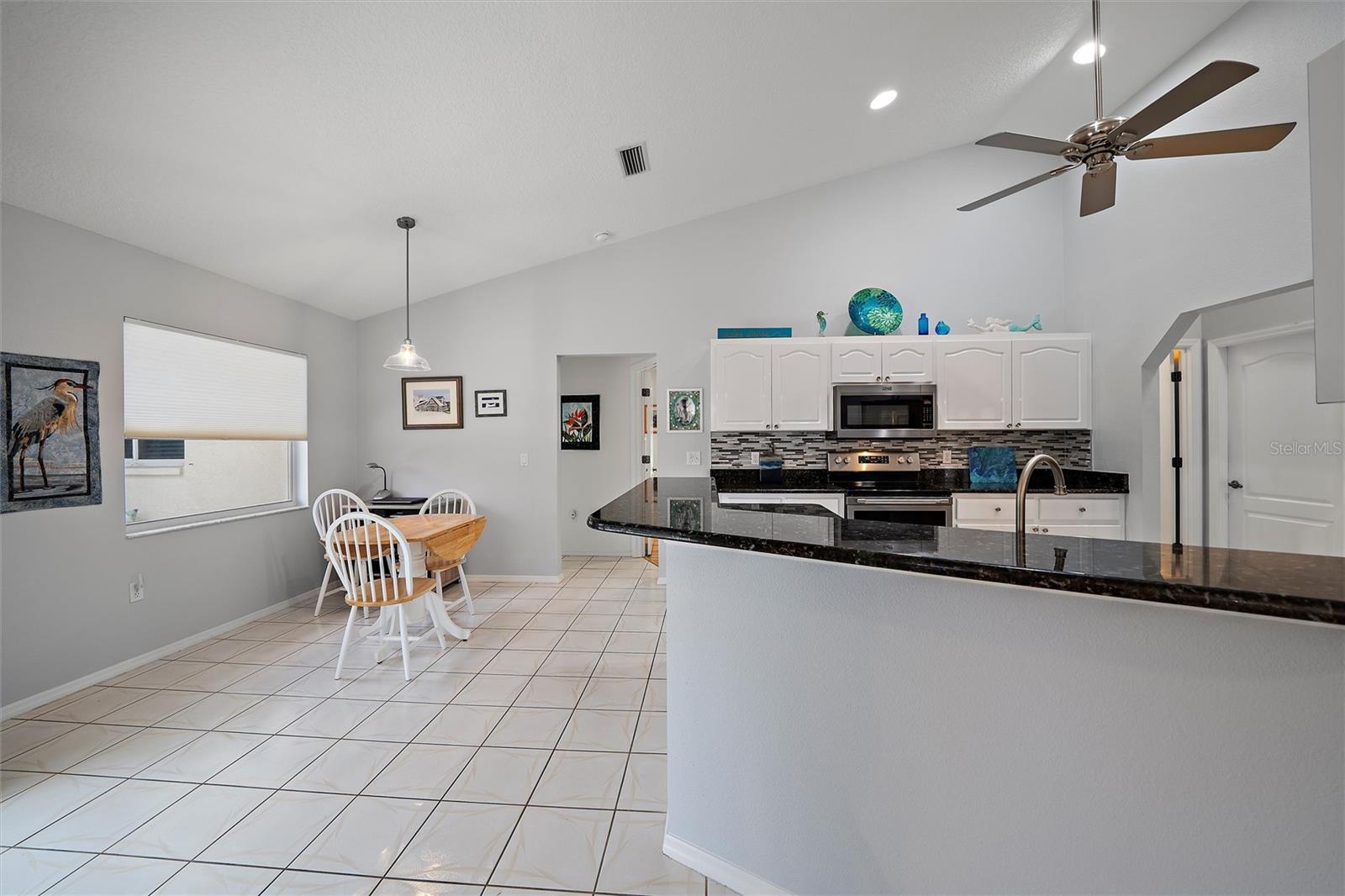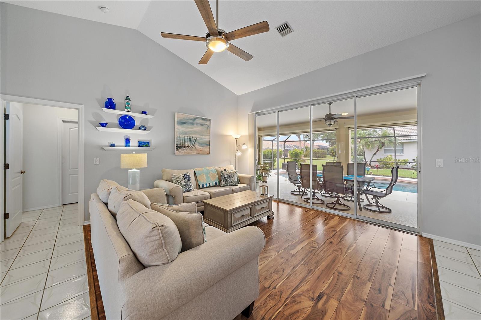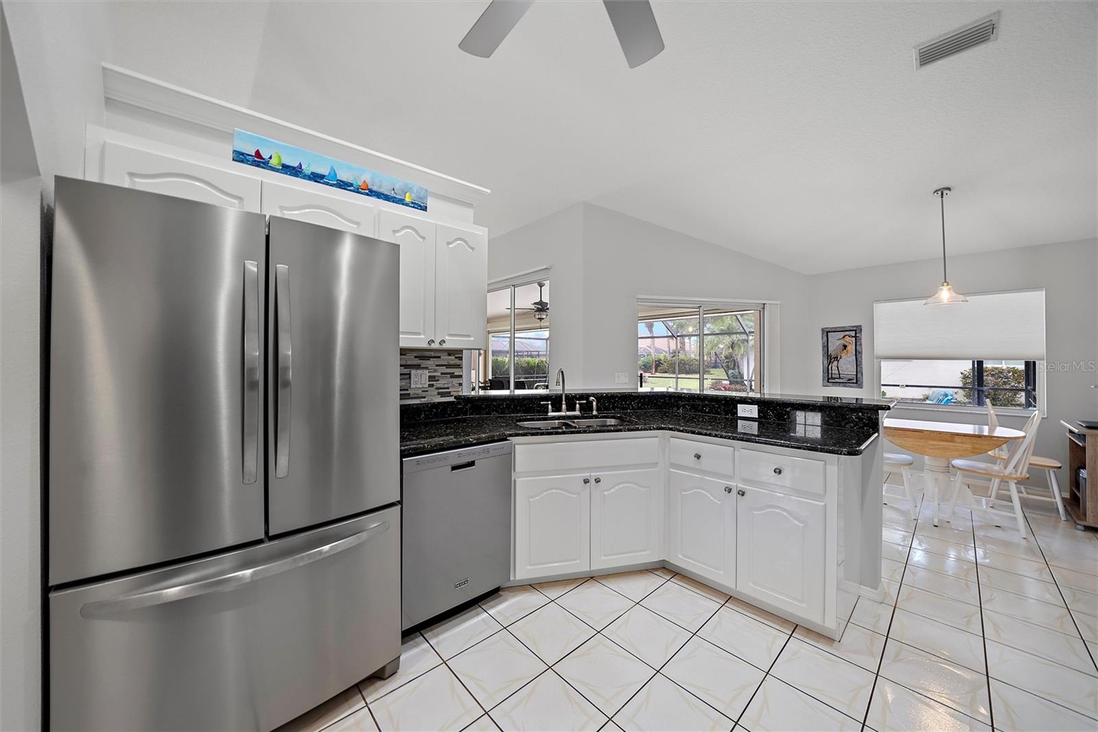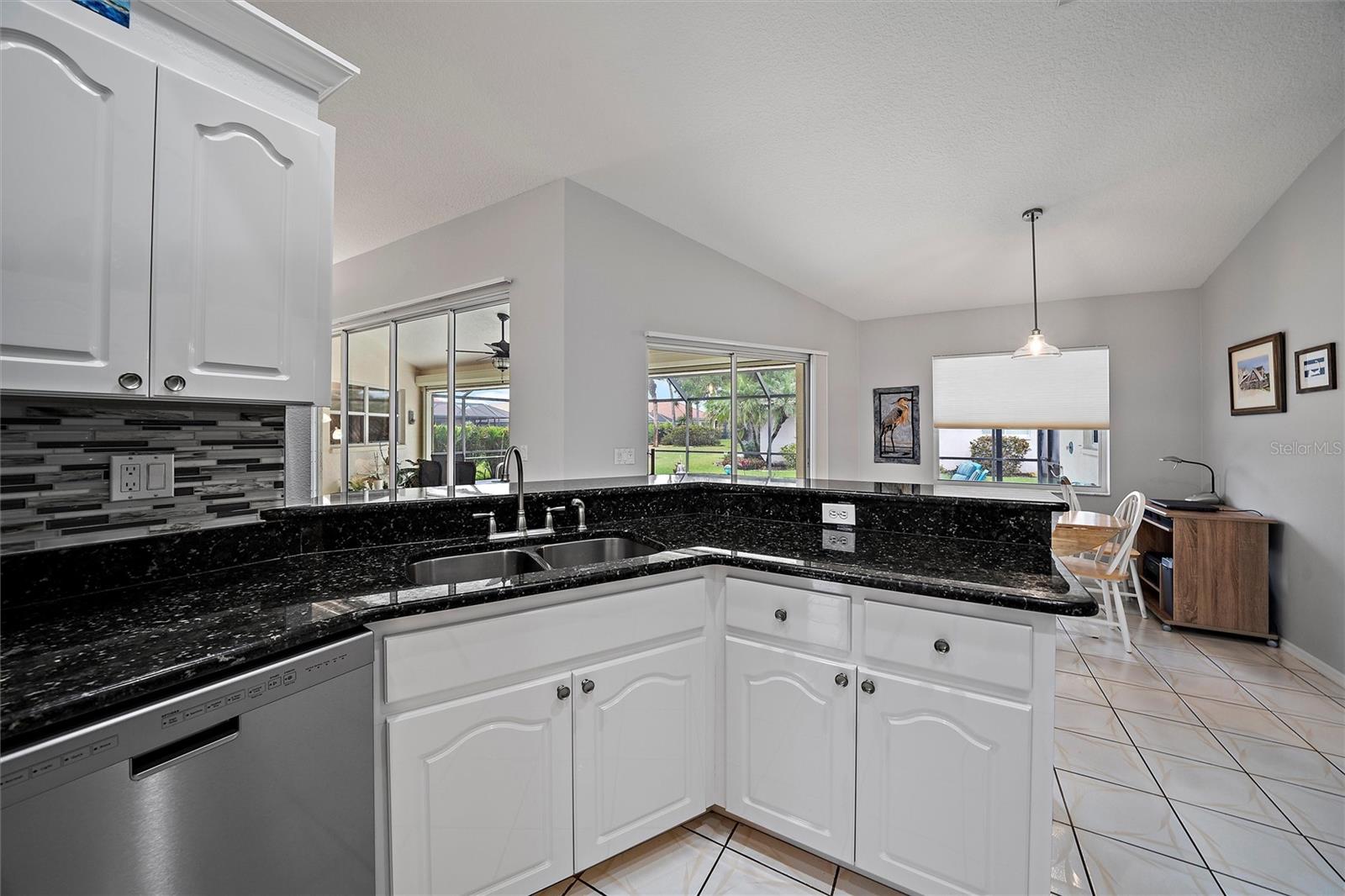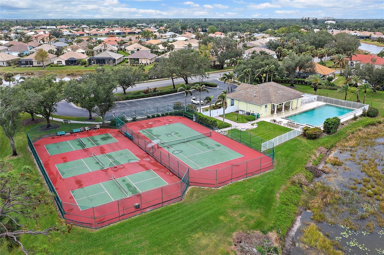 AMAZING PRICE on this stunning pool home located in the highly sought-after community of The Lakes of Jacaranda. This meticulously cared-for 3-bedroom, 2-bathroom home is move-in ready and boasts a newer tile roof (2021) along with hurricane protection windows and doors. The layout is open and bright! As you step through the front door, you'll be greeted by a recently painted living room with high ceilings and a lovely view of the pool and spacious lanai. The lanai offers plenty of room for outdoor living and comes equipped with peace-of-mind hurricane shield screens. The kitchen is a delight, featuring beautiful granite countertops, newer appliances, white cabinets, and a stylish tile backsplash. You'll also appreciate that there is no carpet in the home, making maintenance a breeze. Take note of the newer ceiling fans in all the bedrooms, living room, kitchen, and lanai. The garage has 85 Feet of storage shelving! The garage floor is epoxy. The split bedroom layout is great, and all the bedrooms are generously sized. Care Notes: roof 2021, HVAC 2021,new electrical panel 2023, irrigation well pump 2022, custom blinds 2023, all appliances 2020 or newer, freshly painted including ceilings 2023, pool deck painted 2025, new solar pool panels 2025. This HOME at 538 Laurel Cherry is a peach of a home!