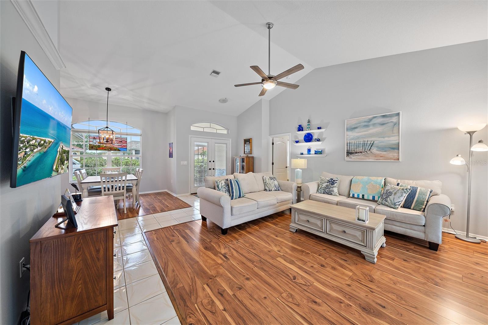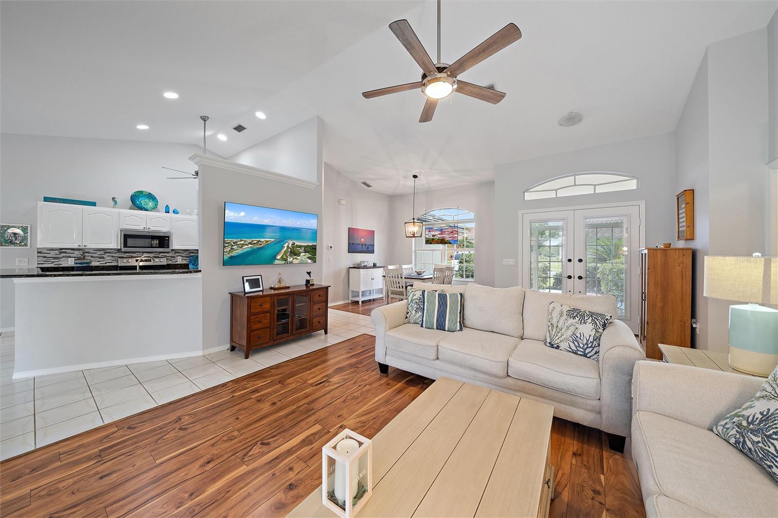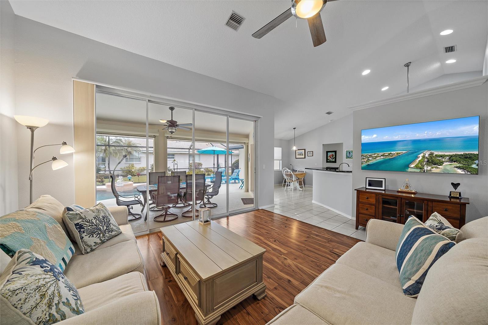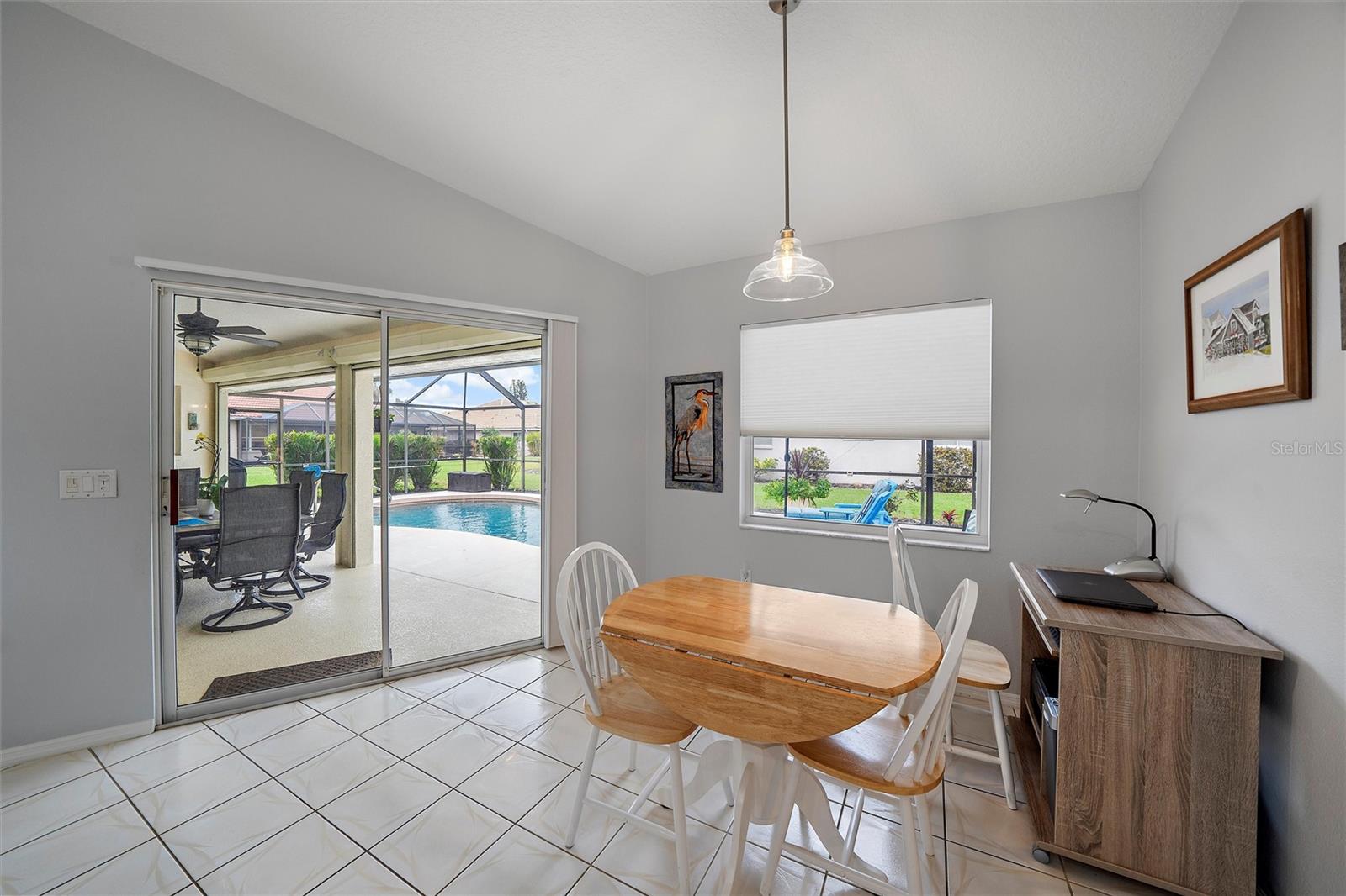AMAZING PRICE on this stunning pool home located in the highly sought-after community of The Lakes of Jacaranda. This meticulously cared-for 3-bedroom, 2-bathroom home is move-in ready and boasts a newer tile roof (2021) along with hurricane protection windows and doors. The layout is open and bright! As you step through the front door, you'll be greeted by a recently painted living room with high ceilings and a lovely view of the pool and spacious lanai. The lanai offers plenty of room for outdoor living and comes equipped with peace-of-mind hurricane shield screens. The kitchen is a delight, featuring beautiful granite countertops, newer appliances, white cabinets, and a stylish tile backsplash. You'll also appreciate that there is no carpet in the home, making maintenance a breeze. Take note of the newer ceiling fans in all the bedrooms, living room, kitchen, and lanai. The garage has 85 Feet of storage shelving! The garage floor is epoxy. The split bedroom layout is great, and all the bedrooms are generously sized. Care Notes: roof 2021, HVAC 2021,new electrical panel 2023, irrigation well pump 2022, custom blinds 2023, all appliances 2020 or newer, freshly painted including ceilings 2023, pool deck painted 2025, new solar pool panels 2025. This HOME at 538 Laurel Cherry is a peach of a home!