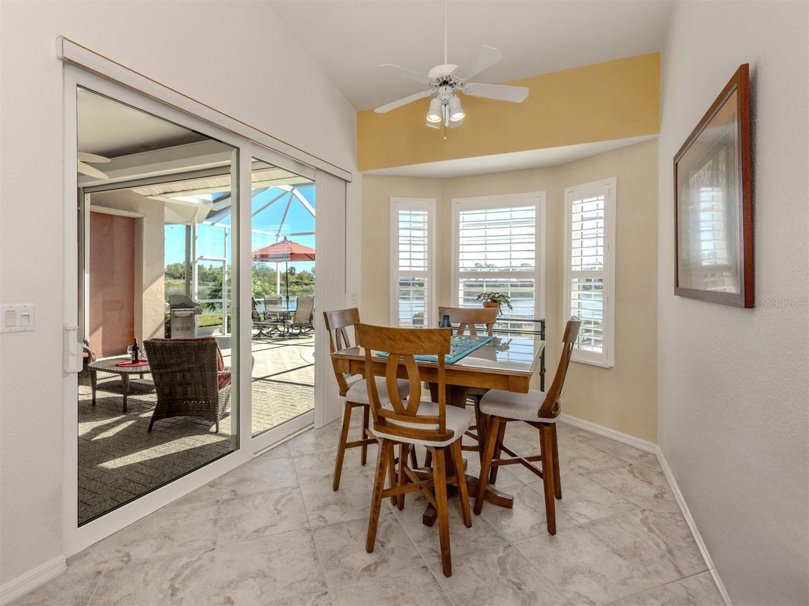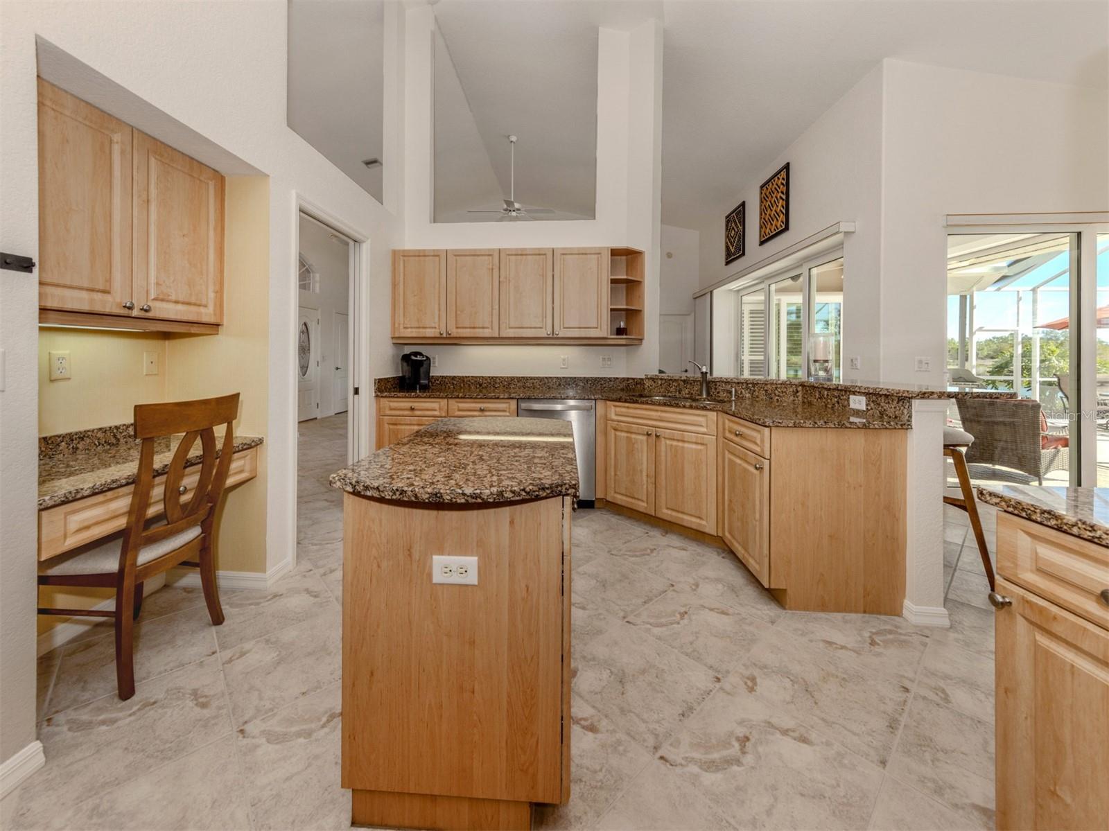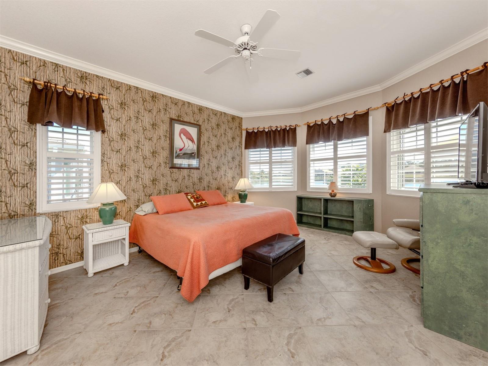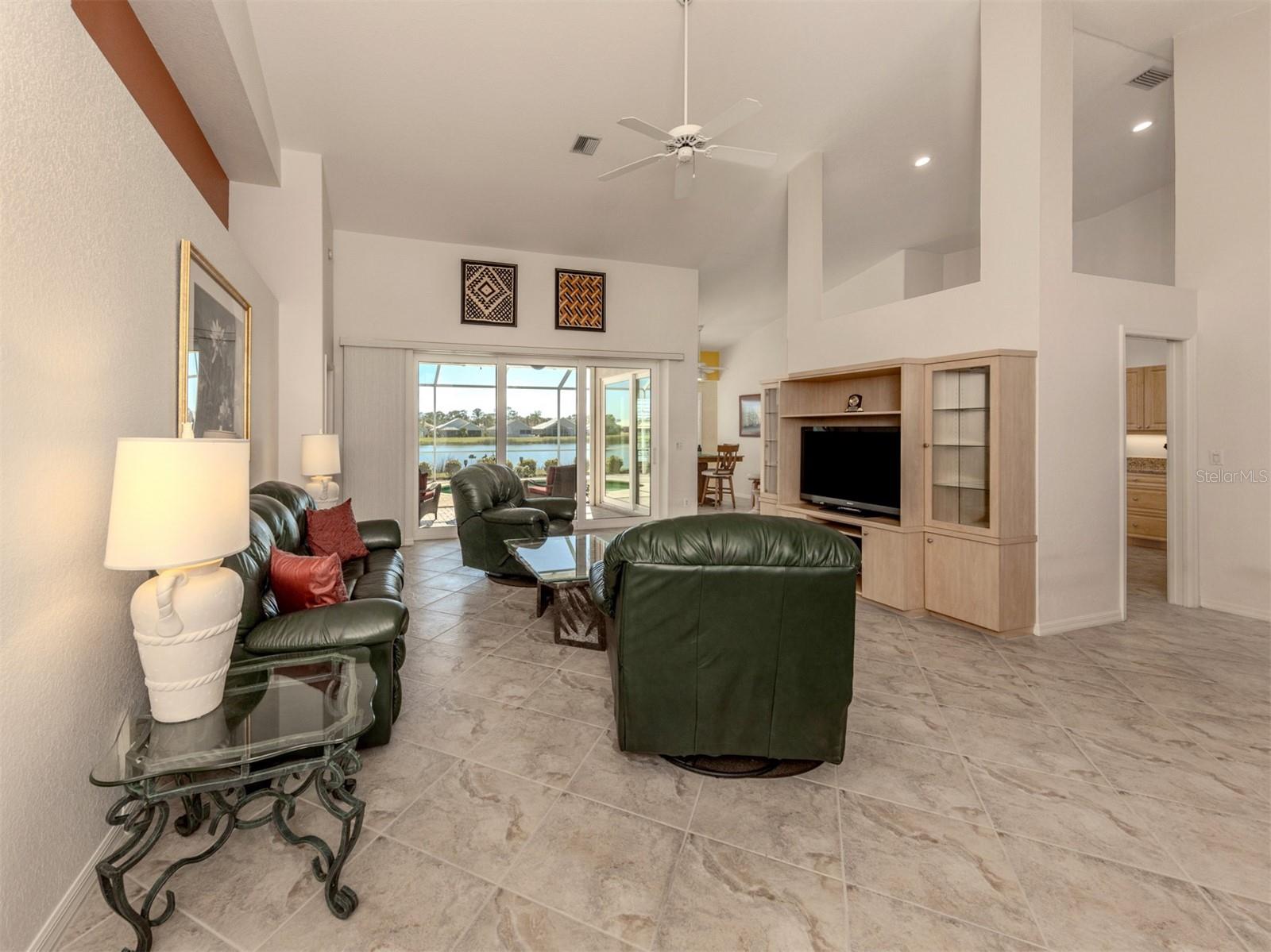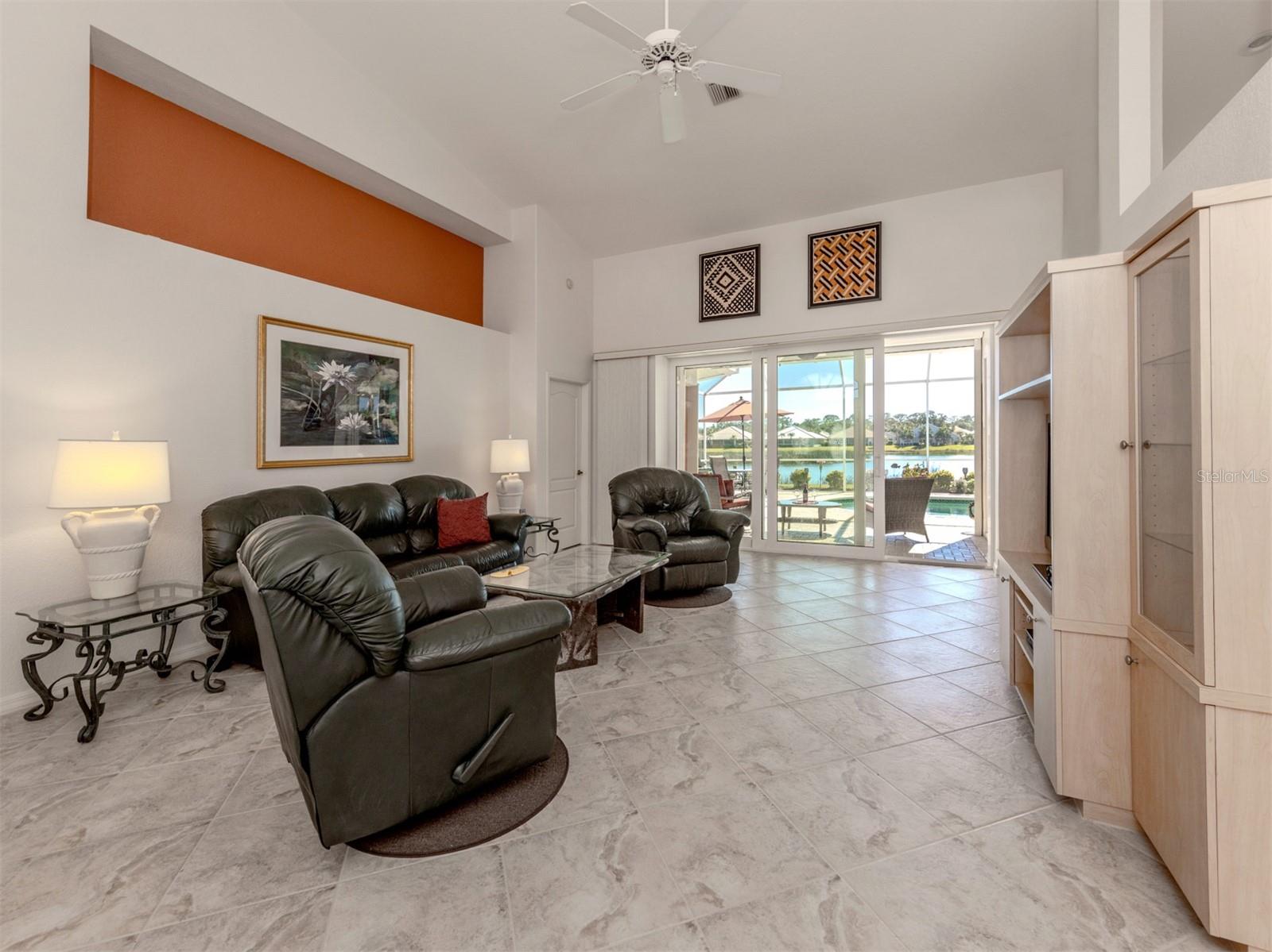 THIS WATER VIEW IS AMAZING!!! This beautifully meticulously maintained 2,448-square-foot, FULL HURRICANE PROTECTION and NO FLOOD ZONE, PAID OFF SOLAR PANELS, boasts four-bedroom, two-bath, oversized two-car garage pool home with breathtaking long water south views in the desirable Waterford Golf Club community in the heart of Venice. This stunningly designed residence features a split floor plan, providing plenty of privacy and a functional flow between the spaces. Updates include 2024 water heater, 2022 air conditioner, 2021 re-roof, 2018 hurricane sliders, 2015-2014 electric hurricane shutter on lanai and Lexan hurricane shutters for house, 2010 solar panels, custom plantation shutters and porcelain tile throughout, plenty of storage, and more! Step inside this home and your eyes are drawn to 14-foot ceilings throughout, contributing to its open, airy atmosphere, helping to maximize natural light with amazing water views. With windows that frame the ever-dancing water views, the great room becomes a canvas of nature's art, ideal for those quiet moments with a book or lively gathering with friends. The kitchen overlooks the great room and boasts solid wood cabinetry, granite countertops, newer appliances, breakfast bar, island and built-in desk so the chef can plan those special meals. The formal dining room is off the kitchen making those special meals a breeze. Just off the kitchen a caf which is an ideal spot to enjoy the birds dancing on the water and have a quick bite before heading off to the golf course. The extended primary suite includes triple sliding glass doors, bay windows and private en suite. The spa-like private en suite is spacious and boasts dual walk-in closets, dual sinks, garden tub and large walk-in shower. The second bedroom is at the front of the home and could easily double as an office with private access to the main en suite. The third and fourth bedrooms are at the back of the home near the second full bath that doubles as a pool bath and includes a hall pocket door creating a private tropical oasis for guests or the ideal space for a blended family. The fourth bedroom boasts a Murphy bed with matching desk and large closet making this space useable for day-to-day living. The large laundry room is just off the kitchen, with extra cabinetry, storage, utility sink and leads to the oversized garage. In the garage, high ceilings, pull-down attic stairs, cabinetry and rear door access to the backyard. Open the pocketing sliders in the living room and caf to seamlessly extend your living space outside to the large, covered lanai. The OVERSIZED extended paver lanai includes a pool bath access, covered and open lanai space and electric drop-down hurricane shutter. Not in a flood zone, one low HOA fee of $2,165 annually and no CDD. Waterford offers 27 holes of championship golf, a heated pool, lighted Har-Tru tennis courts, pickleball, social room with kitchen, dance floor and fitness center. After a day of golf enjoy lunch at the club with no restaurant minimums. Membership to Waterford Golf Club is not required. Easy access to Interstate 75, U.S. 41, pristine Gulf of Mexico beaches, shopping, dining, medical and the new Sarasota Memorial Hospital.