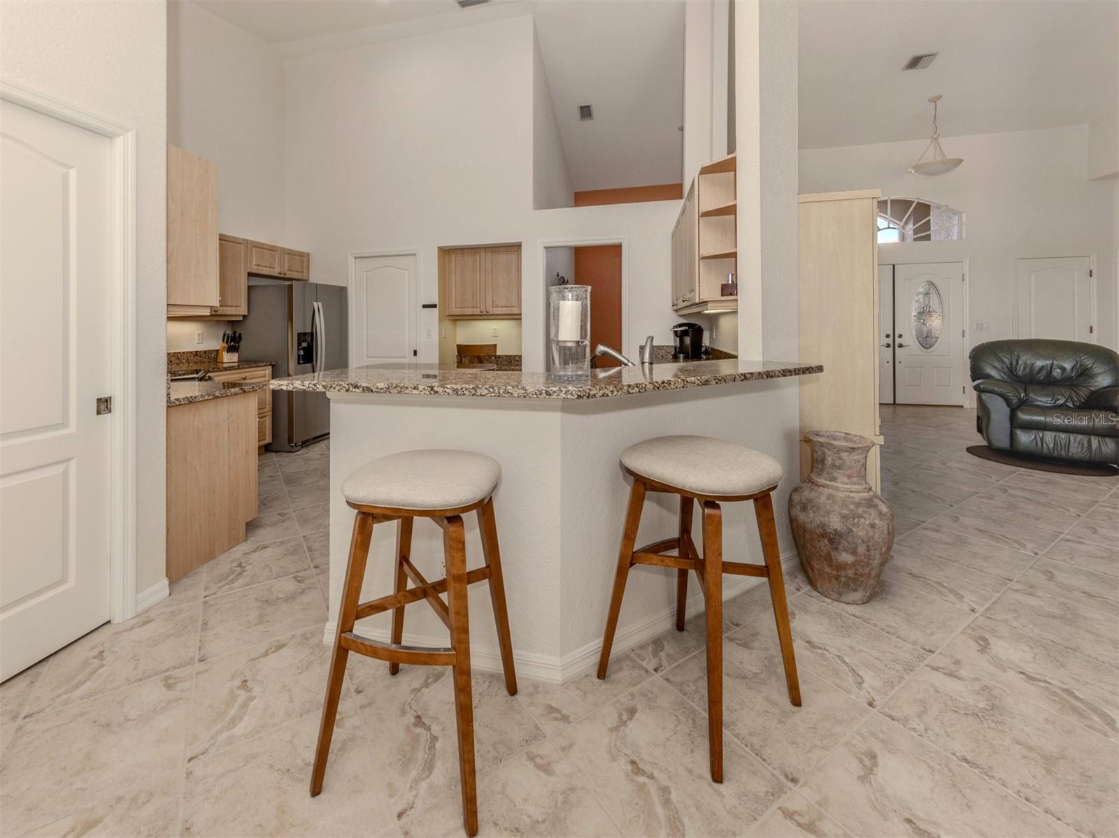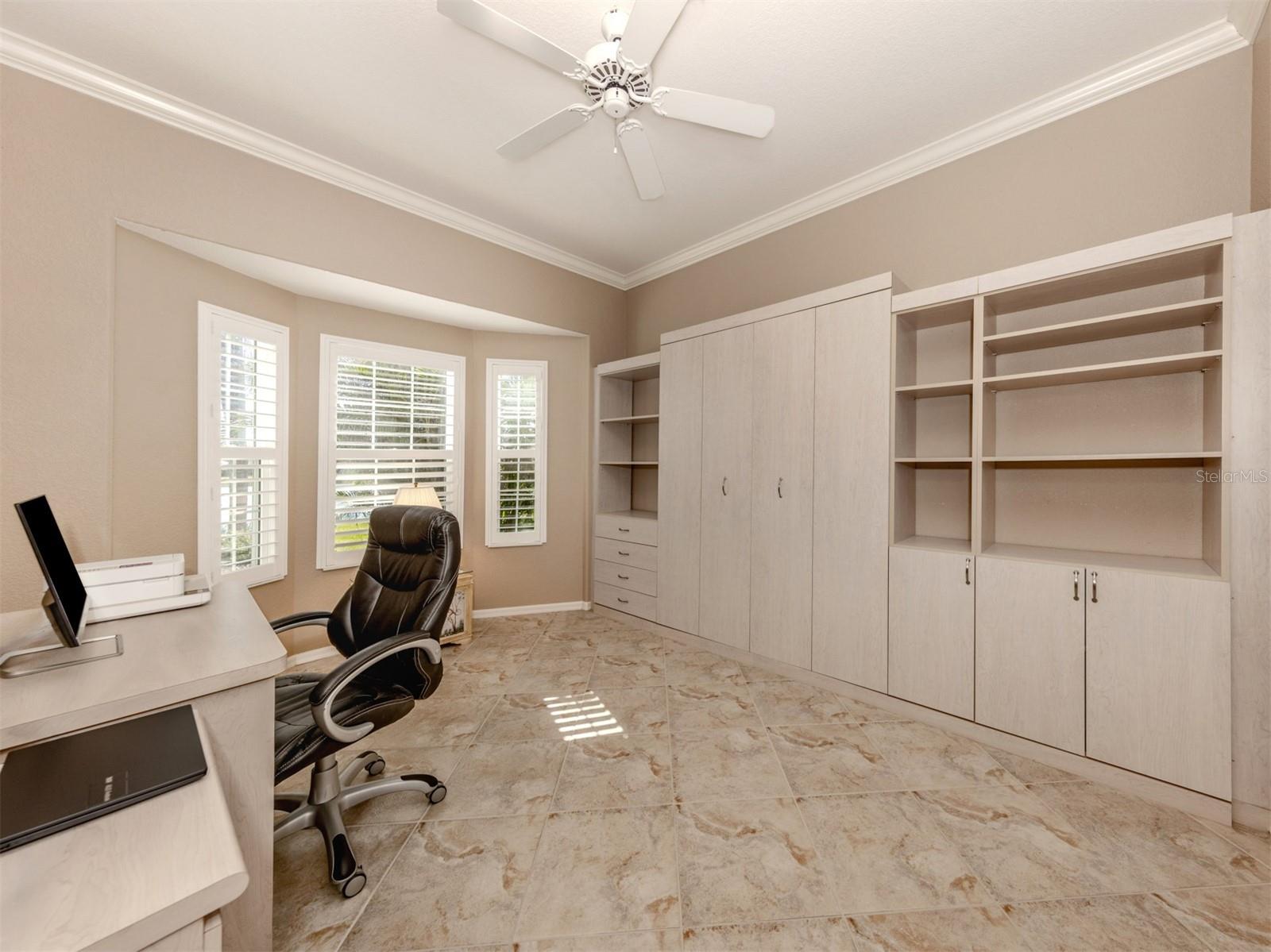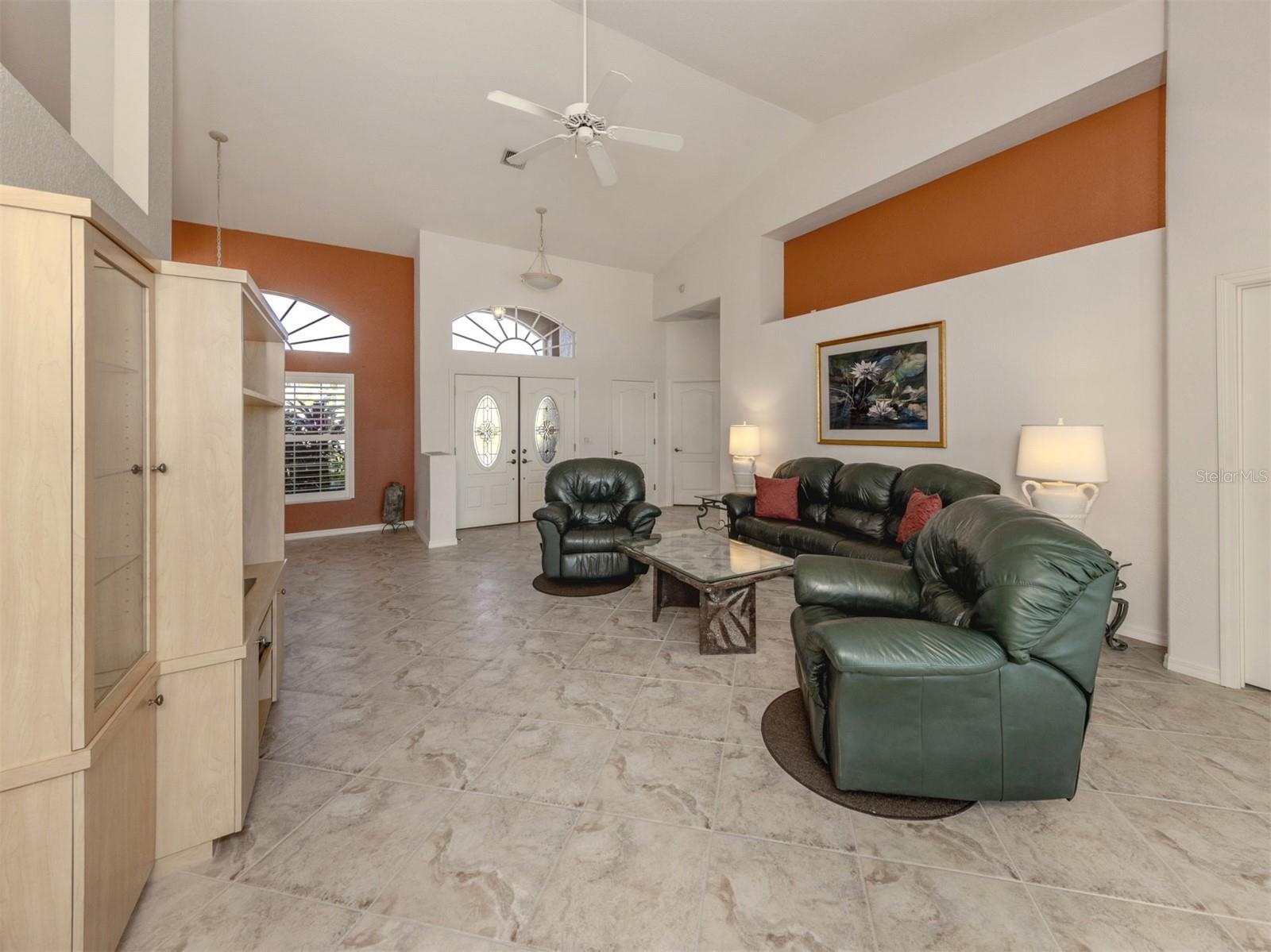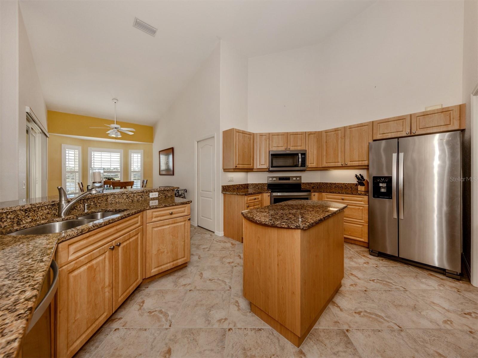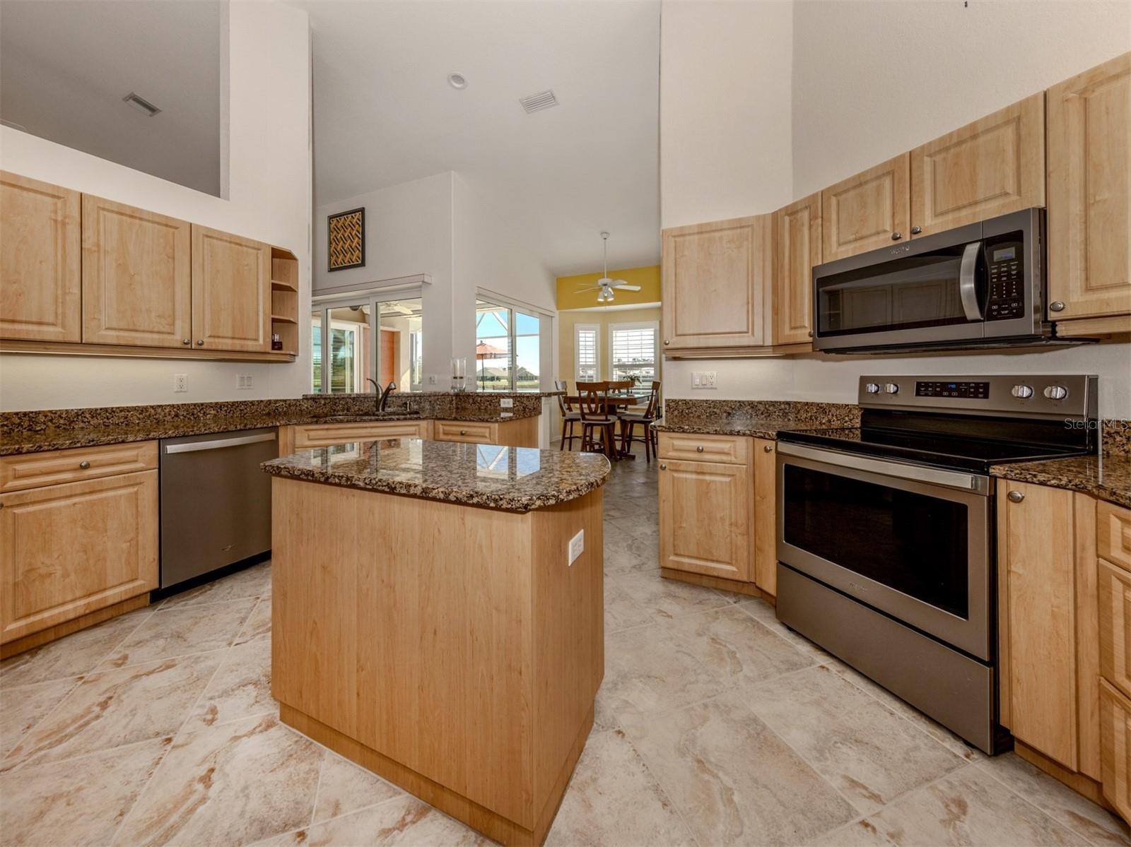 THIS WATER VIEW IS AMAZING!!! This beautifully meticulously maintained 2,448-square-foot, FULL HURRICANE PROTECTION and NO FLOOD ZONE, PAID OFF SOLAR PANELS, boasts four-bedroom, two-bath, oversized two-car garage pool home with breathtaking long water south views in the desirable Waterford Golf Club community in the heart of Venice. This stunningly designed residence features a split floor plan, providing plenty of privacy and a functional flow between the spaces. Updates include 2024 water heater, 2022 air conditioner, 2021 re-roof, 2018 hurricane sliders, 2015-2014 electric hurricane shutter on lanai and Lexan hurricane shutters for house, 2010 solar panels, custom plantation shutters and porcelain tile throughout, plenty of storage, and more! Step inside this home and your eyes are drawn to 14-foot ceilings throughout, contributing to its open, airy atmosphere, helping to maximize natural light with amazing water views. With windows that frame the ever-dancing water views, the great room becomes a canvas of nature's art, ideal for those quiet moments with a book or lively gathering with friends. The kitchen overlooks the great room and boasts solid wood cabinetry, granite countertops, newer appliances, breakfast bar, island and built-in desk so the chef can plan those special meals. The formal dining room is off the kitchen making those special meals a breeze. Just off the kitchen a caf which is an ideal spot to enjoy the birds dancing on the water and have a quick bite before heading off to the golf course. The extended primary suite includes triple sliding glass doors, bay windows and private en suite. The spa-like private en suite is spacious and boasts dual walk-in closets, dual sinks, garden tub and large walk-in shower. The second bedroom is at the front of the home and could easily double as an office with private access to the main en suite. The third and fourth bedrooms are at the back of the home near the second full bath that doubles as a pool bath and includes a hall pocket door creating a private tropical oasis for guests or the ideal space for a blended family. The fourth bedroom boasts a Murphy bed with matching desk and large closet making this space useable for day-to-day living. The large laundry room is just off the kitchen, with extra cabinetry, storage, utility sink and leads to the oversized garage. In the garage, high ceilings, pull-down attic stairs, cabinetry and rear door access to the backyard. Open the pocketing sliders in the living room and caf to seamlessly extend your living space outside to the large, covered lanai. The OVERSIZED extended paver lanai includes a pool bath access, covered and open lanai space and electric drop-down hurricane shutter. Not in a flood zone, one low HOA fee of $2,165 annually and no CDD. Waterford offers 27 holes of championship golf, a heated pool, lighted Har-Tru tennis courts, pickleball, social room with kitchen, dance floor and fitness center. After a day of golf enjoy lunch at the club with no restaurant minimums. Membership to Waterford Golf Club is not required. Easy access to Interstate 75, U.S. 41, pristine Gulf of Mexico beaches, shopping, dining, medical and the new Sarasota Memorial Hospital.