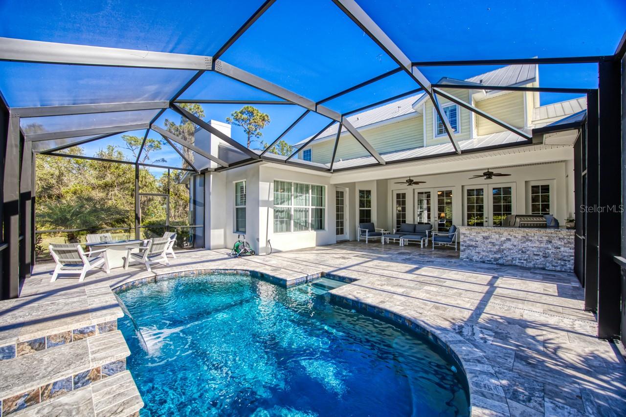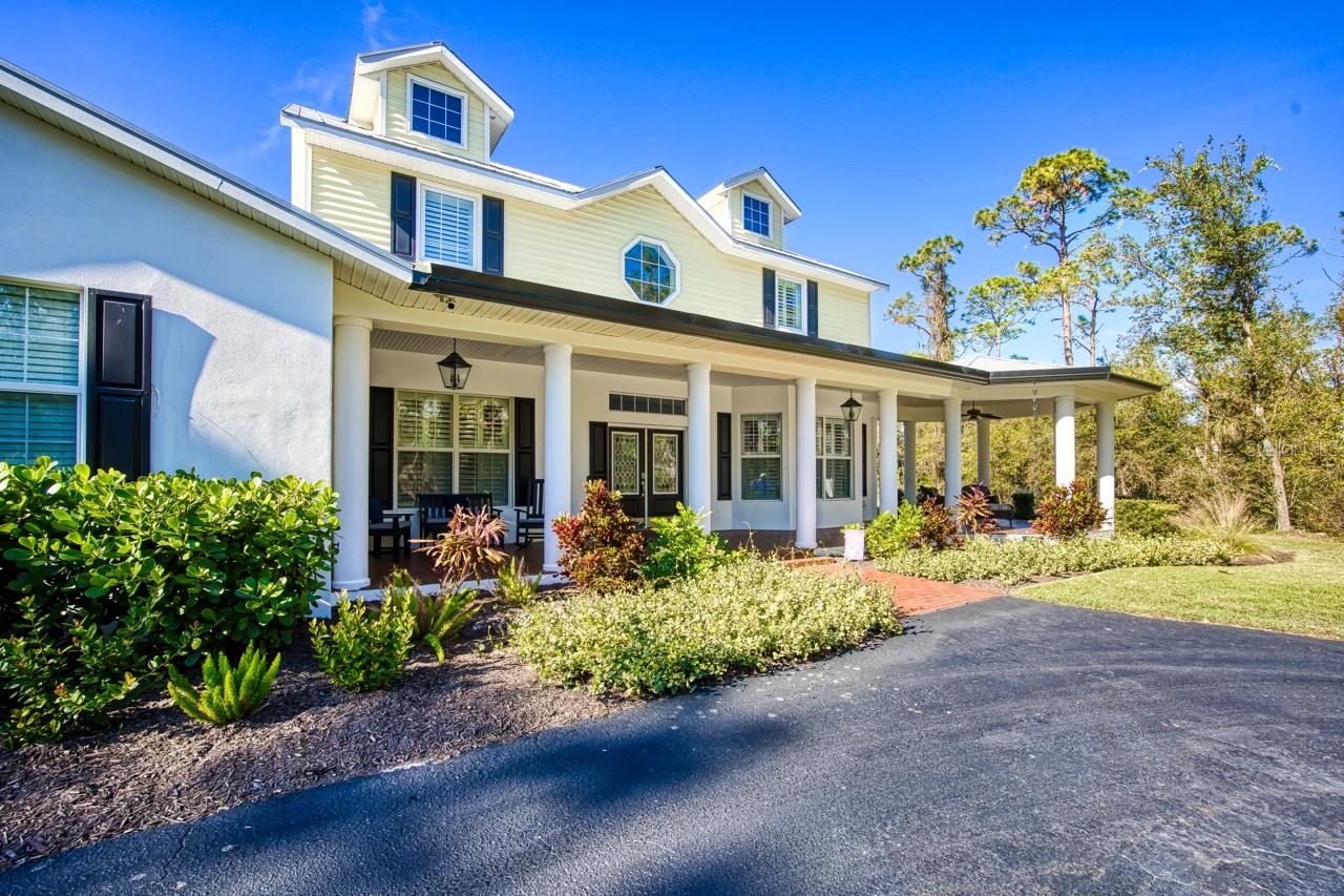 MOVE RIGHT IN! SELLERS SPARED NO EXPENSE WITH OVER $500K OF IMPROVMENTS/RENOVATIONS MADE!! Discover the perfect blend of luxury and comfort in this stunning 5-bedroom, 3.5-bathroom, two-story custom-built home nestled on a serene, wooded lot on over 5 acres in the coveted Myakka River Trails community. Every detail of this residence exudes sophistication and quality craftsmanship, offering an unparalleled living experience. The chef's kitchen has been completely redone with custom cherry cabinets, quartz countertops, and state-of-the-art appliances-2022. Luxurious custom oak hardwood floors, imported from North Carolina, span throughout the home, complemented by solid core doors and intricate moldings. A spacious dining room, a formal living room, and a bright sunroom create a welcoming atmosphere throughout. The living areas are enhanced by two stunning fireplaces featuring antique walnut wood mantles, adding warmth and elegance to the space. All bathrooms have been beautifully updated with high-end finishes, ensuring every space feels modern and refined. The property also boasts a 4-car extended garage with ample workspace and epoxy floors. Every detail has been considered with the installation of PGT hurricane-resistant windows and doors, offering peace of mind and durability - 2022. The newly installed variable speed Trane cooling system with a blue light feature ensures optimal comfort, while all LED lighting throughout the home enhances both efficiency and ambiance - 2022. Home features the convenience of a whole house instahot water heating system 2022, a whole home filtration and softener system with reverse osmosis in the kitchen along with a Generator/RV hookup ready electric outlet. Outside, the property boasts a brand-new pool surrounded by elegant travertine tile - 2023. Two commercial-grade outdoor grills make hosting effortless, while recently landscaped gardens enhance the natural beauty of the wooded lot. Situated just 10 minutes from SMH Hospital and 3 minutes from Wellen Park, also close by is a new Costco, Publix shopping plaza, restaurants, and walking trails--this home offers the perfect combination of convenience and exclusivity. Located within the gated community of Myakka River Trails which offers a PRIVATE BOAT DOCK (seconds from this property), fishing pier, community pool, tennis courts, playground, pavilion and where golf carts and horses are welcome. COMMUNITY HAS A DISCOUNTED FLOOD RATING TOO!! This property provides privacy and proximity to nature and all Wellen Park, Venice and Sarasota have to offer. This home seamlessly combines modern upgrades with timeless elegance, making it the perfect retreat for families or anyone seeking a luxurious lifestyle in a prime location. Don't miss the opportunity to call this exquisite property home! Home is no longer staged as pictured. Well Water Tested January 2025; Septic Cleaned November 2024; HVAC Maintenance May 2026 is transferrable to new owner.