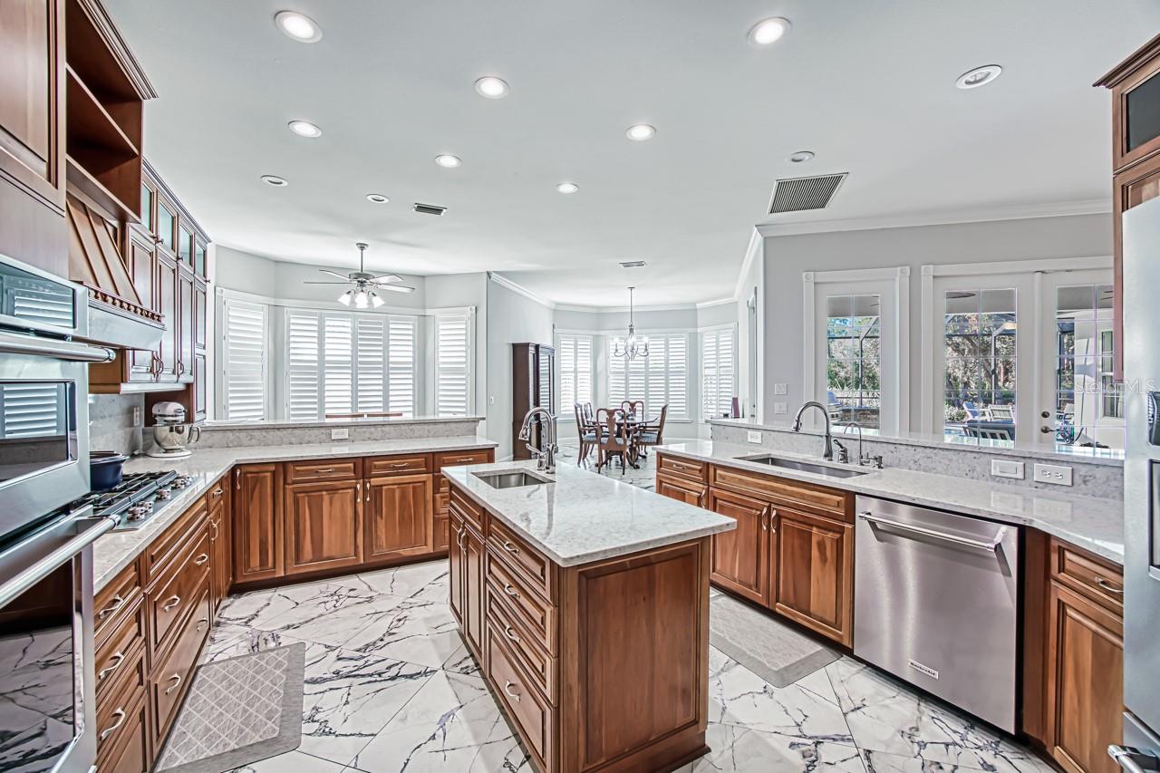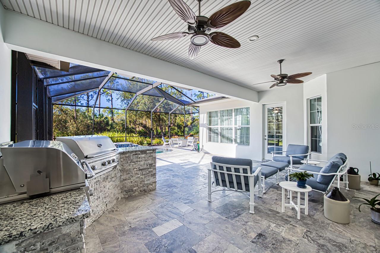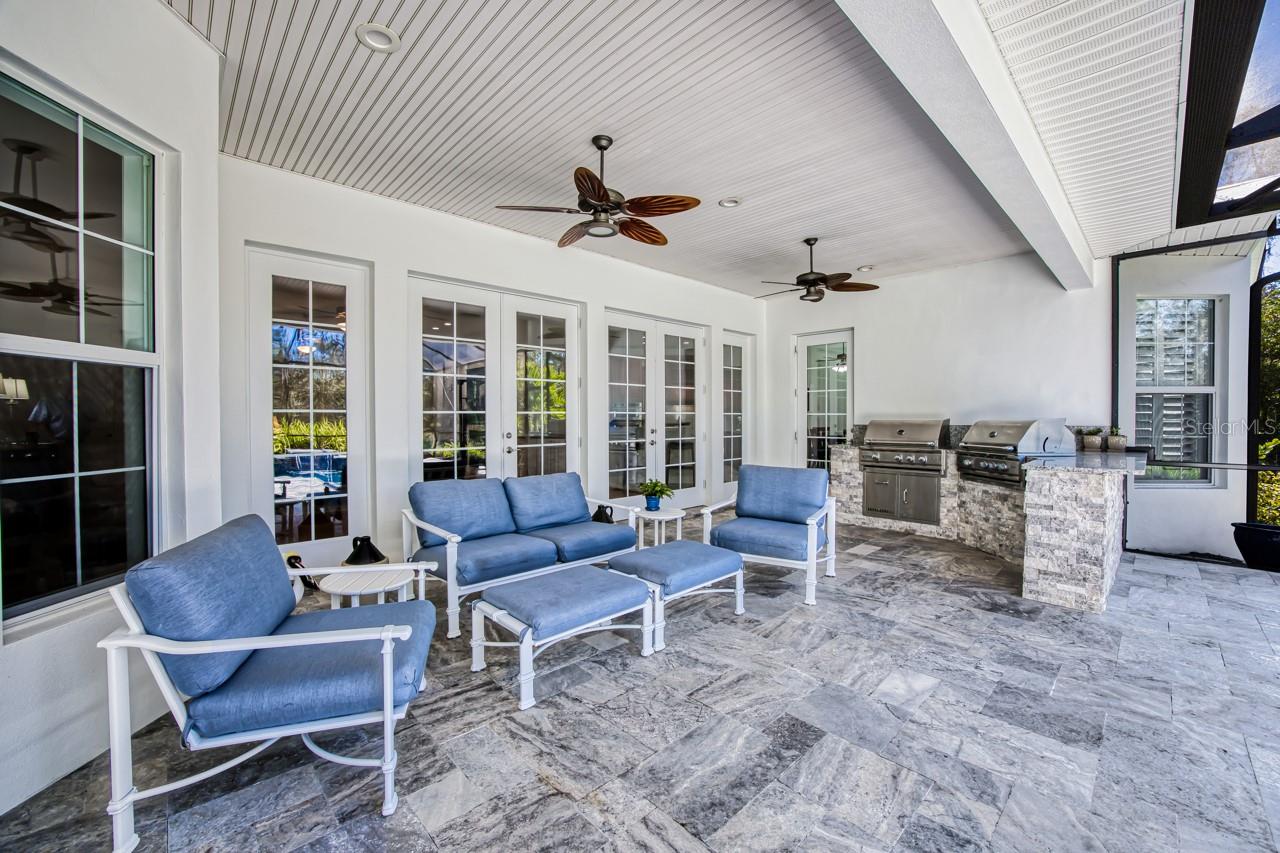 - Exterior: French Doors, Lighting, Outdoor Grill, Outdoor Kitchen, Rain Gutters
