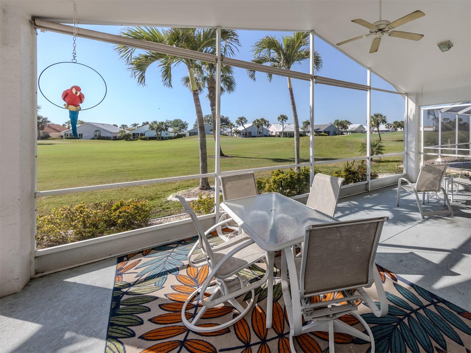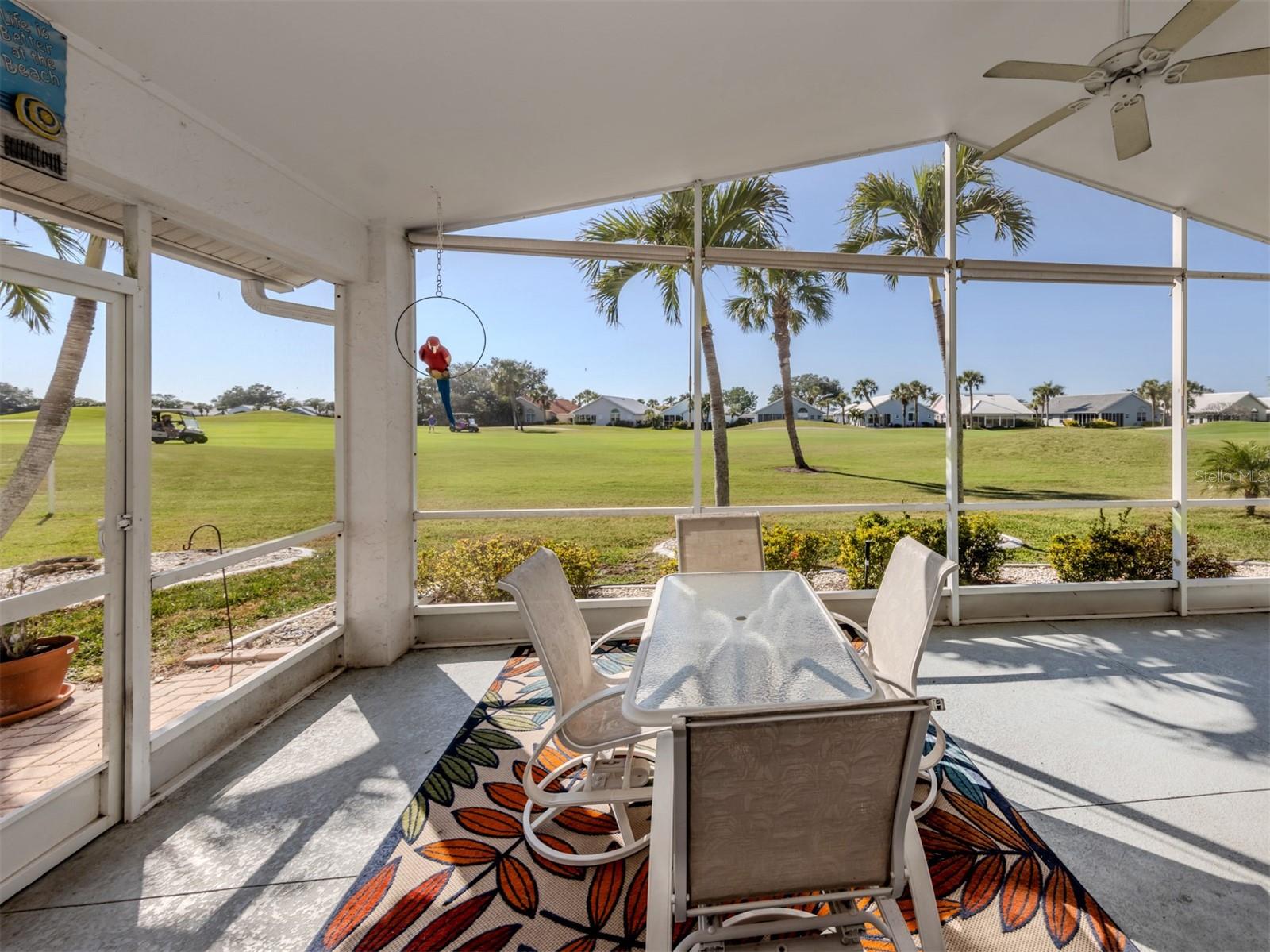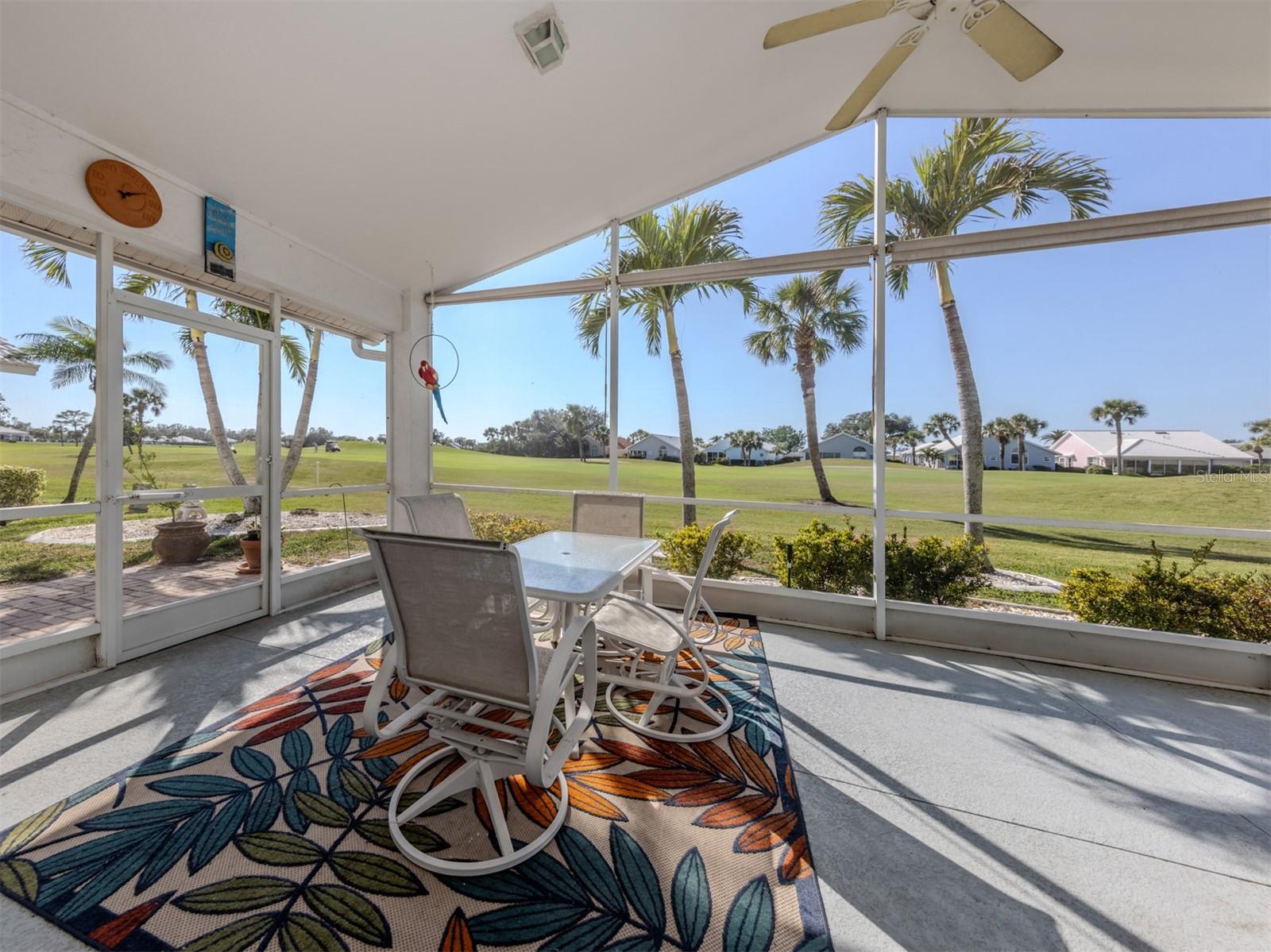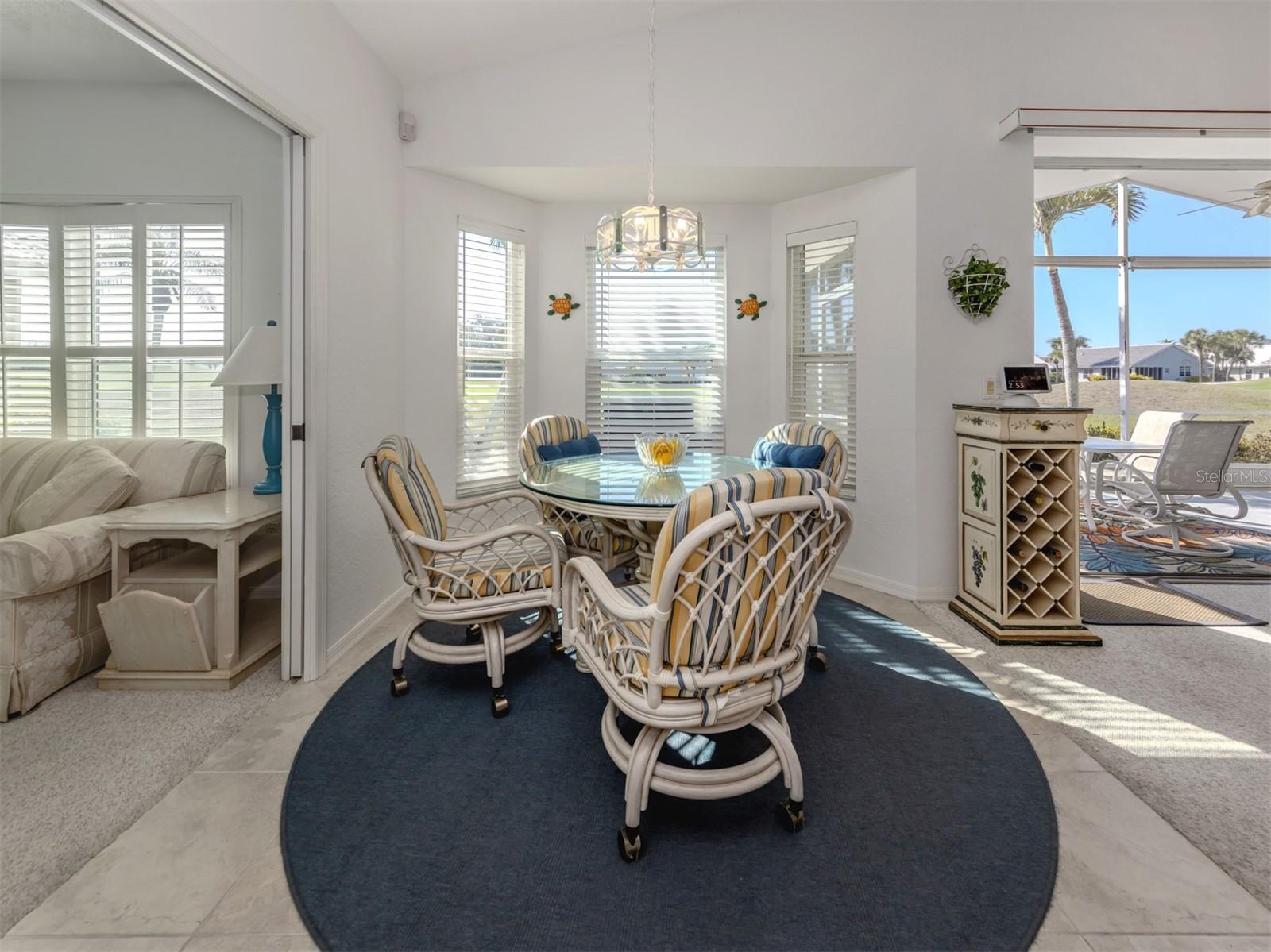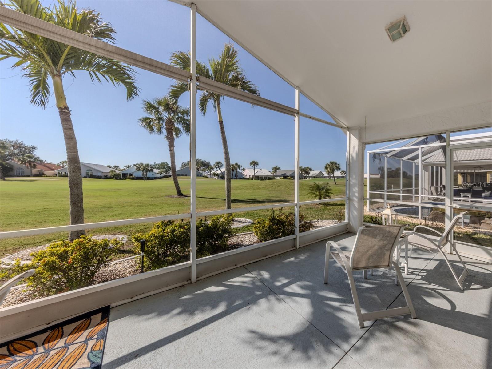 Welcome to Devonshire North, a charming enclave within the highly desirable Waterford community, known for its three scenic nine-hole golf courses and exceptional amenities. This meticulously maintained 2,022 sq. ft. home is bathed in natural light and showcases the beautiful tile and breathtaking golf course views. Whether you're looking for a permanent residence or a winter retreat, this move-in-ready home offers comfort and style. Featuring two bedrooms, an office/den and two bathrooms, the thoughtfully designed layout includes a spacious kitchen with wood cabinetry, a subway tile backsplash, and a bright eat-in area framed by a bay window. The den has a closet and could be considered a third bedroom. The formal dining room seamlessly flows into the great room with sliding glass doors that lead to the expansive screened lanai--perfect for entertaining or unwinding. The primary suite boasts a generous walk-in closet and an ensuite bathroom. The second bedroom is bright and offers ample storage. All windows, except the sliding glass door have been replaced with wind resistant windows. As a resident of Waterford, you'll enjoy a vibrant, active lifestyle with access to the Waterford Golf Course, a semi-private 27-hole club featuring a restaurant, pro shop, and more. The Sports Club Complex offers a serene park, pool, spa, and four tennis courts, along with a fitness center, sauna, kitchen, dance floor, library, and social spaces. Devonshire North is a welcoming community with weekly gatherings, low HOA fees, and no age restrictions. Come explore this exceptional home and discover why Waterford living is truly special!