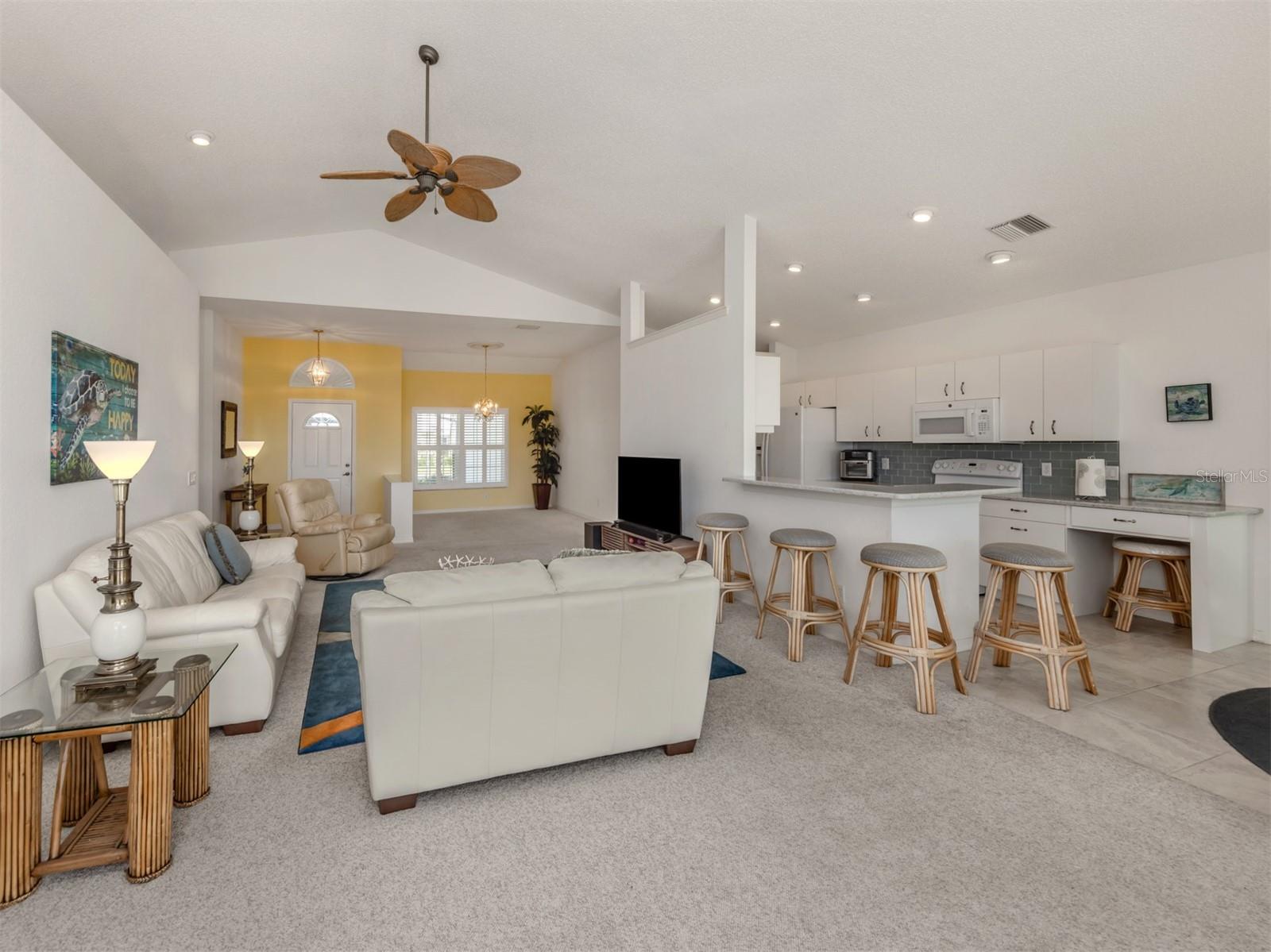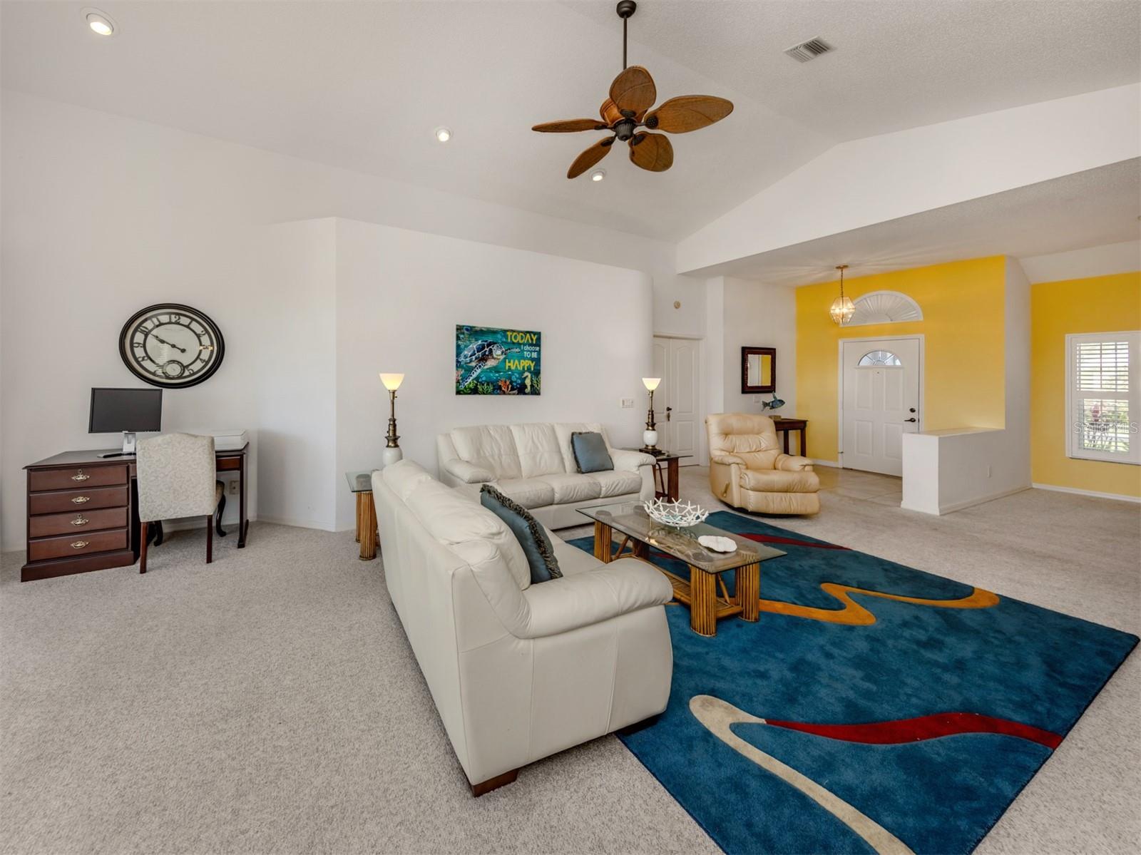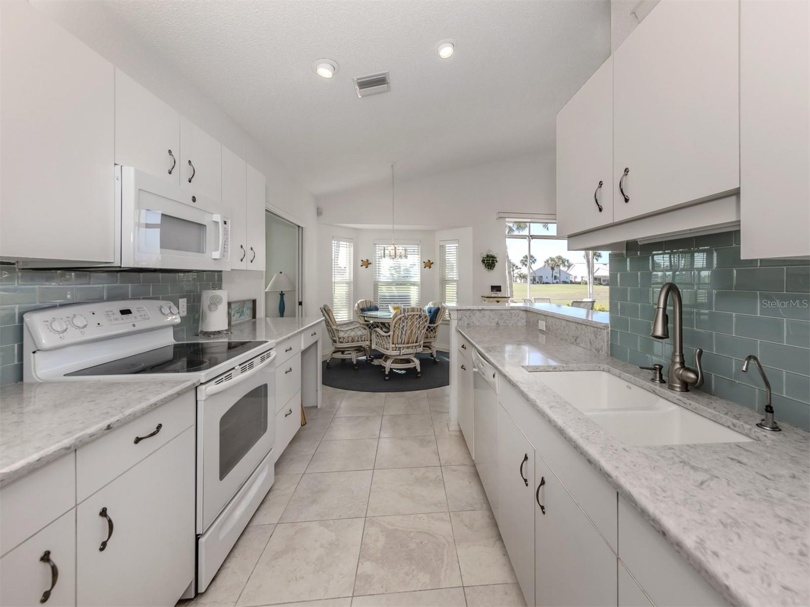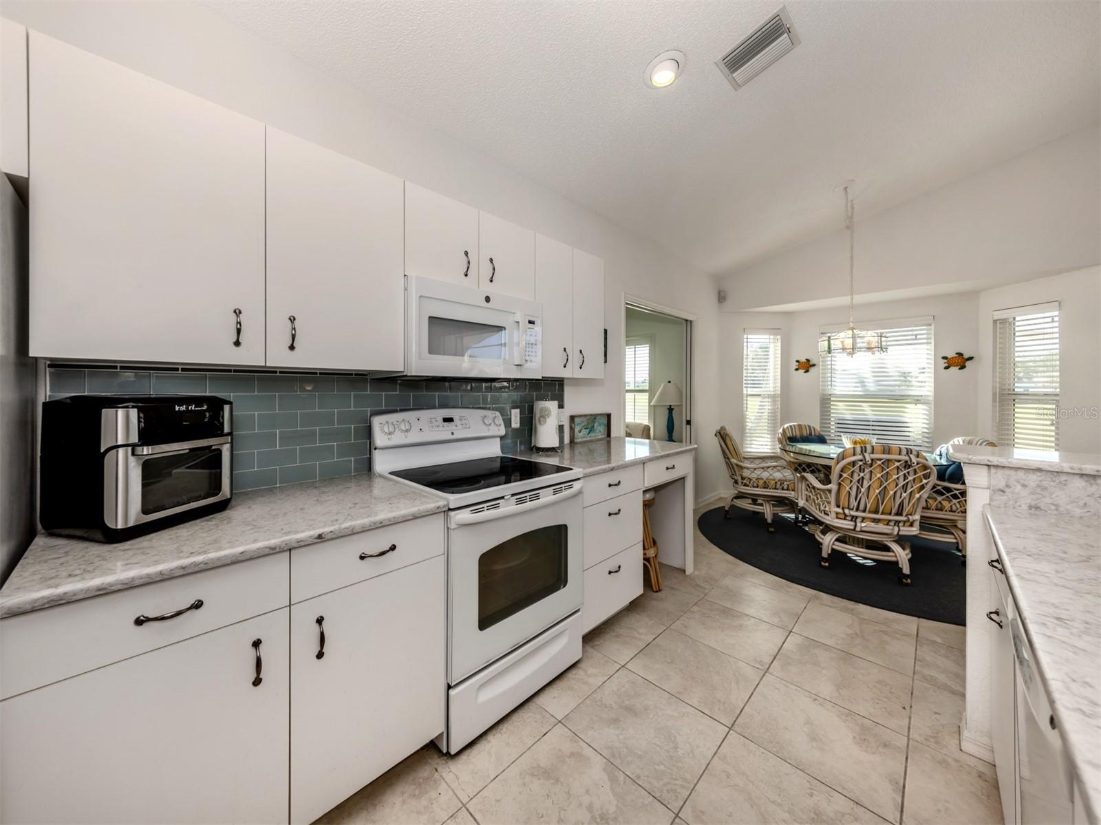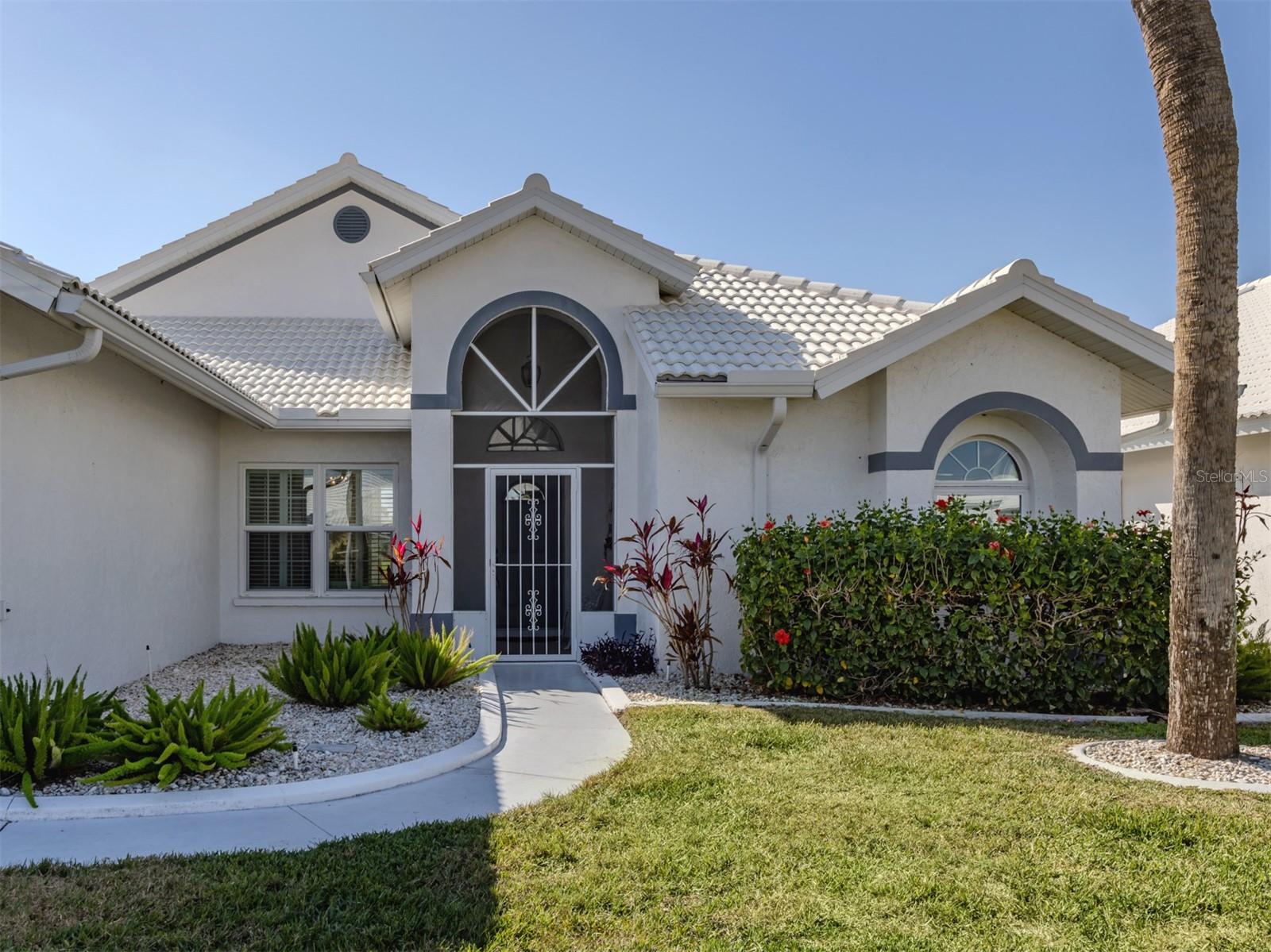 Welcome to Devonshire North, a charming enclave within the highly desirable Waterford community, known for its three scenic nine-hole golf courses and exceptional amenities. This meticulously maintained 2,022 sq. ft. home is bathed in natural light and showcases the beautiful tile and breathtaking golf course views. Whether you're looking for a permanent residence or a winter retreat, this move-in-ready home offers comfort and style. Featuring two bedrooms, an office/den and two bathrooms, the thoughtfully designed layout includes a spacious kitchen with wood cabinetry, a subway tile backsplash, and a bright eat-in area framed by a bay window. The den has a closet and could be considered a third bedroom. The formal dining room seamlessly flows into the great room with sliding glass doors that lead to the expansive screened lanai--perfect for entertaining or unwinding. The primary suite boasts a generous walk-in closet and an ensuite bathroom. The second bedroom is bright and offers ample storage. All windows, except the sliding glass door have been replaced with wind resistant windows. As a resident of Waterford, you'll enjoy a vibrant, active lifestyle with access to the Waterford Golf Course, a semi-private 27-hole club featuring a restaurant, pro shop, and more. The Sports Club Complex offers a serene park, pool, spa, and four tennis courts, along with a fitness center, sauna, kitchen, dance floor, library, and social spaces. Devonshire North is a welcoming community with weekly gatherings, low HOA fees, and no age restrictions. Come explore this exceptional home and discover why Waterford living is truly special!