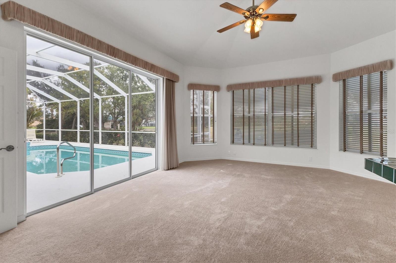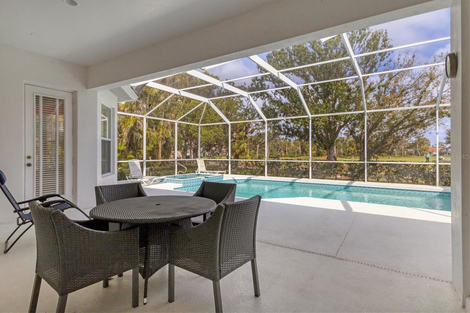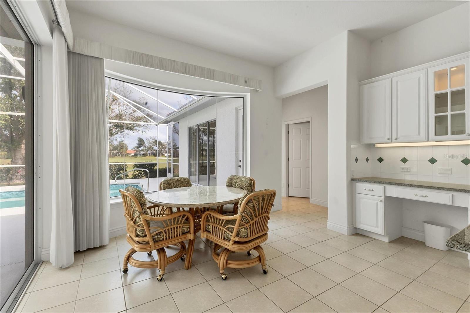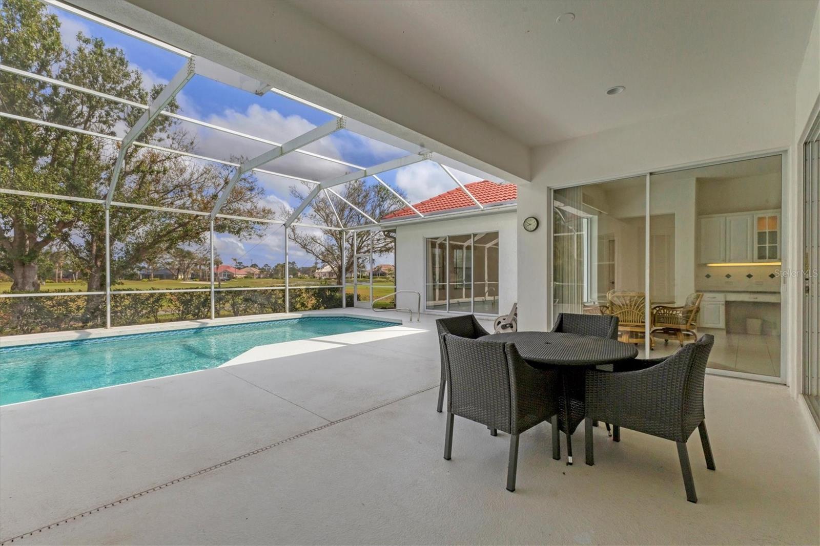 Welcome to your dream home nestled within the serene confines of Pelican Pointe Golf & Country Club in Venice, Florida! This stunning 4-bedroom, 3-bathroom plus a LARGE Office/Bonus Room offers the ultimate Florida lifestyle, combining luxurious living spaces with resort-style amenities and breathtaking natural beauty.As you approach the home, a manicured landscape greets you. Upon entering, you're welcomed into a spacious and inviting foyer, where natural light floods the interiors, creating an airy and welcoming ambiance. The inviting floor plan seamlessly connects the living, dining, and kitchen areas. The living room features expansive sliders that frame breathtaking views of the lush greenery of the golf course, serving as a picturesque backdrop for everyday living. Large Kitchen with plenty of cabinetry and storage. Adjacent to the kitchen, the dining area offers a graceful setting for enjoying meals with family and friends, with sliding glass doors providing seamless access to the outdoor oasis beyond. Step outside to discover your own paradise--a large lanai with a sparkling pool and spa with a beautiful view of the Golf Course. The master suite is a luxurious sanctuary, offering a peaceful retreat from the stresses of daily life. Featuring a spacious bedroom with a view, a spa-like ensuite bathroom with dual vanities, a soaking tub, and a walk-in shower, as well as generously sized duel walk-in closets, this serene haven exudes comfort and elegance. Three additional bedrooms offer comfortable accommodations for family members or guests, ensuring everyone enjoys privacy and convenience. The 4th bedroom has a kitchenette and would be a wonderful "Mother in Law" suite! With sliders overlooking the pool and golf course it is and amazing private area of the home.With its prime location in Pelican Pointe Golf & Country Club, residents enjoy access to an array of world-class amenities, including championship golf, tennis courts, pickle ball, fitness center, clubhouse, and more, providing endless opportunities for recreation and relaxation. Welcome home to Pelican Pointe. This home would benefit from some updating and is priced accordingly to reflect thatSome images have been virtually staged to better showcase the true potential of rooms and spaces in the home.One or more photo(s) has been virtually staged.