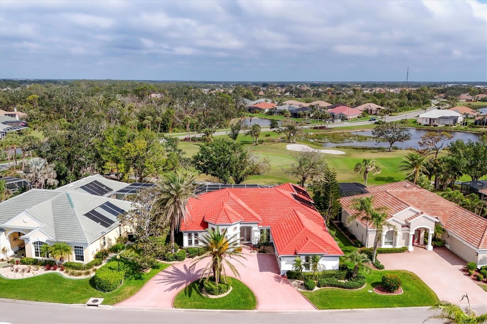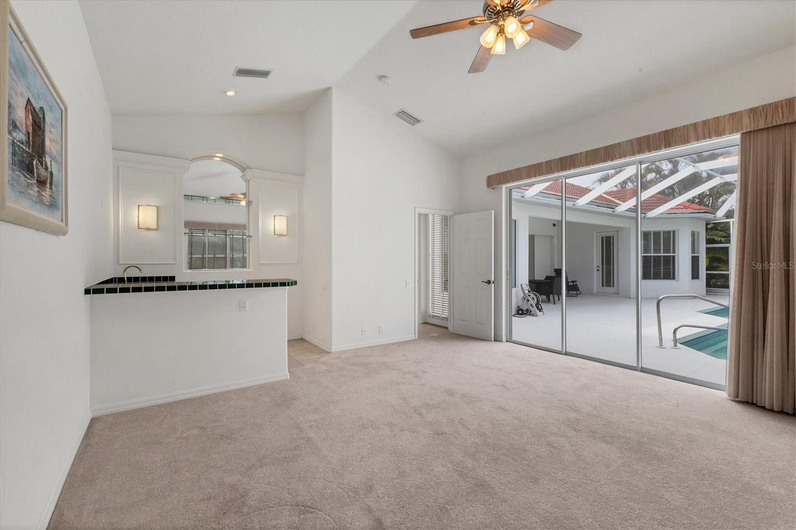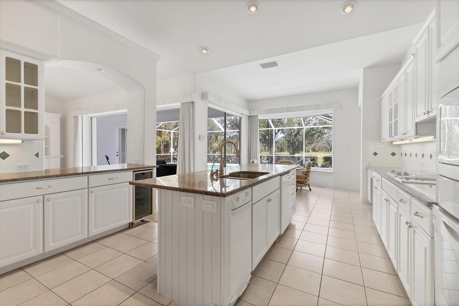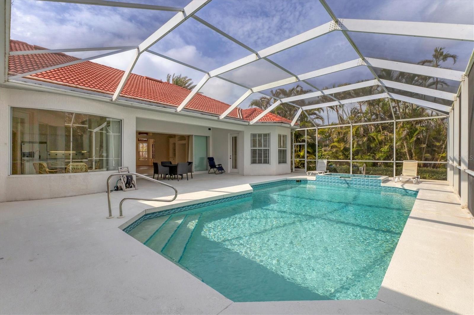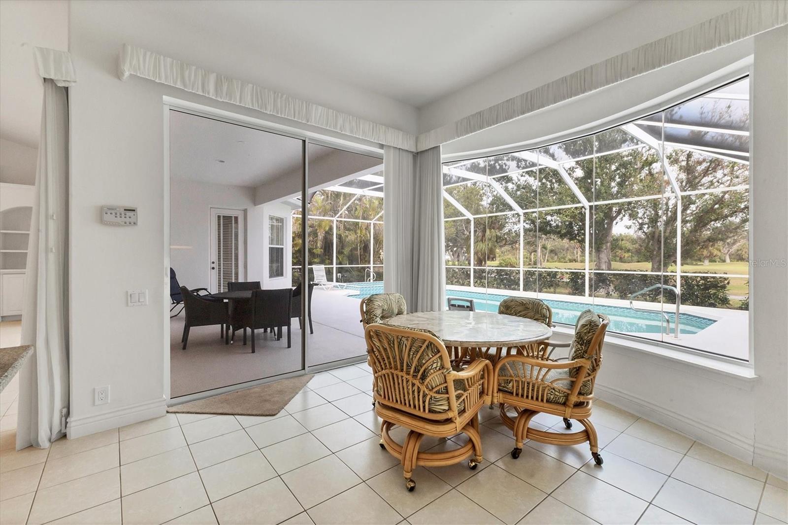 Welcome to your dream home nestled within the serene confines of Pelican Pointe Golf & Country Club in Venice, Florida! This stunning 4-bedroom, 3-bathroom plus a LARGE Office/Bonus Room offers the ultimate Florida lifestyle, combining luxurious living spaces with resort-style amenities and breathtaking natural beauty.As you approach the home, a manicured landscape greets you. Upon entering, you're welcomed into a spacious and inviting foyer, where natural light floods the interiors, creating an airy and welcoming ambiance. The inviting floor plan seamlessly connects the living, dining, and kitchen areas. The living room features expansive sliders that frame breathtaking views of the lush greenery of the golf course, serving as a picturesque backdrop for everyday living. Large Kitchen with plenty of cabinetry and storage. Adjacent to the kitchen, the dining area offers a graceful setting for enjoying meals with family and friends, with sliding glass doors providing seamless access to the outdoor oasis beyond. Step outside to discover your own paradise--a large lanai with a sparkling pool and spa with a beautiful view of the Golf Course. The master suite is a luxurious sanctuary, offering a peaceful retreat from the stresses of daily life. Featuring a spacious bedroom with a view, a spa-like ensuite bathroom with dual vanities, a soaking tub, and a walk-in shower, as well as generously sized duel walk-in closets, this serene haven exudes comfort and elegance. Three additional bedrooms offer comfortable accommodations for family members or guests, ensuring everyone enjoys privacy and convenience. The 4th bedroom has a kitchenette and would be a wonderful "Mother in Law" suite! With sliders overlooking the pool and golf course it is and amazing private area of the home.With its prime location in Pelican Pointe Golf & Country Club, residents enjoy access to an array of world-class amenities, including championship golf, tennis courts, pickle ball, fitness center, clubhouse, and more, providing endless opportunities for recreation and relaxation. Welcome home to Pelican Pointe. This home would benefit from some updating and is priced accordingly to reflect thatSome images have been virtually staged to better showcase the true potential of rooms and spaces in the home.One or more photo(s) has been virtually staged.