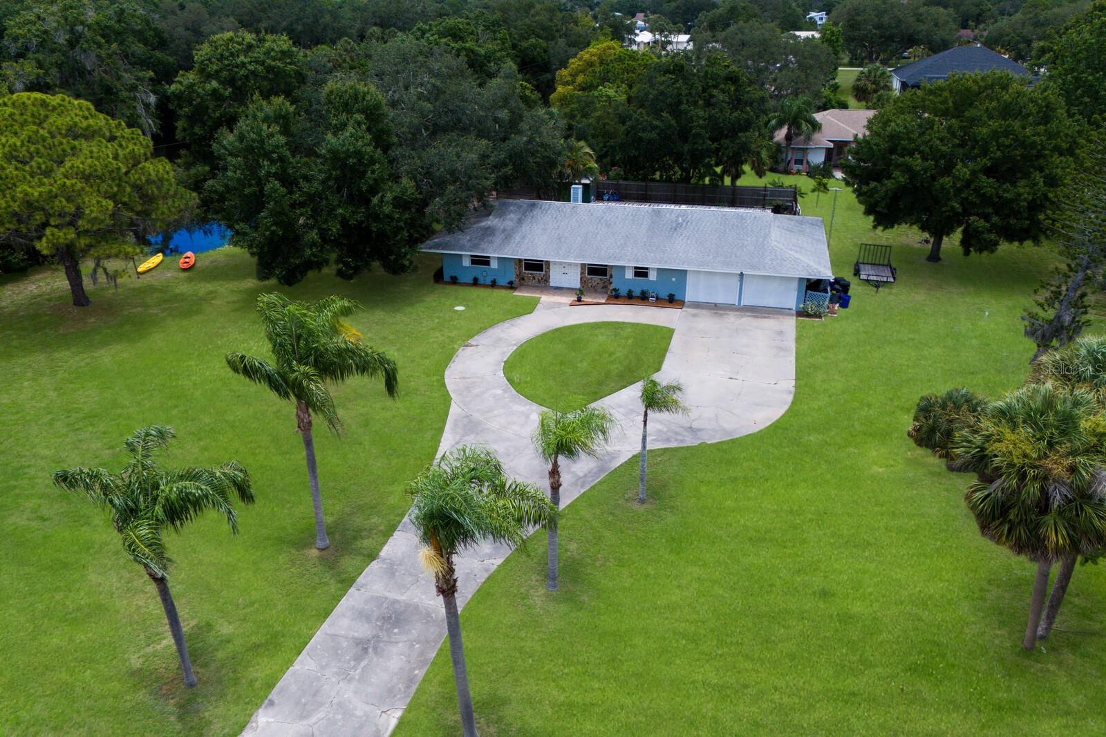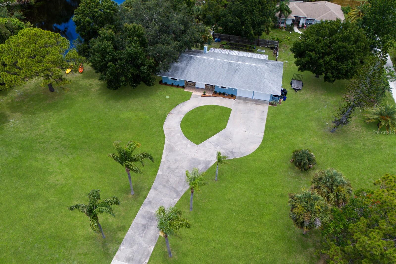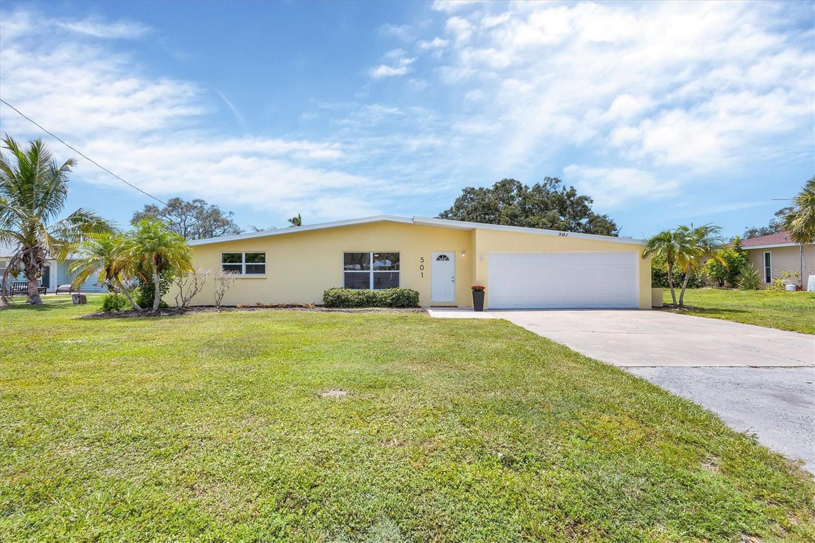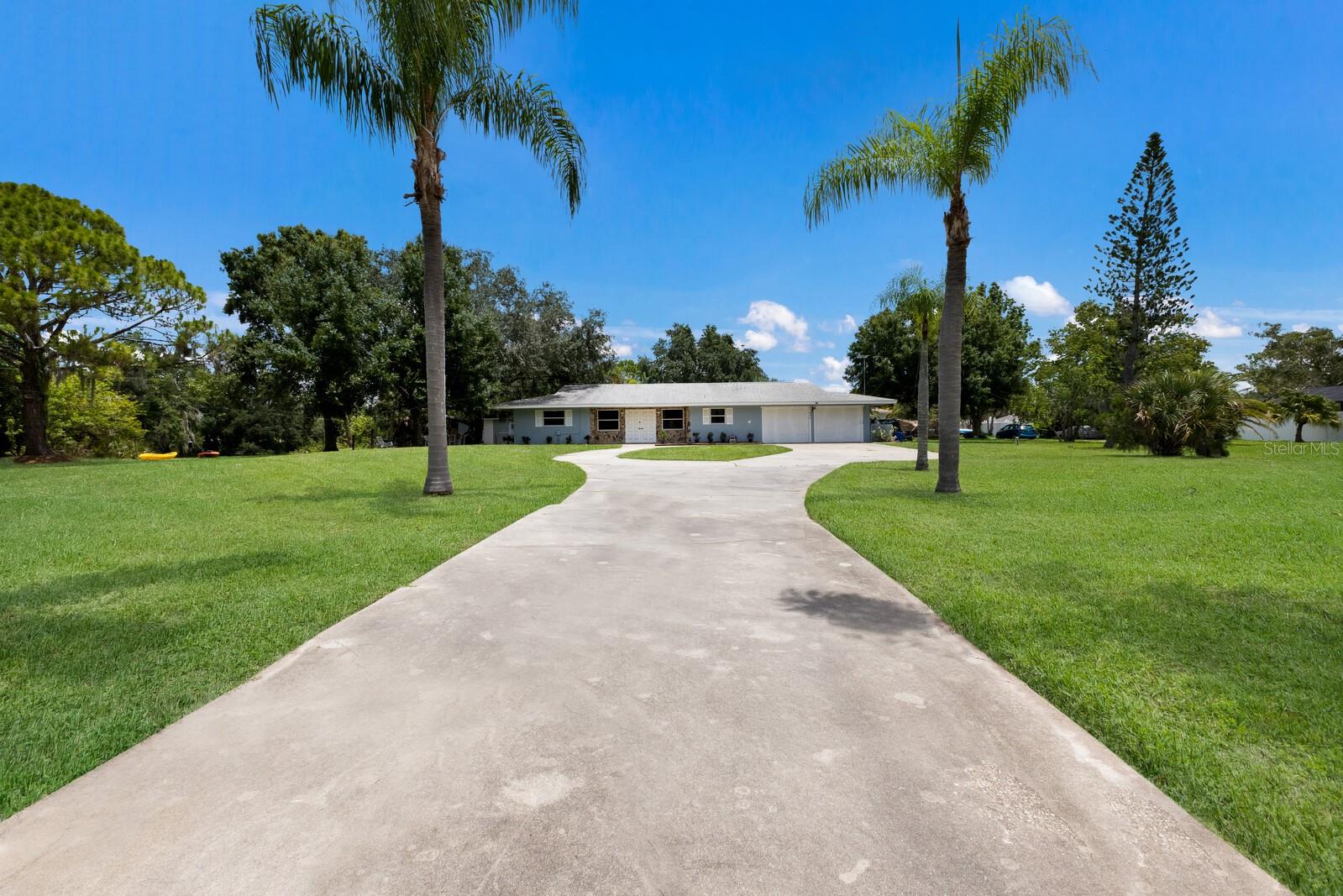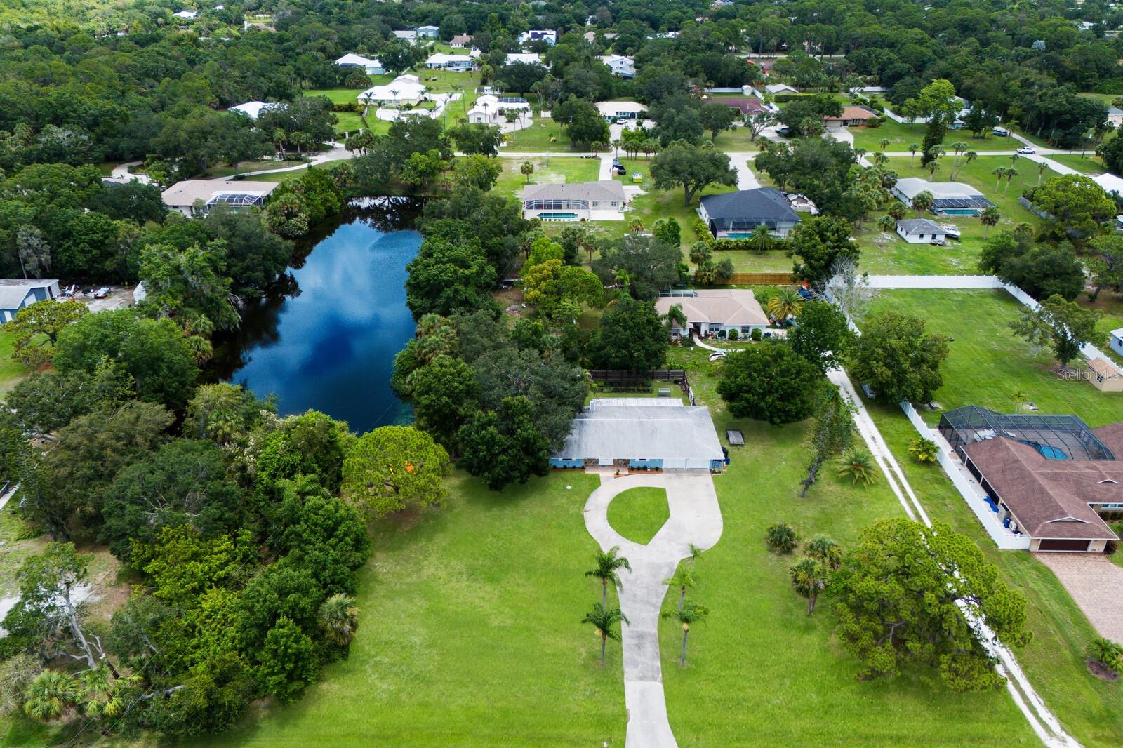 LEAST EXPENSIVE PROPERTY IN MISSION VALLEY ESTATES! LAKEFRONT. No damage from the 2024 hurricane season. Three bed, two bath, split plan home. This well-built ranch house sits on OVER an ACRE of land with NO DEED RESTRICTIONS. Bring the boat or RV because there is plenty of room for both. Inside, you'll find a great room and open plan. The updated kitchen has quartz counters, an island for prep and casual dining, stainless appliances, and natural wood, shaker-style cabinets. This is all overlooking the adjacent dining room and "sunken" great room with beamed ceilings. Large gatherings can spill out onto the rear, screened-in porch with views of the water and backyard. The principal bedroom, with an en-suite bath, also opens to the rear porch kept cool by multiple ceiling fans. On the other side of the house, you'll find two traditional bedrooms sharing a bath. There is a spacious, two-car garage and plenty of surface parking with a long, circular driveway. Mission Valley Estates, while retaining a rural feel is just minutes from shopping, the new Sarasota Memorial Hospital-Venice Campus, and I75. Nearby recreational amenities include the paved, multi-use Legacy Trail, Nokomis Beach, boat ramps into the Intercoastal Waterway, and Oscar Scherer State Park. All schools are nearby including the nationally ranked (2-12) Pine View School for the Gifted.