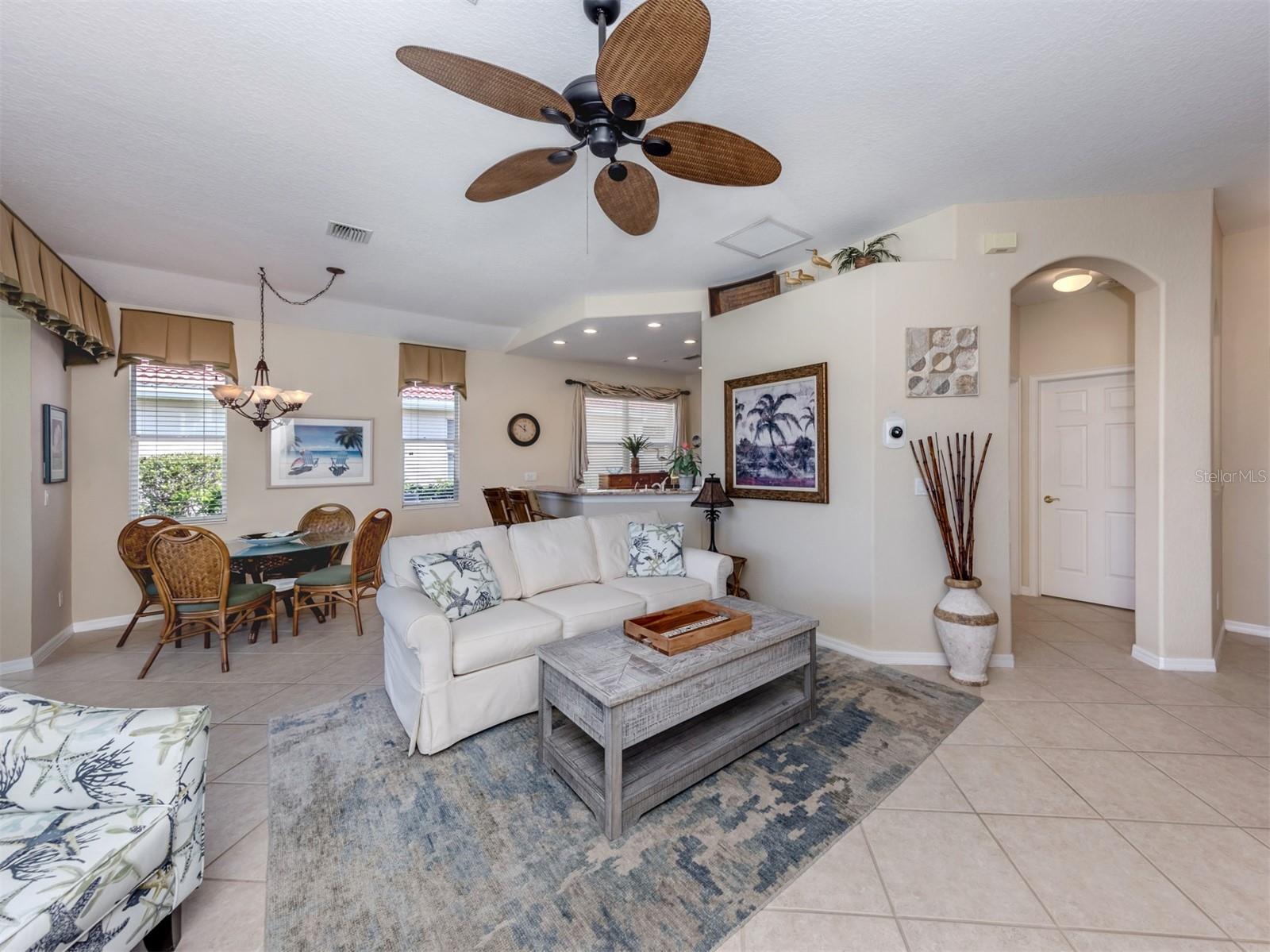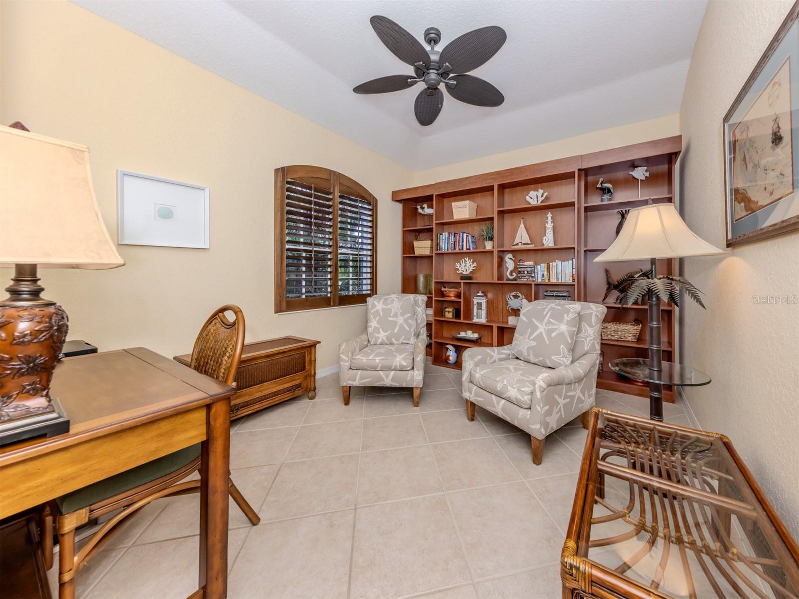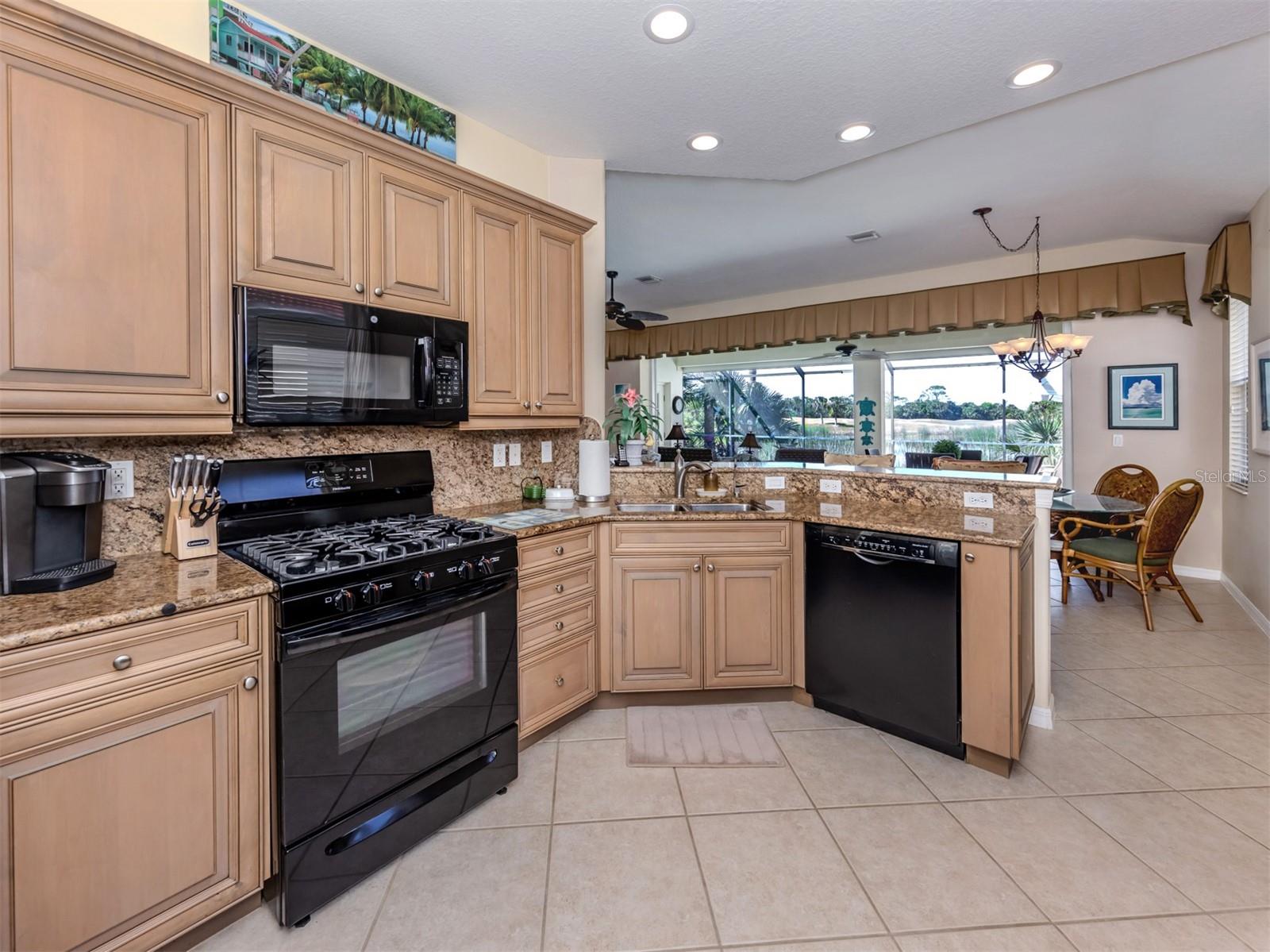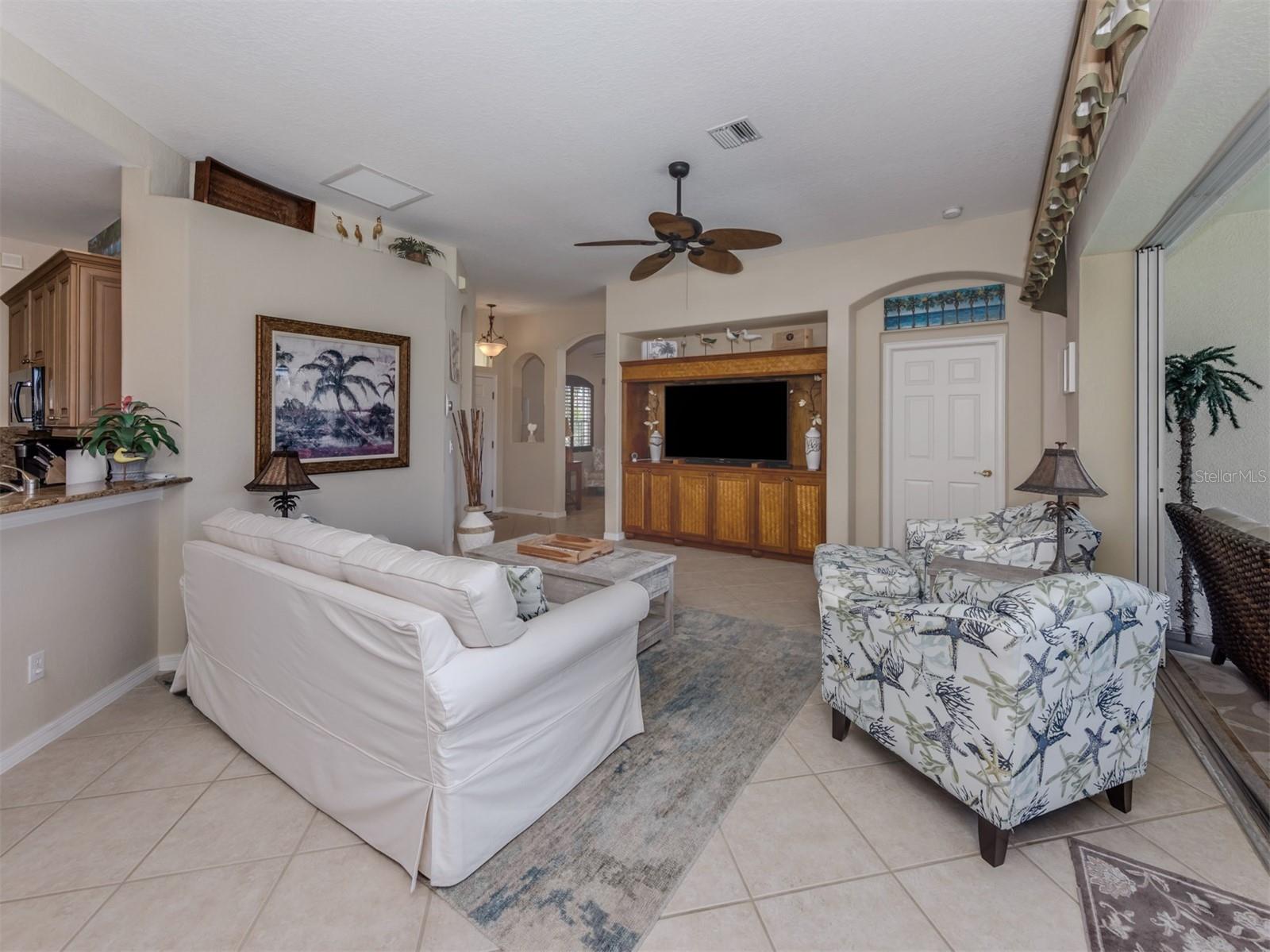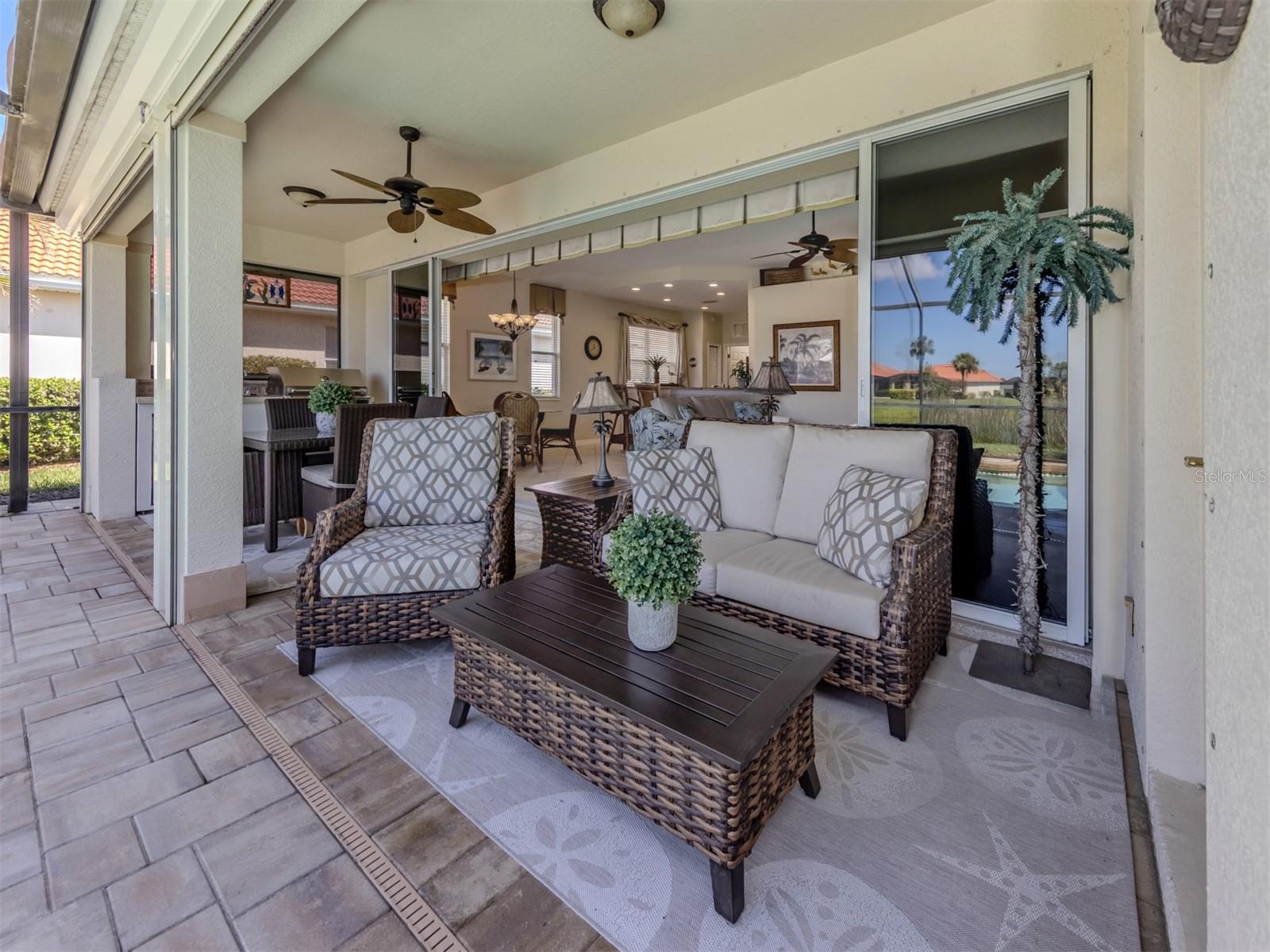 Stunning lake, golf and sunset views with maintenance-free living! Experience the beauty and serenity of this WCI-built Cavallini floor plan, featuring two spacious bedrooms, two baths, and a versatile study/guest room with a built-in Murphy bed behind bookshelves. Being sold turnkey furnished. This open plan with pocketing glass doors leads seamlessly to the extended lanai with outdoor kitchen built in 2024, and a heated pool with new pool heater and pump. All this makes it ideal for relaxation and entertainment. The chef-inspired kitchen is a dream with gas appliances, a breakfast bar, granite countertops, built-in storage with functionality and style. Upgrades include luxurious wood cabinetry, California closets, Storm Smart hurricane screens, tankless water heater, lanai pavers and pool coping, paver stone driveway and front walkway, new washer, dryer and refrigerator. Enjoy resort-style amenities at the Venetian Golf and River Club, including an 18-hole championship golf course, heated community pool, lap pool, six Har-Tru® tennis courts, pickleball courts and a top-tier fitness center with scheduled classes. Savor delicious meals at the River Club restaurant or poolside during the season. Only a short drive from stunning Gulf Coast beaches and vibrant downtown Venice, this location offers everything you need. Explore tree-lined boulevards, charming shops, exquisite dining and cultural hotspots like the Venice Art Center, theatre and library. Plus, you're just minutes from state-of-the-art medical facilities, including Sarasota Memorial Hospital.