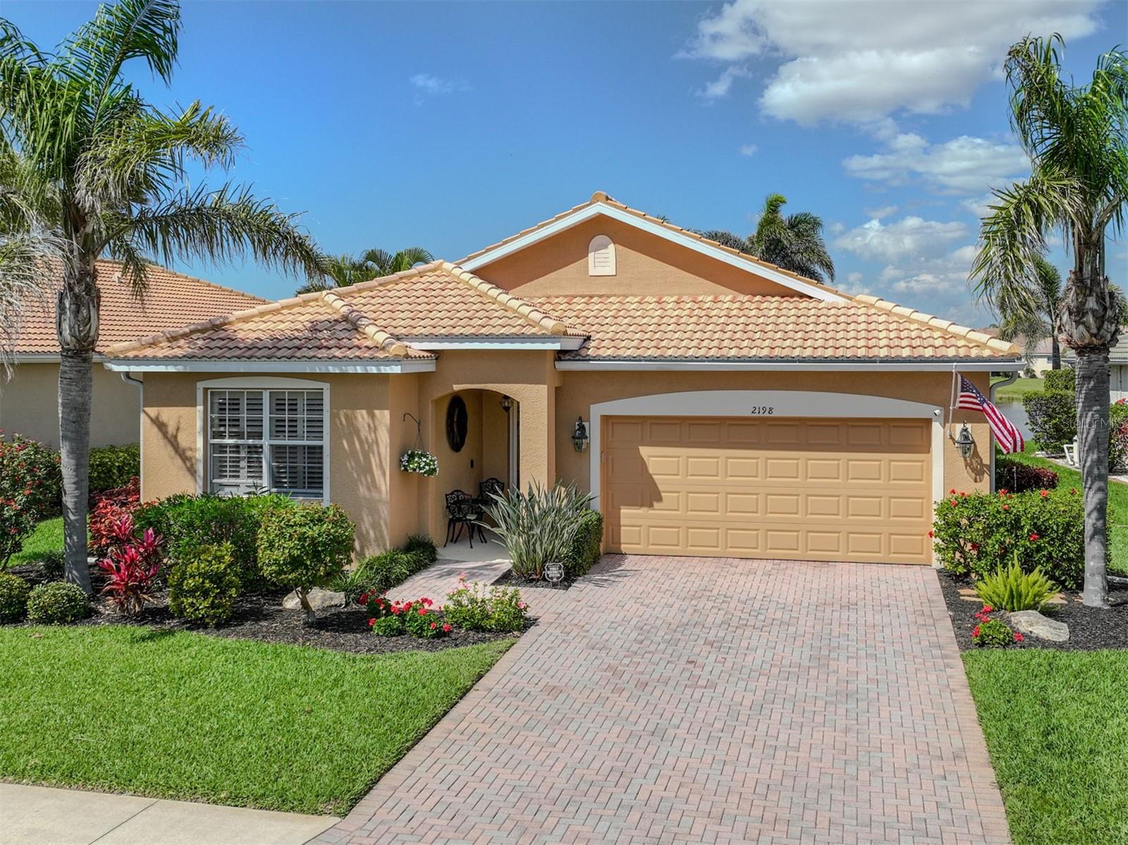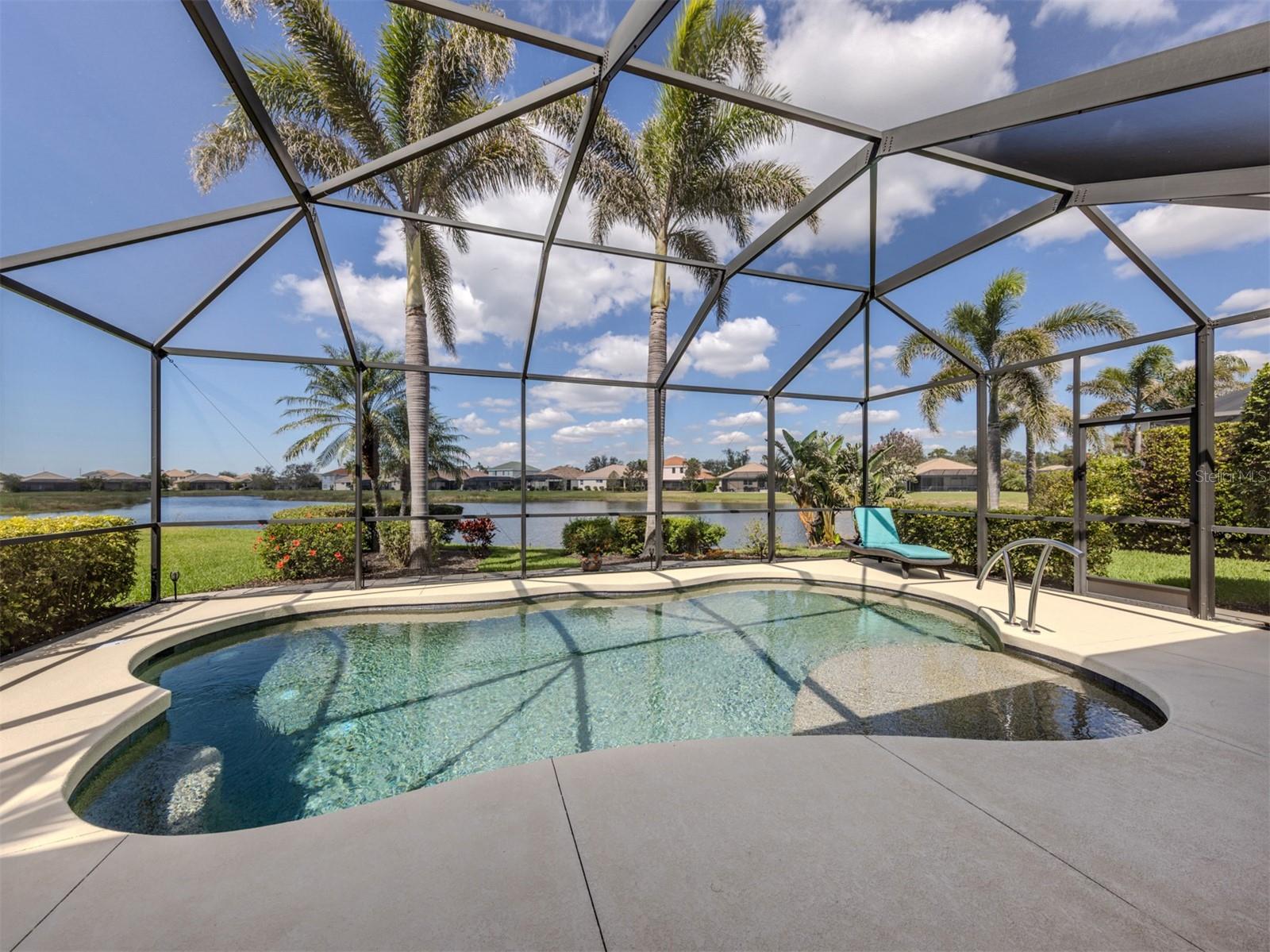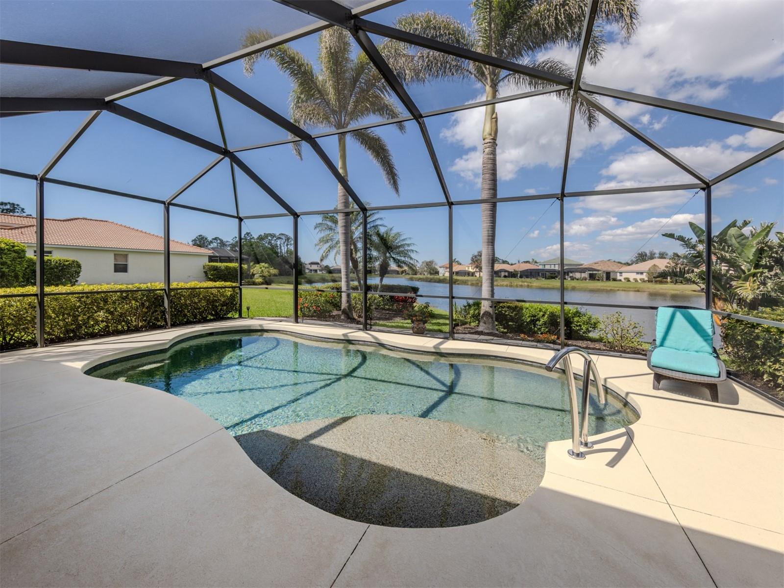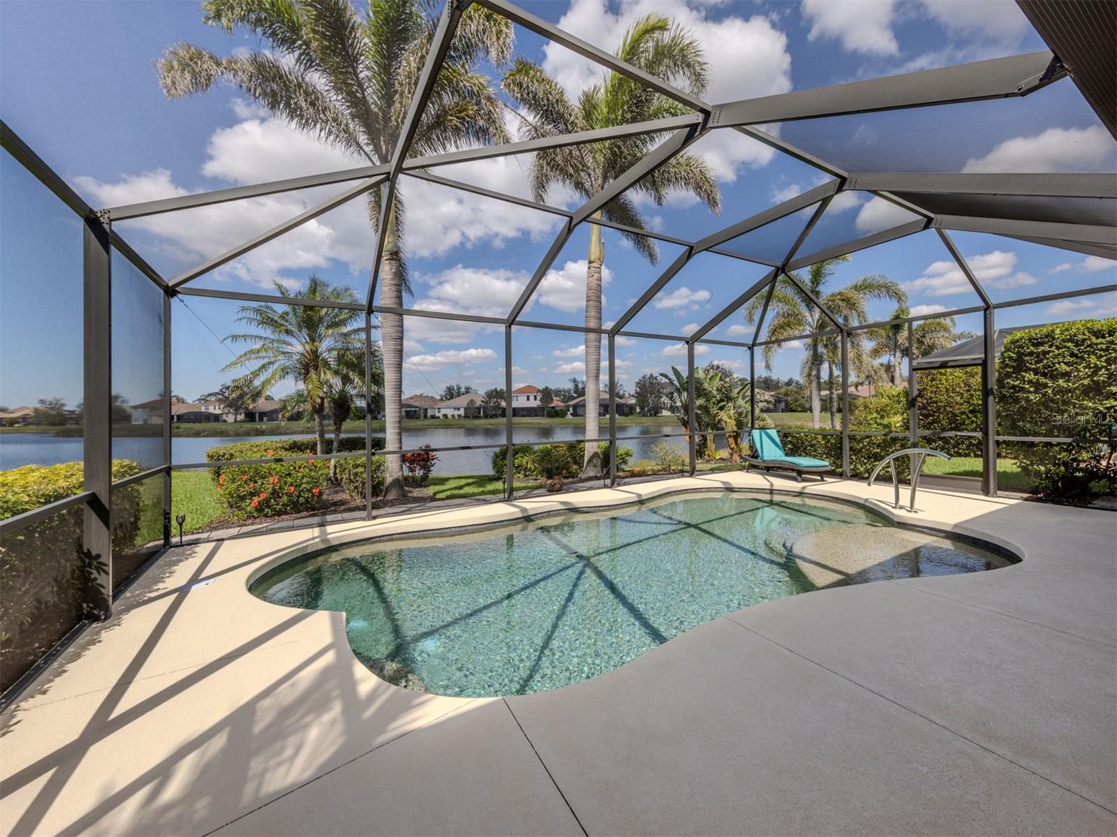 Experience the ultimate in Florida living in this beautiful pool home, set on a serene lake in the amenity-rich, family-friendly gated community of Stoneybrook. This three-bedroom, two-bath home with a two-car garage offers breathtaking water views and a newer saltwater pool, ideal for relaxation and entertaining. Inside, tile floors flow through the main living areas, while plush carpet adds warmth and comfort to the primary and second bedrooms. The spacious living and dining area features a wall of glass sliders that frame the tranquil lake views and lead to the expansive outdoor living space. The kitchen boasts new granite countertops and white wood cabinetry, while both baths have been refreshed with new counters. For added peace of mind, the home includes full hurricane protection and a generator. Enjoy resort-style amenities at the clubhouse, including pickleball, tennis, a fitness center, a skating rink, a splash pad for little ones and a large community pool. Move-in ready, this home blends comfort, luxury and an unbeatable lifestyle.
