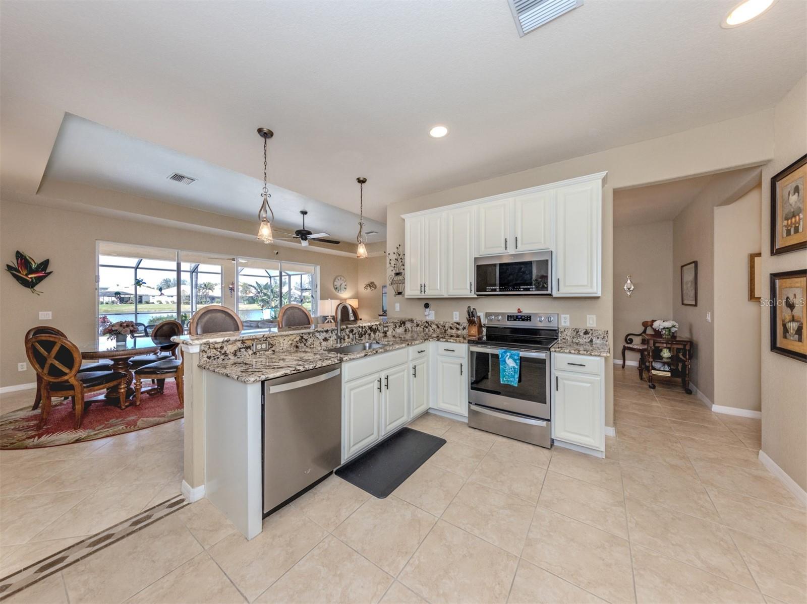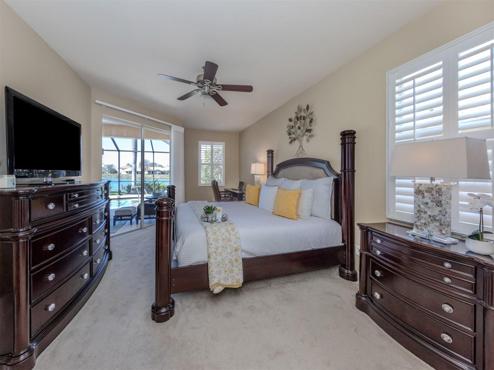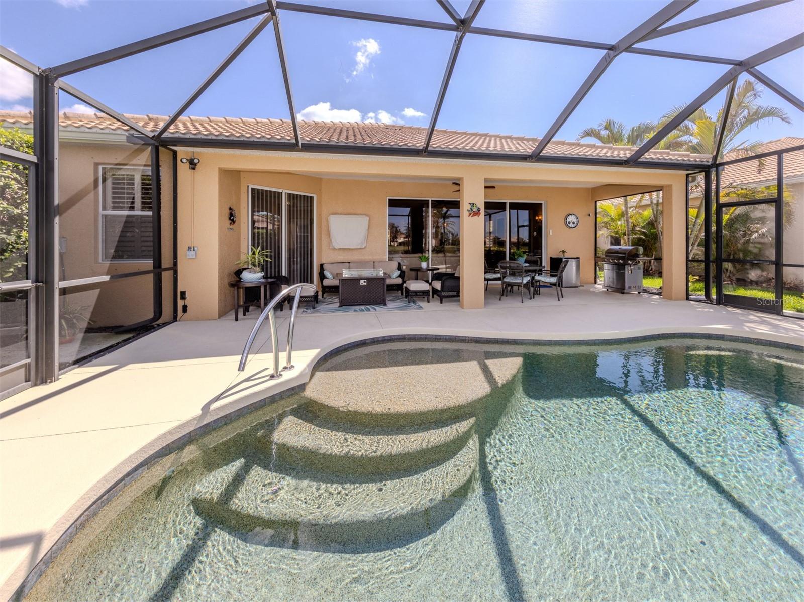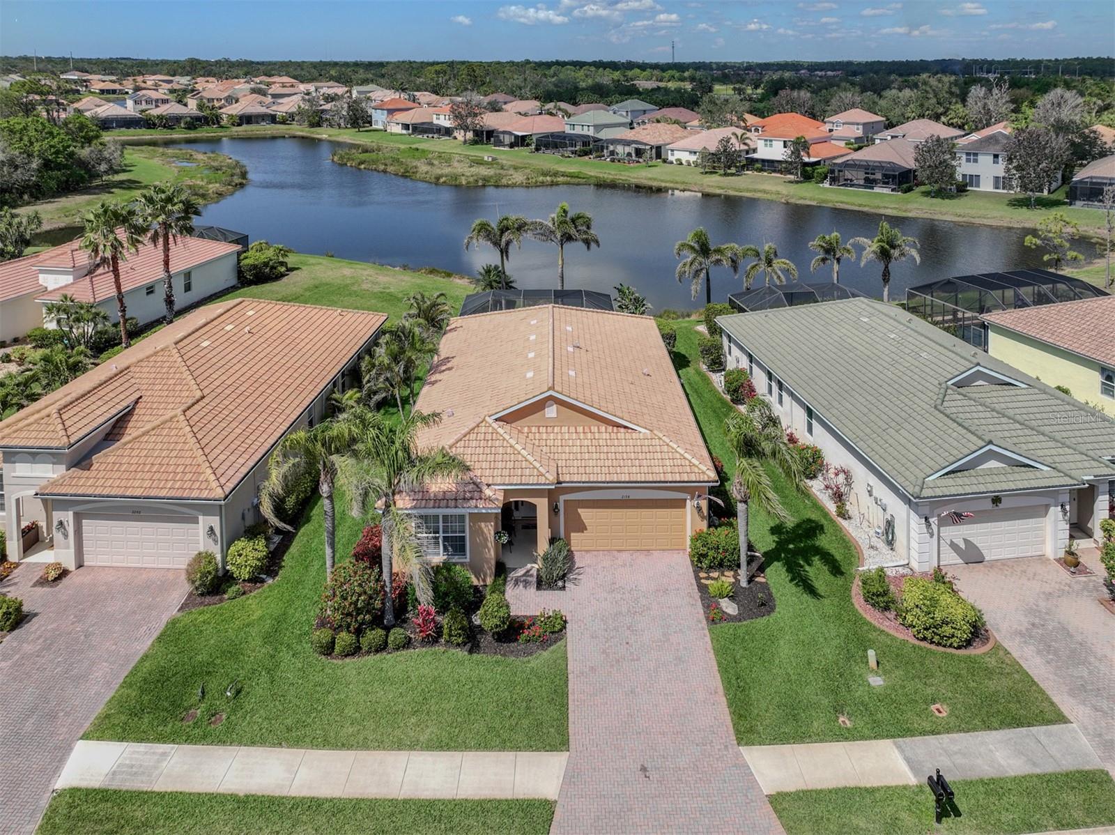 Experience the ultimate in Florida living in this beautiful pool home, set on a serene lake in the amenity-rich, family-friendly gated community of Stoneybrook. This three-bedroom, two-bath home with a two-car garage offers breathtaking water views and a newer saltwater pool, ideal for relaxation and entertaining. Inside, tile floors flow through the main living areas, while plush carpet adds warmth and comfort to the primary and second bedrooms. The spacious living and dining area features a wall of glass sliders that frame the tranquil lake views and lead to the expansive outdoor living space. The kitchen boasts new granite countertops and white wood cabinetry, while both baths have been refreshed with new counters. For added peace of mind, the home includes full hurricane protection and a generator. Enjoy resort-style amenities at the clubhouse, including pickleball, tennis, a fitness center, a skating rink, a splash pad for little ones and a large community pool. Move-in ready, this home blends comfort, luxury and an unbeatable lifestyle.