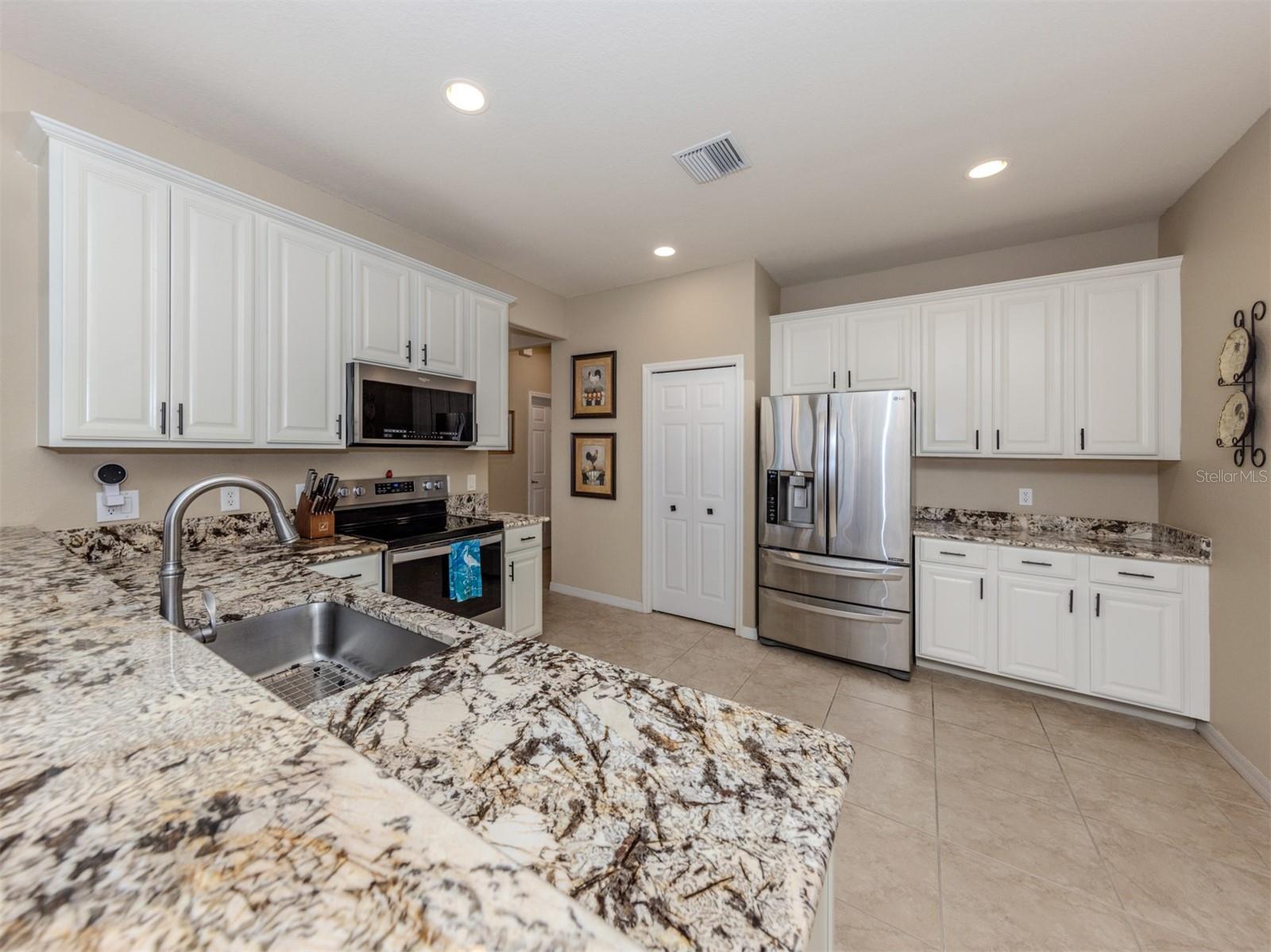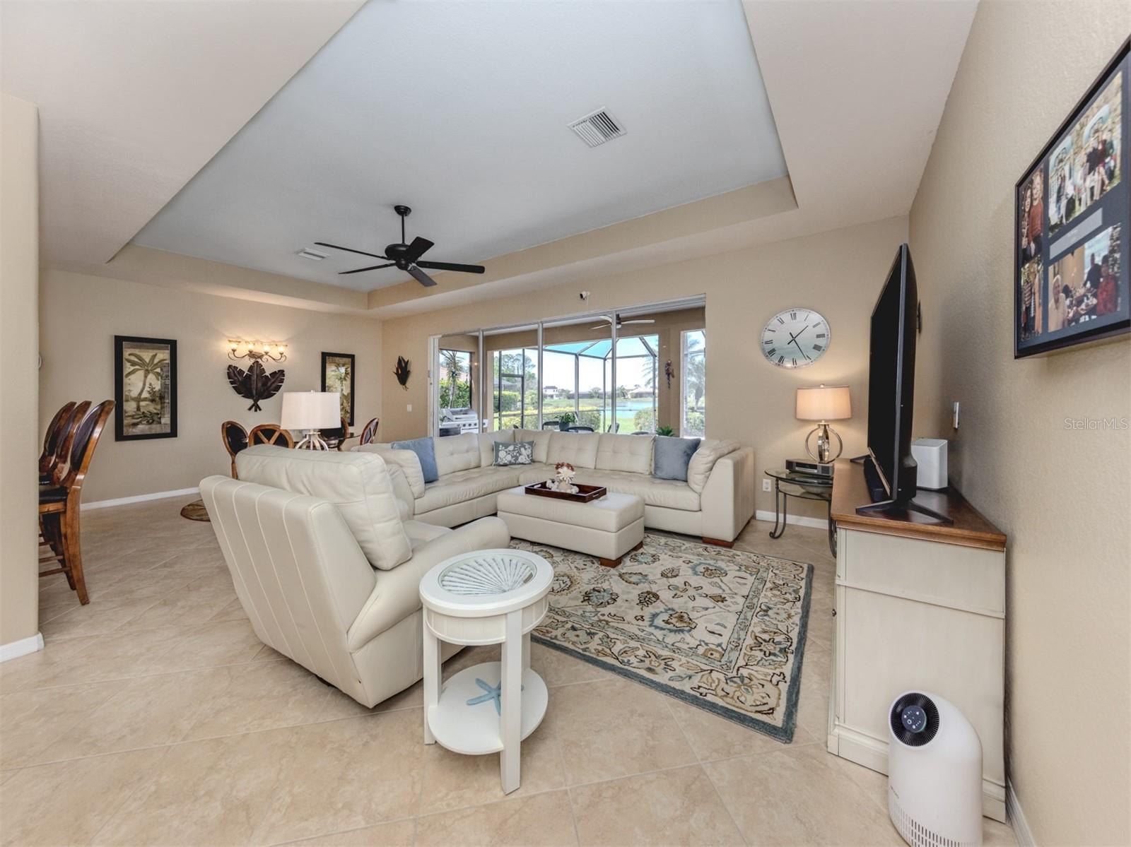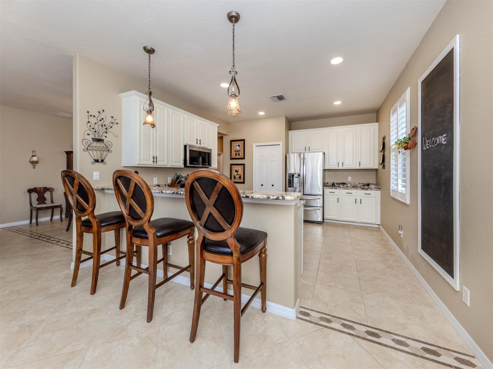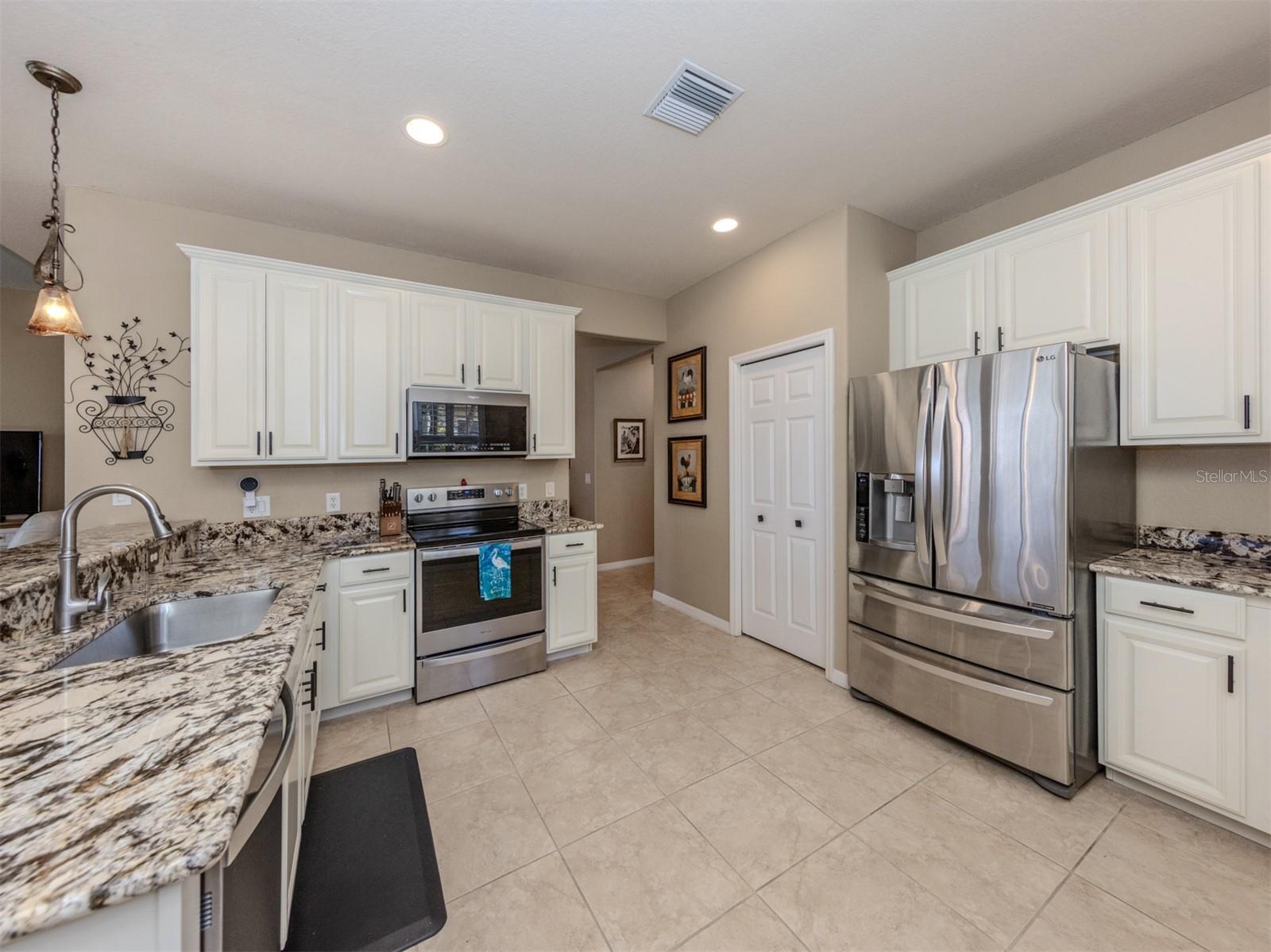 Experience the ultimate in Florida living in this beautiful pool home, set on a serene lake in the amenity-rich, family-friendly gated community of Stoneybrook. This three-bedroom, two-bath home with a two-car garage offers breathtaking water views and a newer saltwater pool, ideal for relaxation and entertaining. Inside, tile floors flow through the main living areas, while plush carpet adds warmth and comfort to the primary and second bedrooms. The spacious living and dining area features a wall of glass sliders that frame the tranquil lake views and lead to the expansive outdoor living space. The kitchen boasts new granite countertops and white wood cabinetry, while both baths have been refreshed with new counters. For added peace of mind, the home includes full hurricane protection and a generator. Enjoy resort-style amenities at the clubhouse, including pickleball, tennis, a fitness center, a skating rink, a splash pad for little ones and a large community pool. Move-in ready, this home blends comfort, luxury and an unbeatable lifestyle.