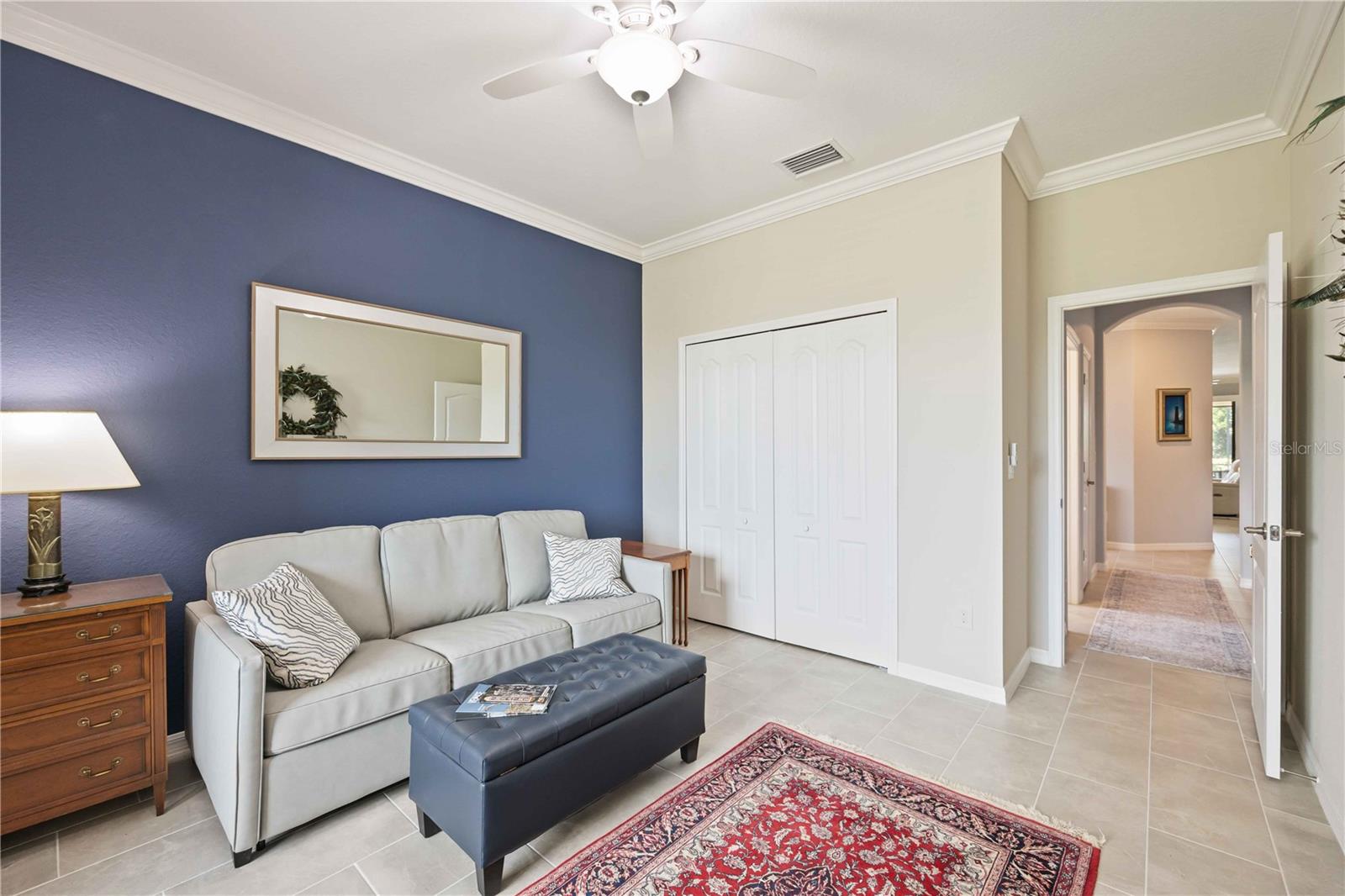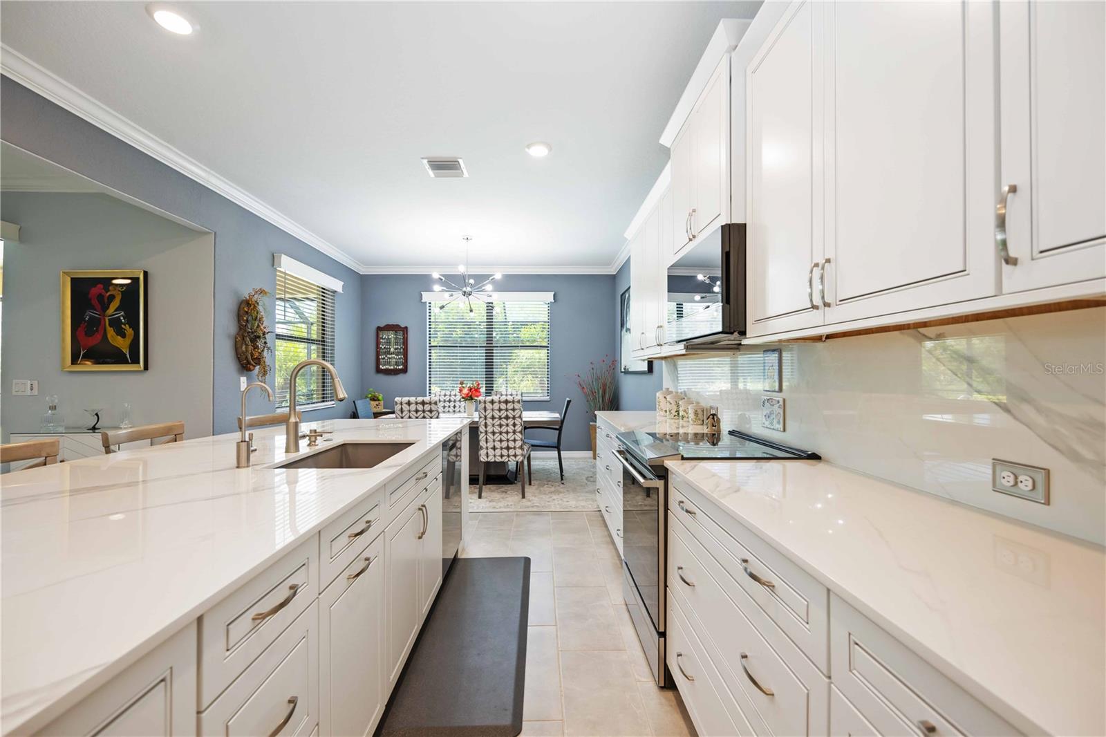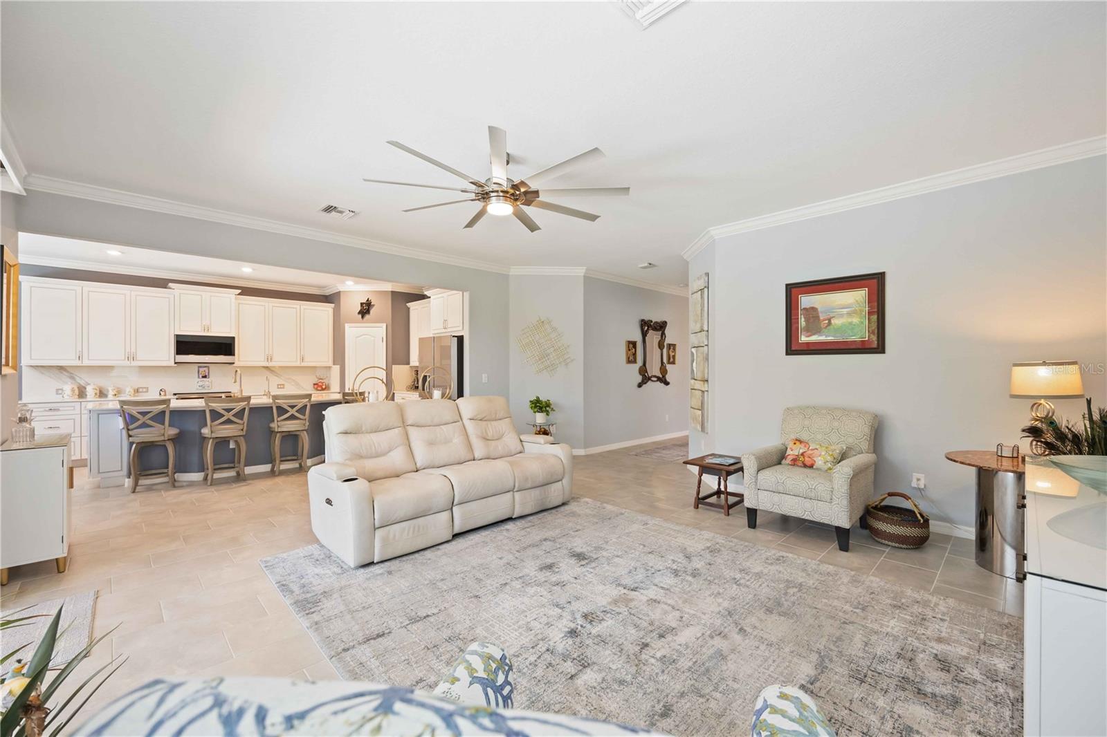 Location, Location, Location. This is a must see, especially if you love golf. You will not be disappointed with this 2000+ square foot home. With over $200K of upgrades, this is a one-of-a-kind Roma model. 2 bedrooms, 2 bathrooms, den that can be converted into a 3rd bedroom and a flex room adjacent to second bedroom, heated pool and spa. The home also features an Entire Home Solar System that is insured and transferable. Premium lot - common area in front and side with preserve in the back the monthly HOA fee includes 2 golf memberships, as well as ground maintenance, irrigation, cable TV and more great amenities. Some of the many upgrades include remodeled chef's dream kitchen and pantry, upgraded cabinets, enlarged quartz island and backsplash, top of the line appliances (induction range), and under cabinet lighting. Upgraded bathrooms; primary bath has a glass walk-in shower, dual sink vanity, separate water closets, and a large custom walk-in closet (relocated HVAC from laundry room to garage). Large laundry room with lots of storage space and utility sink. Extra storage closets in the garage and drop zone (floor to ceiling). Crown molding and tile throughout the house. Central vacuum system, Electric storm smart hurricane screens on the lanai. Hurricane windows in front of the house. 220 outlets in garage for EV charging. Floored attic, pull down ladder, solar attic fan, insulated garage door, garage ceiling has spray foam insulation. 5 baffles added to roof vents.Sarasota National is a 2400-acre International Audubon Bird Sanctuary with some of the most beautiful lakes and preserves in Venice. A 30,000 Sq Ft clubhouse with resort style pool, hot tub, outdoor tiki bar serving food and drinks, coffee house, fine dining restaurant, golf club restaurant, fitness center, card room, day spa, bocce ball, pickle ball, tennis, dog park, event lawn and an 18-hole championship golf course. Short drive to downtown Venice Island and the new area of Wellen Park and the Atlanta Braves Stadium. Close to Venice Beach where you can relax and watch the sunset over the Gulf of Mexico.